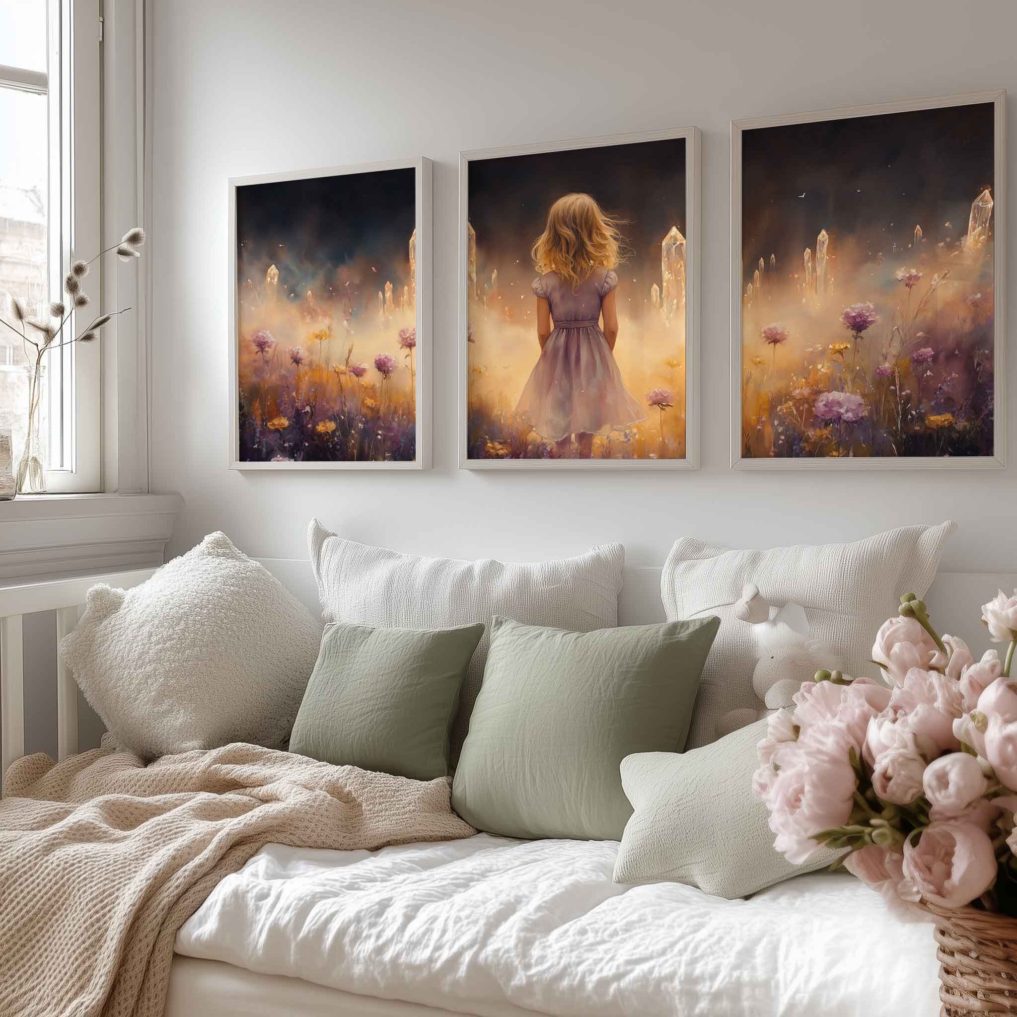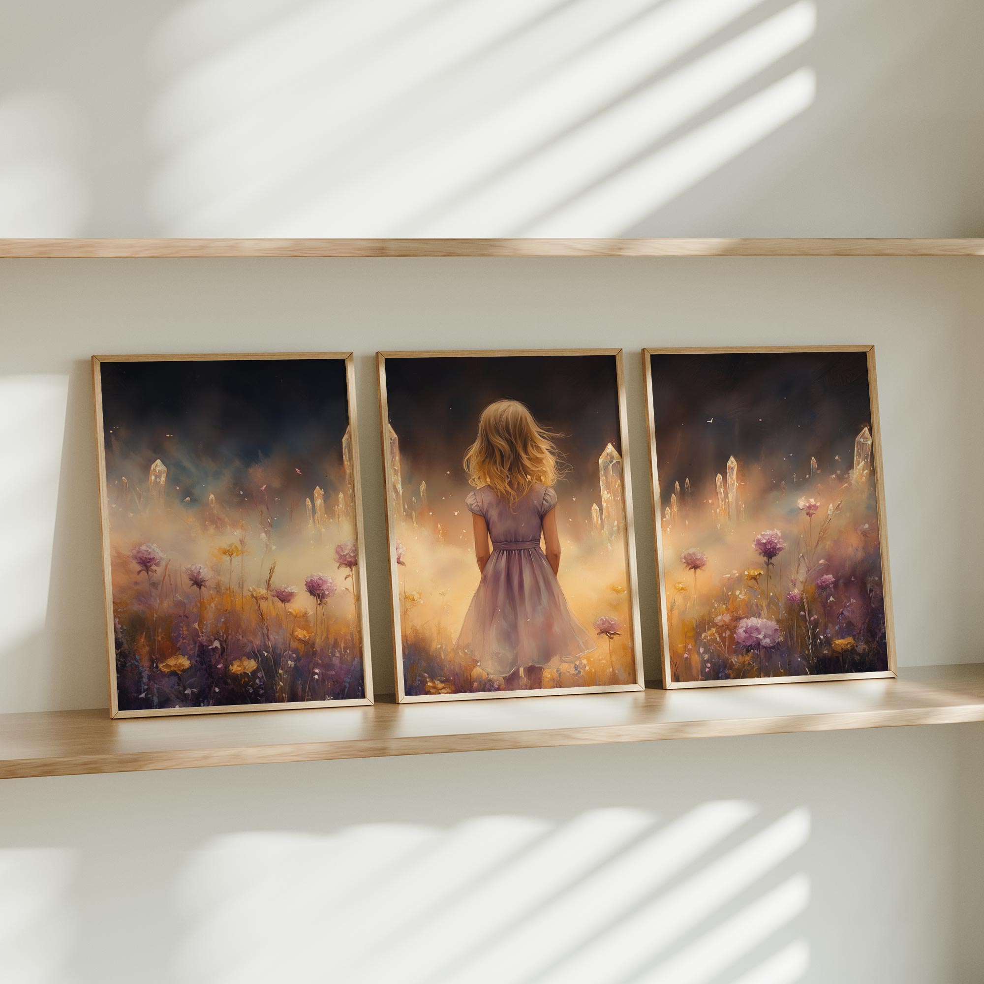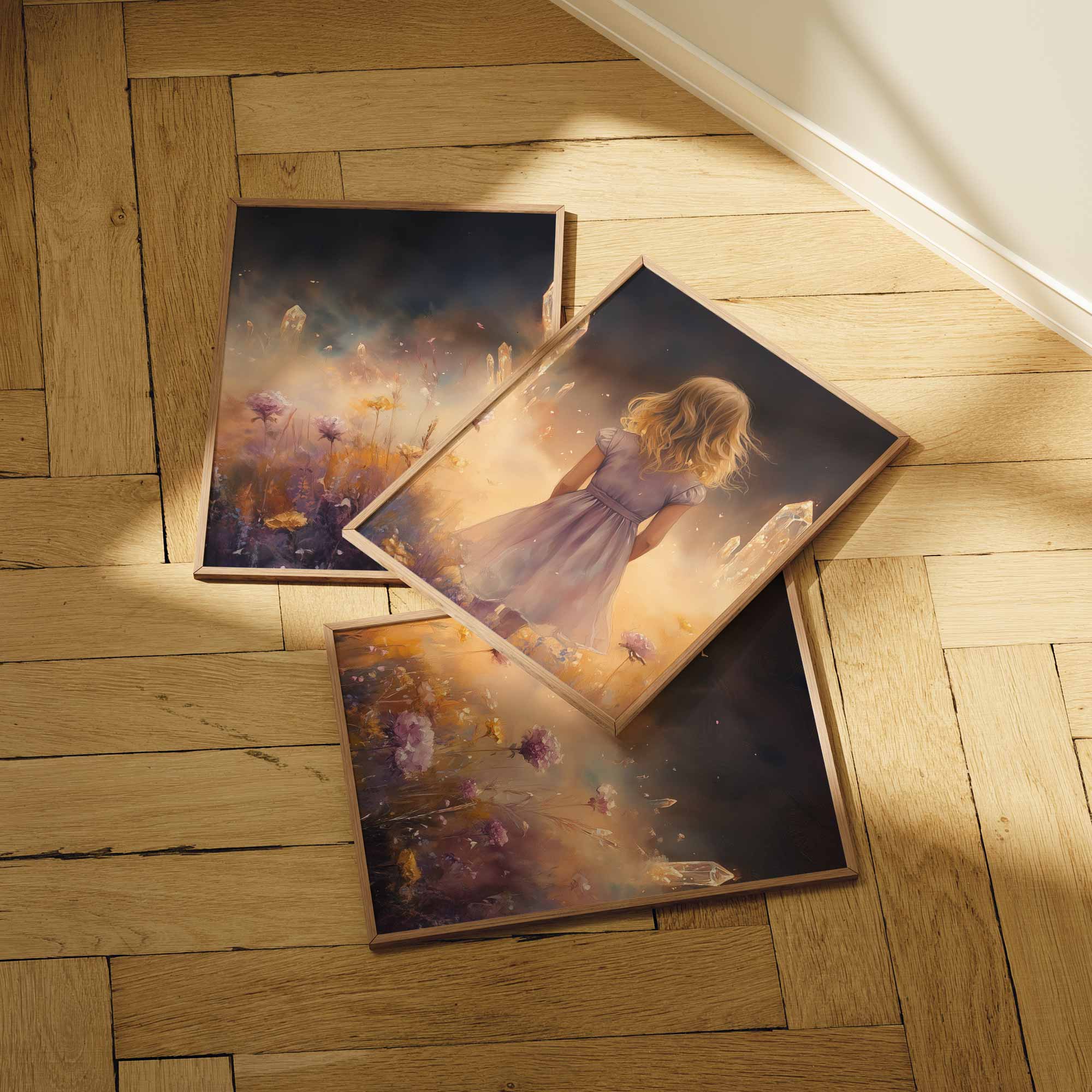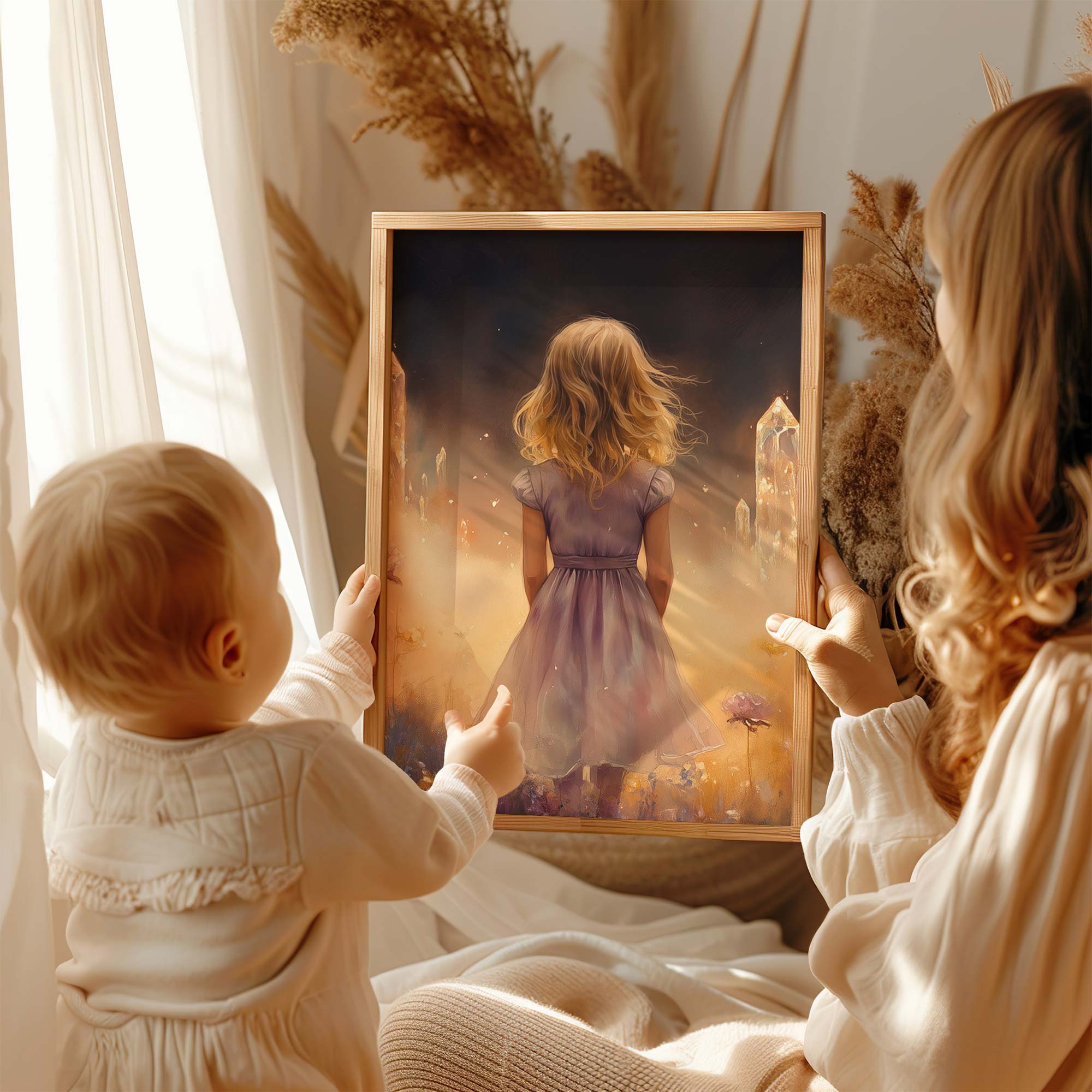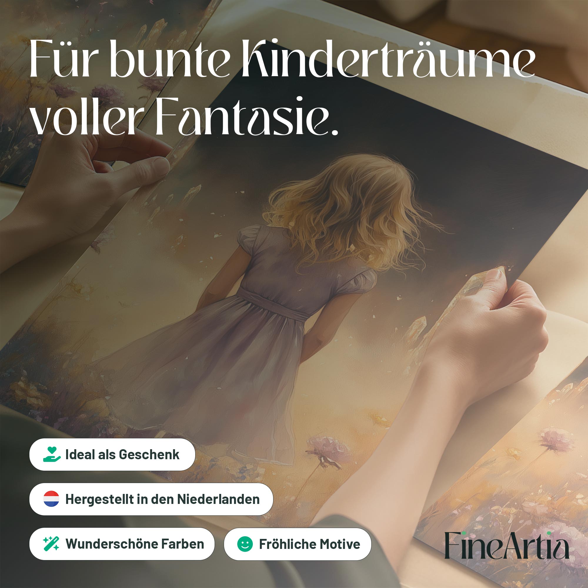 Dromerig Meisje in Bloeiend Landschap – Pastel Schilderij