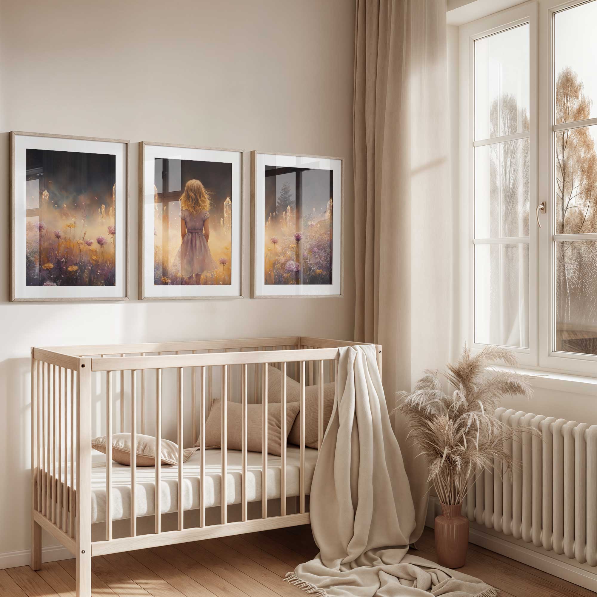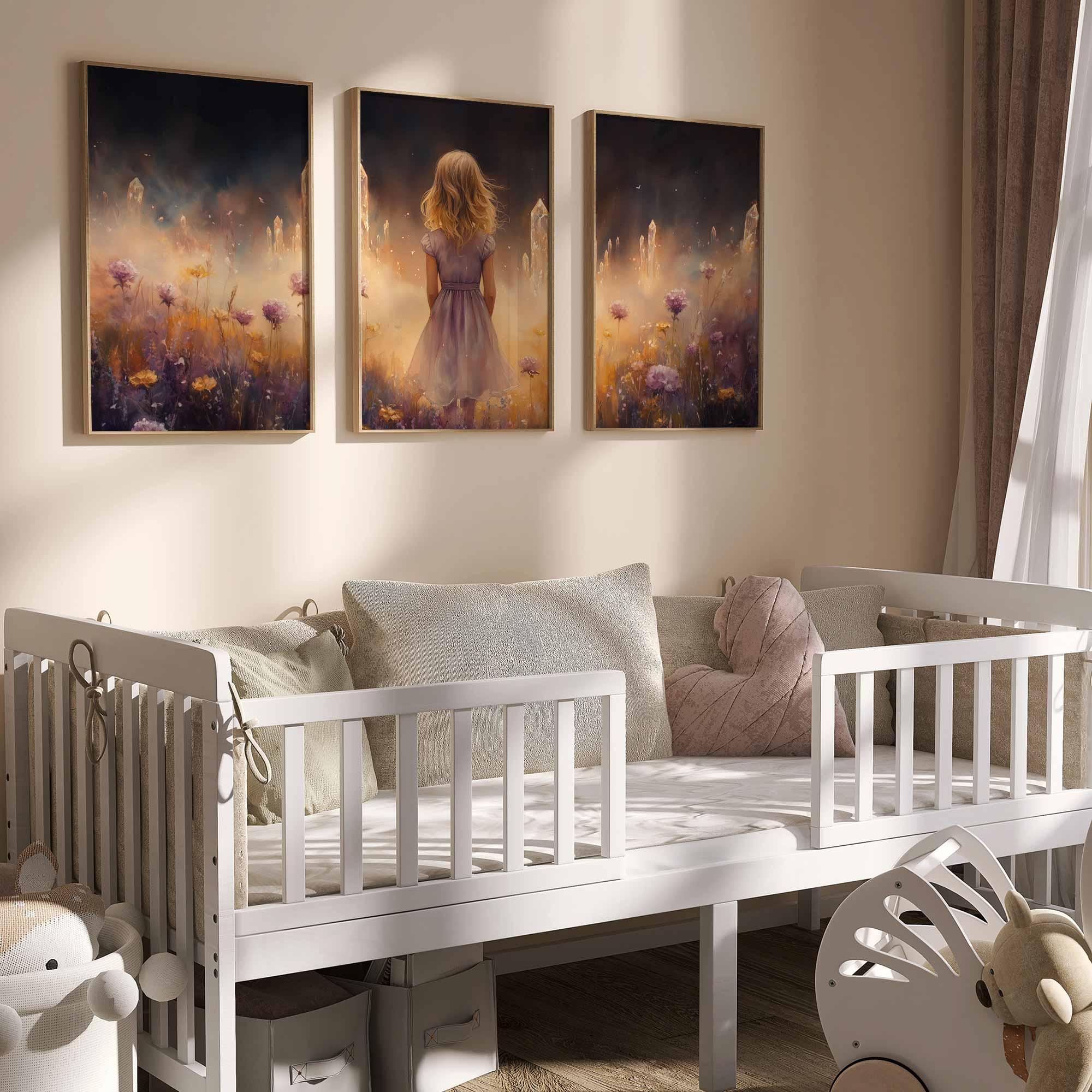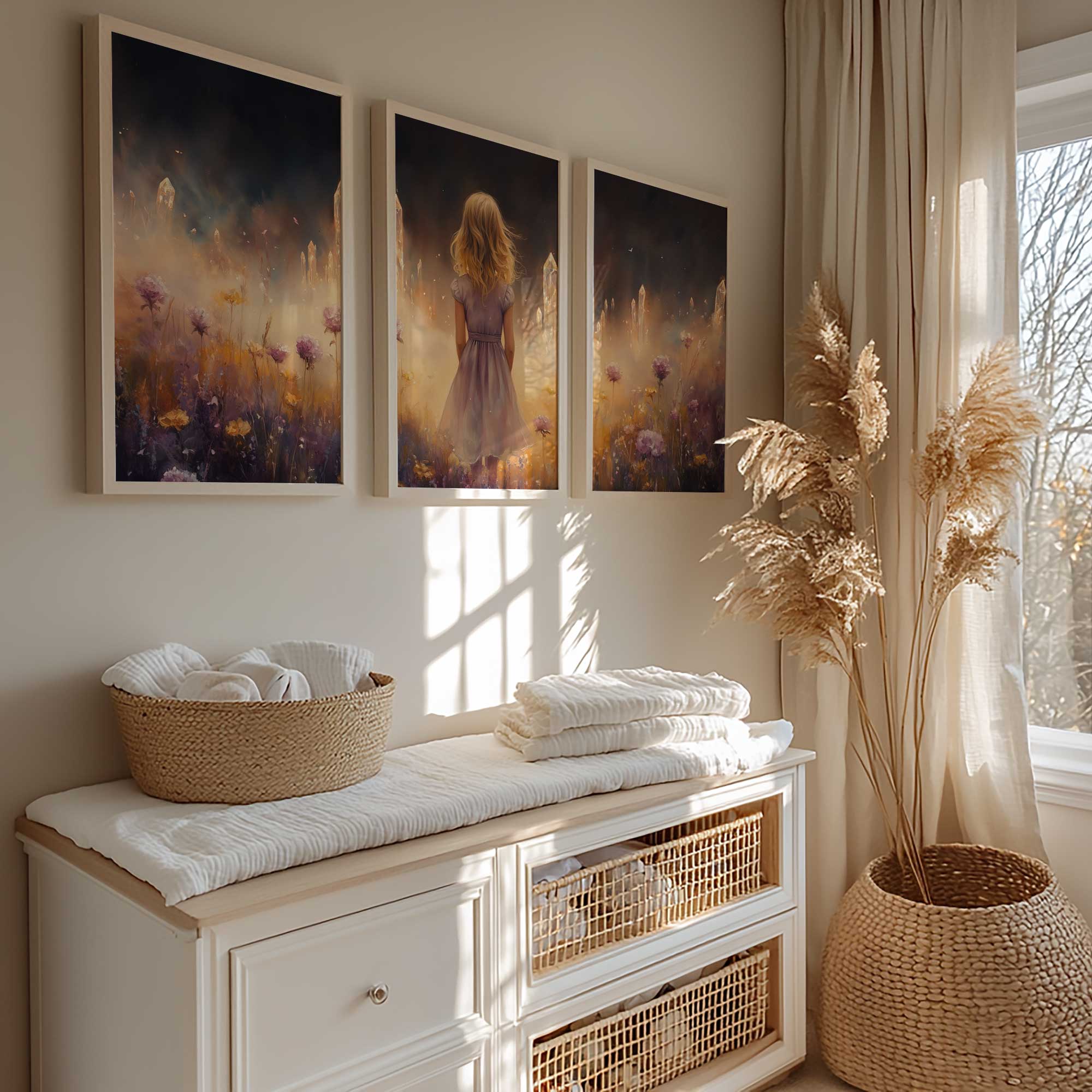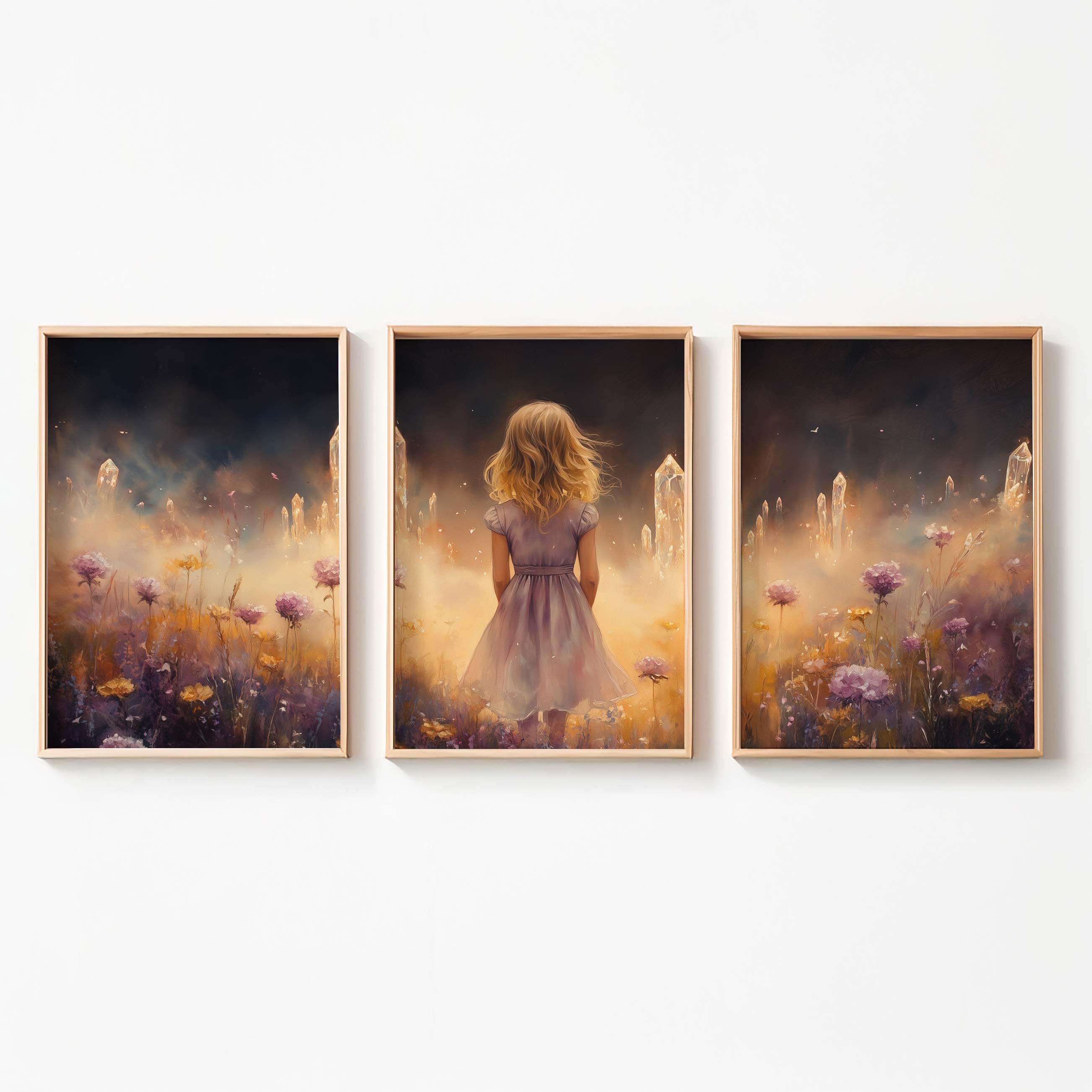 Dromerig Meisje in Bloeiend Landschap – Pastel Schilderij