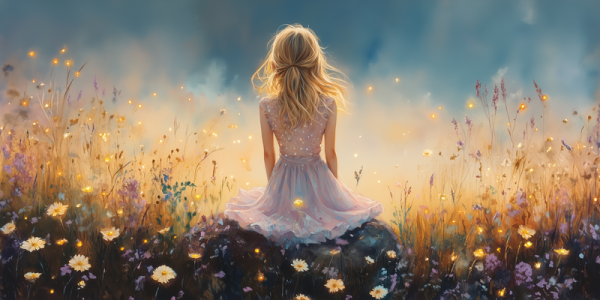 Dromerig Meisje in Bloemenveld