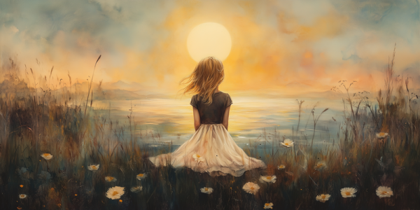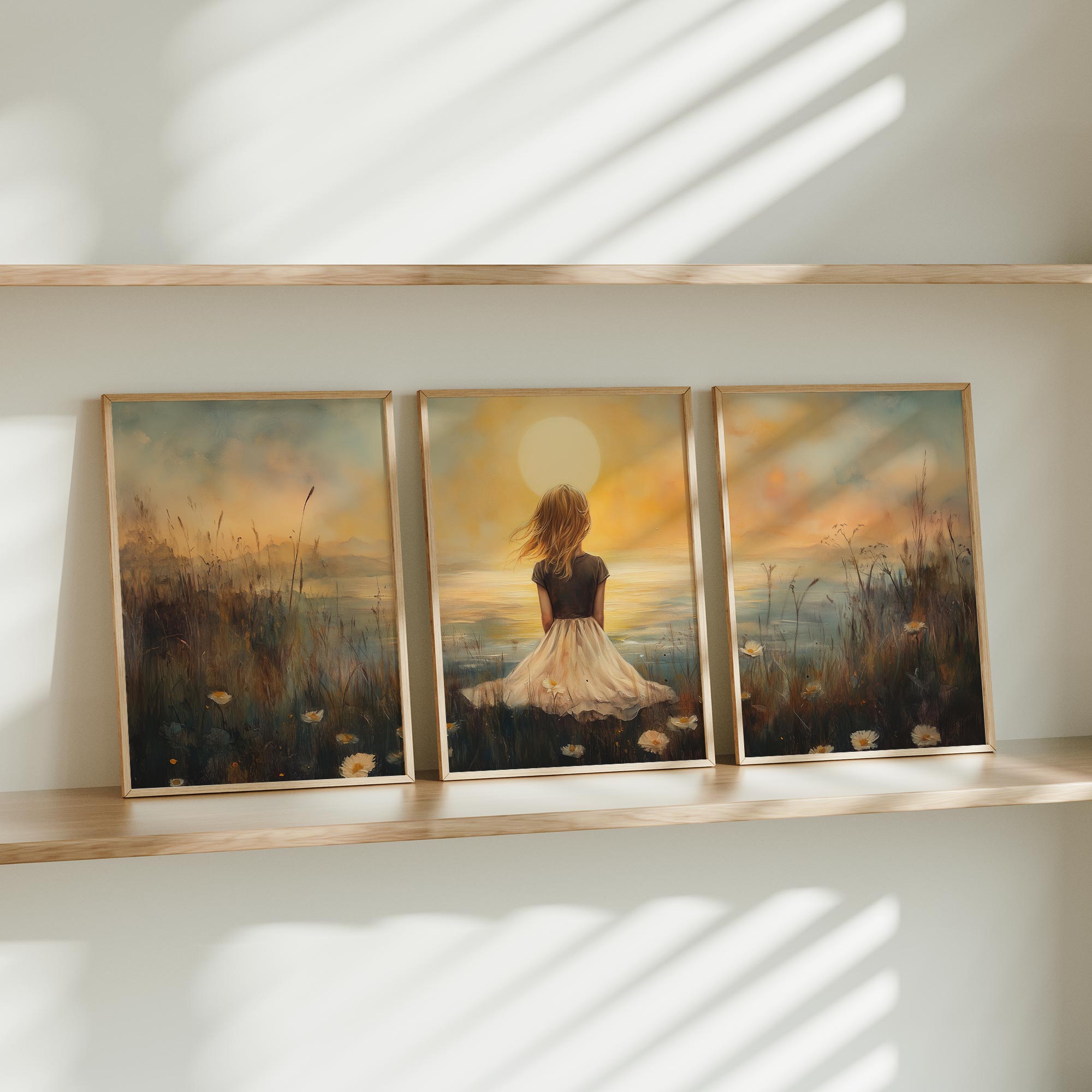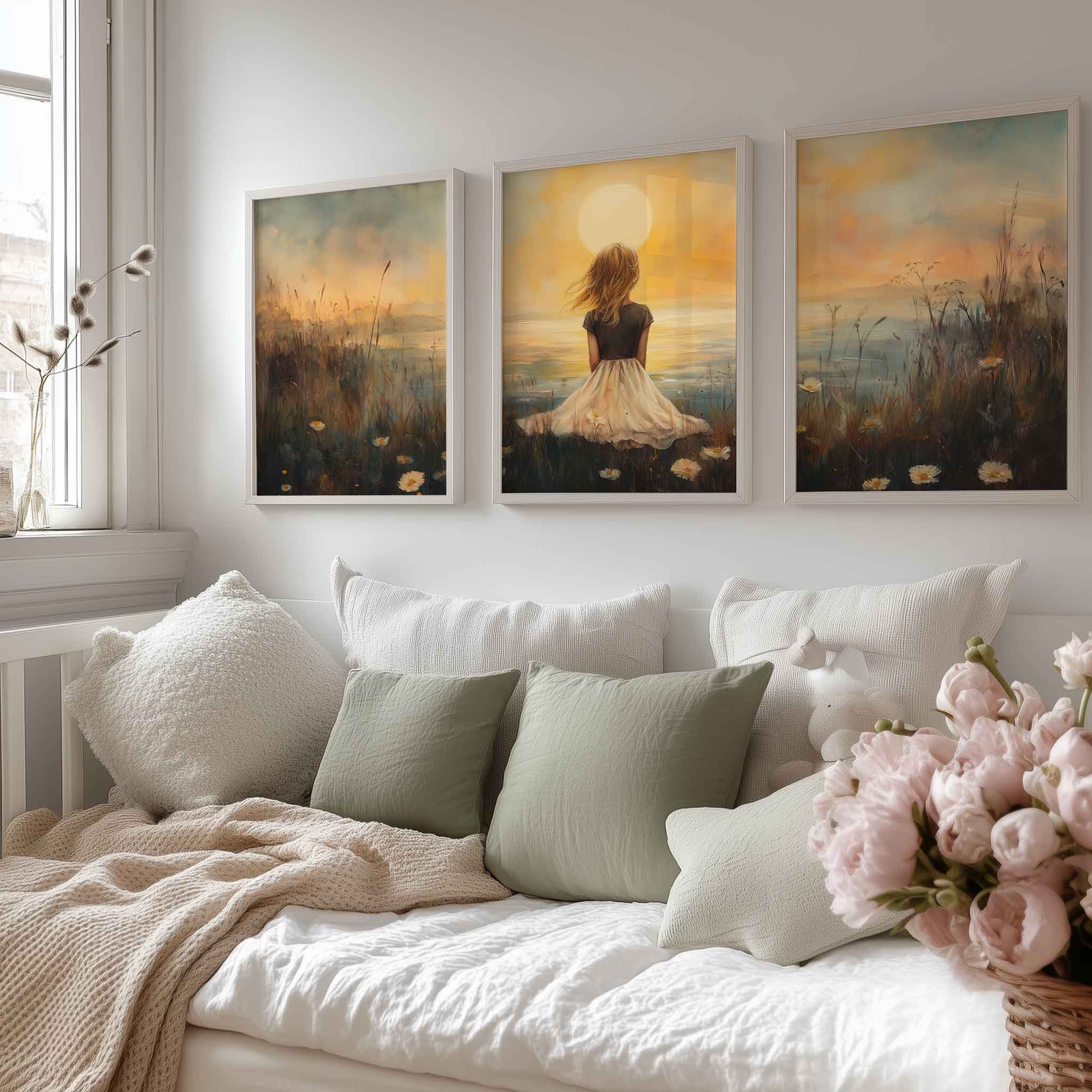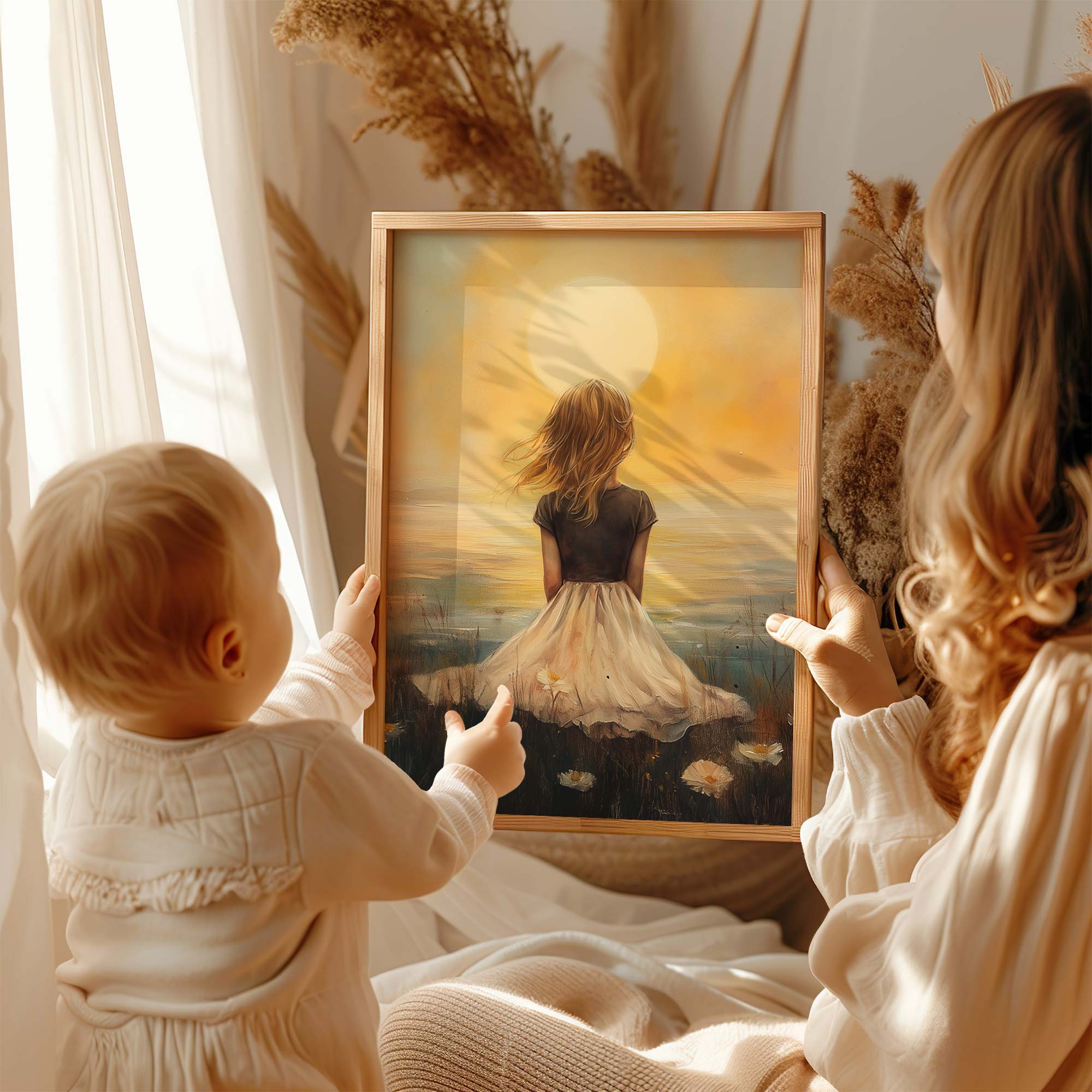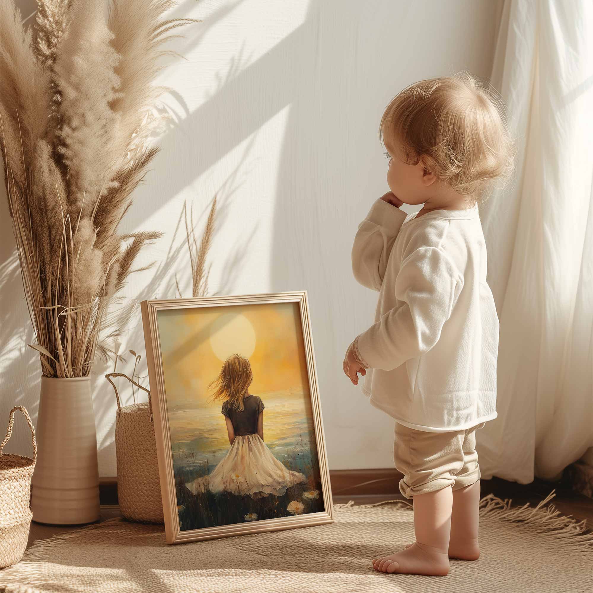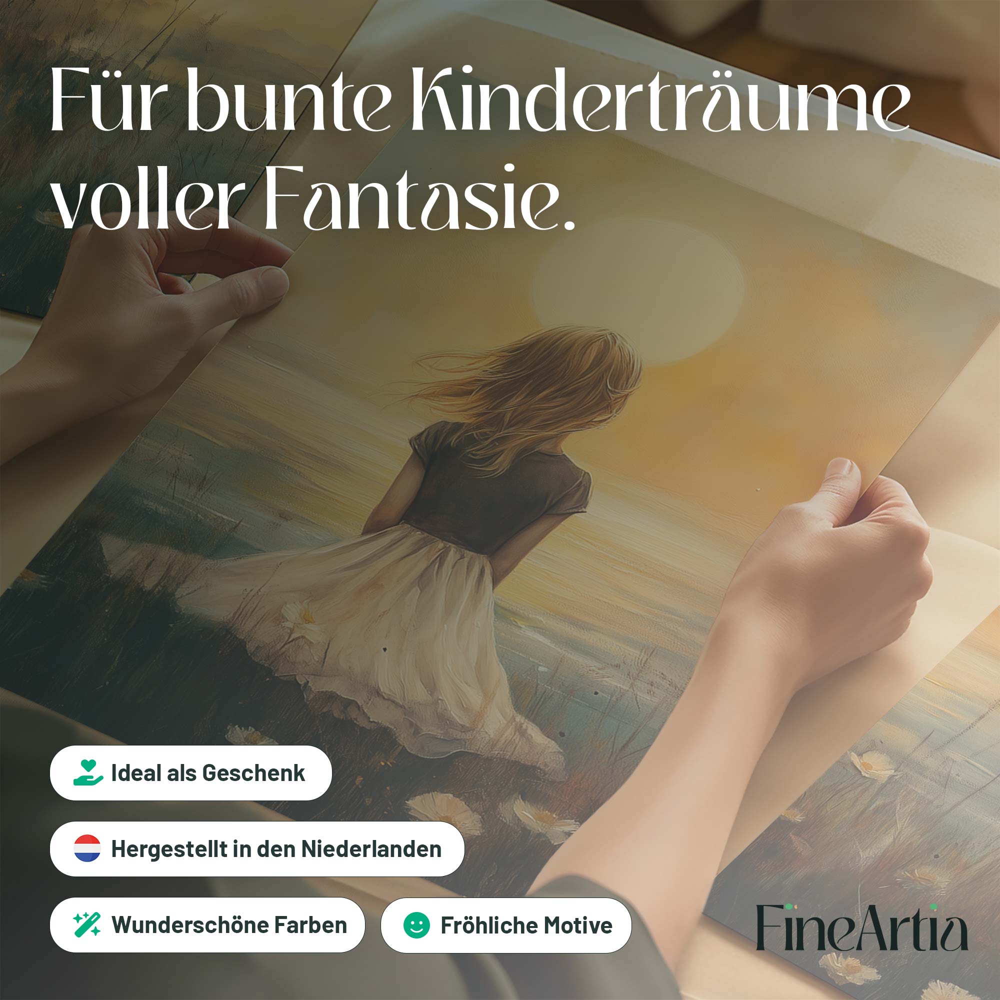 Terug naar collectie Posters Dromerig Meisje in Bloemenveld aan Zee
