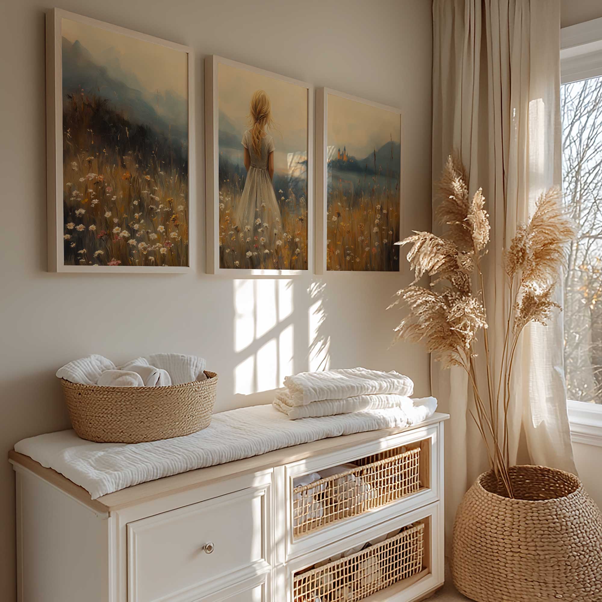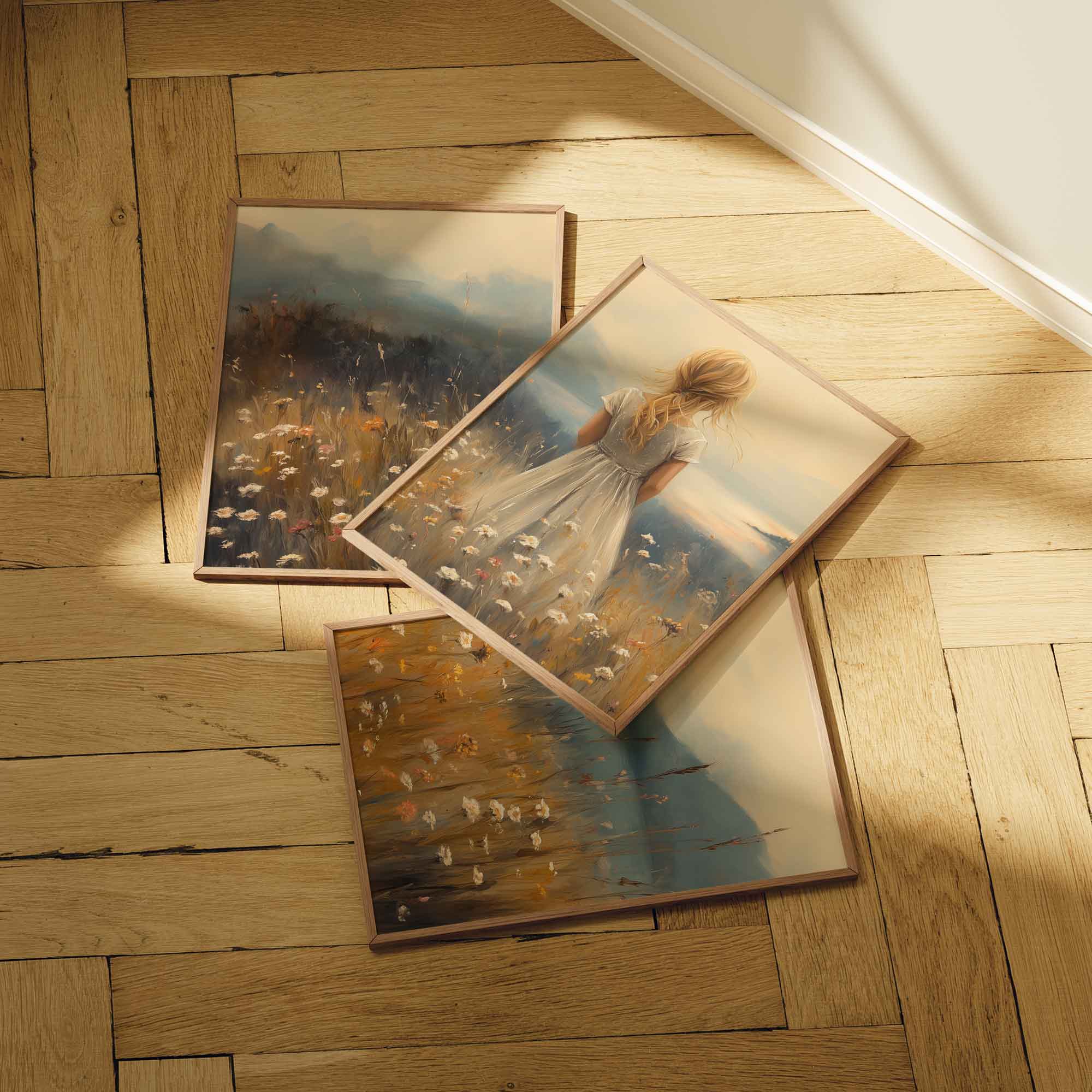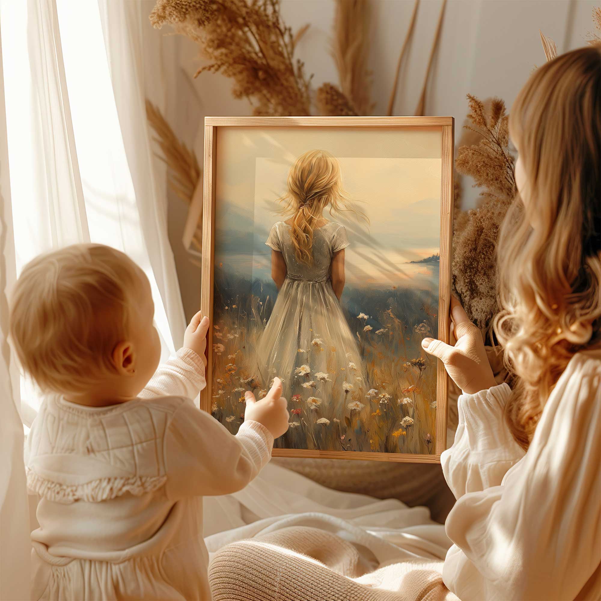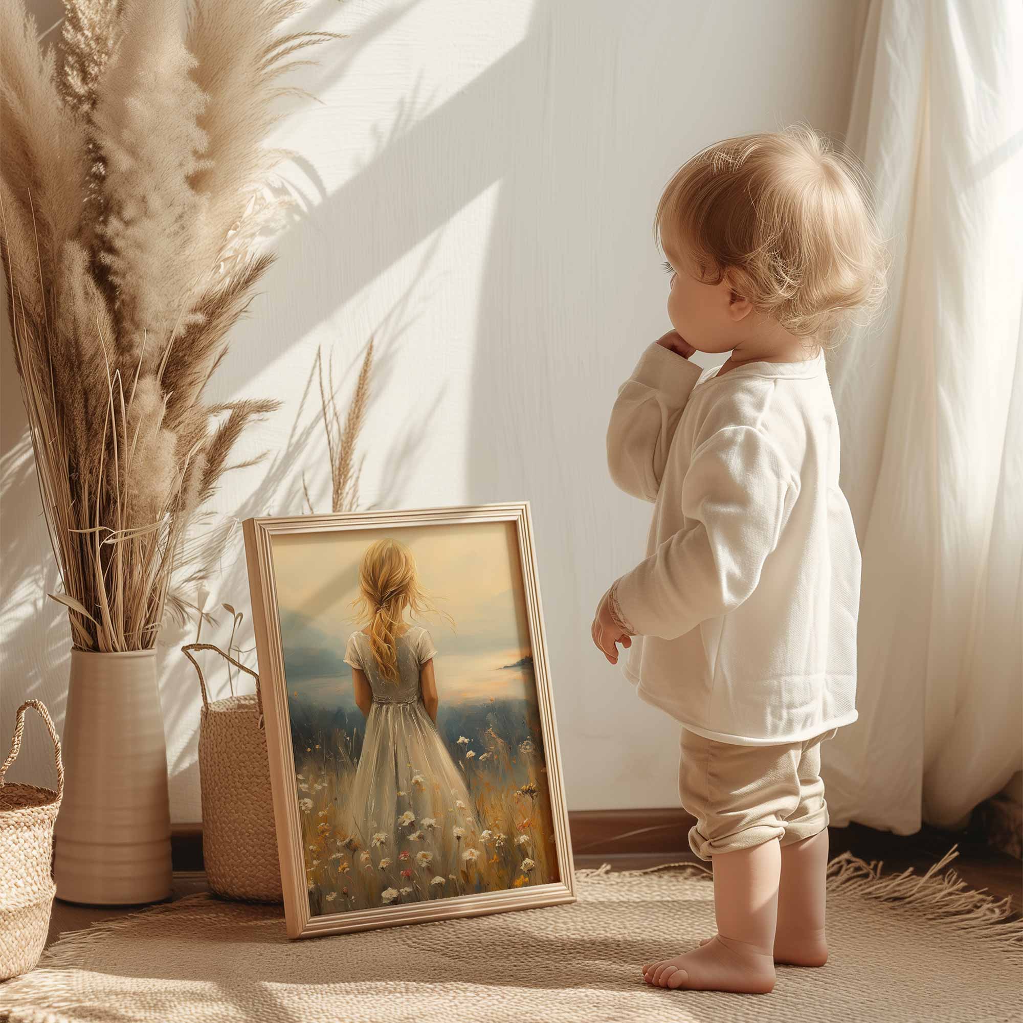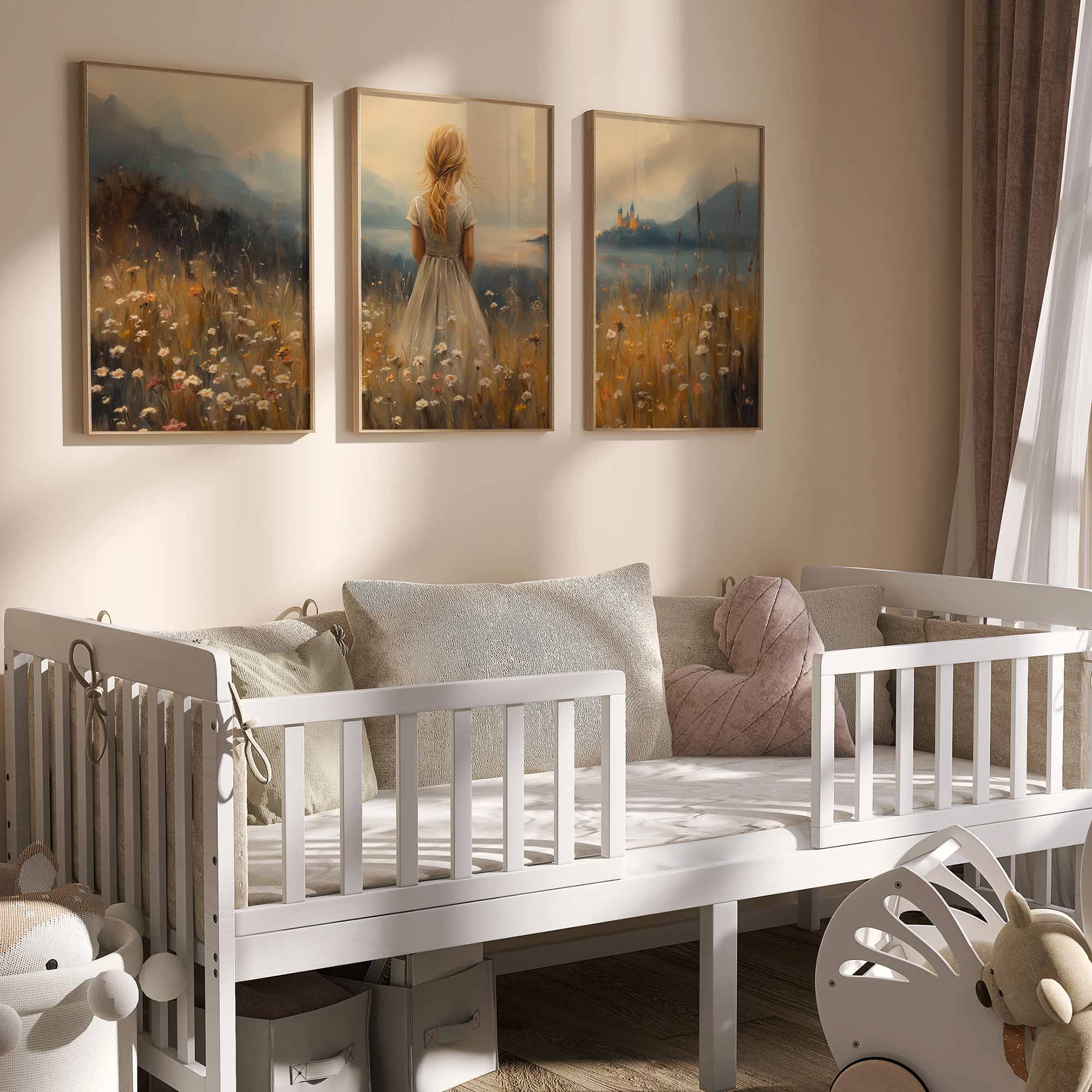 Dromerig Meisje in Bloemenveld bij Betoverend Kasteel