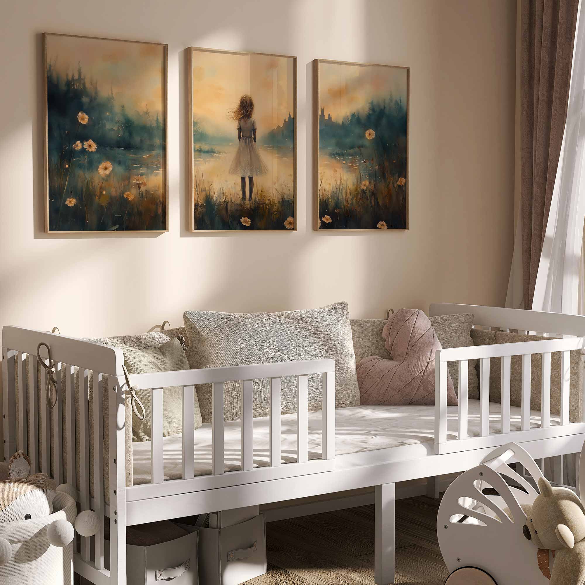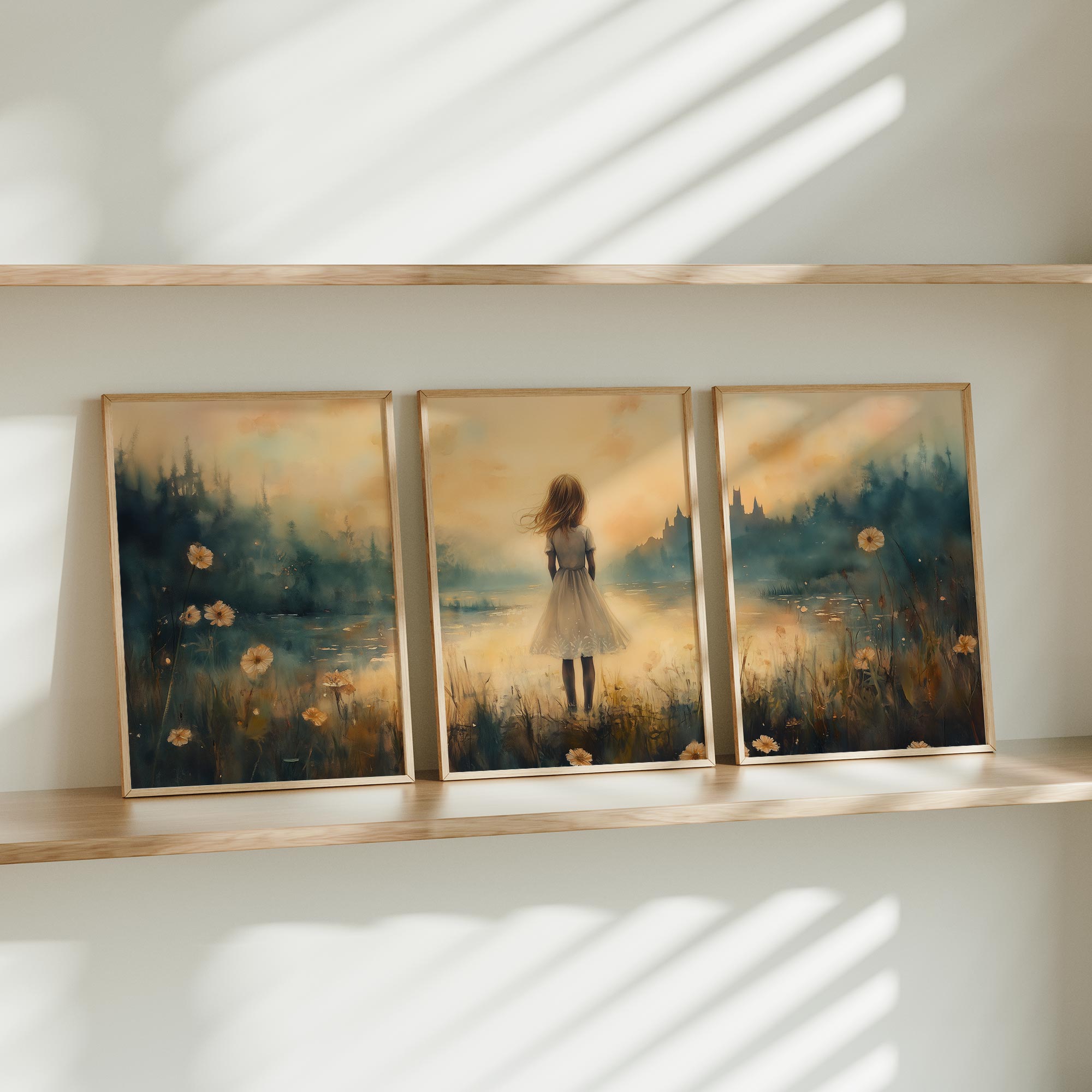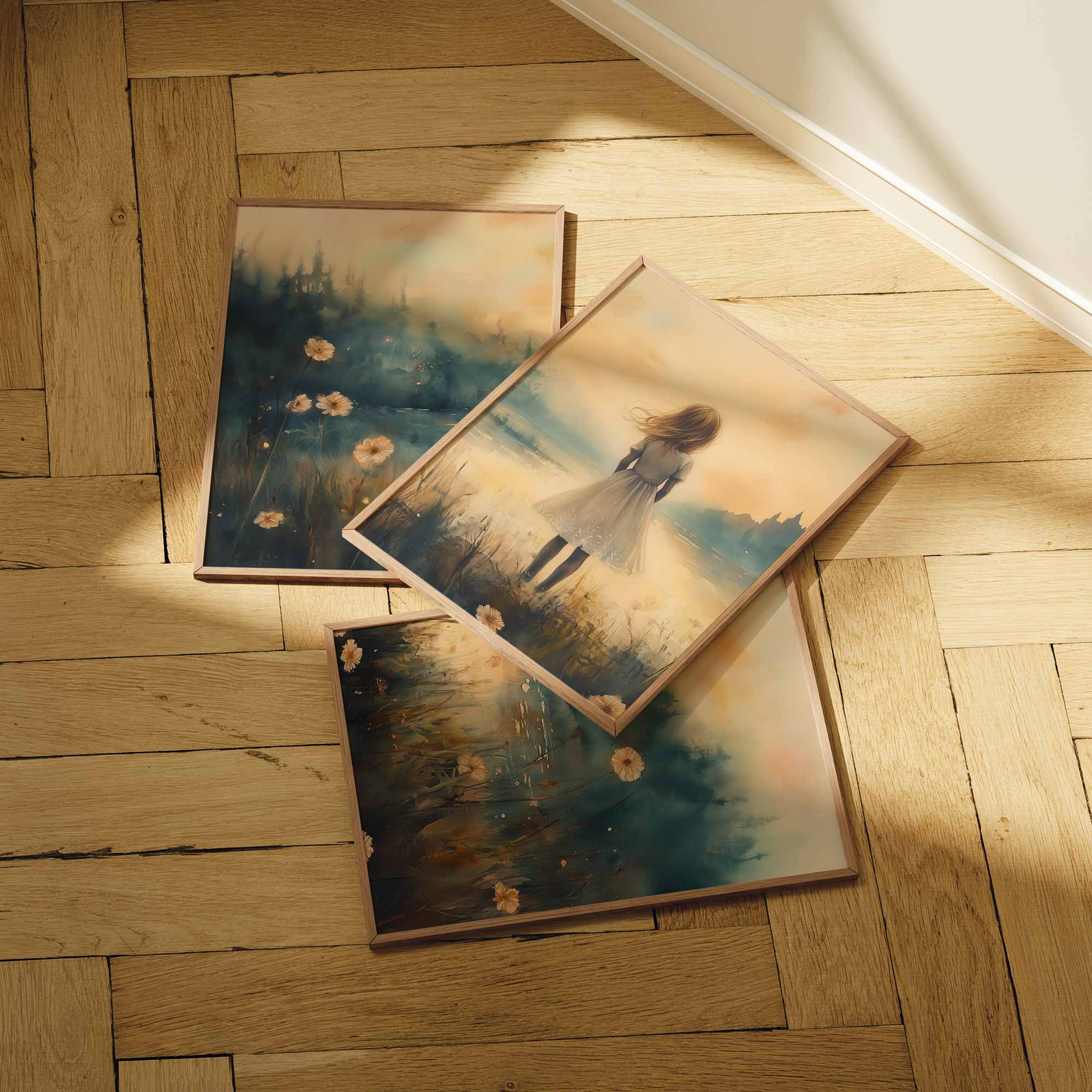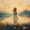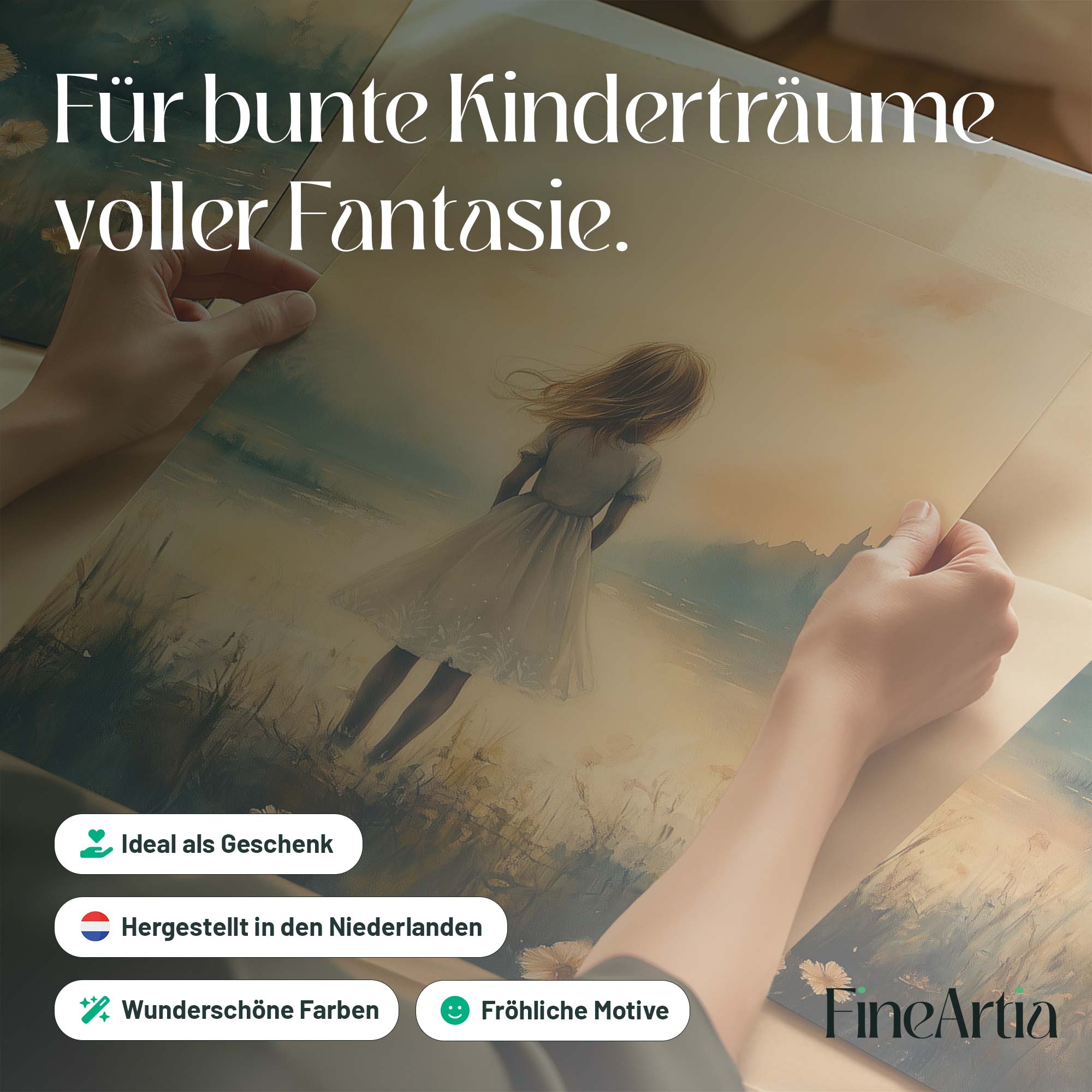 Terug naar collectie Posters Dromerig Meisje in Bloemenveld bij Kasteel
