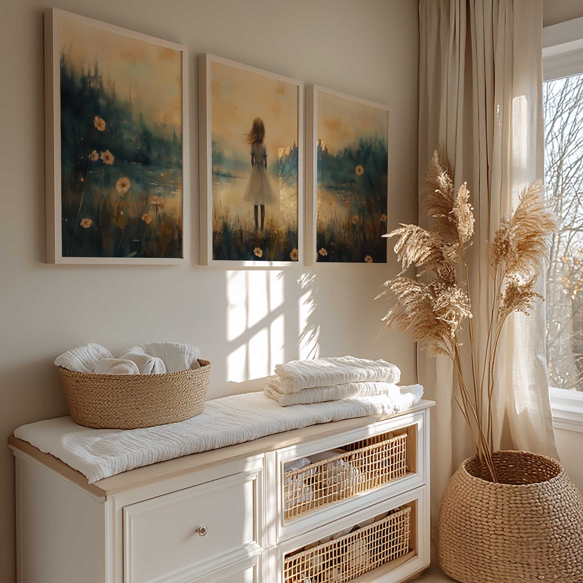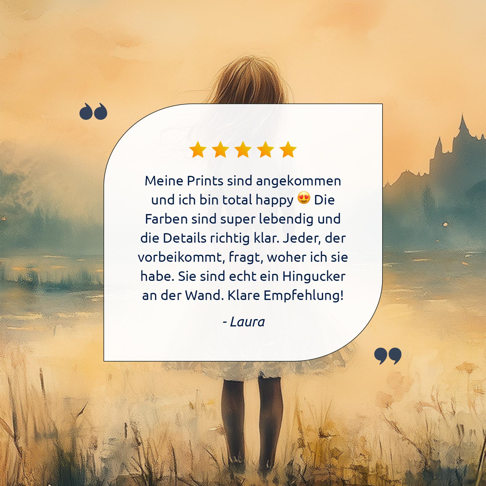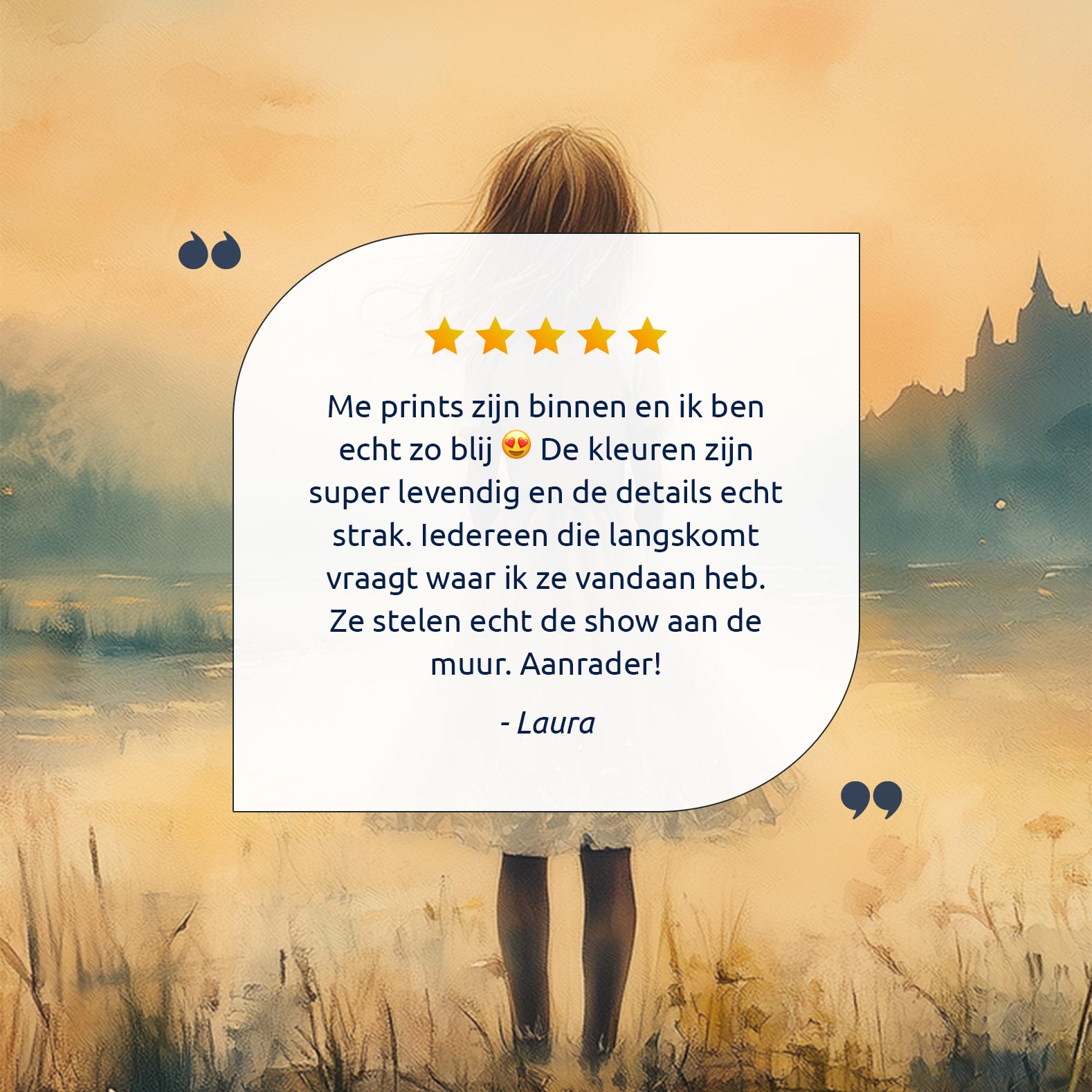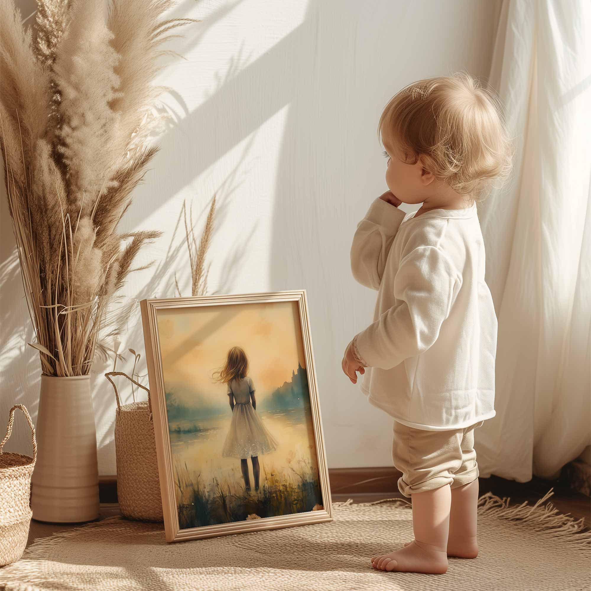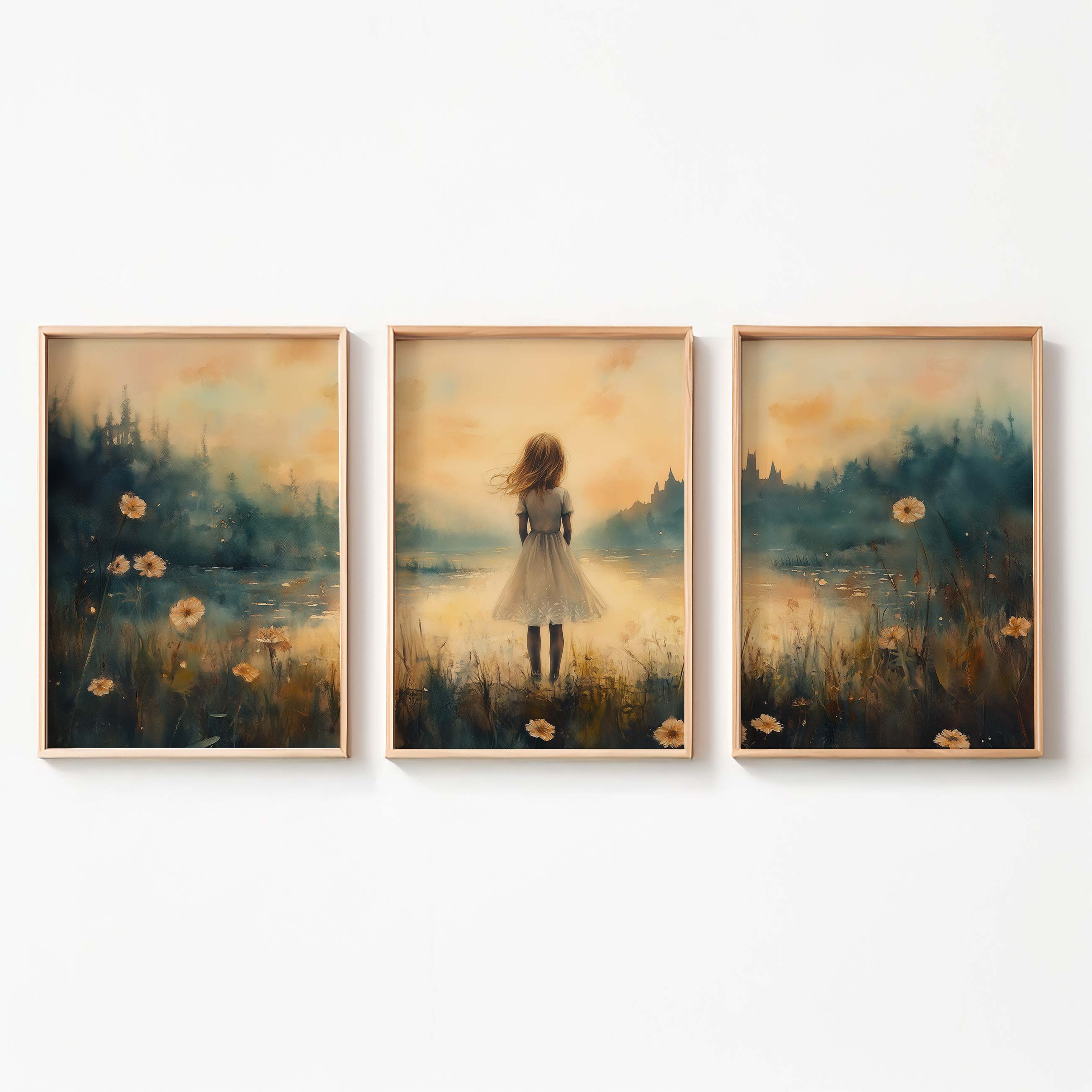 Terug naar collectie Posters Dromerig Meisje in Bloemenveld bij Kasteel