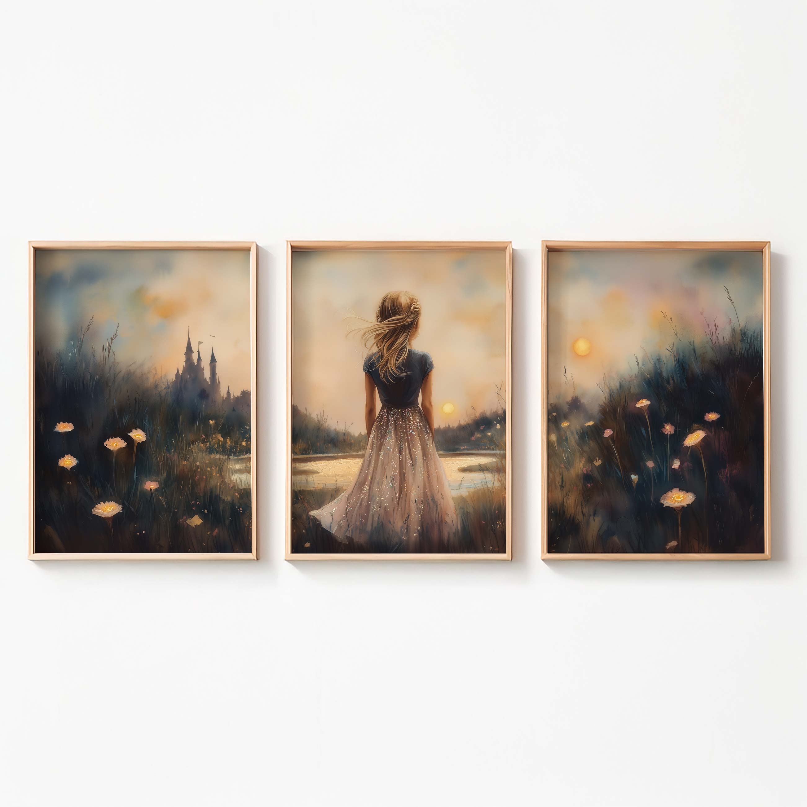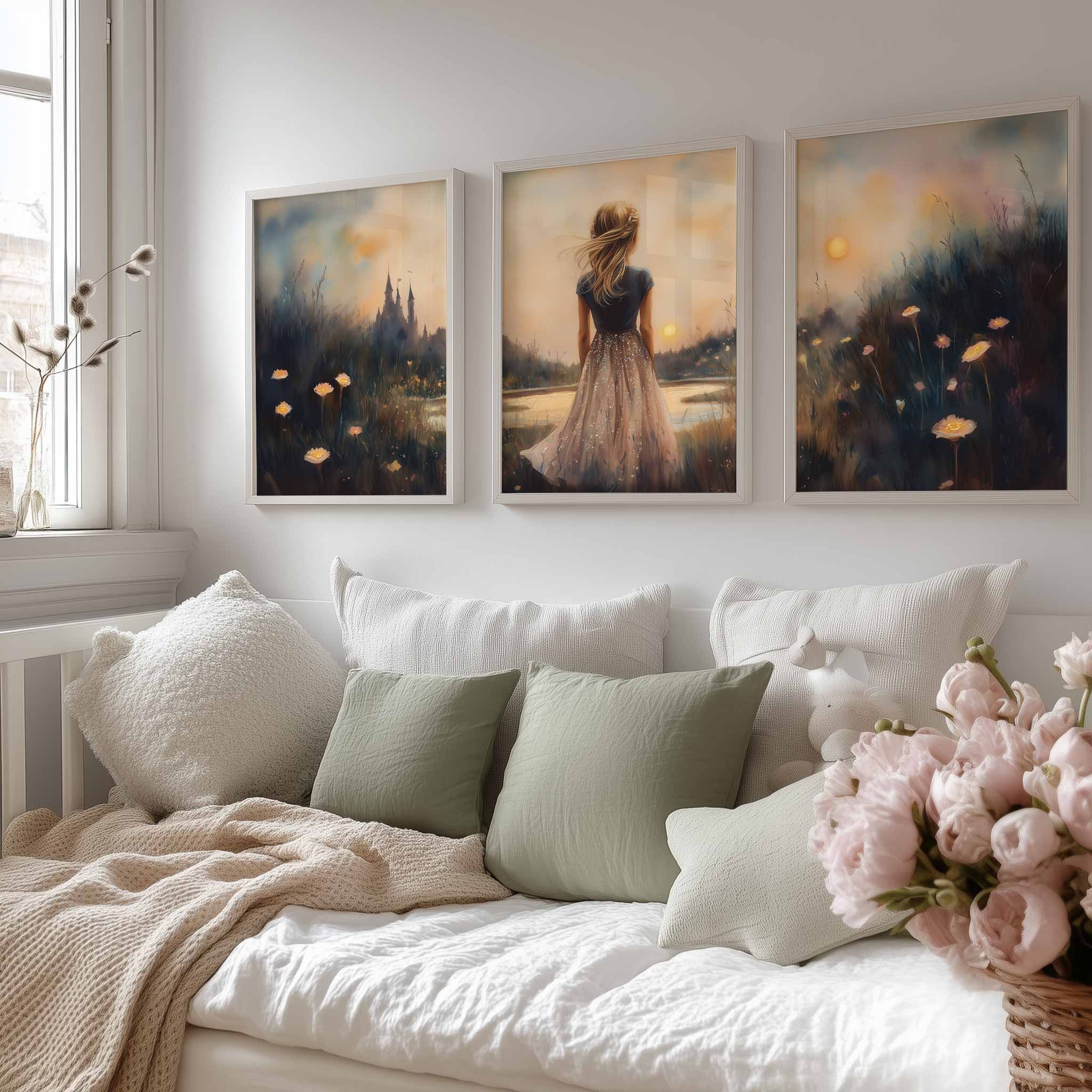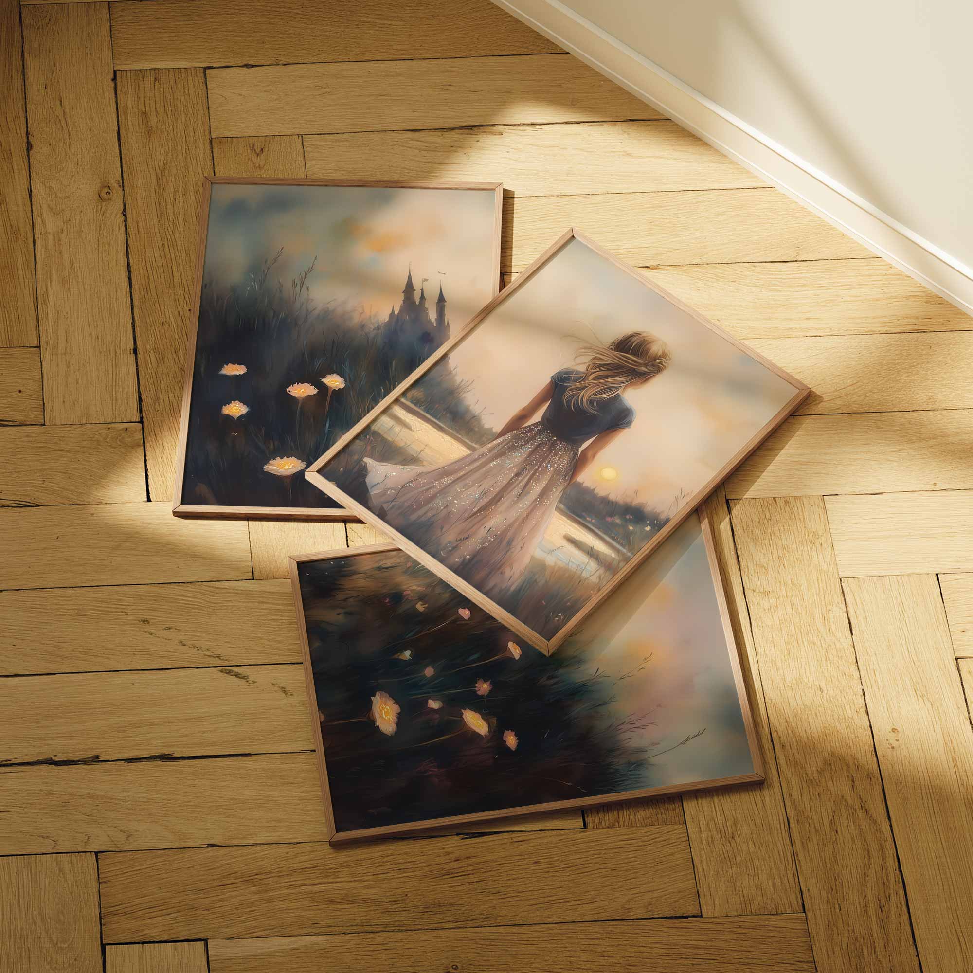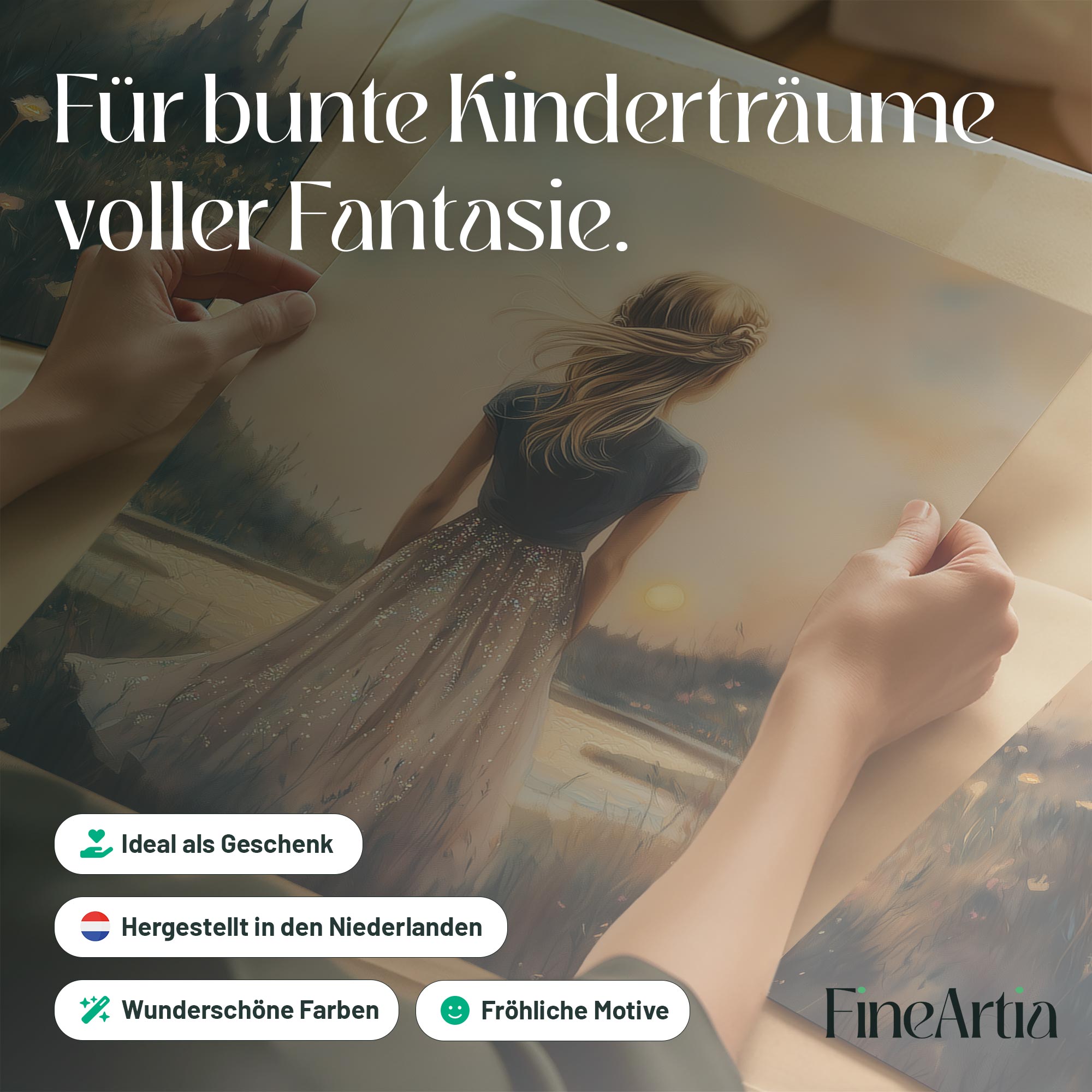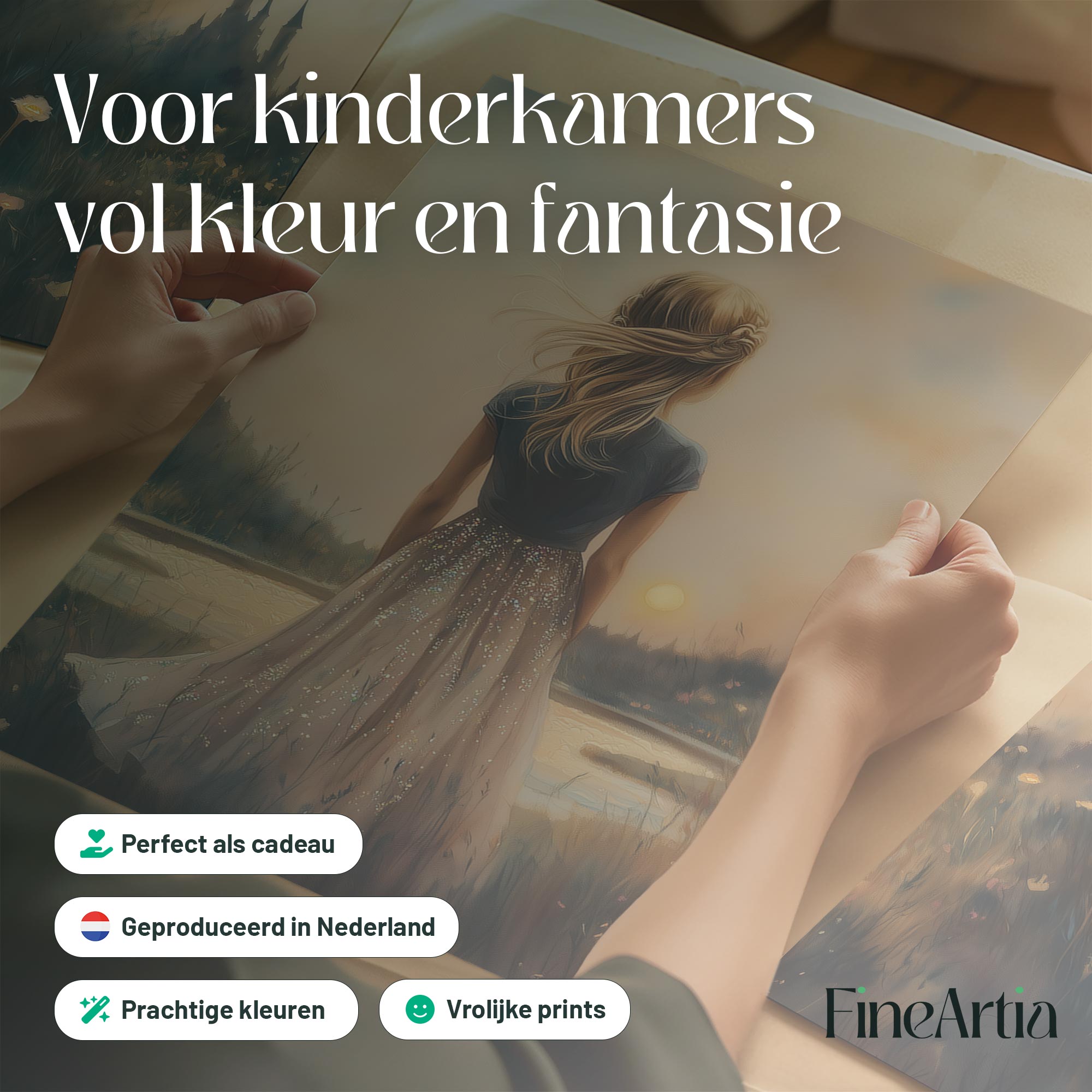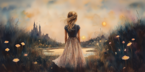 Dromerig Meisje in Bloemenveld bij Kasteel