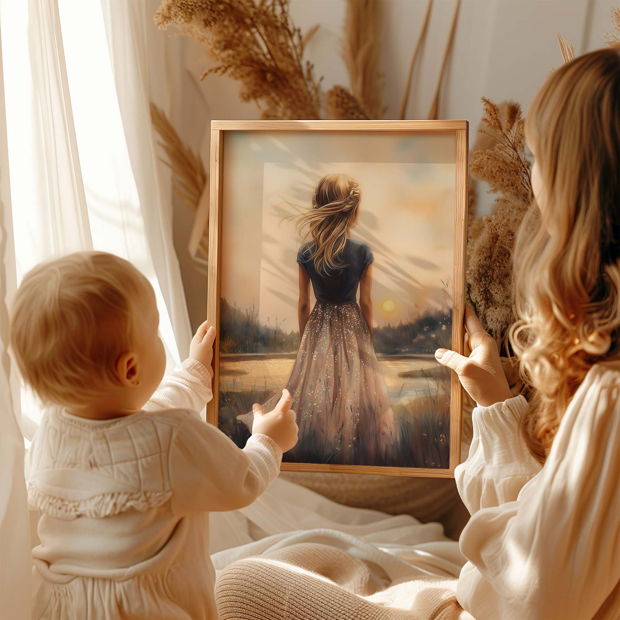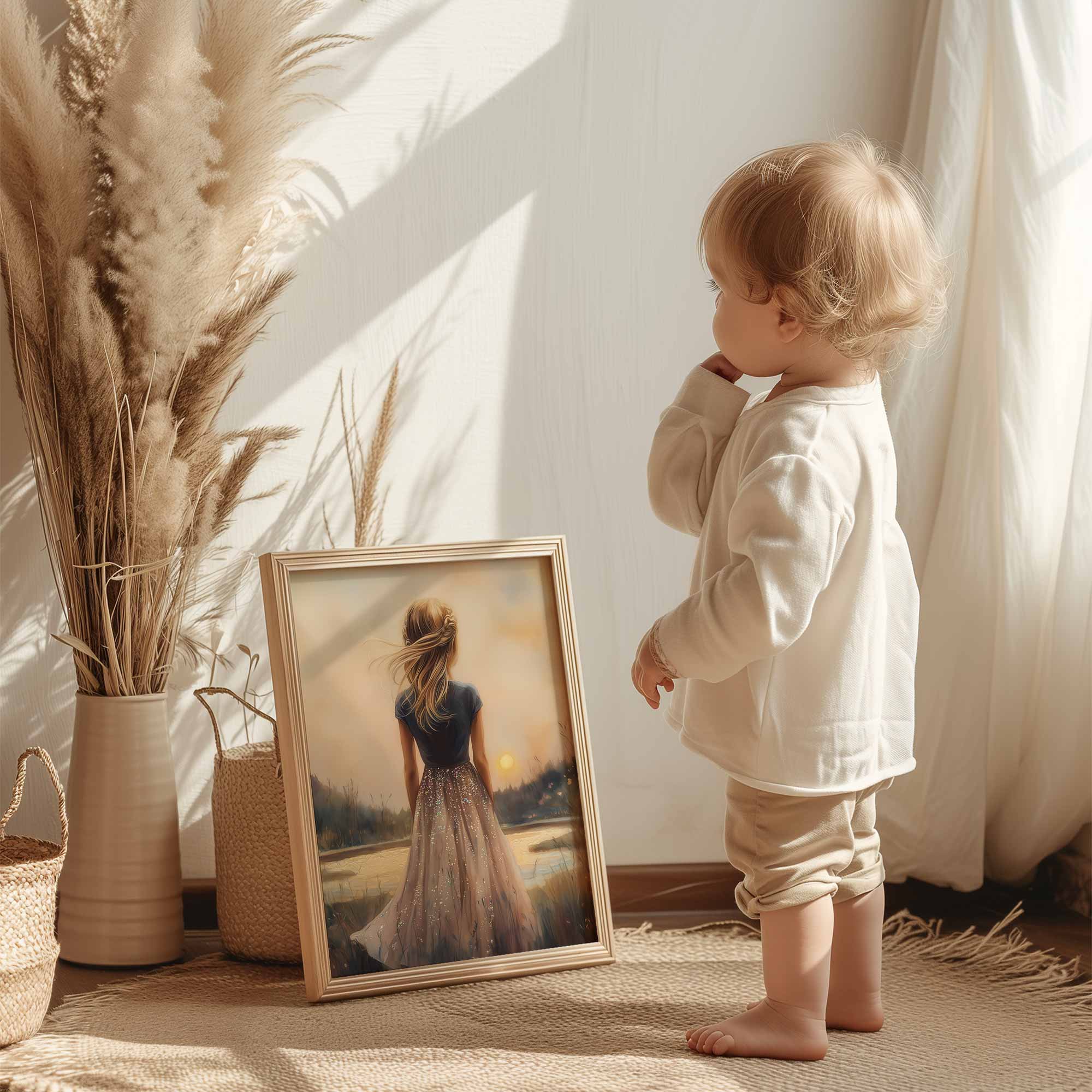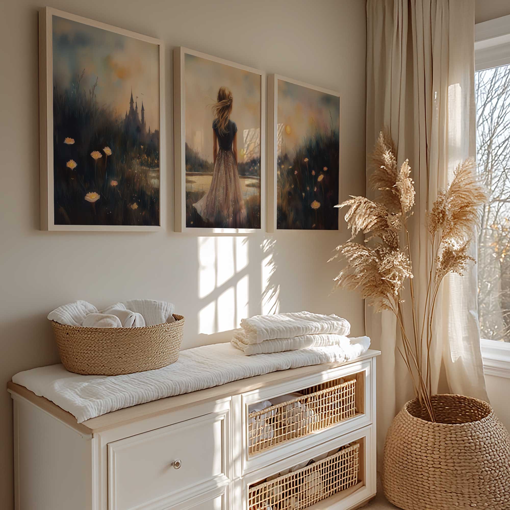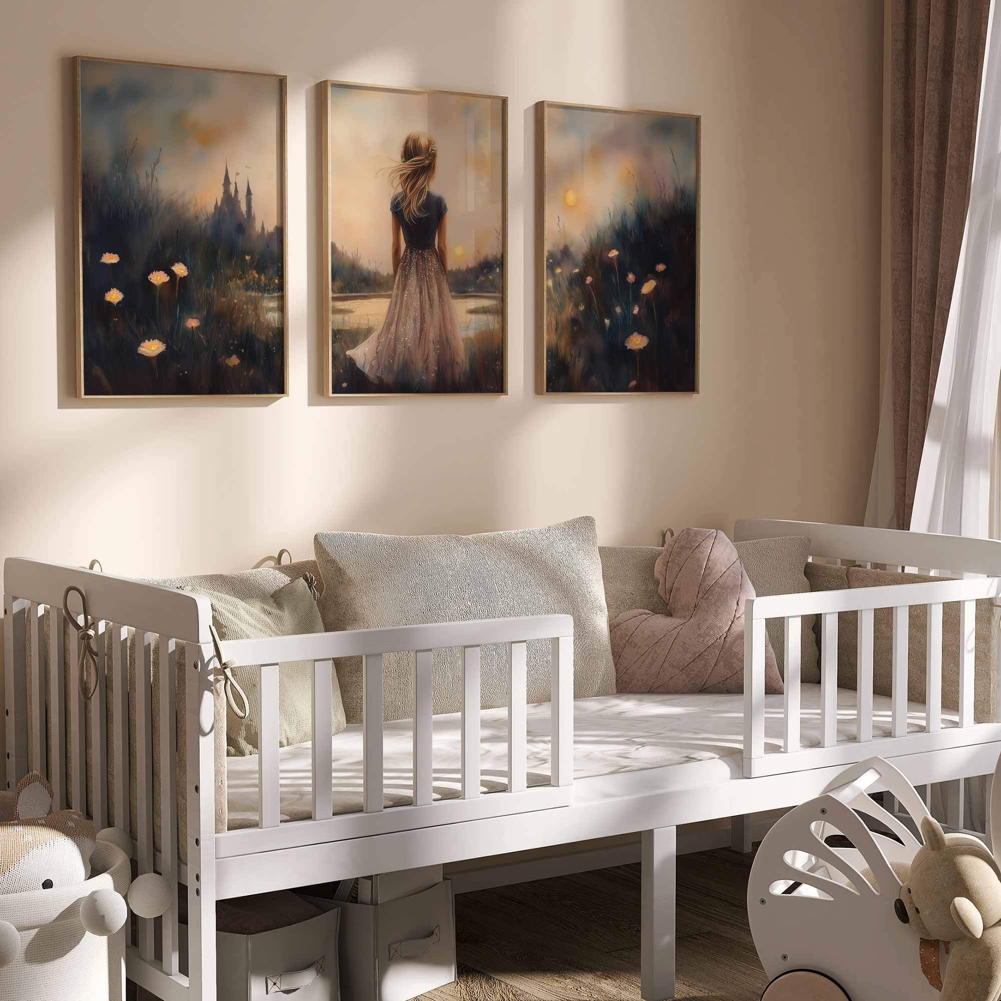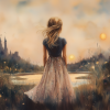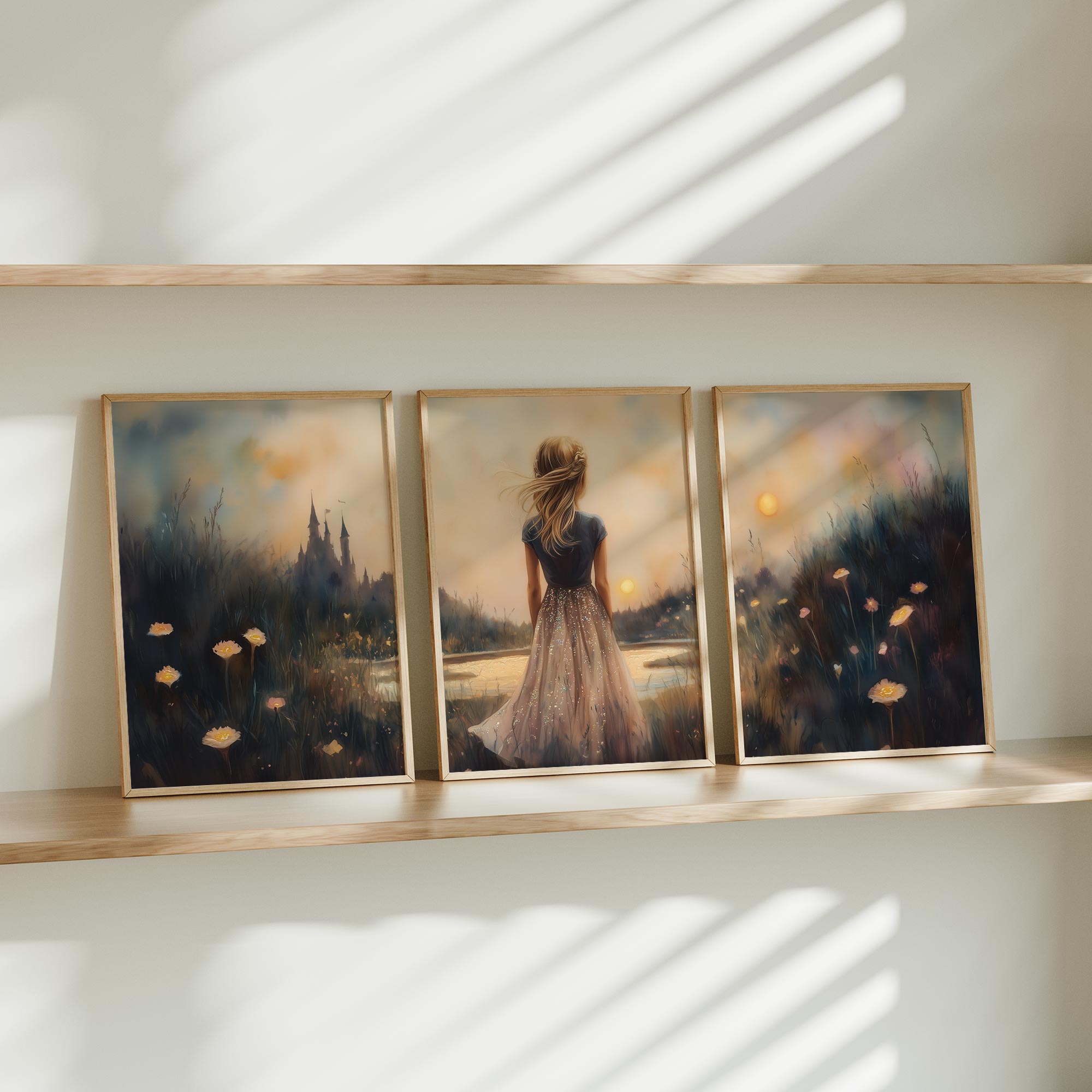 Dromerig Meisje in Bloemenveld bij Kasteel