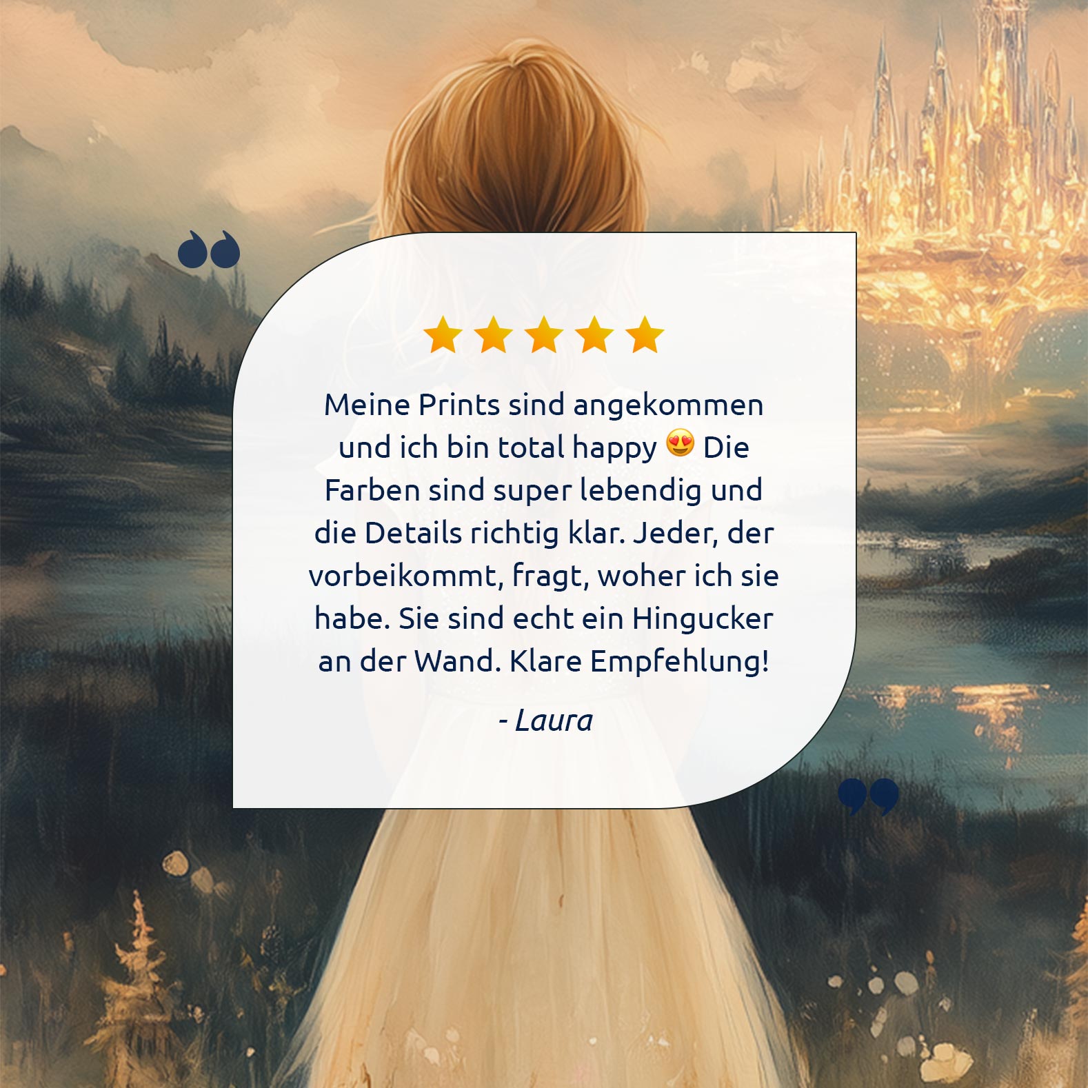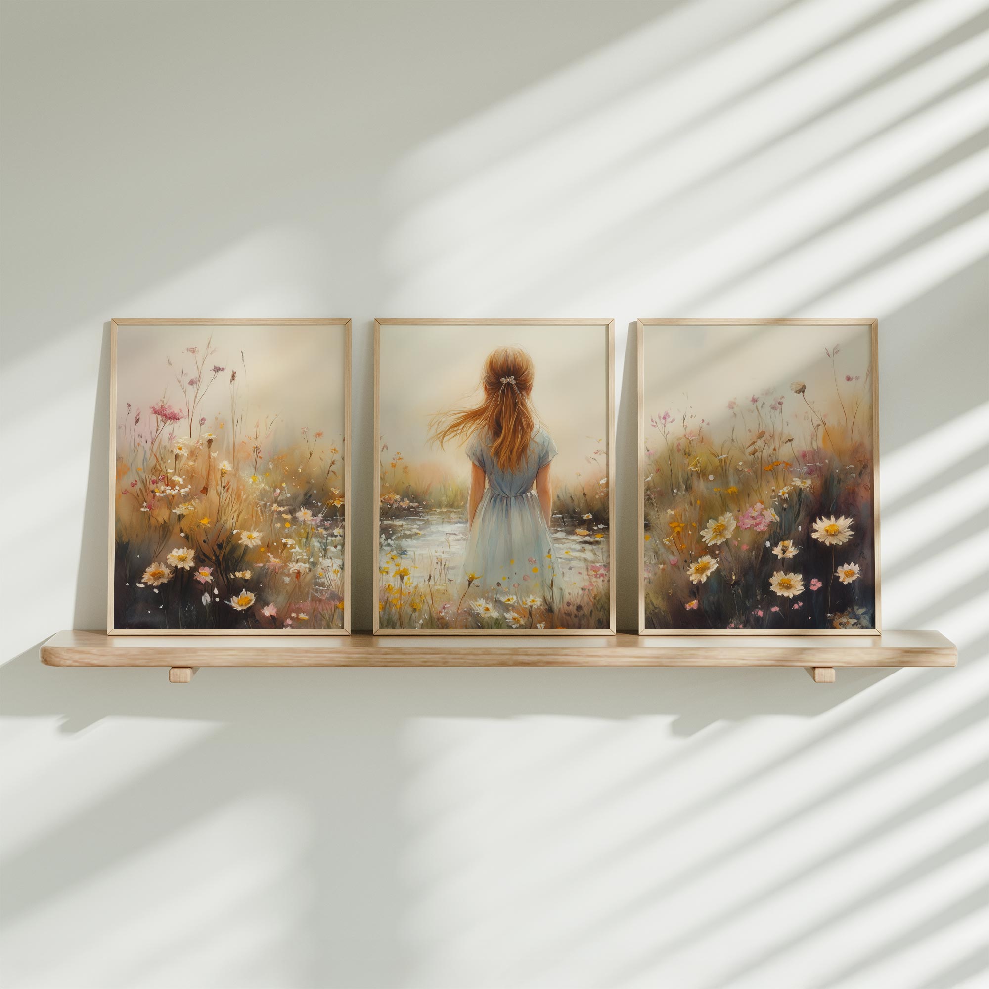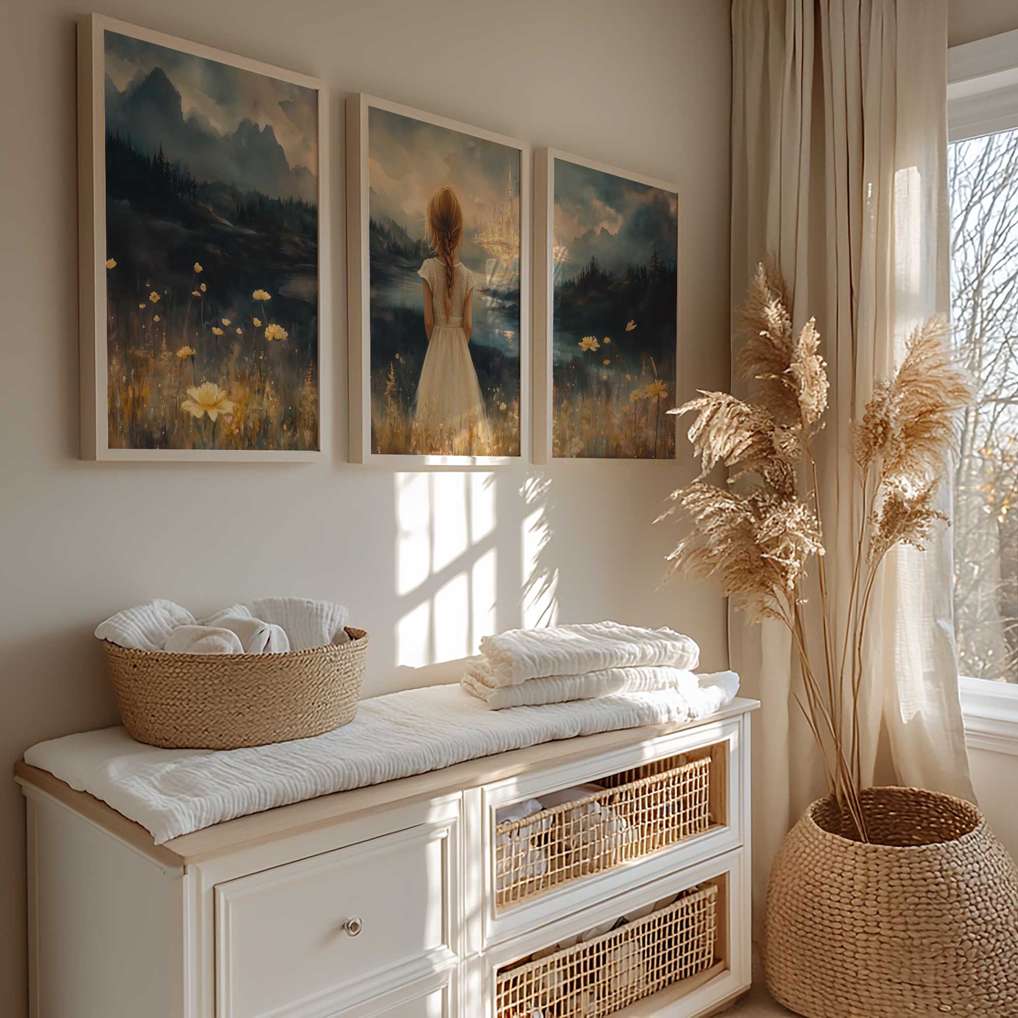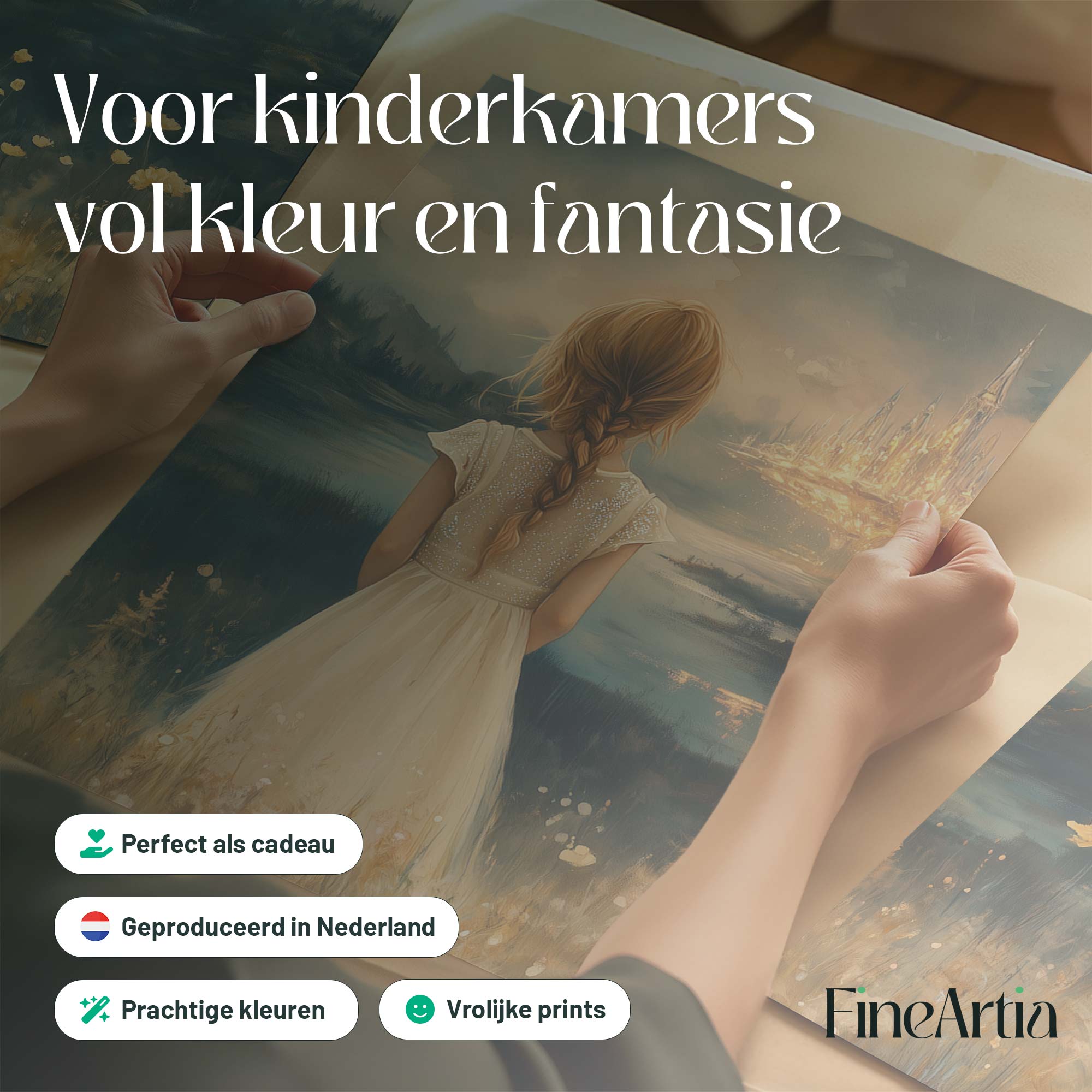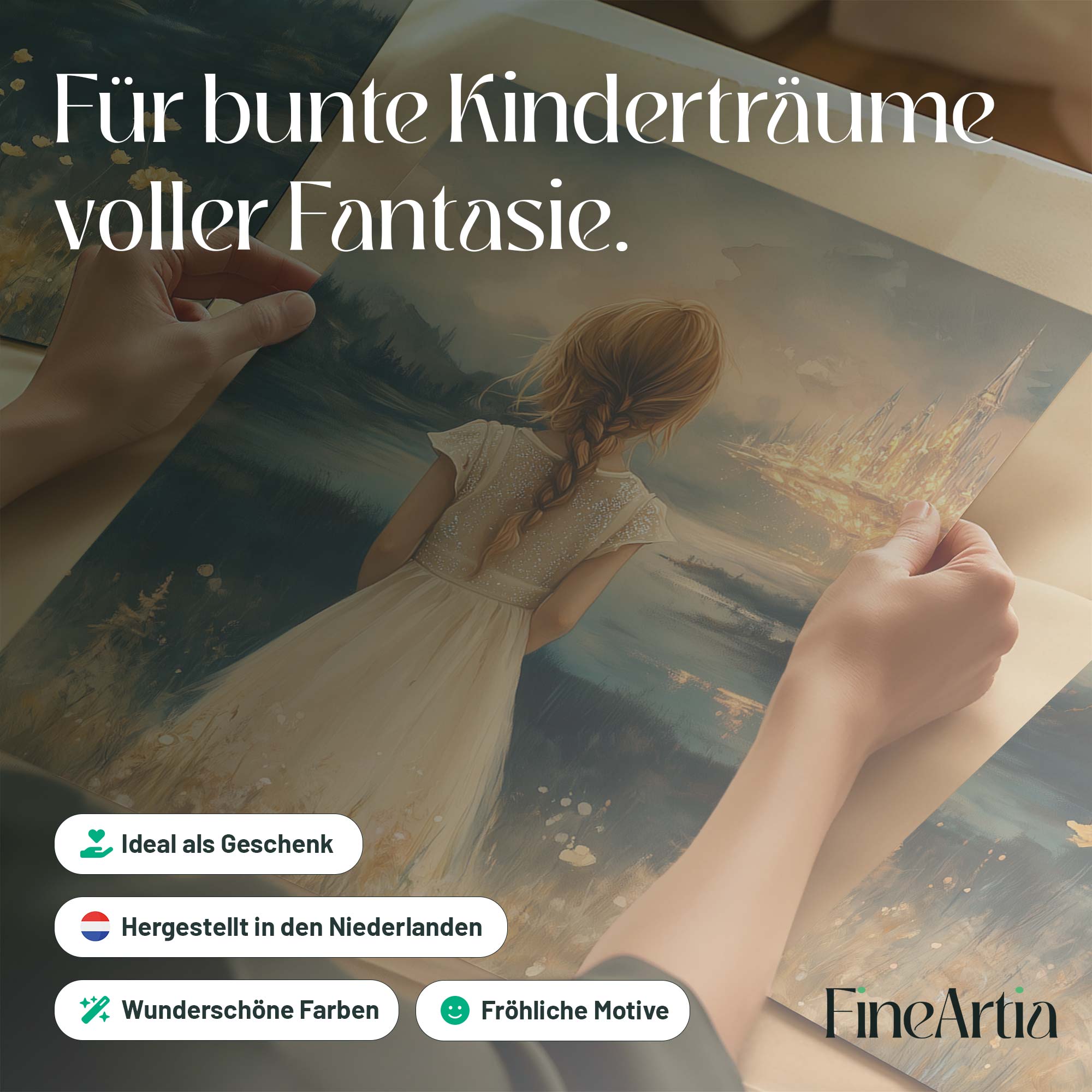 Terug naar collectie Posters Dromerig Meisje in Bloemenveld met Betoverend Kasteel