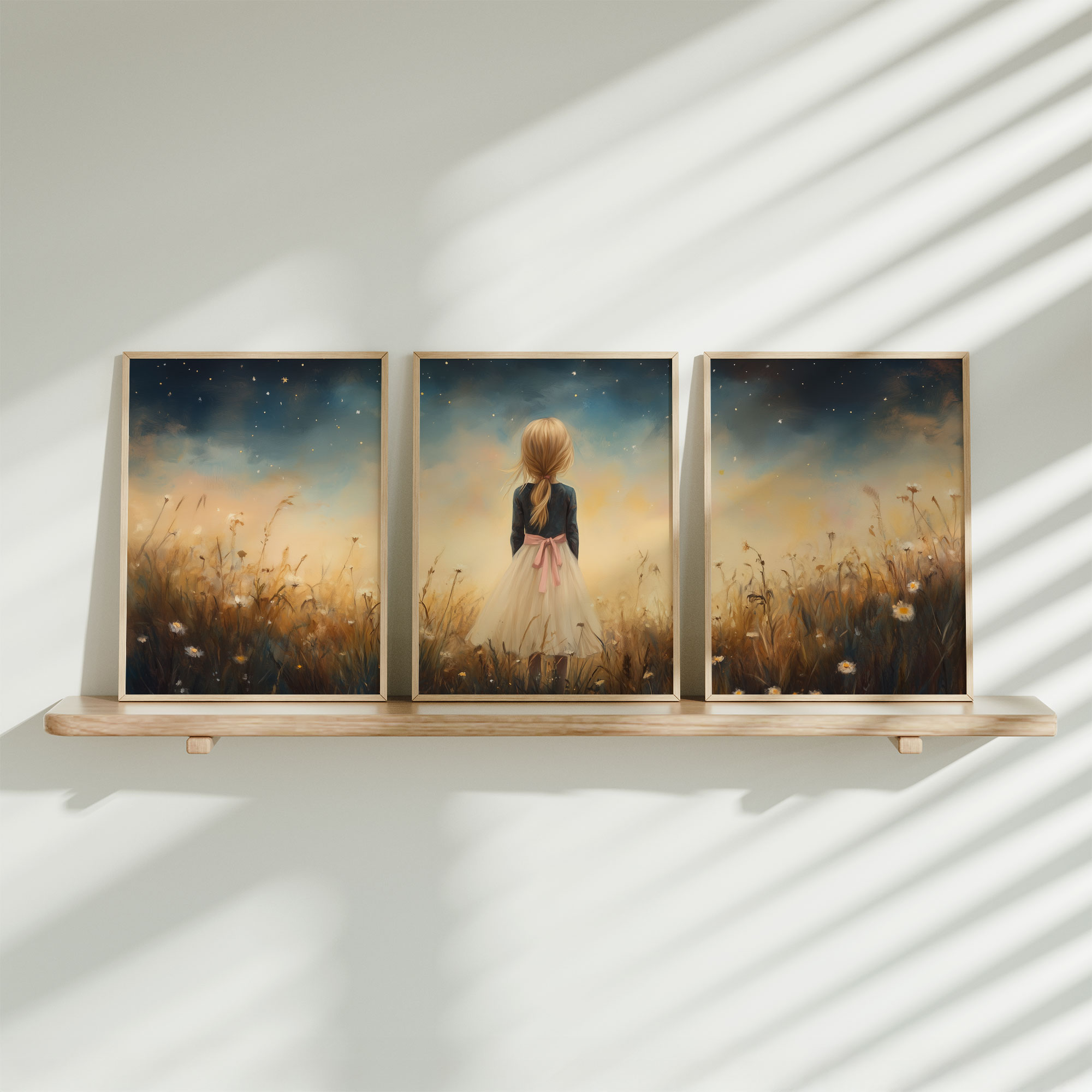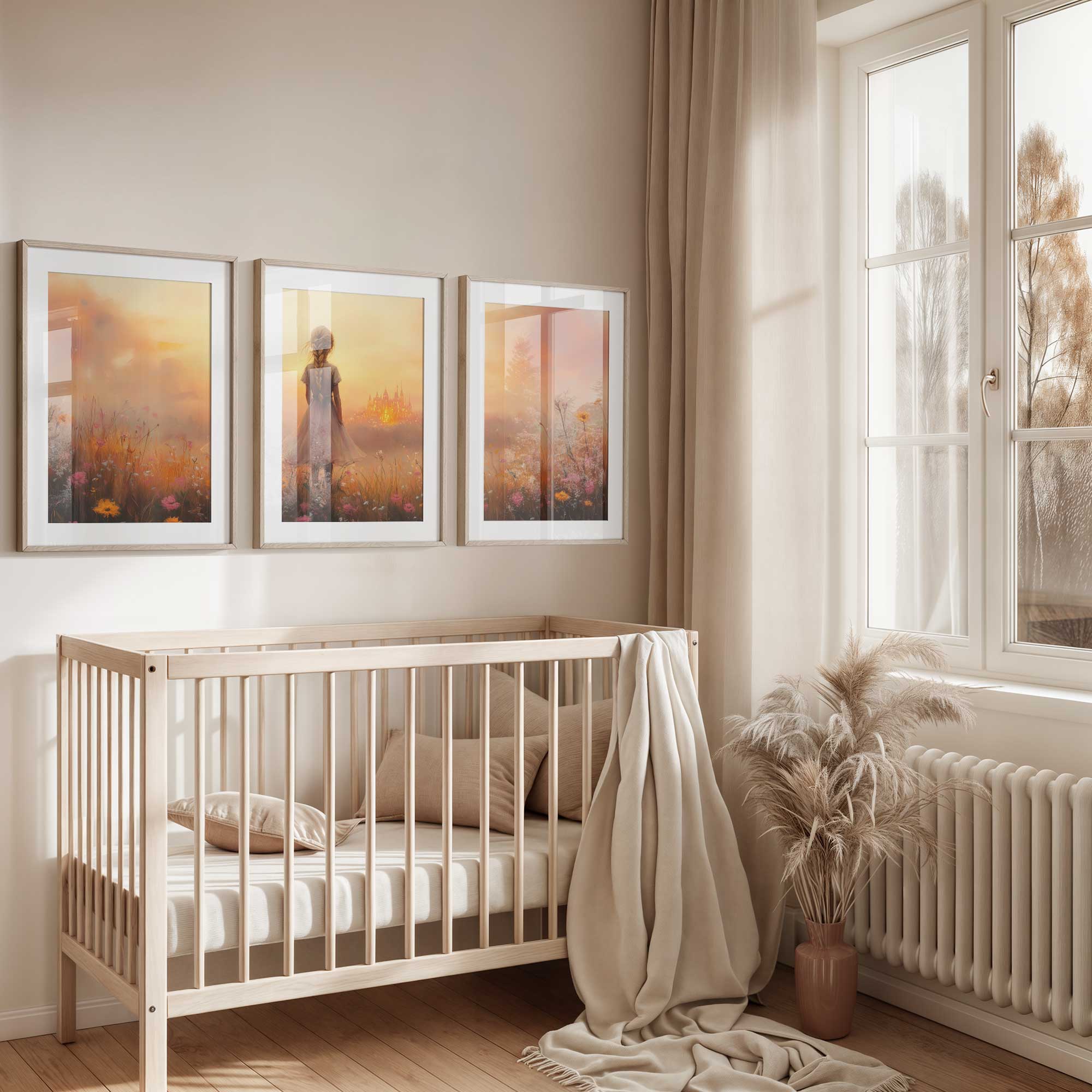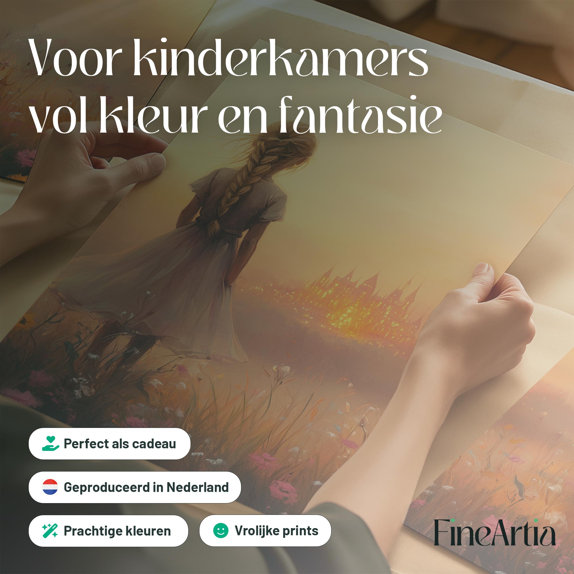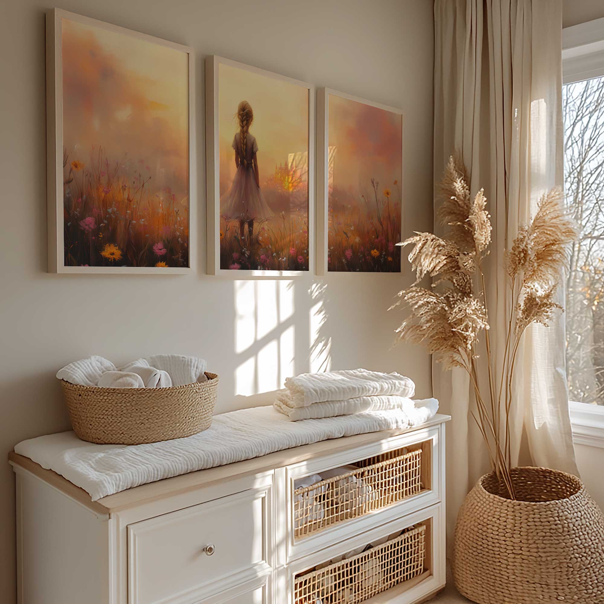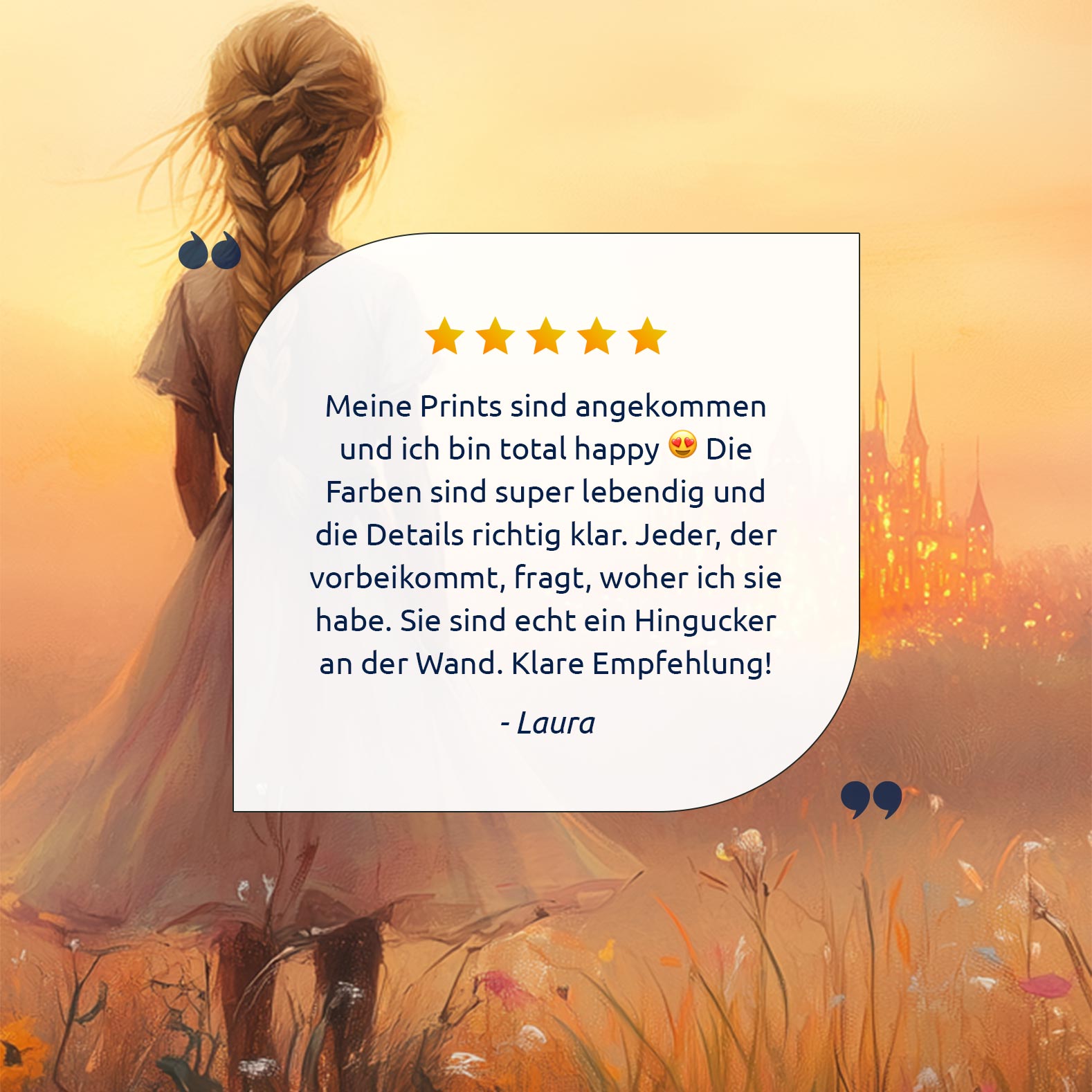 Terug naar collectie Posters Dromerig Meisje in Bloemenveld met Betoverend Kasteel