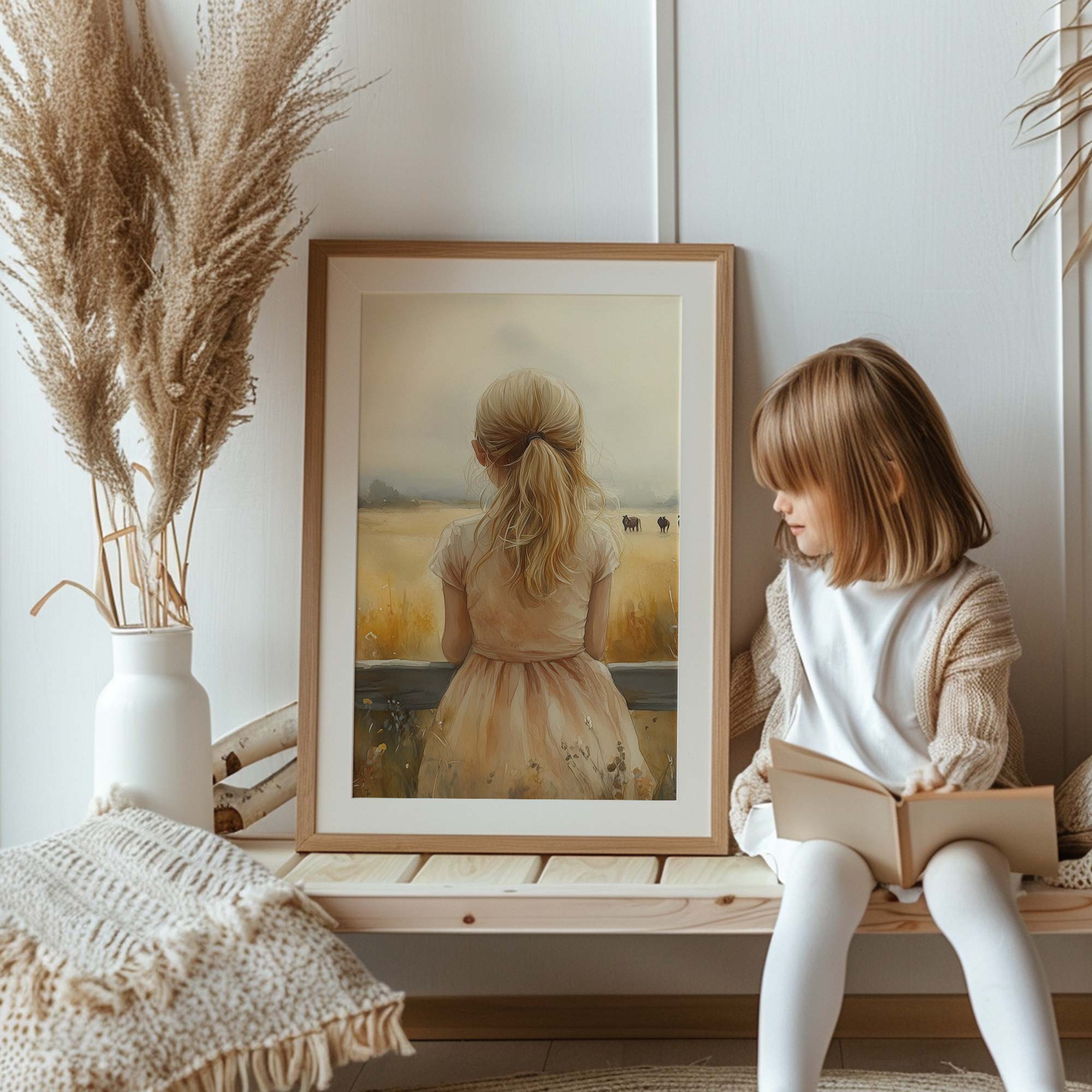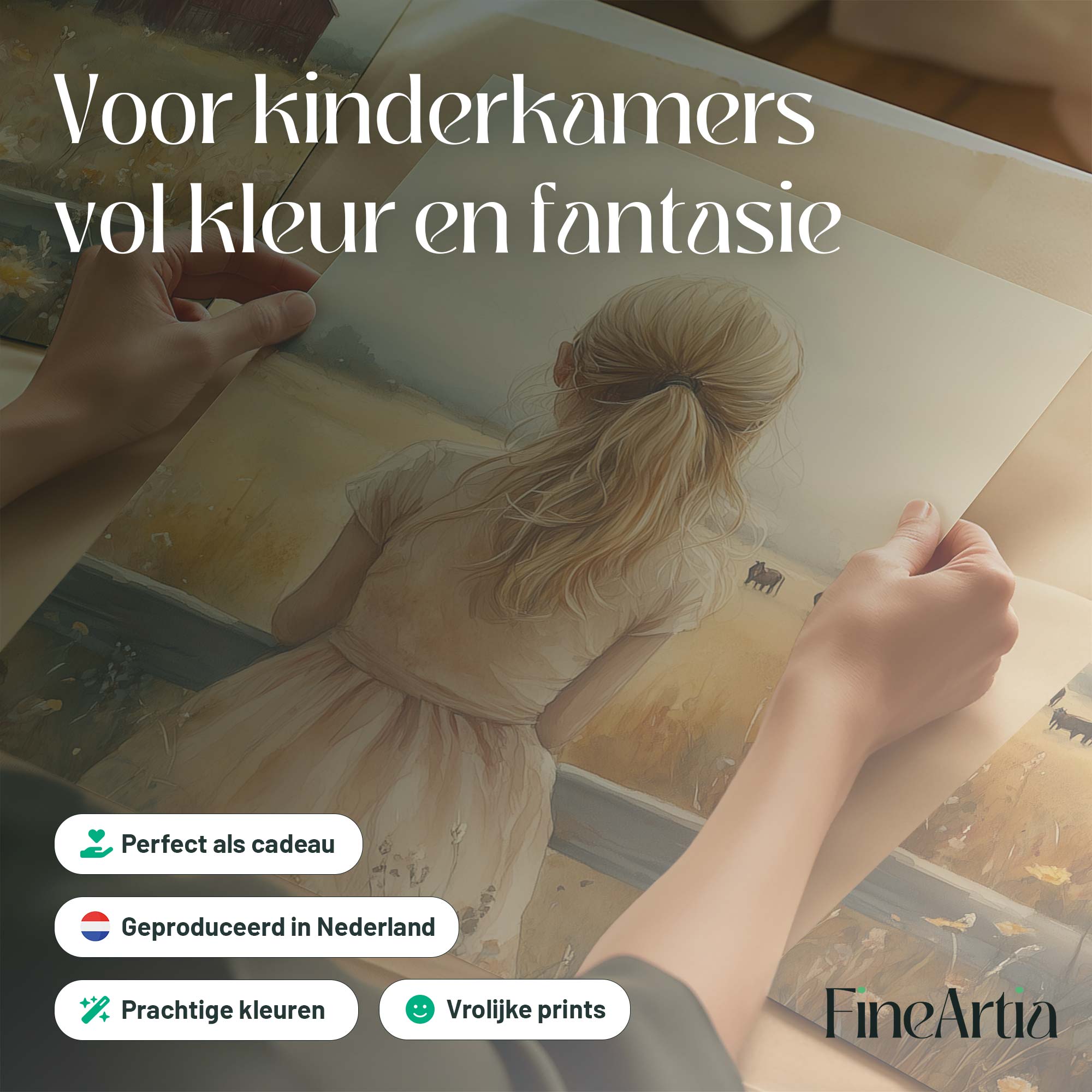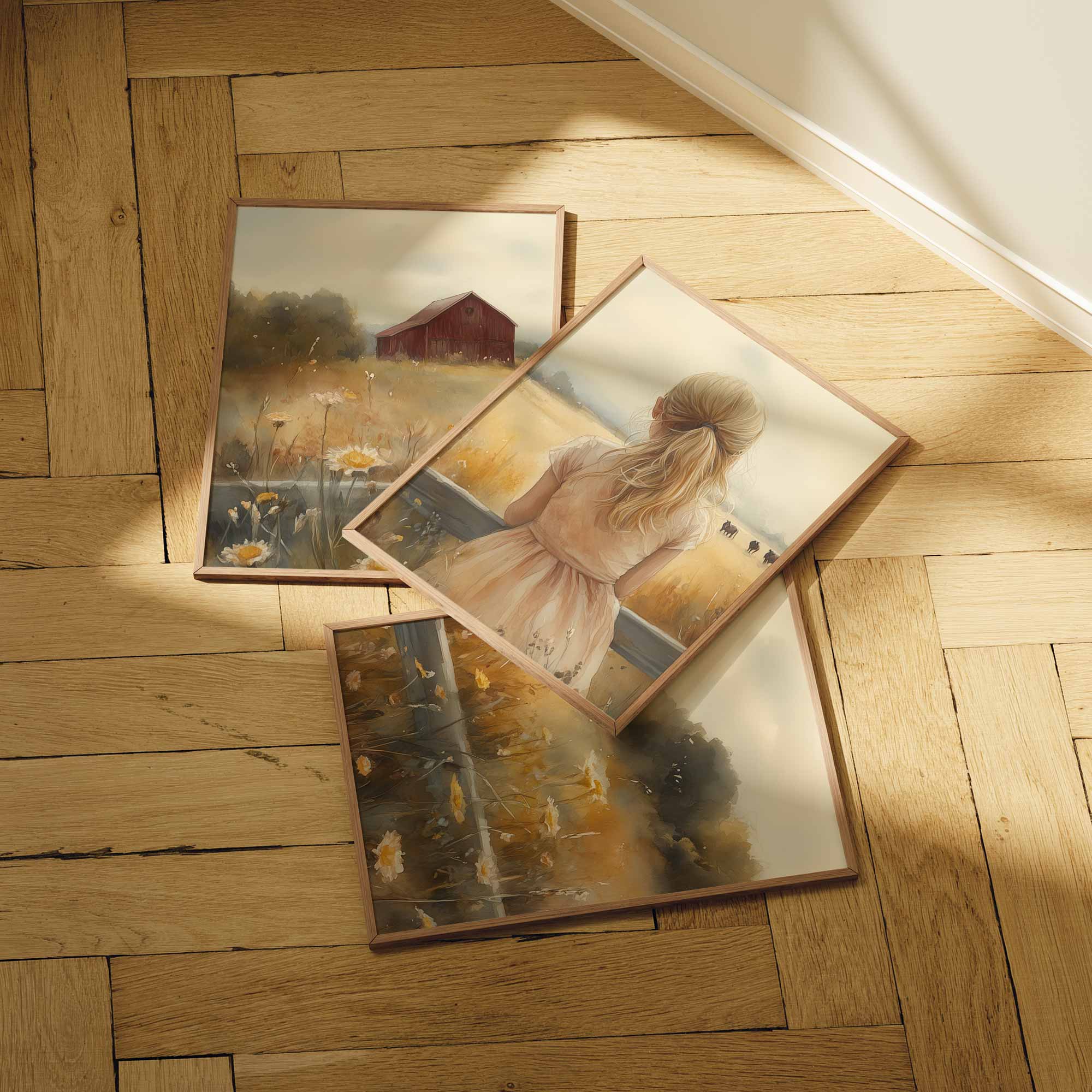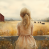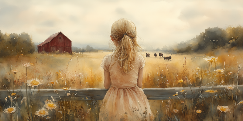 Dromerig Meisje in Bloemenveld met Rode Schuur