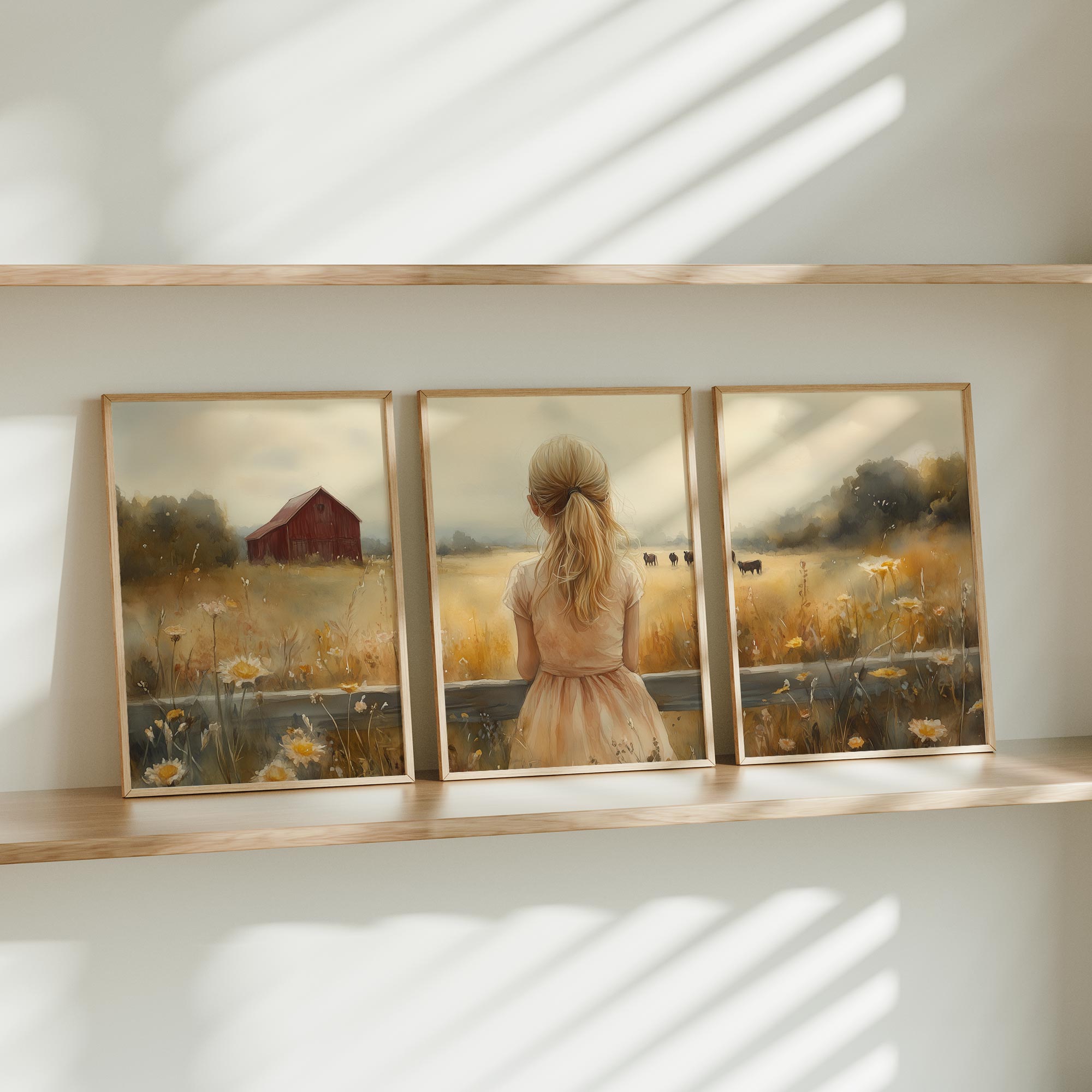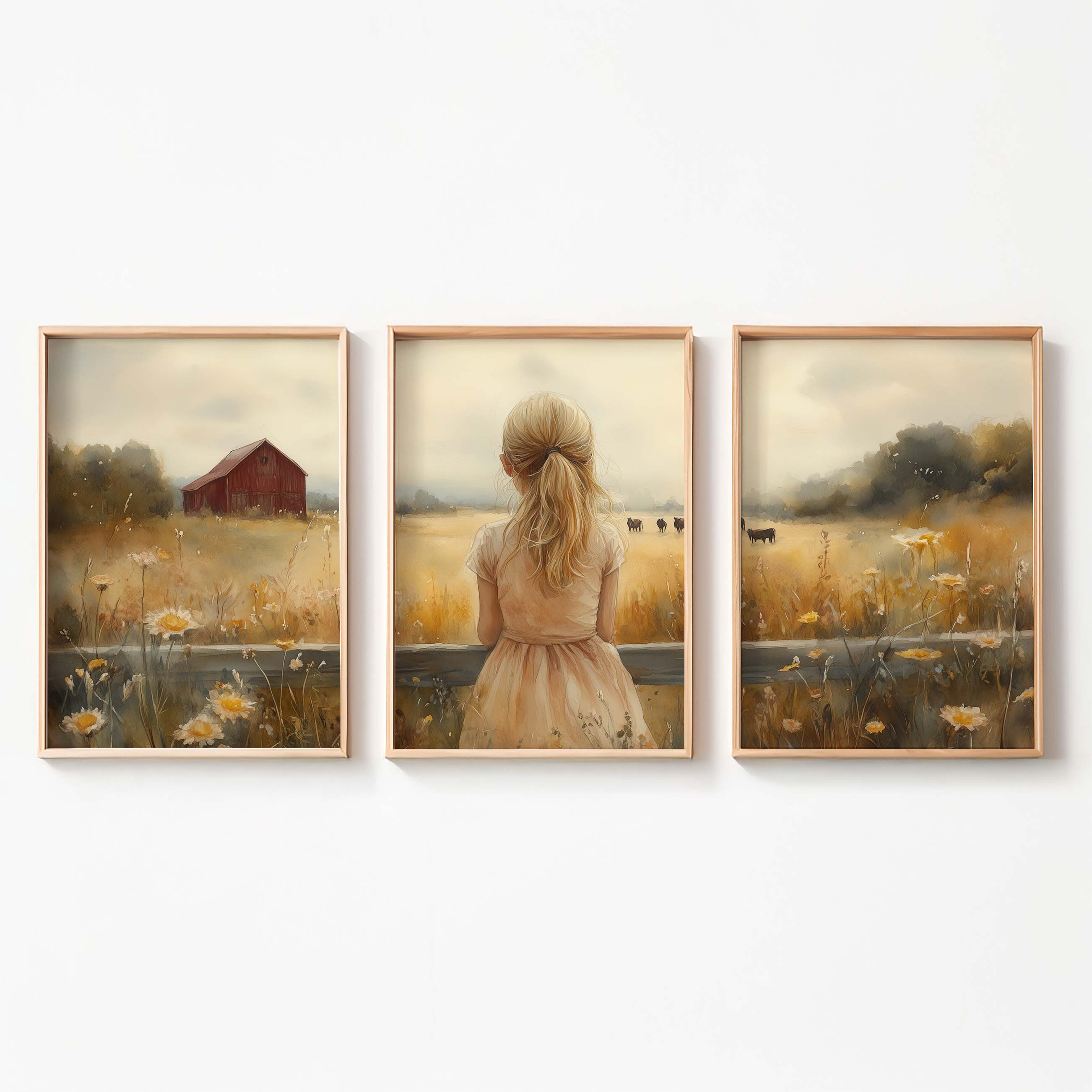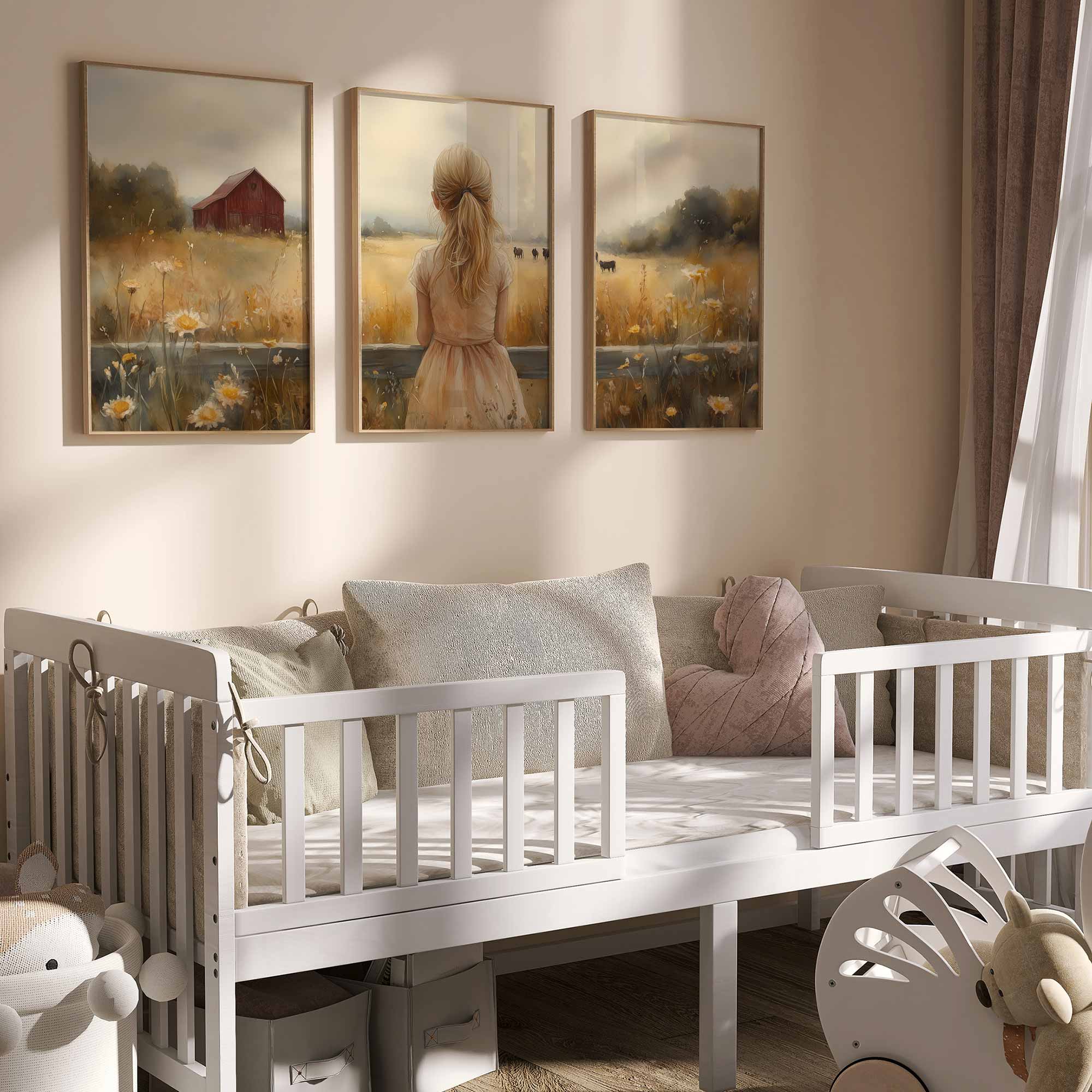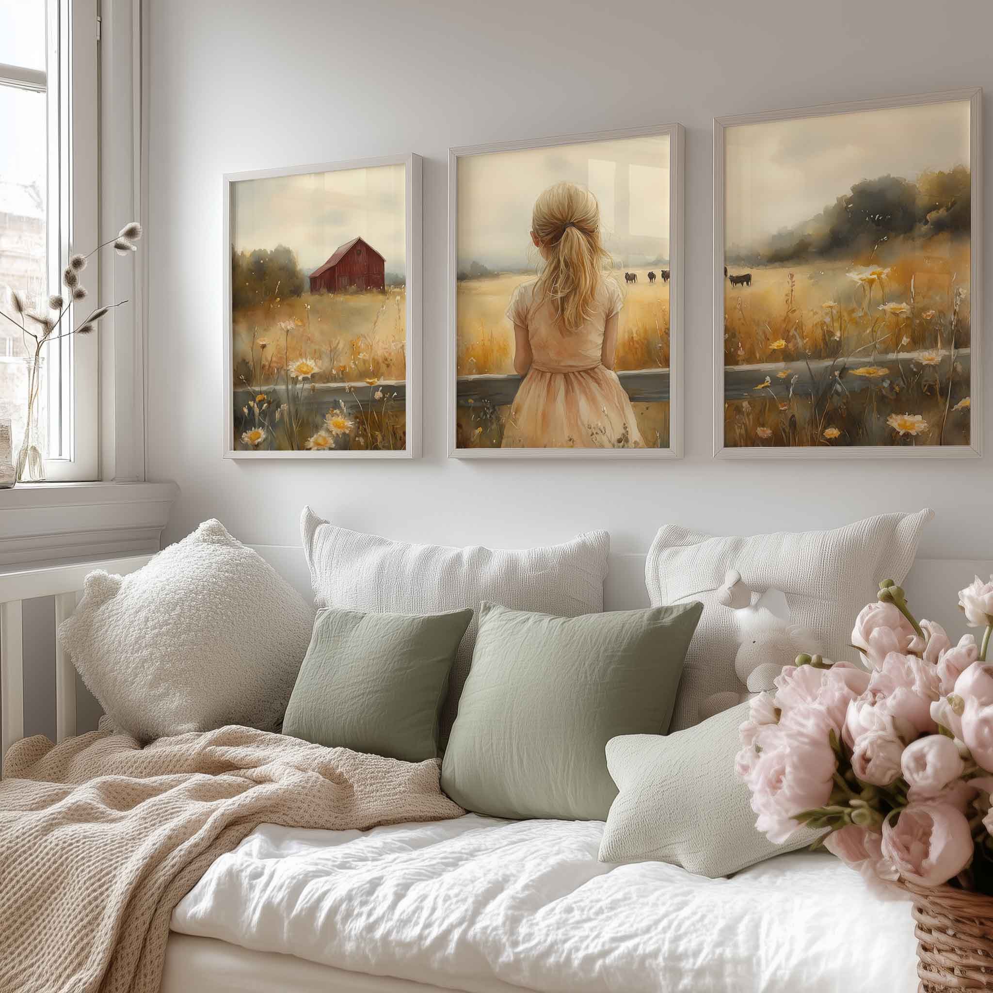 Dromerig Meisje in Bloemenveld met Rode Schuur