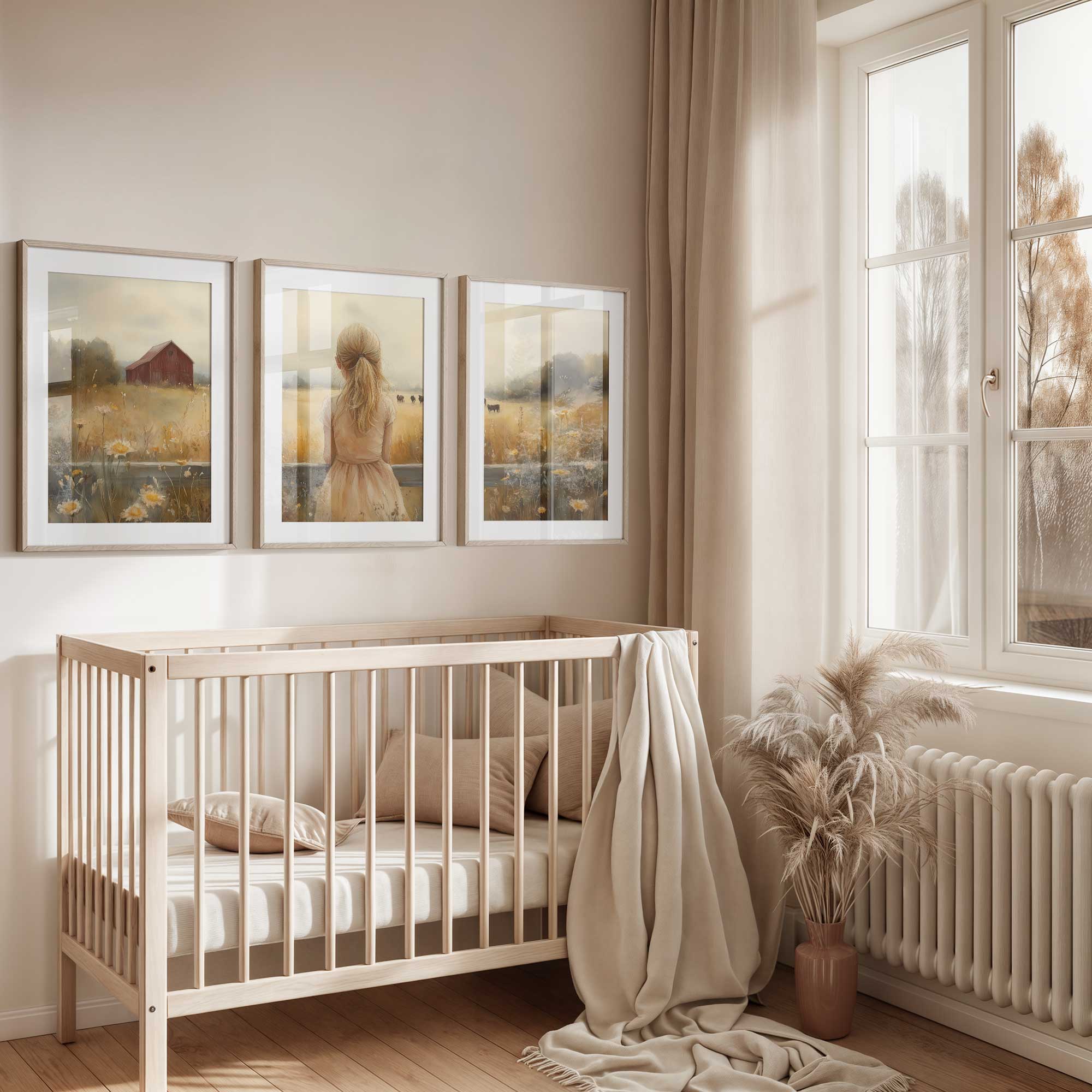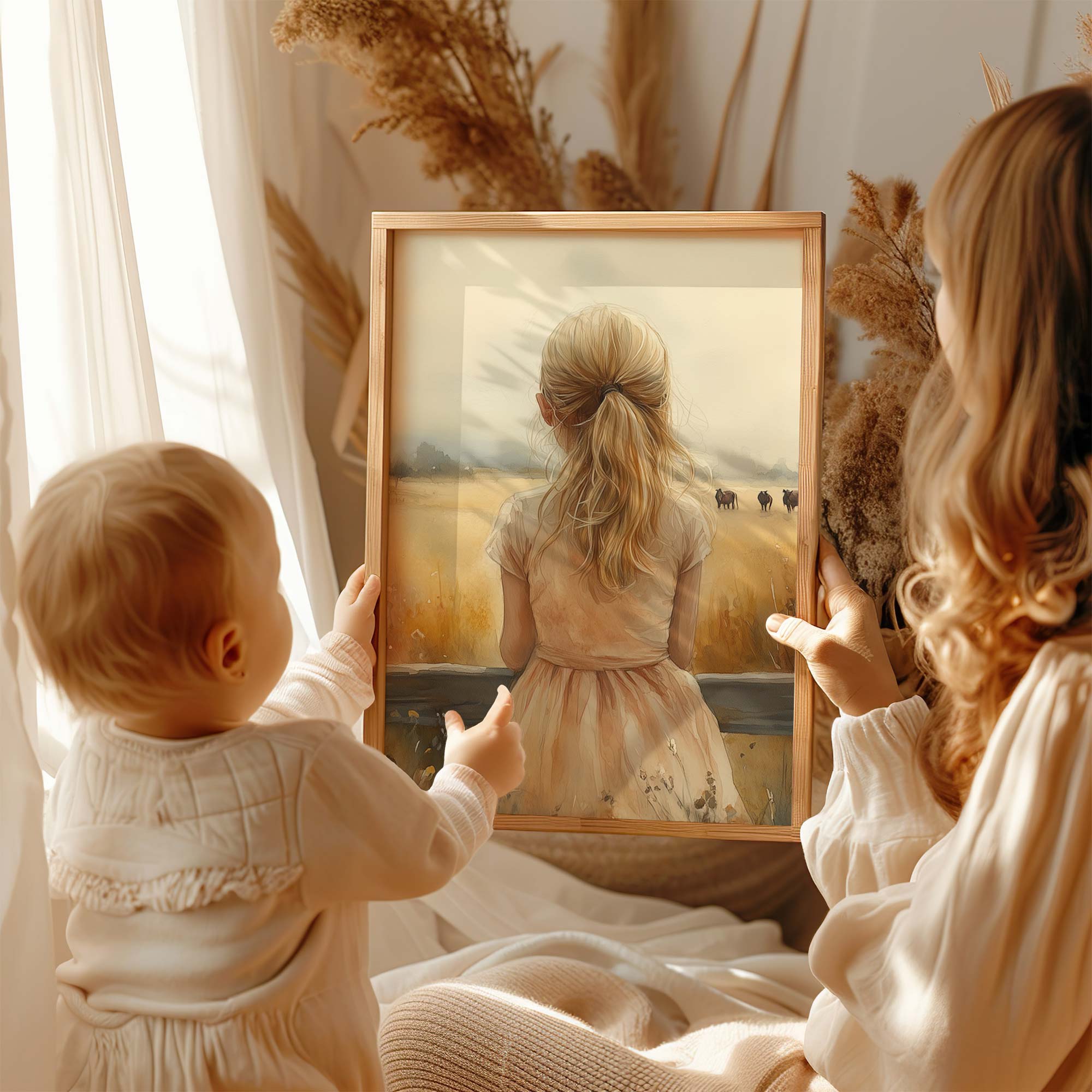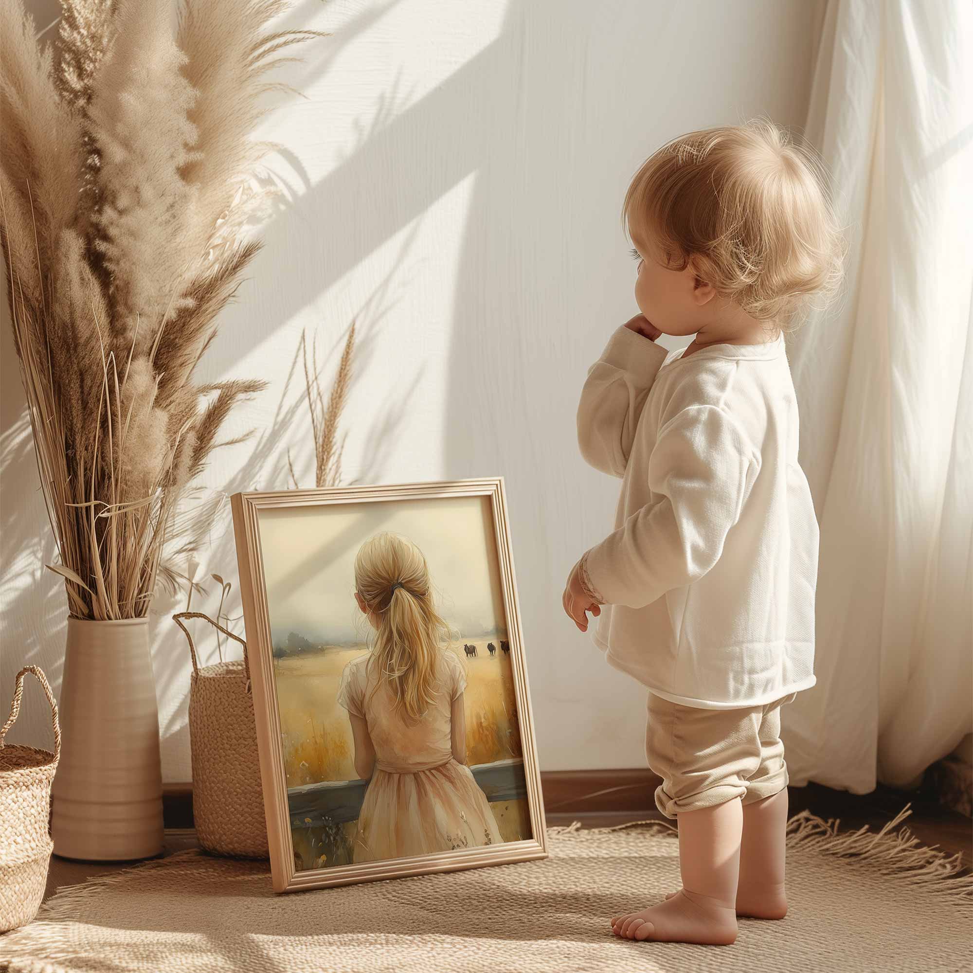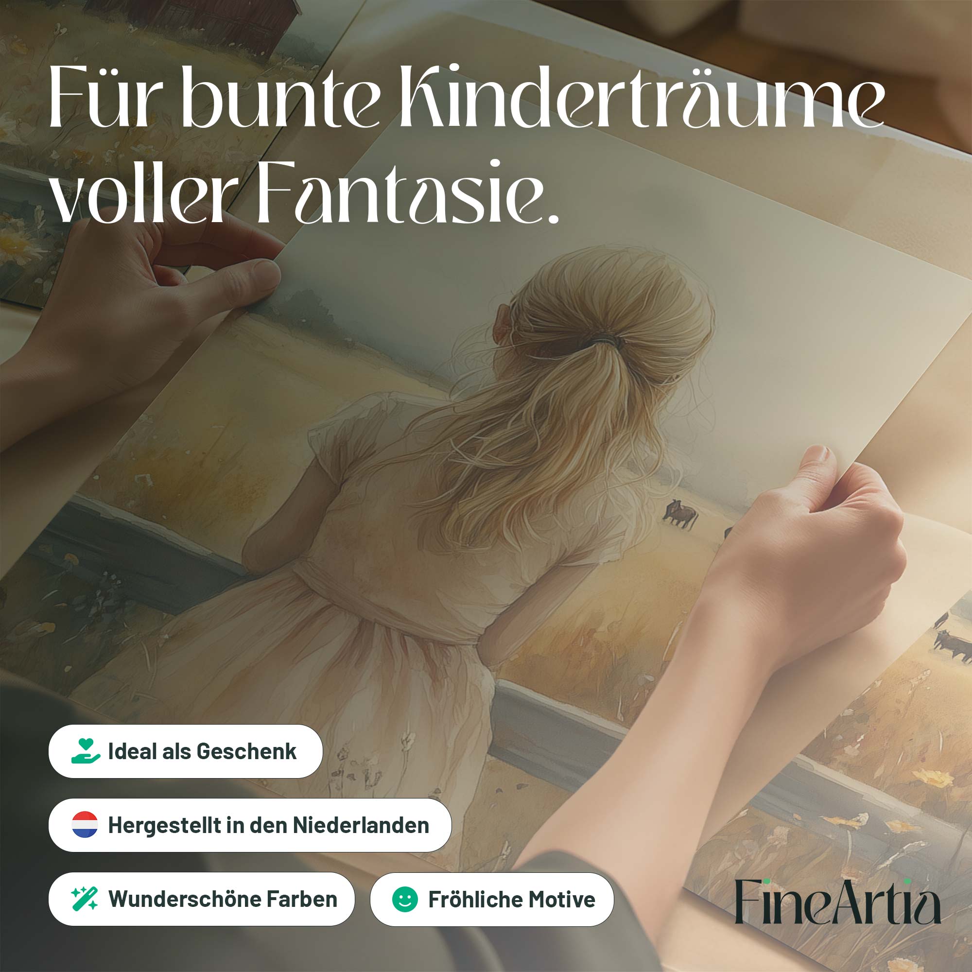 Dromerig Meisje in Bloemenveld met Rode Schuur