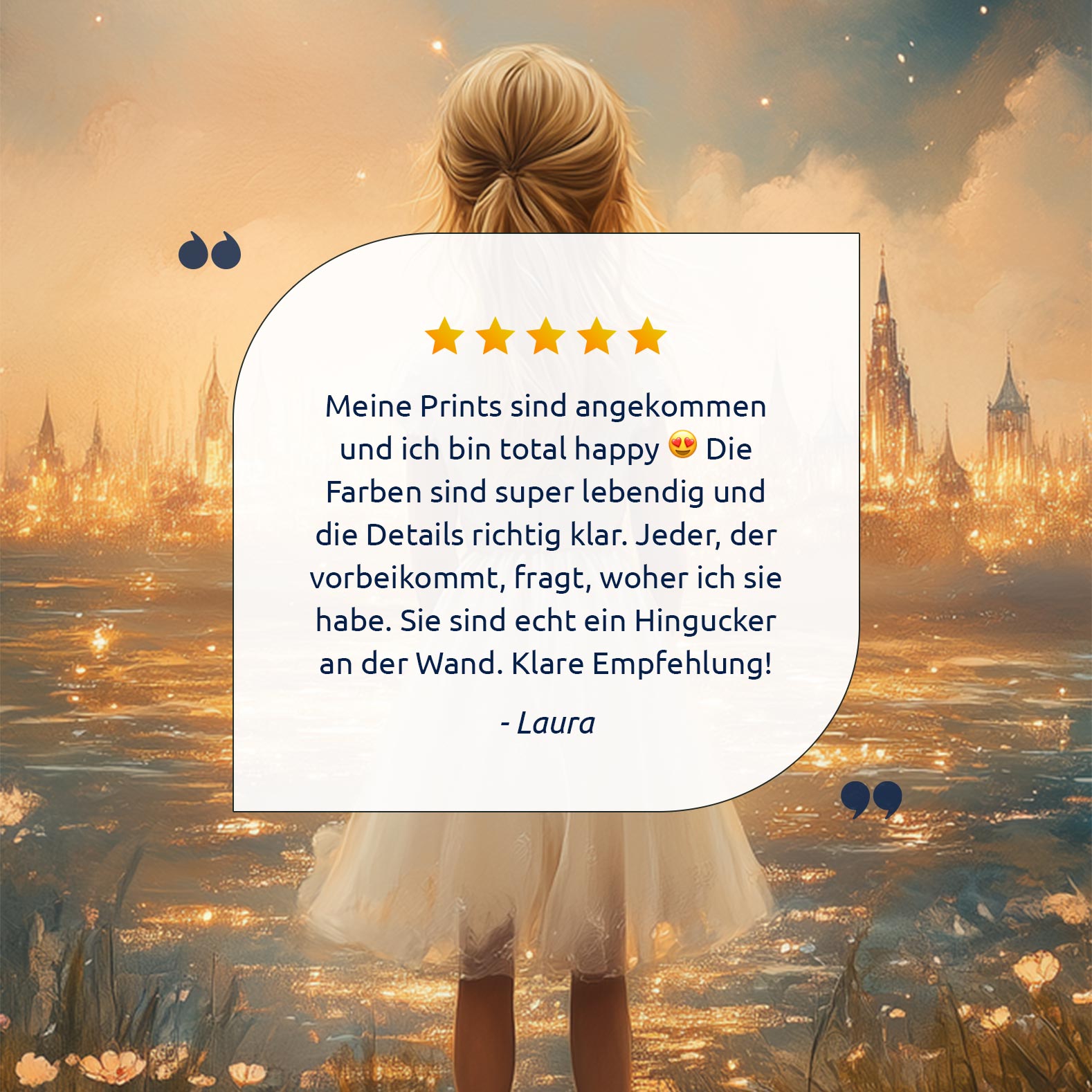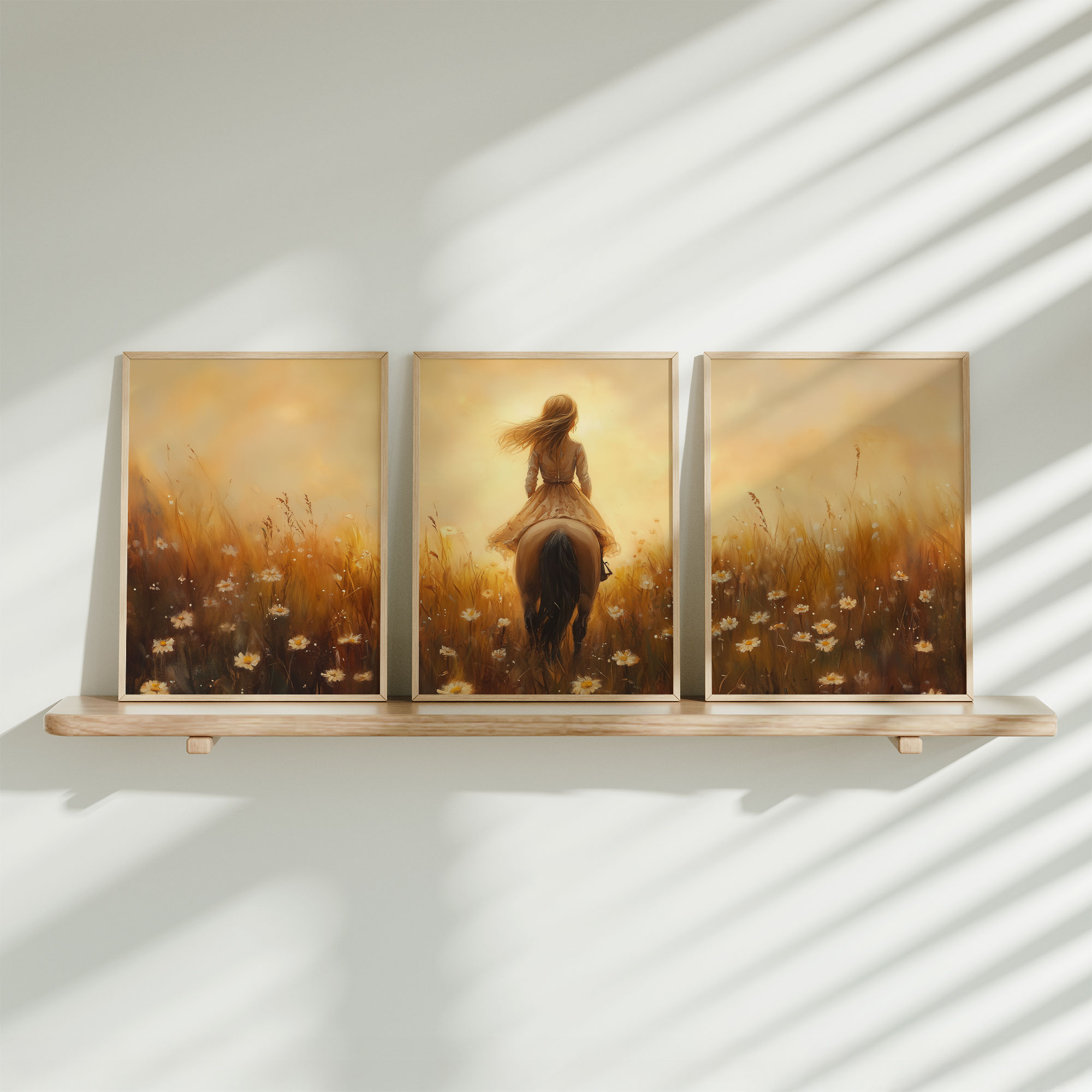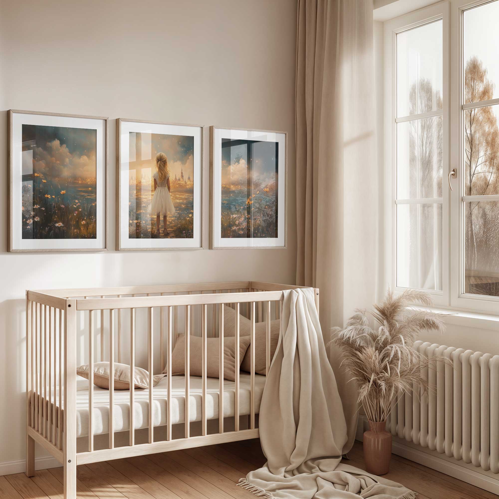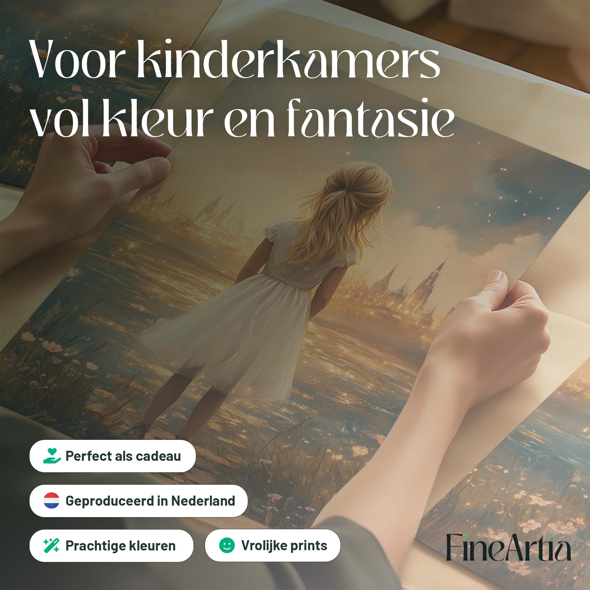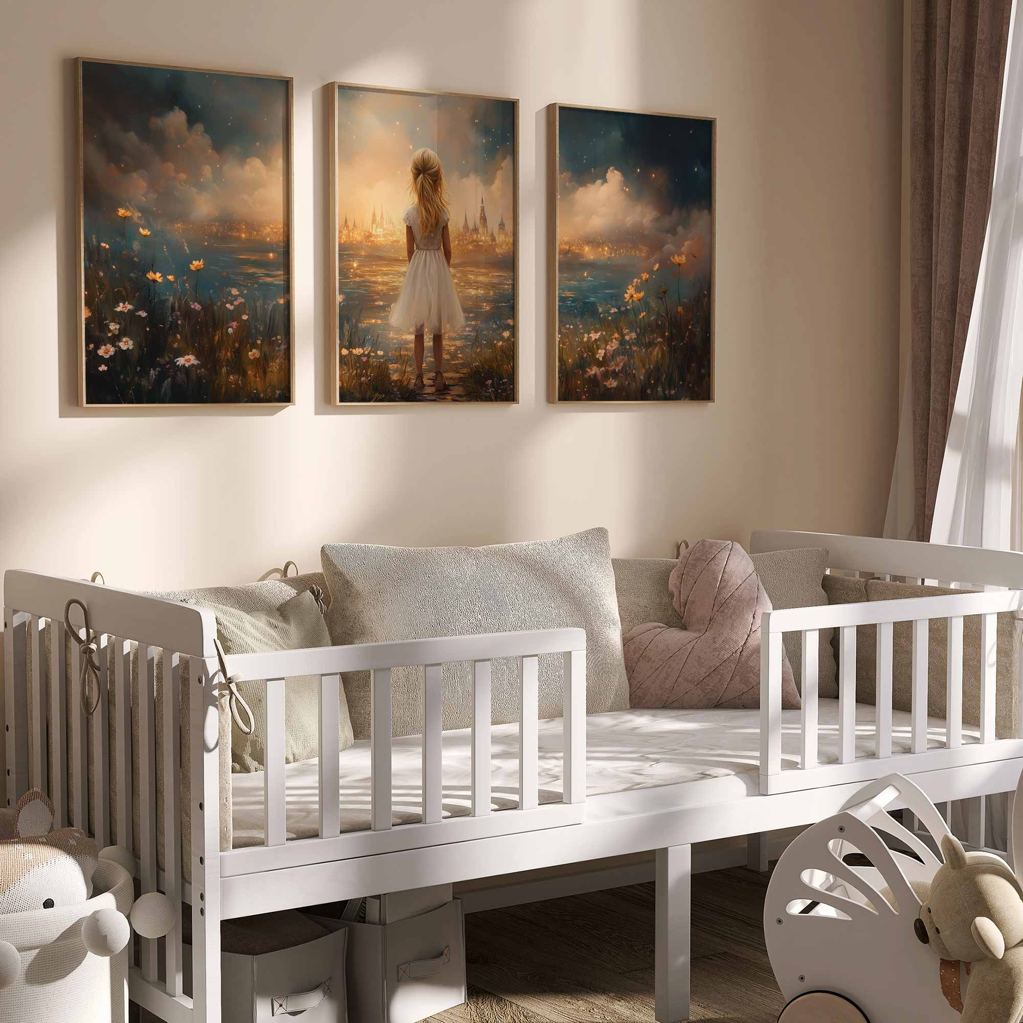 Dromerig Meisje in Bloemenveld met Stad op Achtergrond