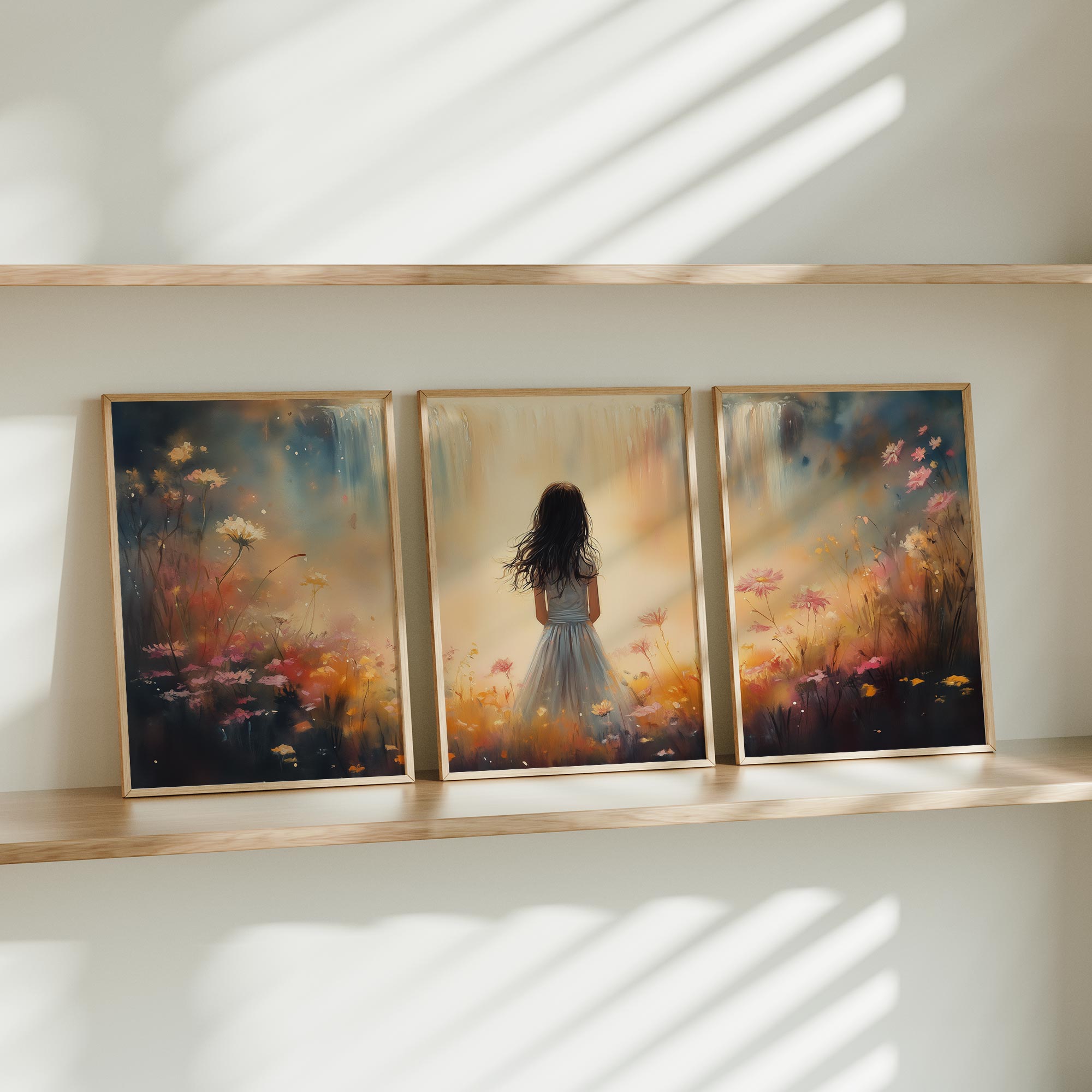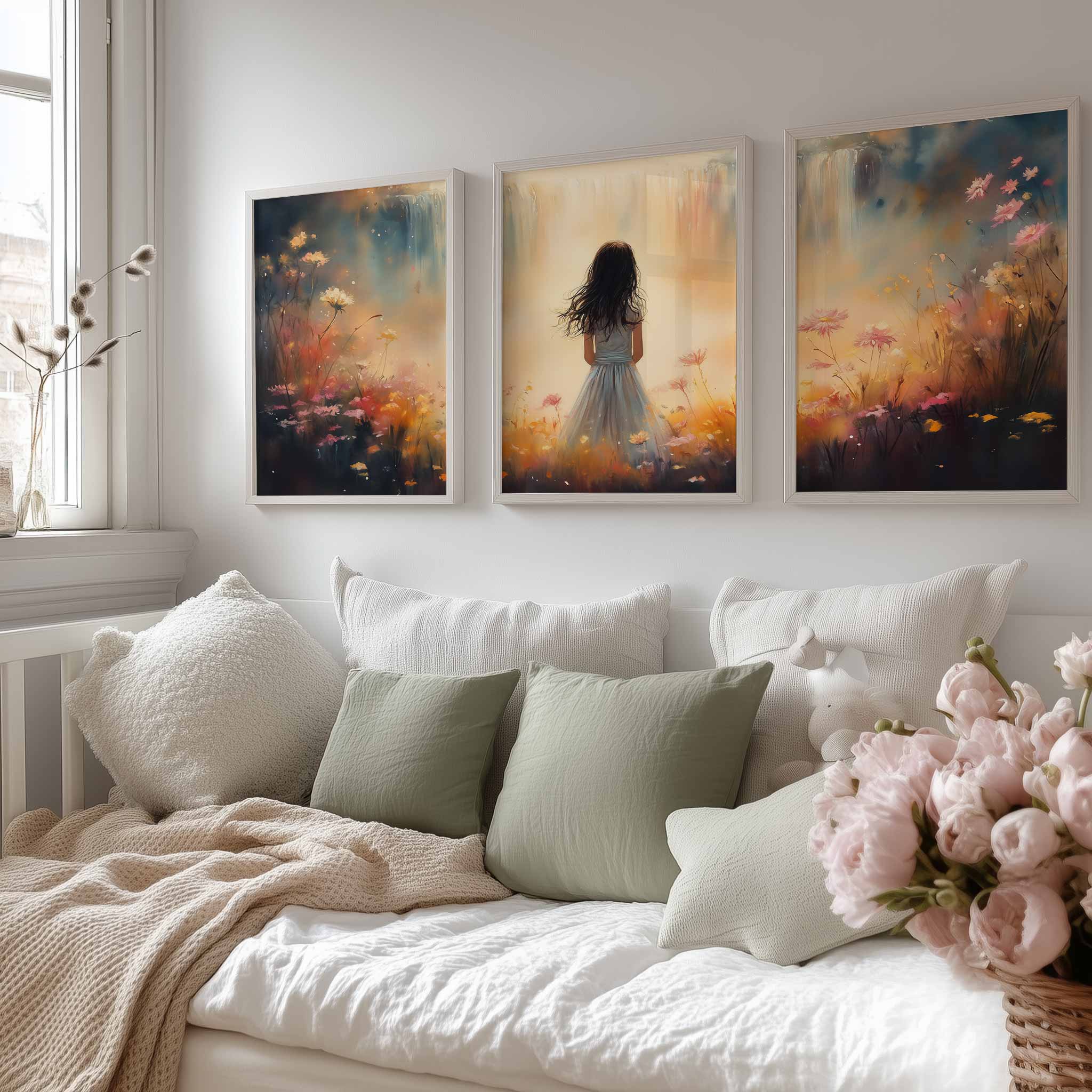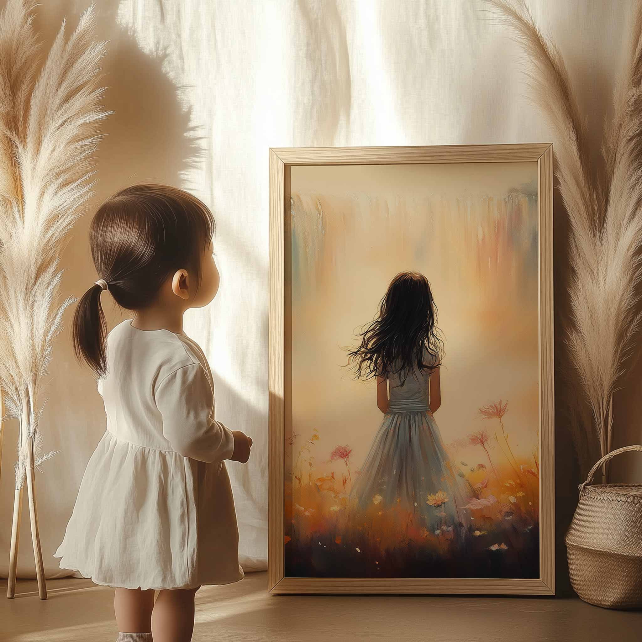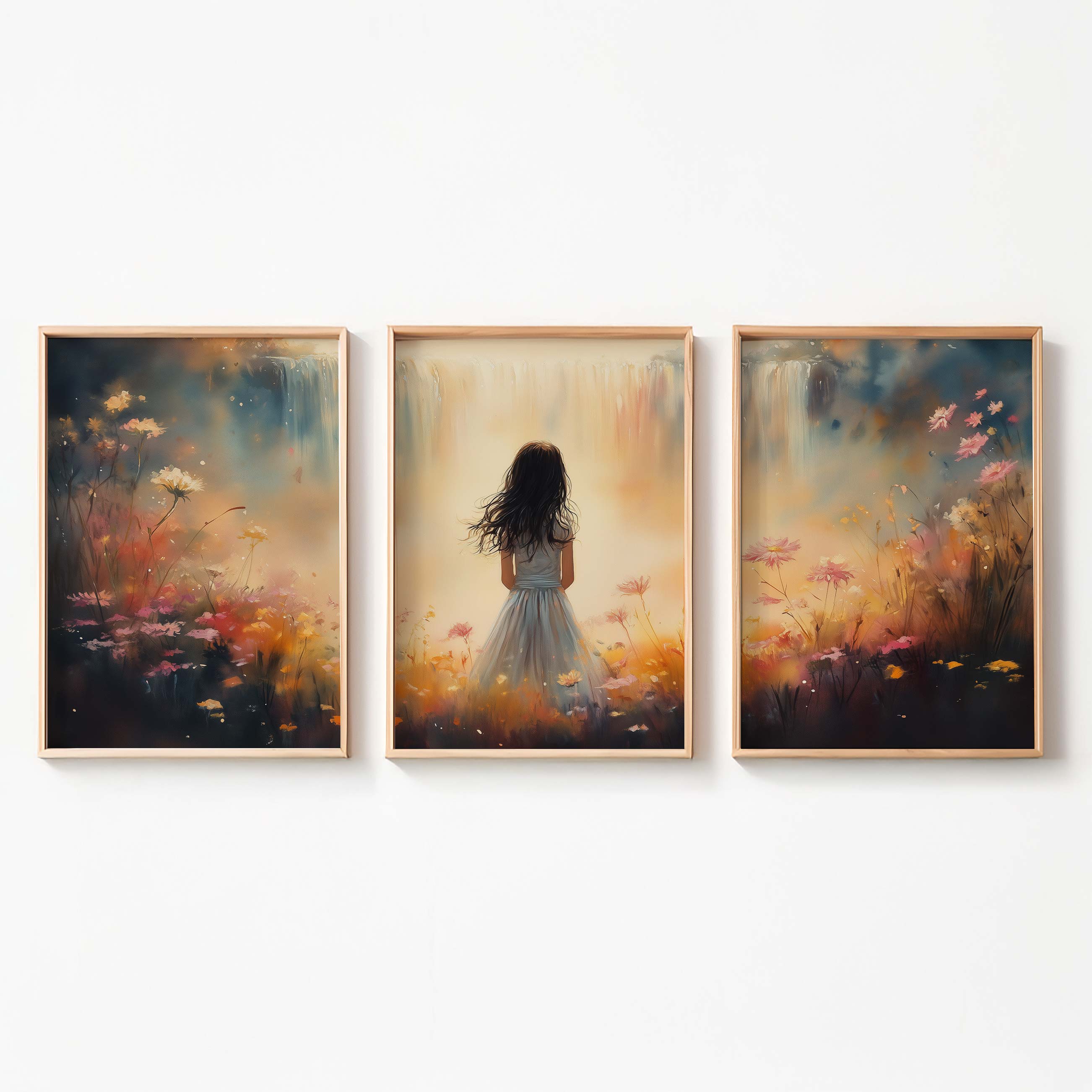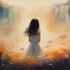 Terug naar collectie Posters Dromerig Meisje in Bloemenveld met Waterval