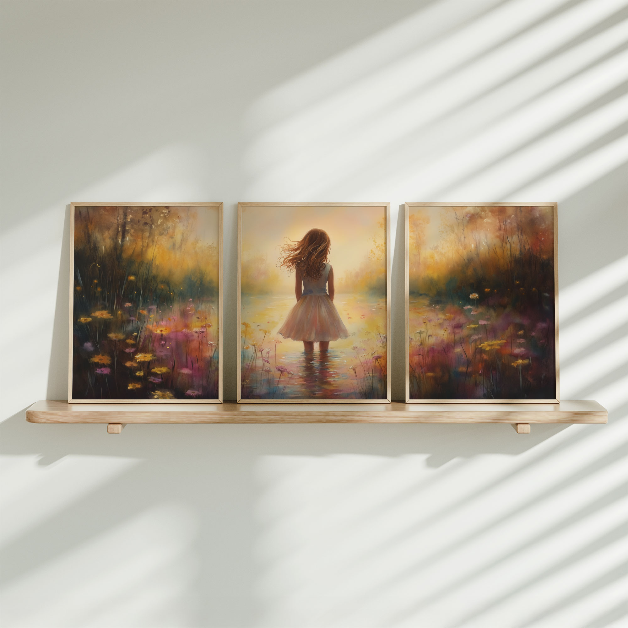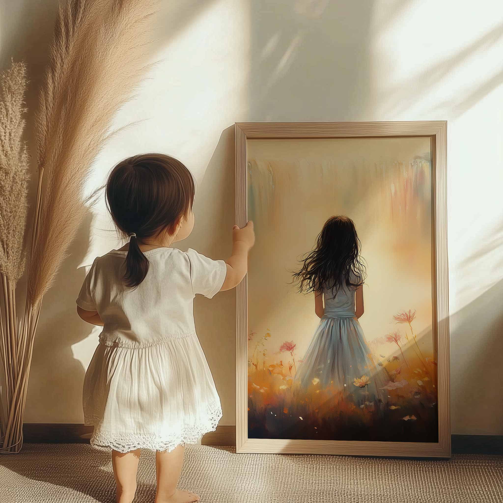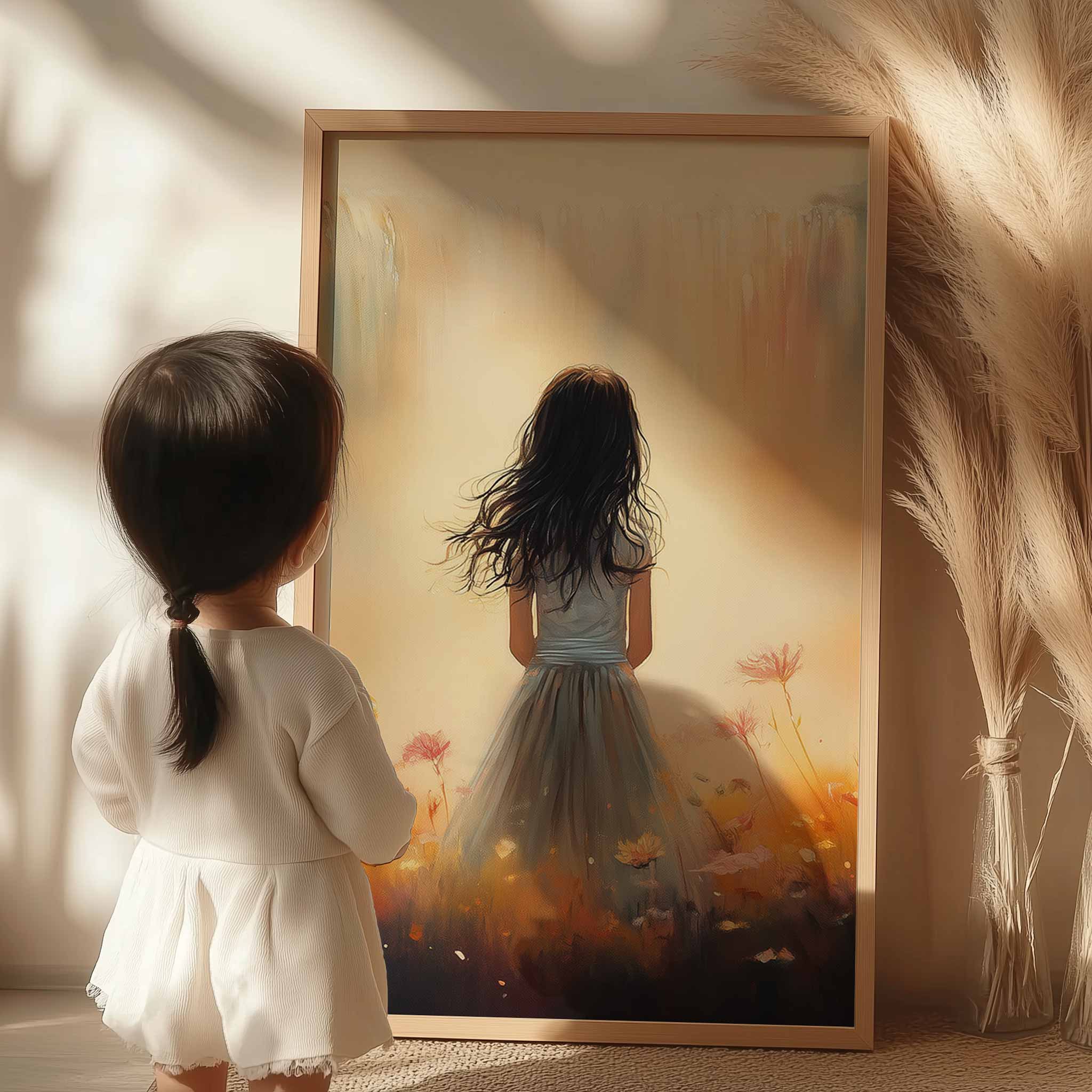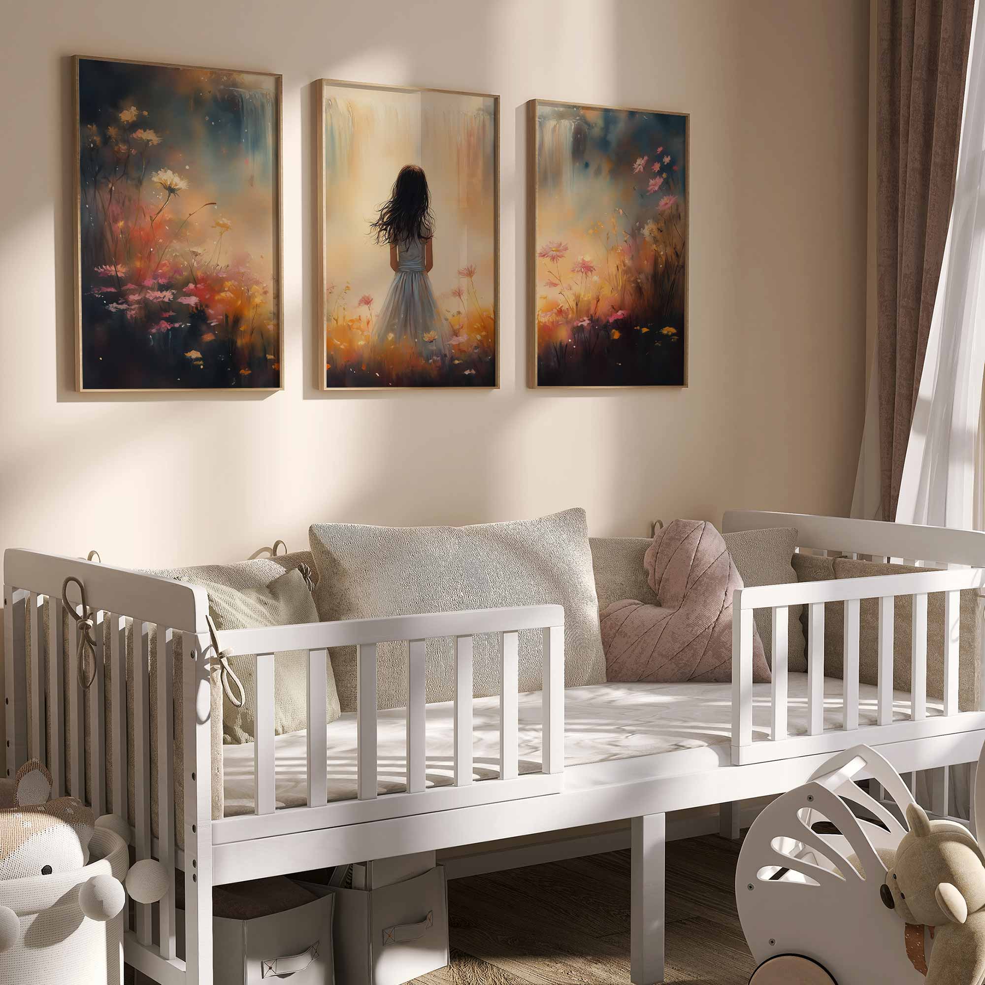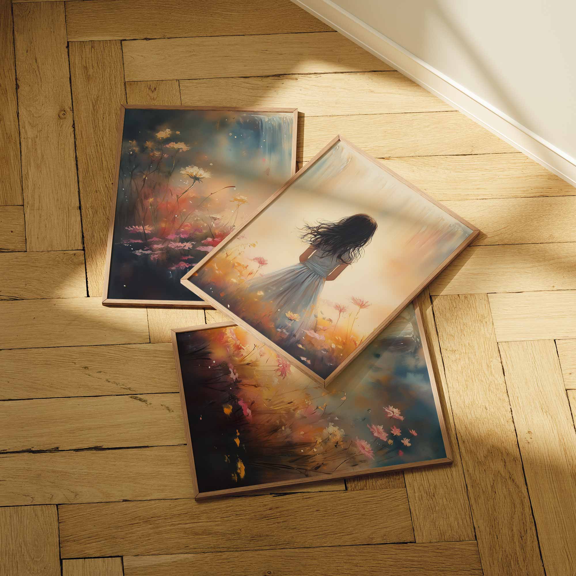 Terug naar collectie Posters Dromerig Meisje in Bloemenveld met Waterval