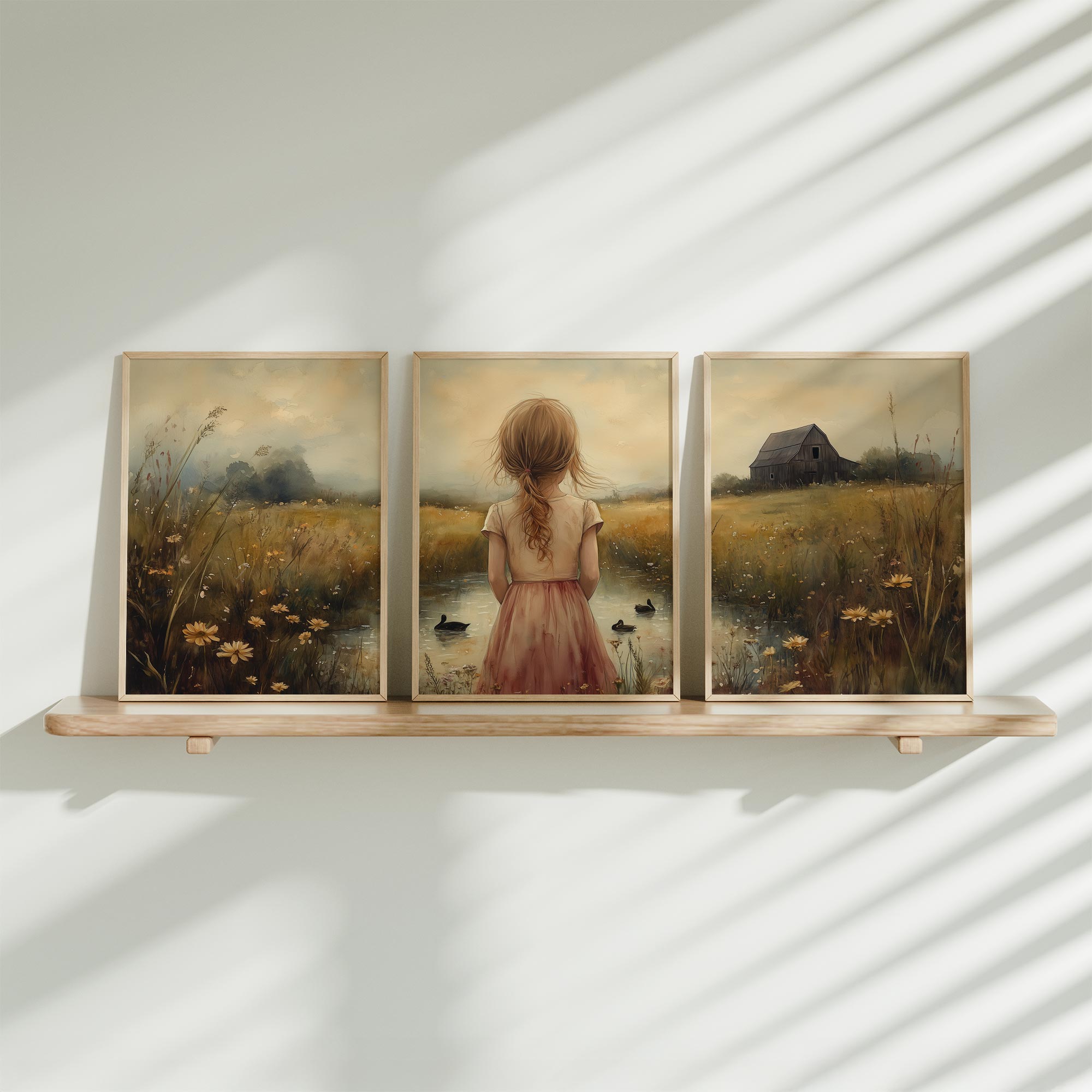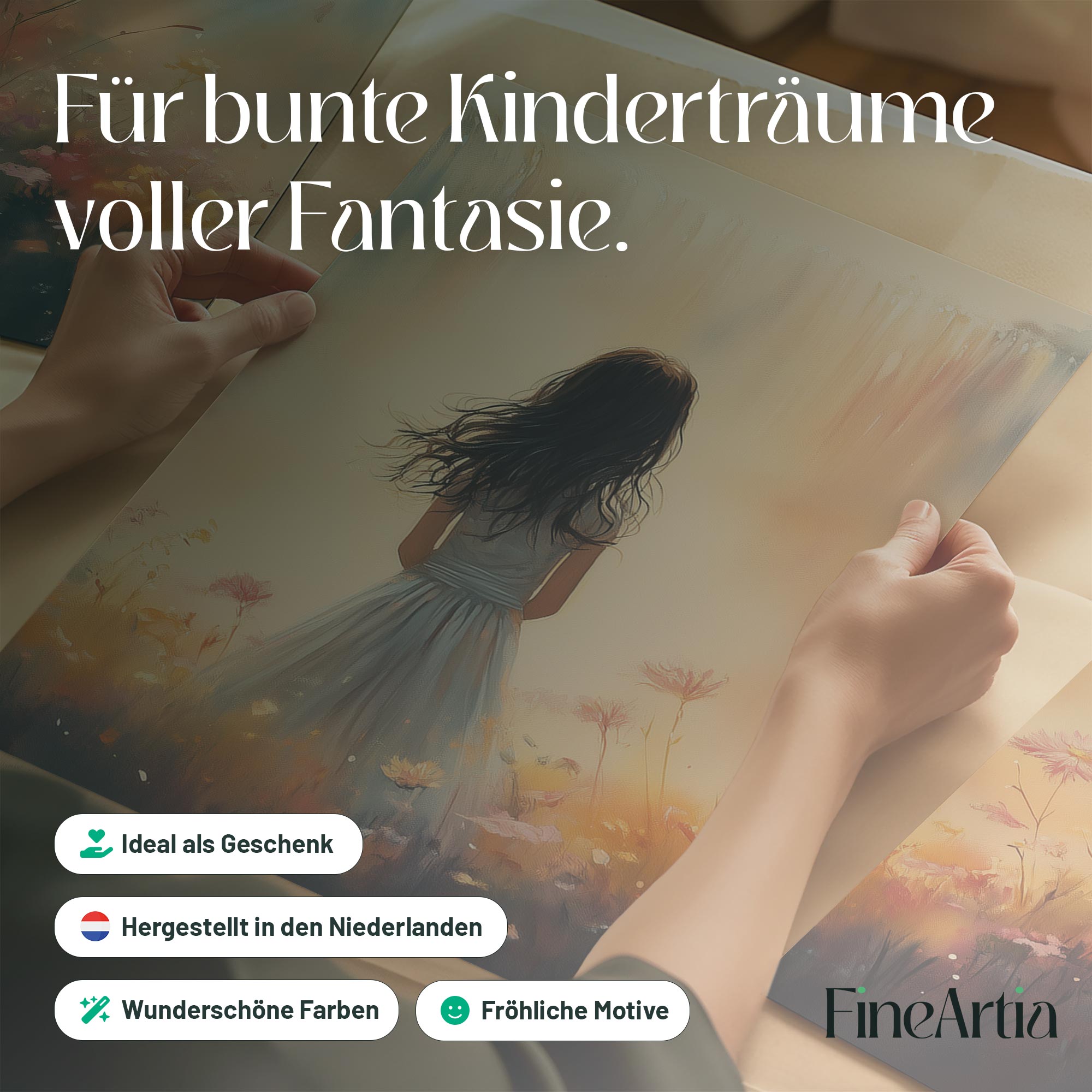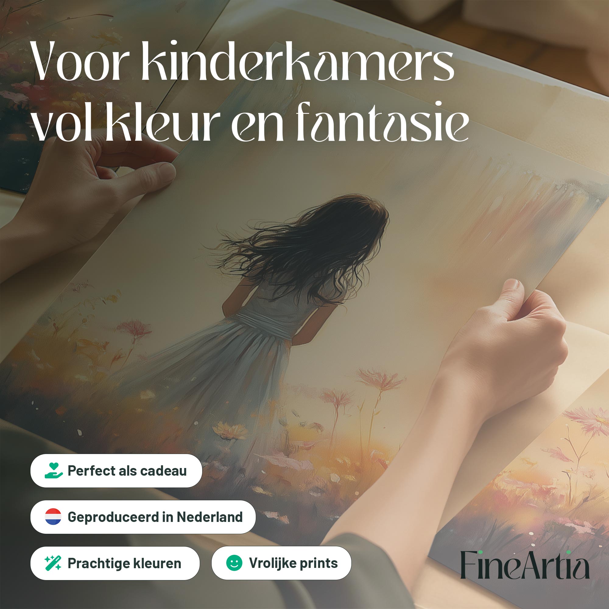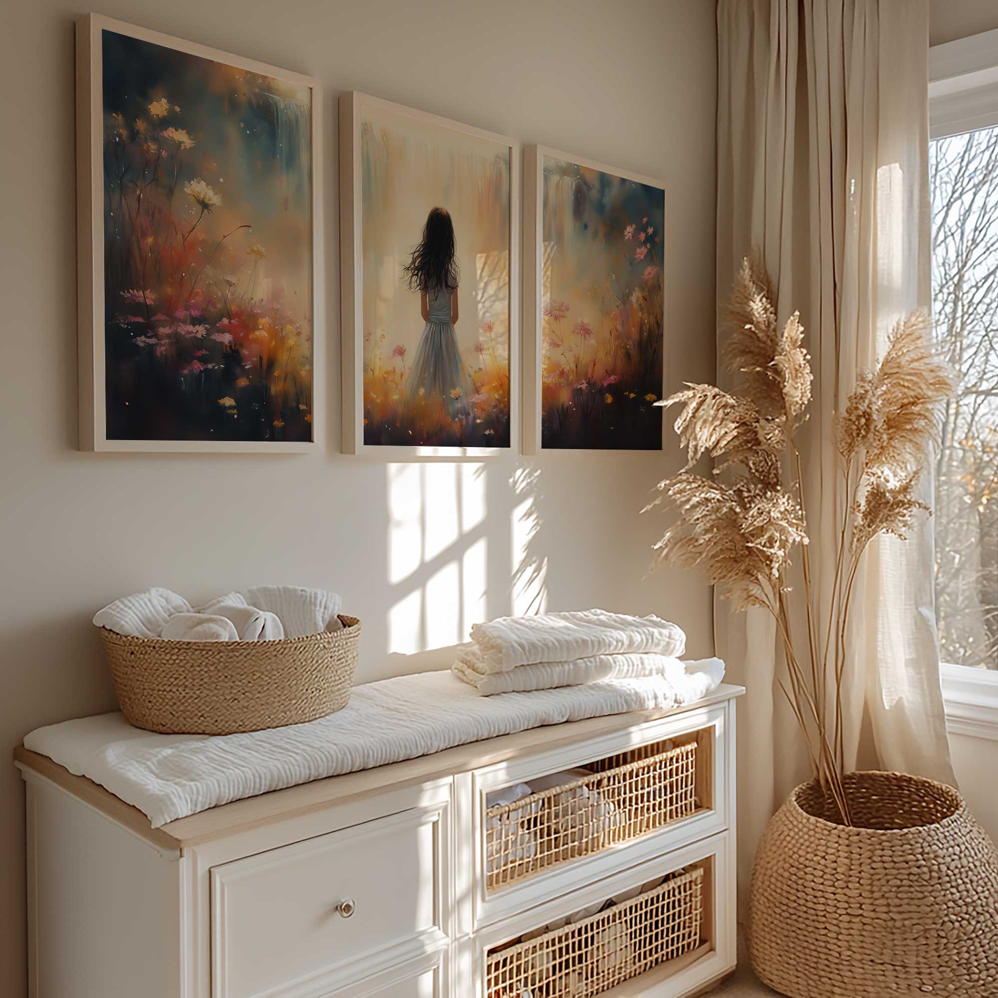 Terug naar collectie Posters Dromerig Meisje in Bloemenveld met Waterval