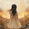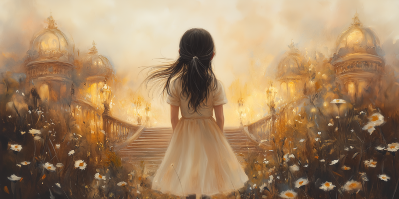 Dromerig Meisje in Bloemenveld naar Betoverend Kasteel