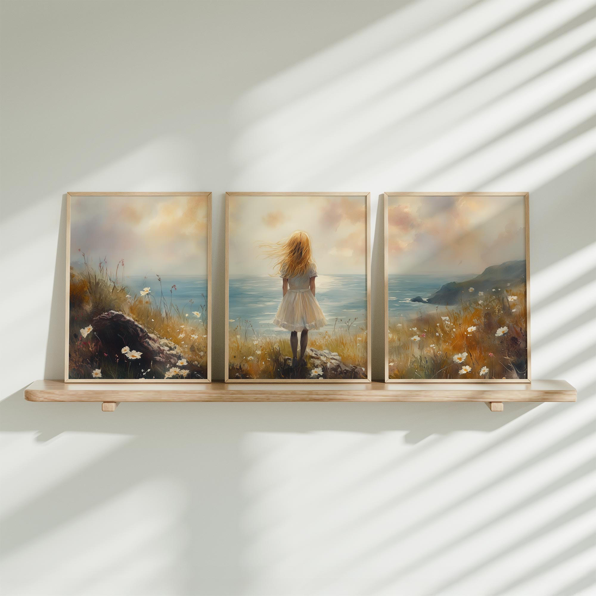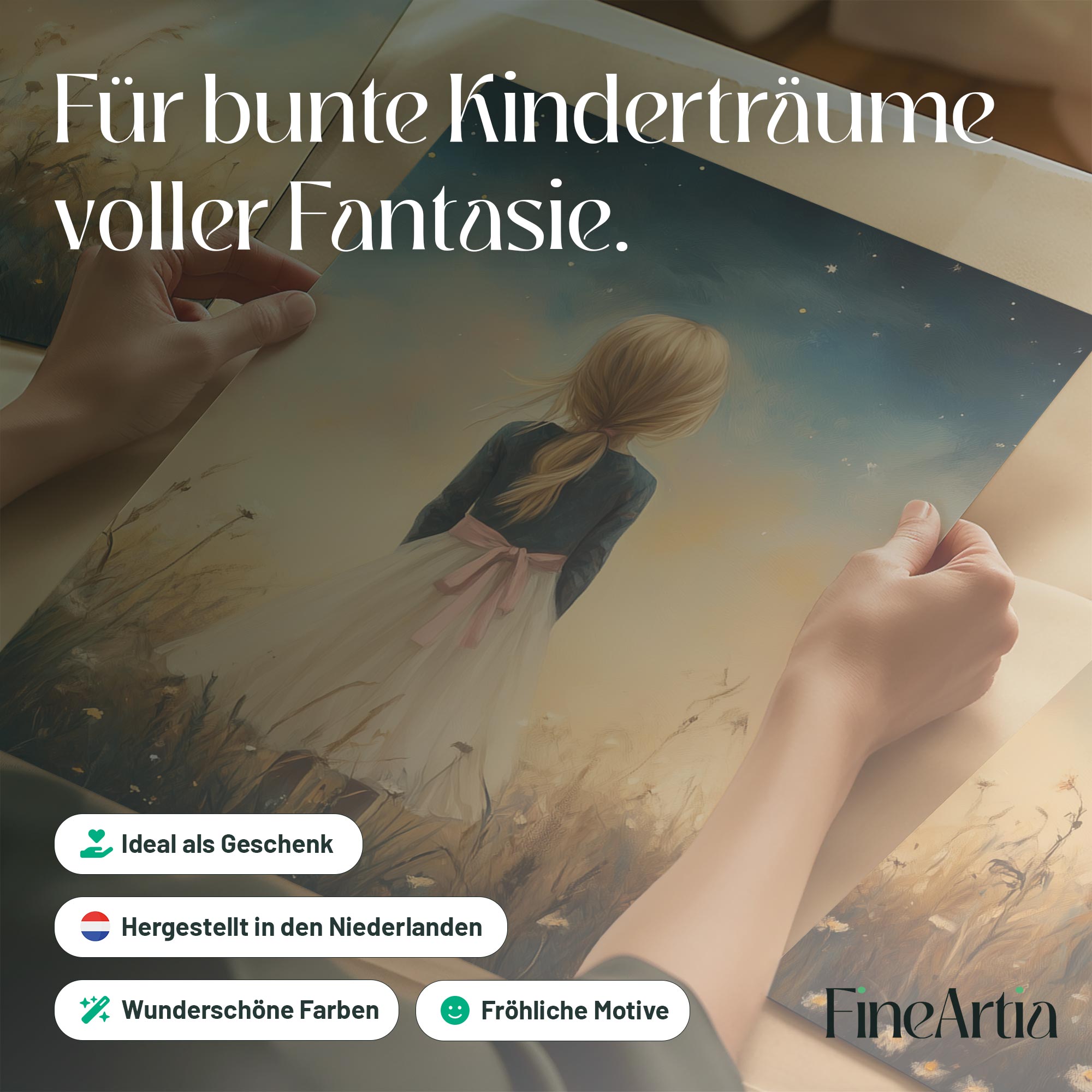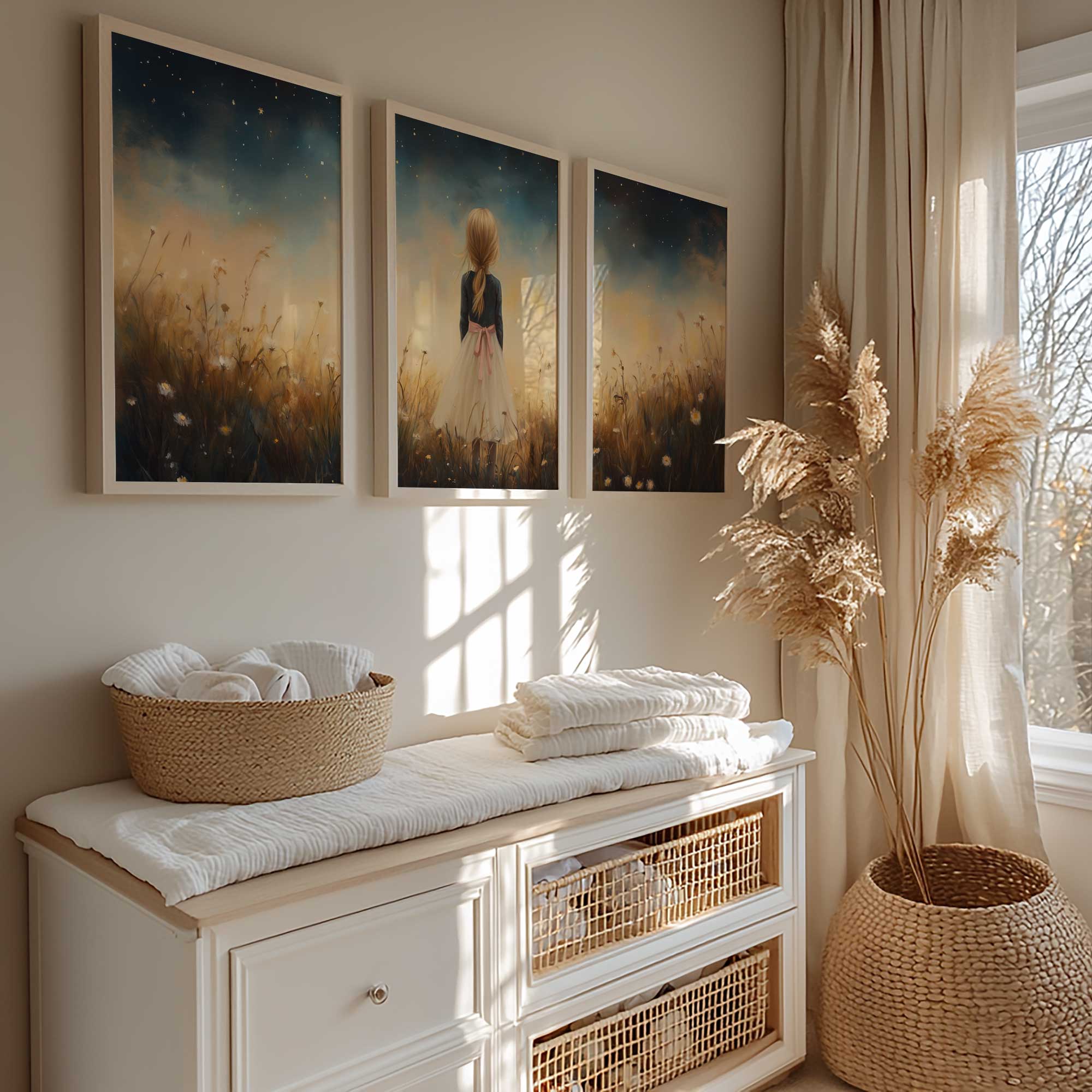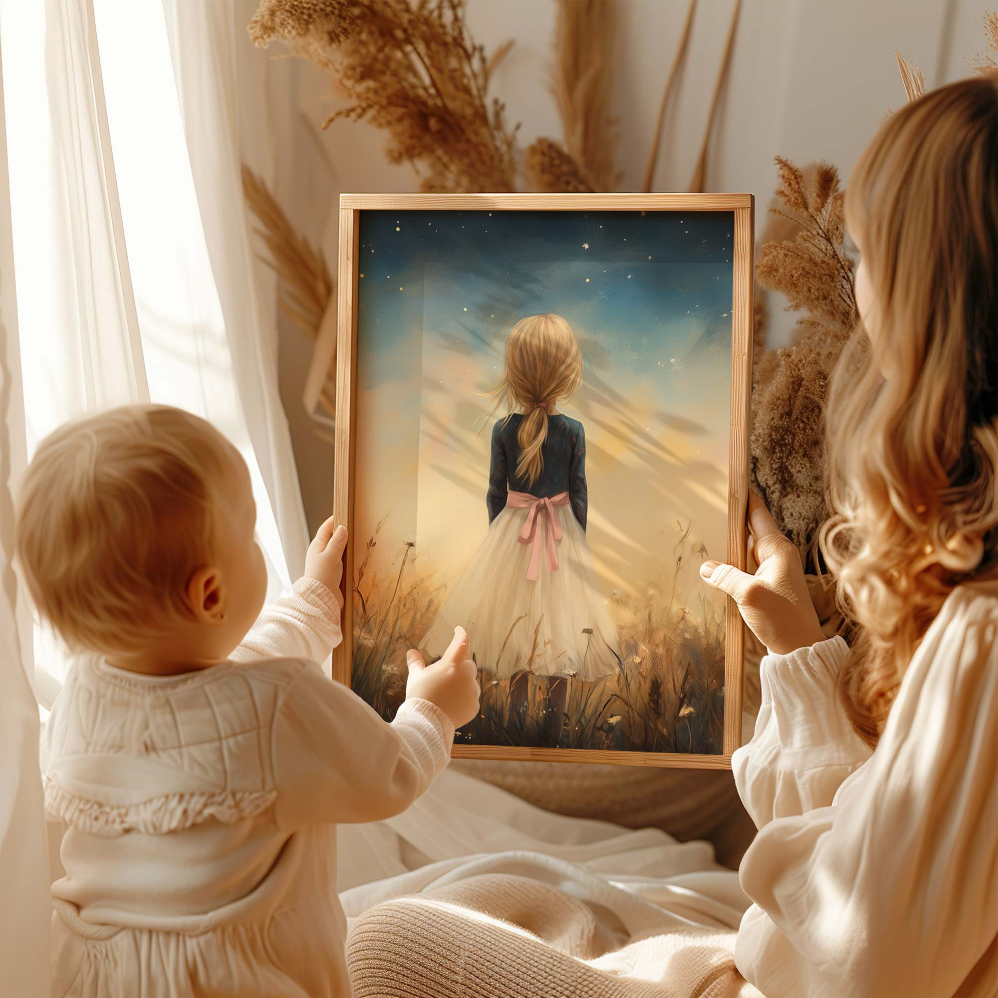 Dromerig Meisje in Bloemenveld onder Sterrenhemel