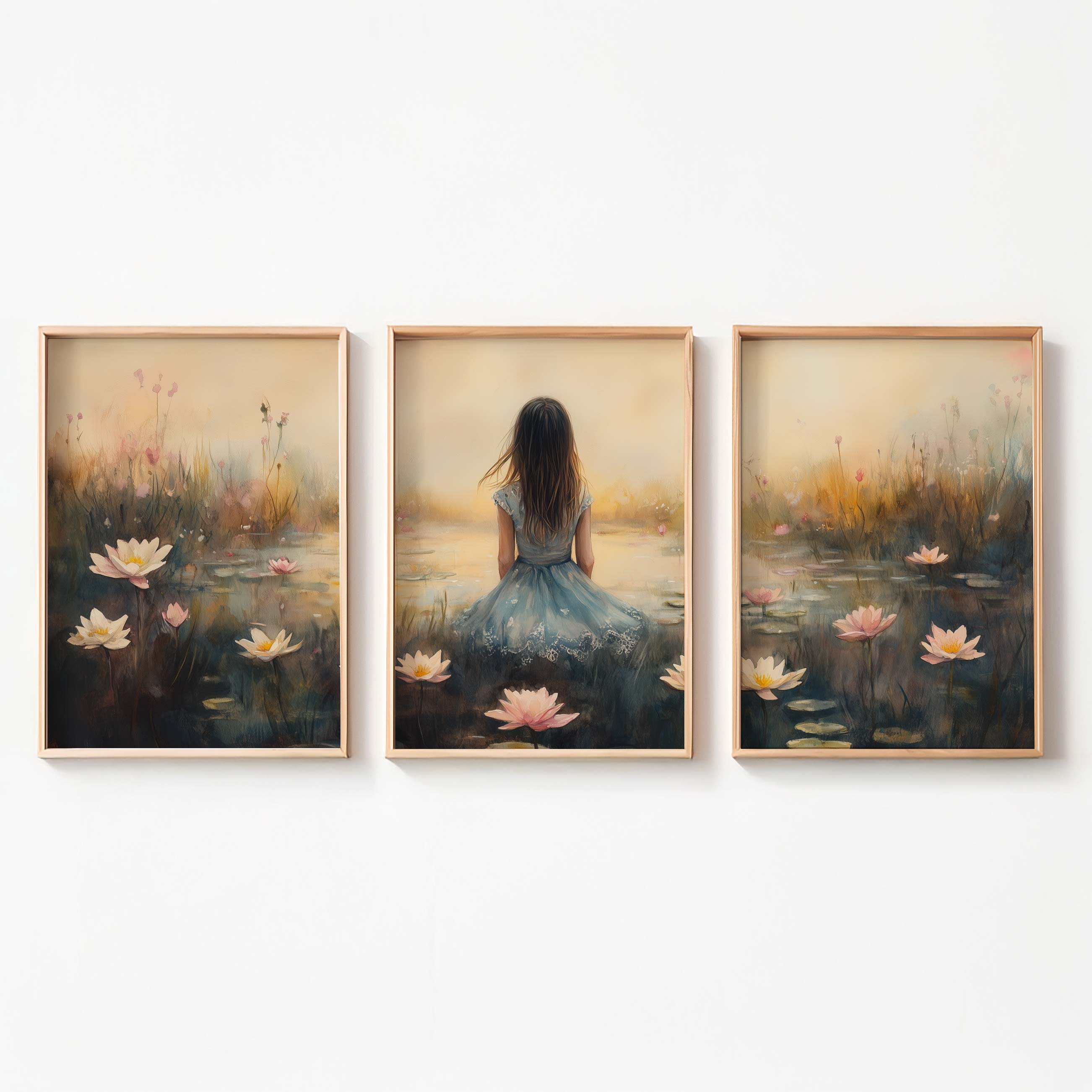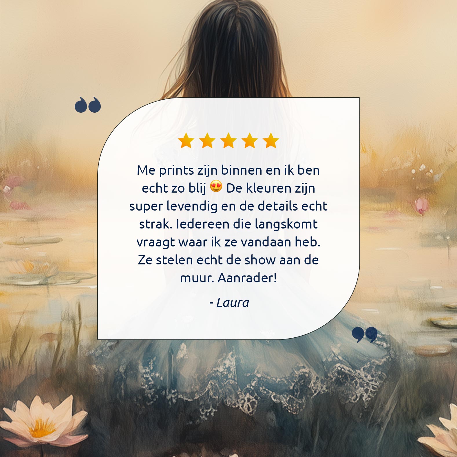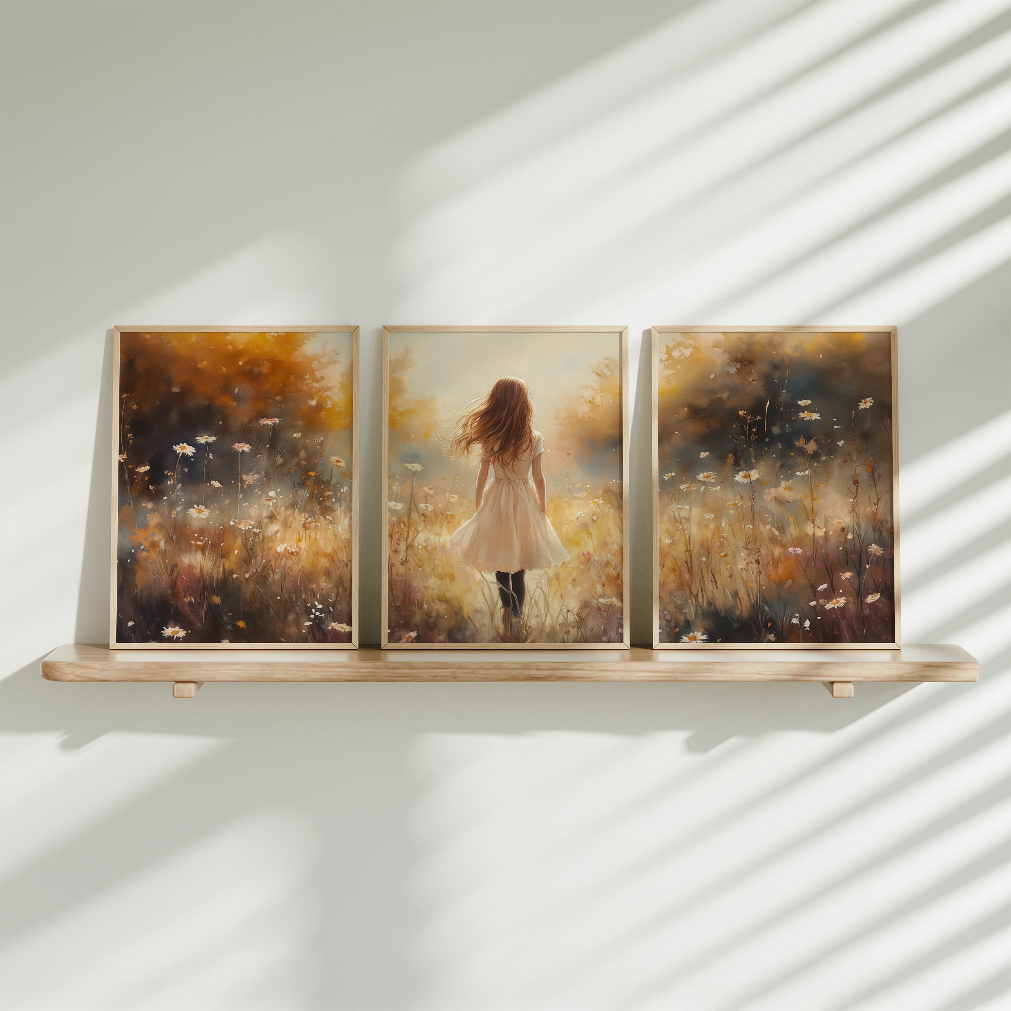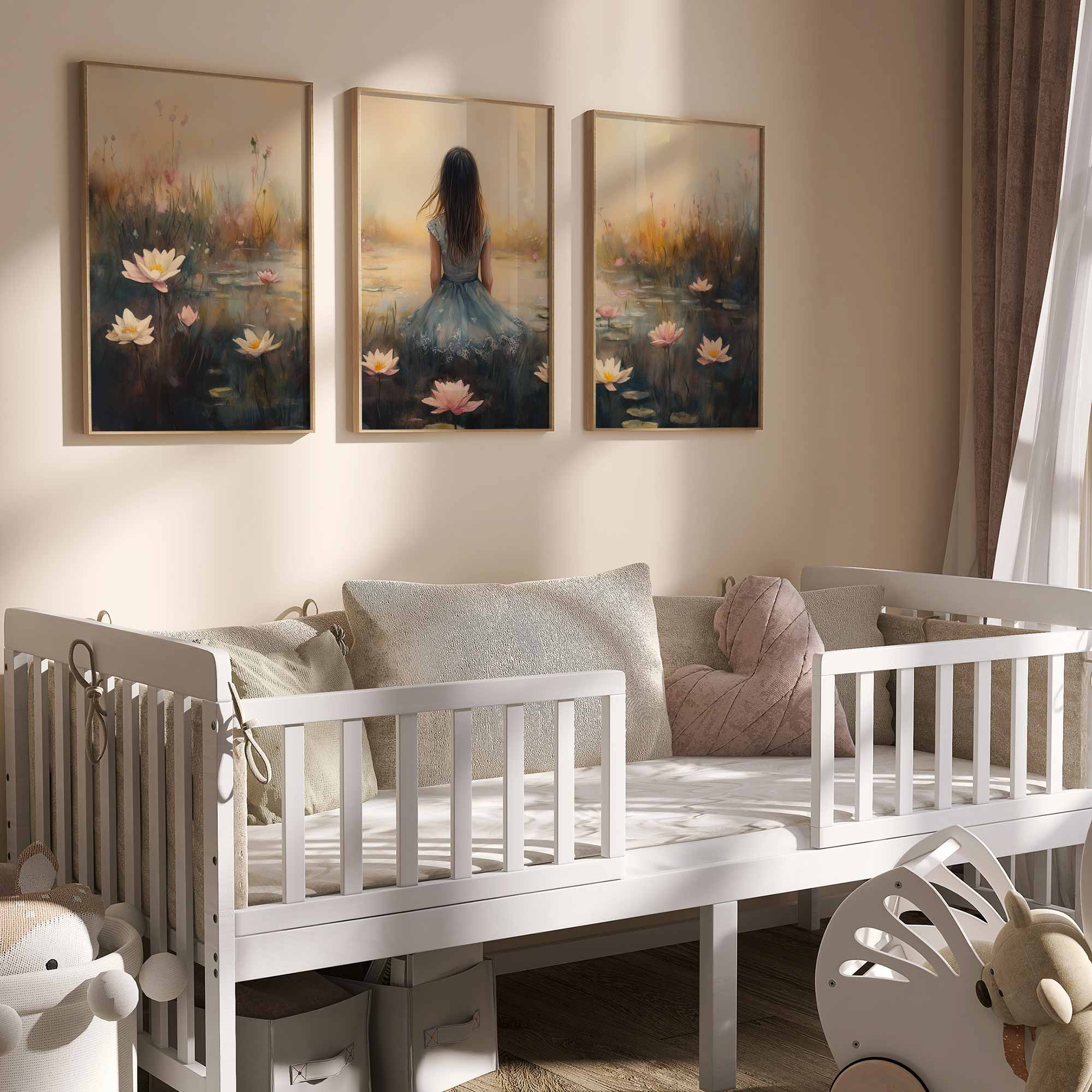 Terug naar collectie Posters Dromerig Meisje in Bloemenveld – Pastel Blauw en Roze