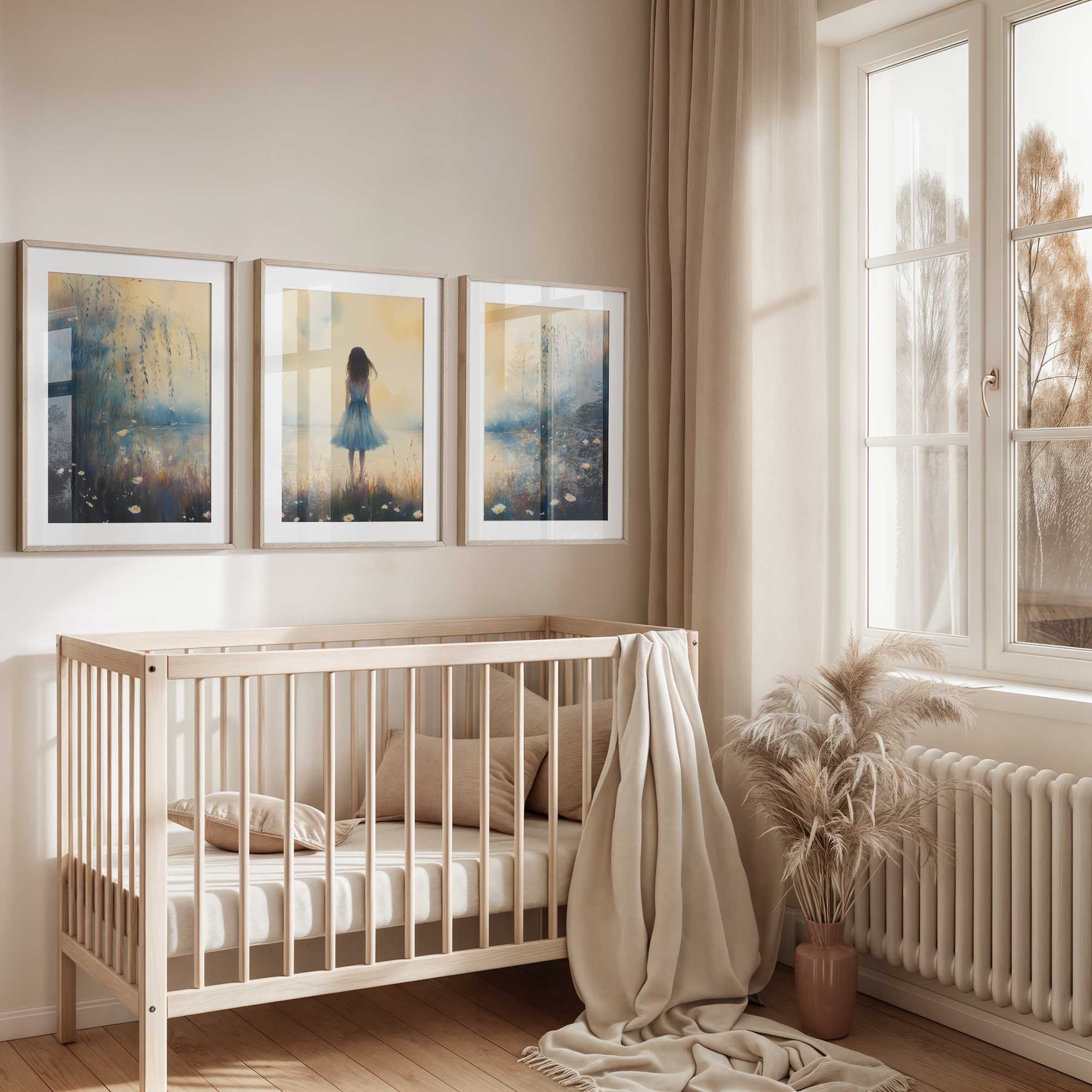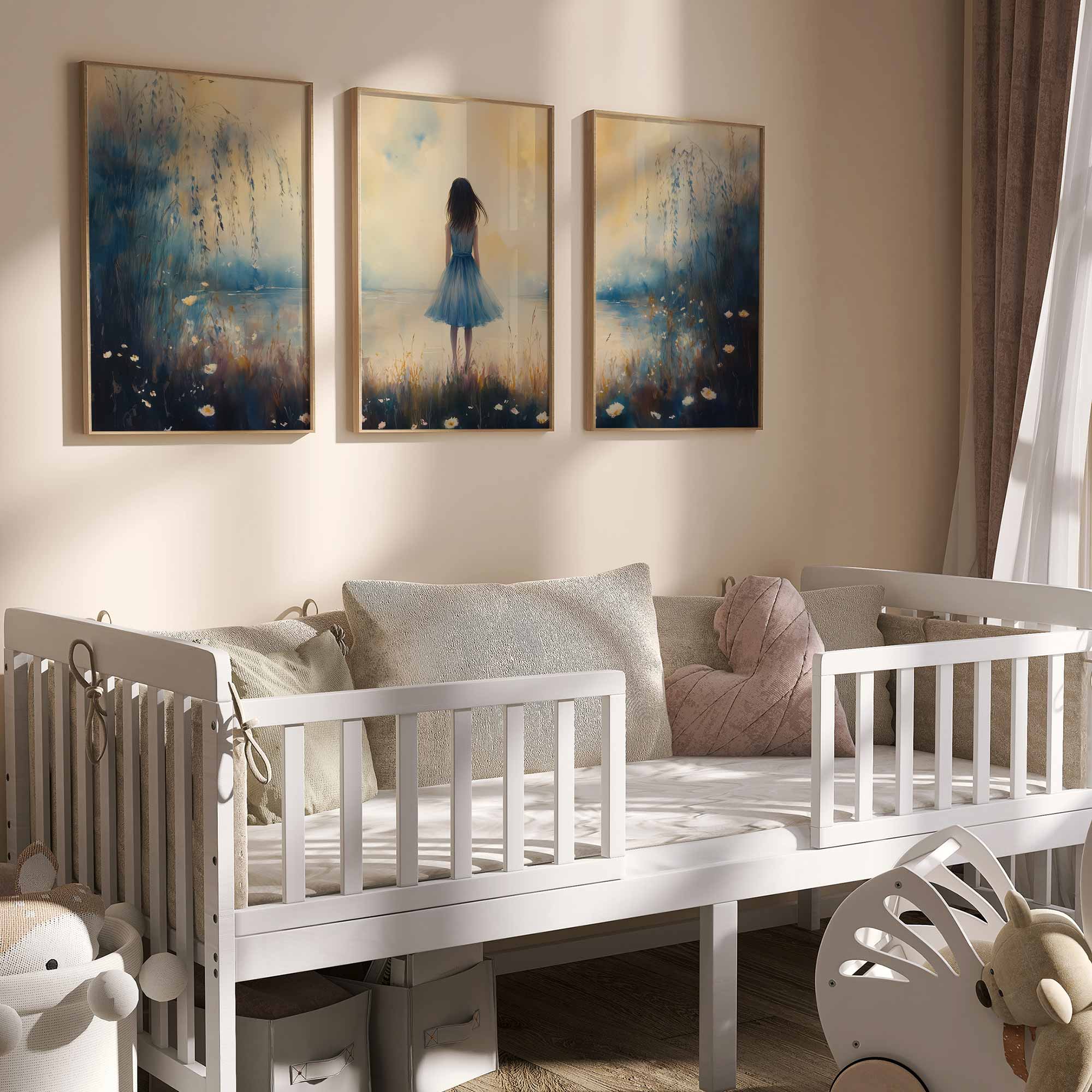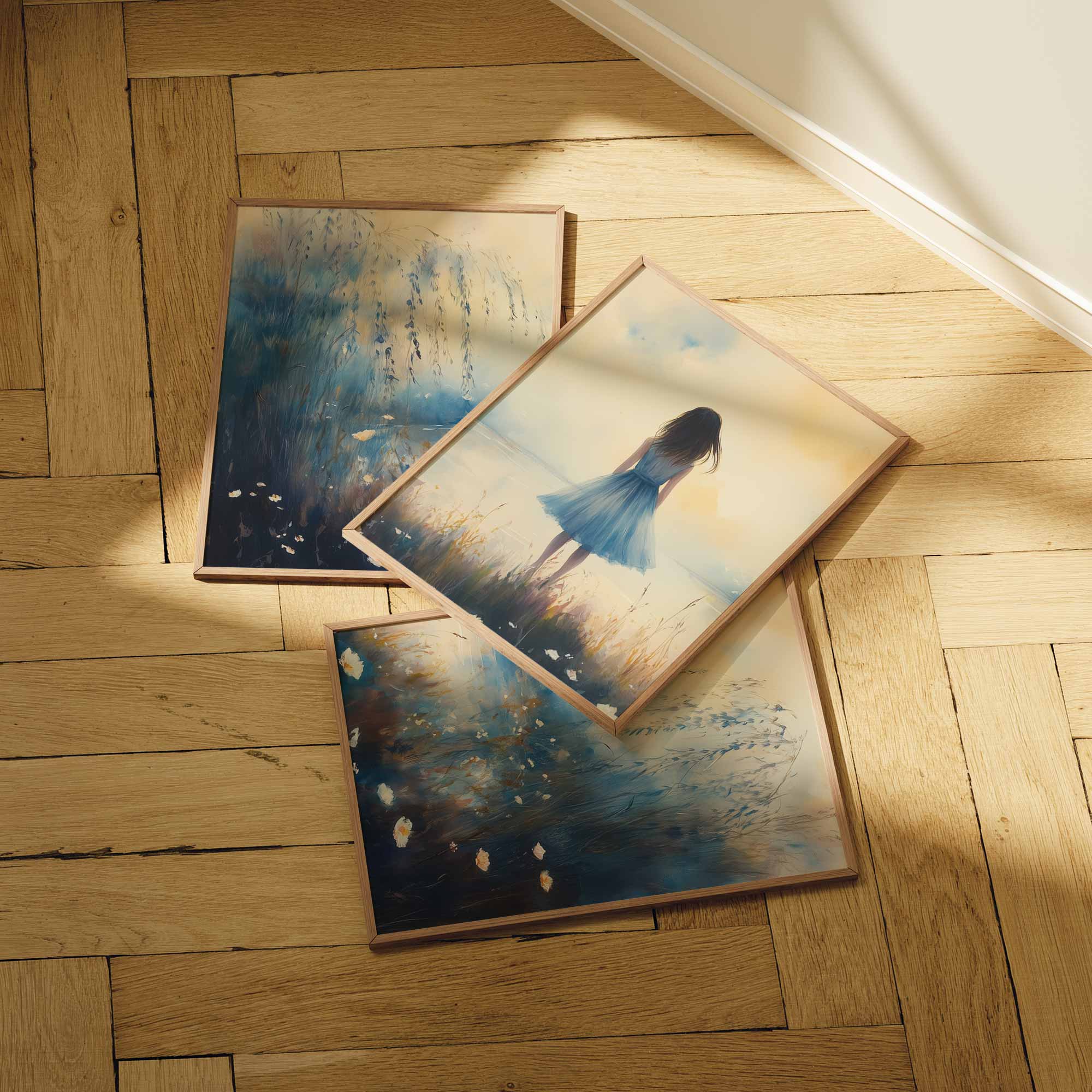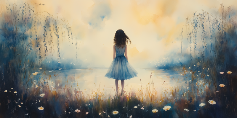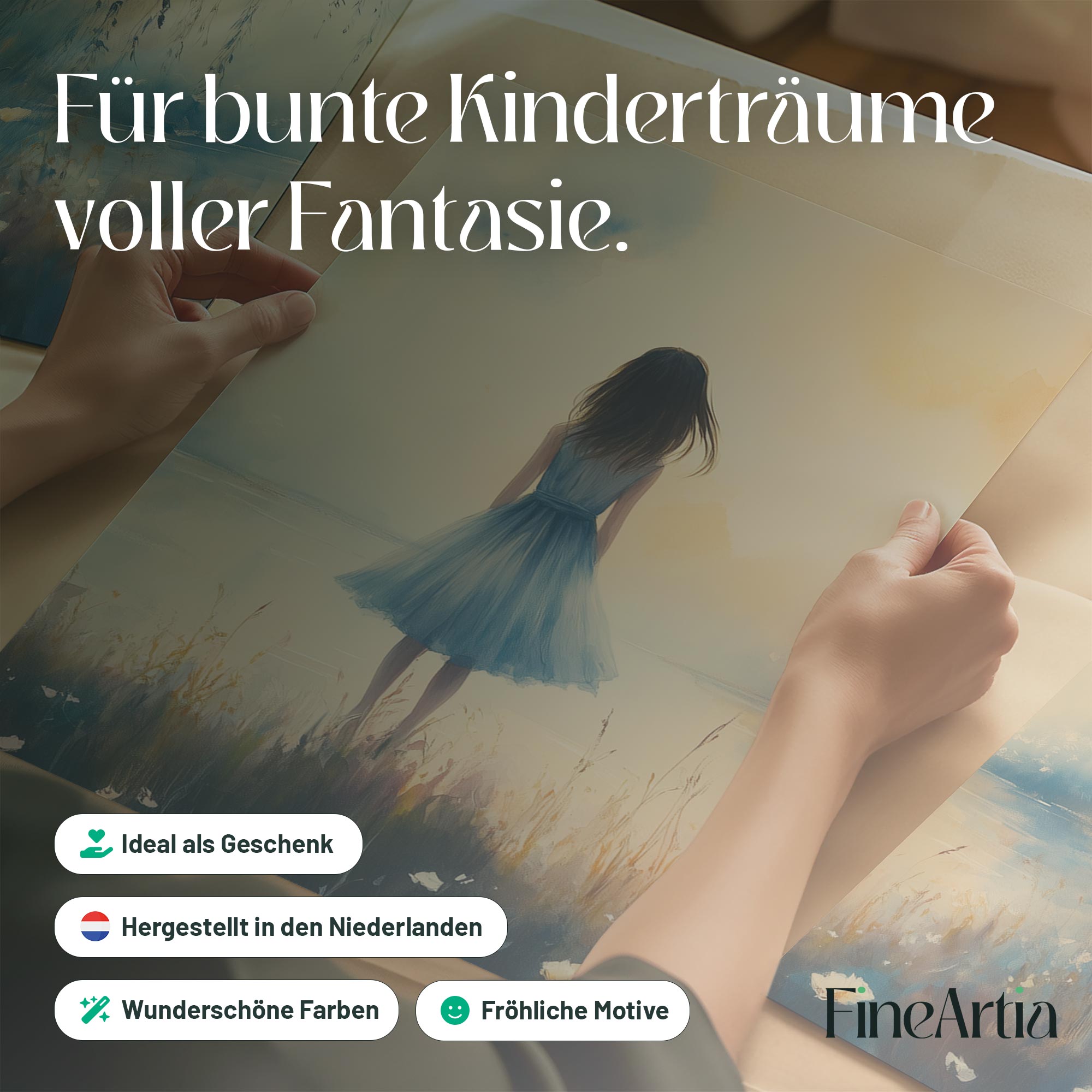 Dromerig Meisje in Bloemenveld – Pastel Blauwe Jurk