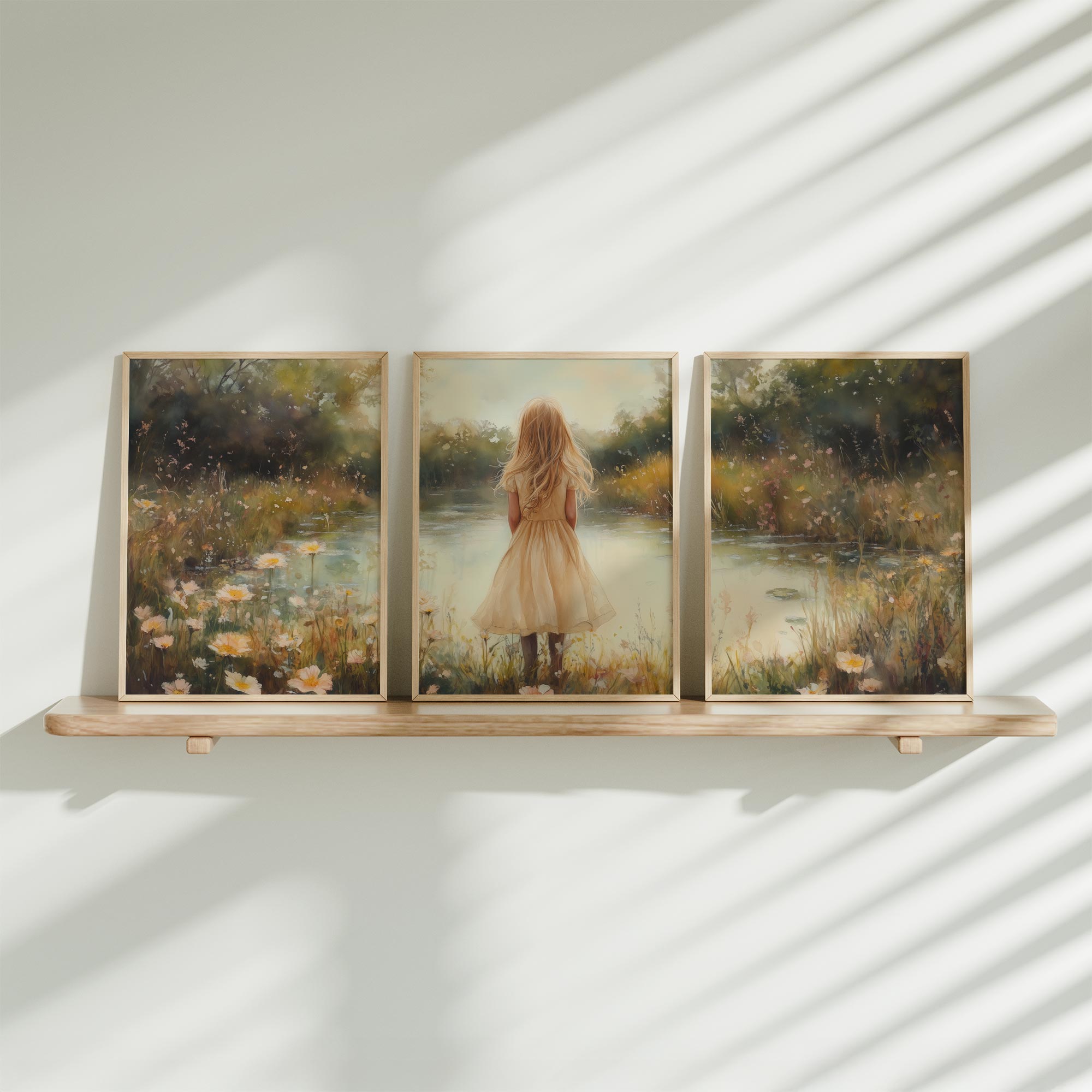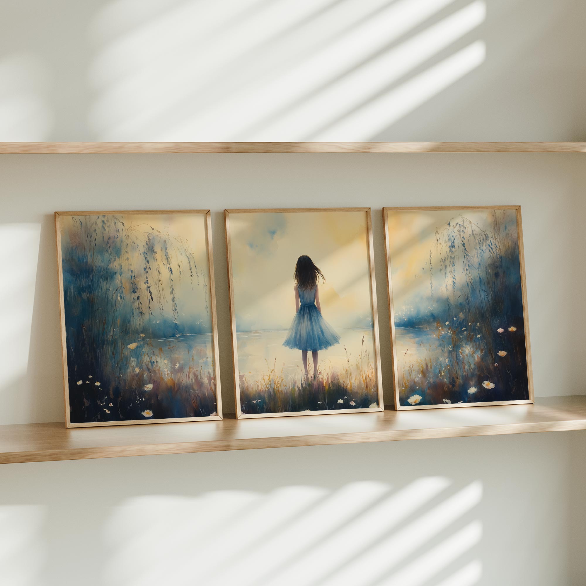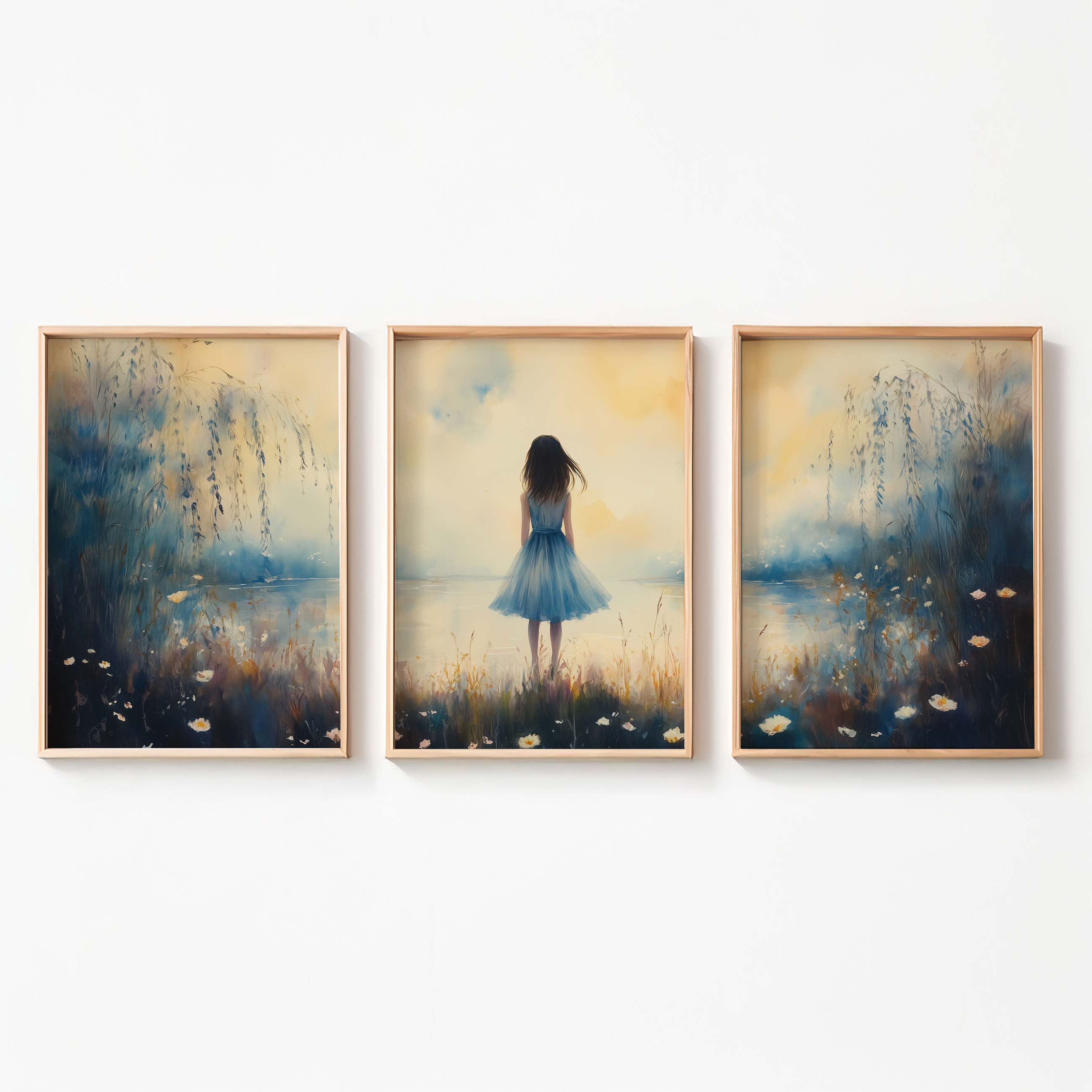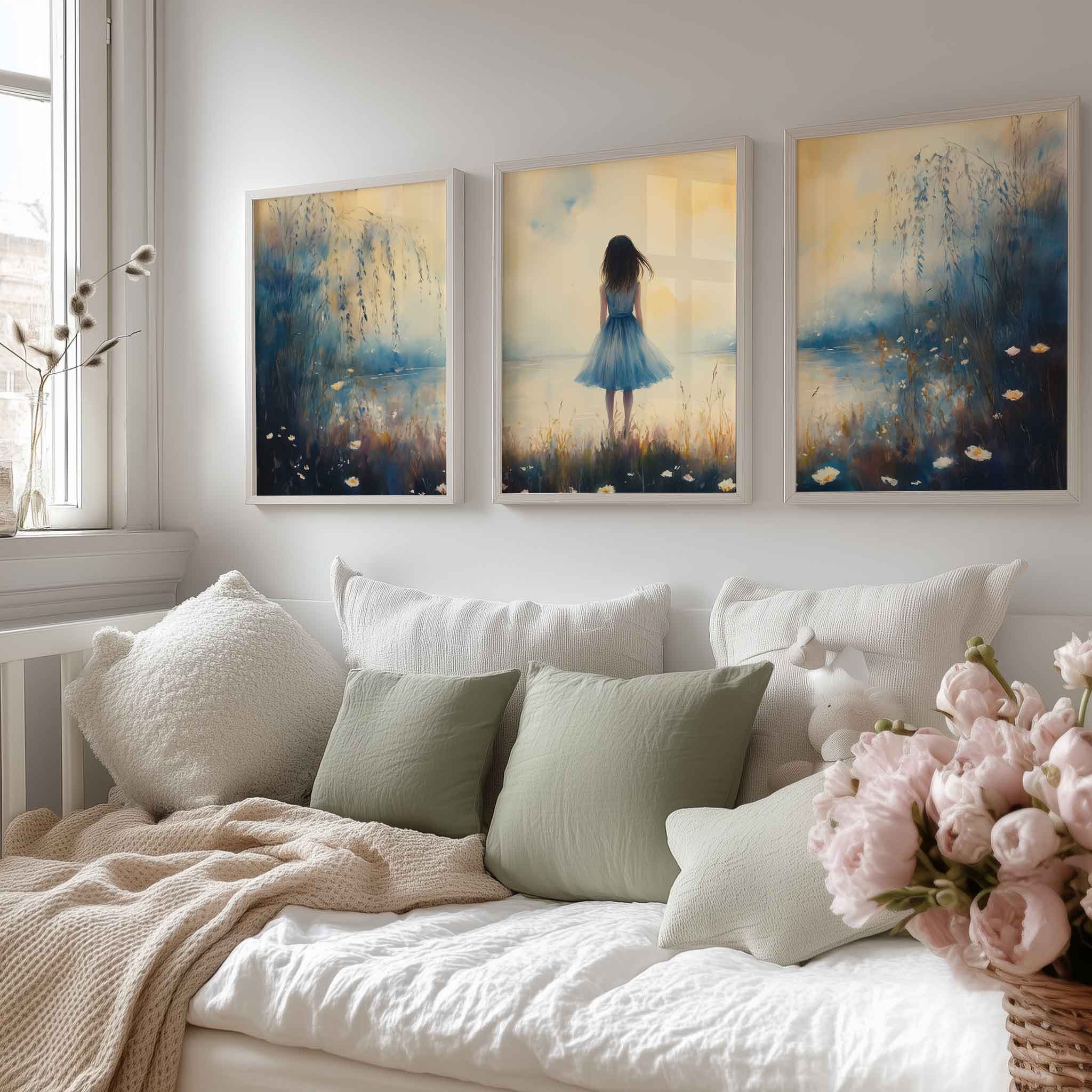Dromerig Meisje in Bloemenveld – Pastel Blauwe Jurk