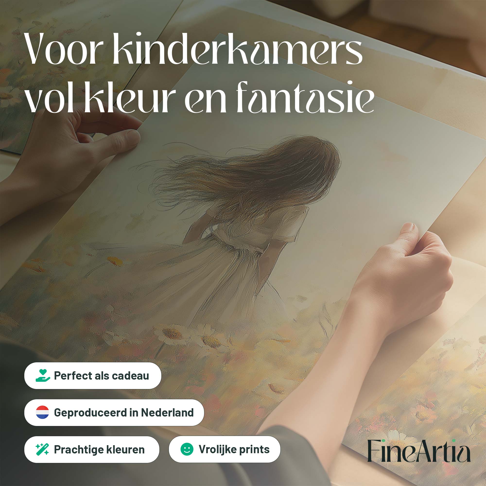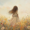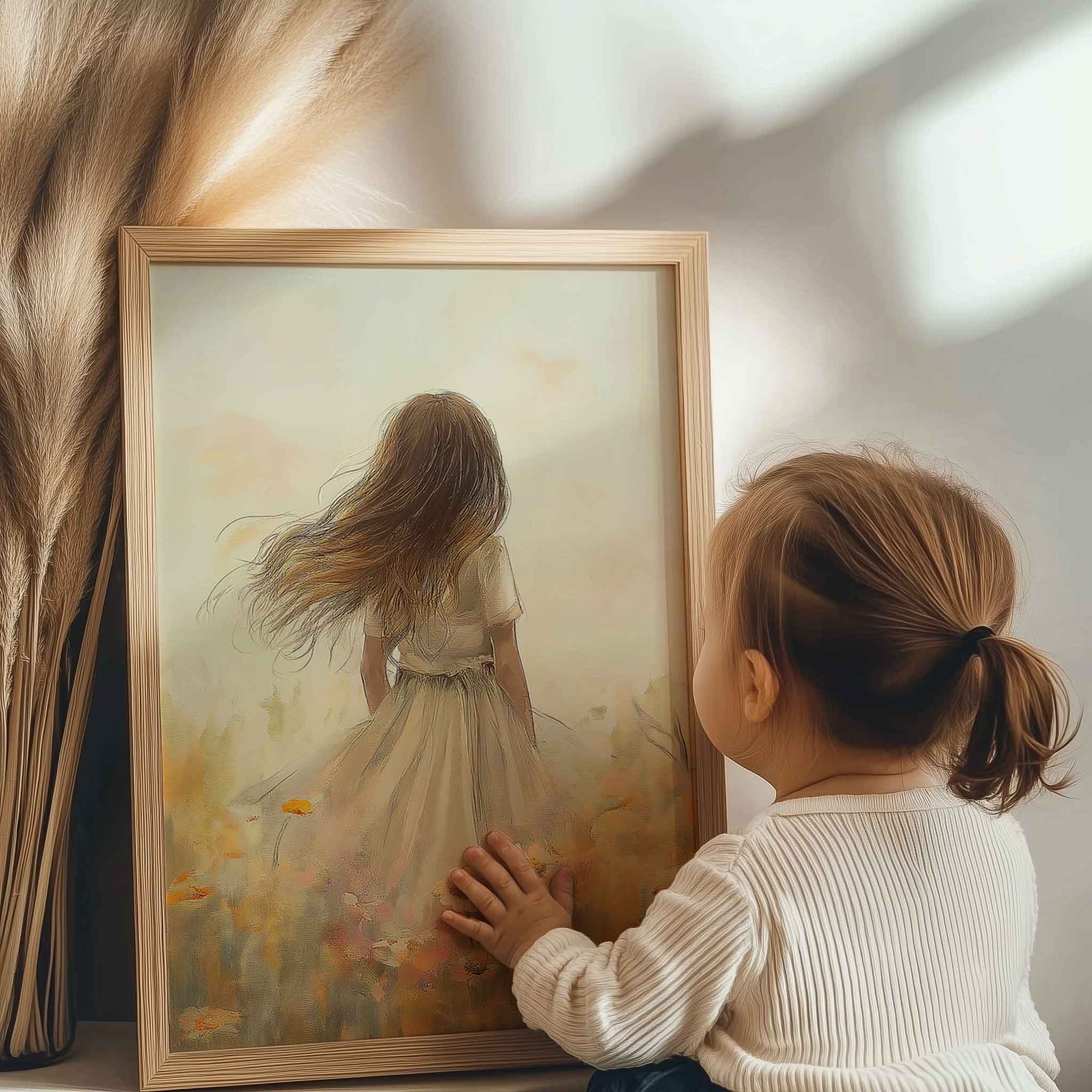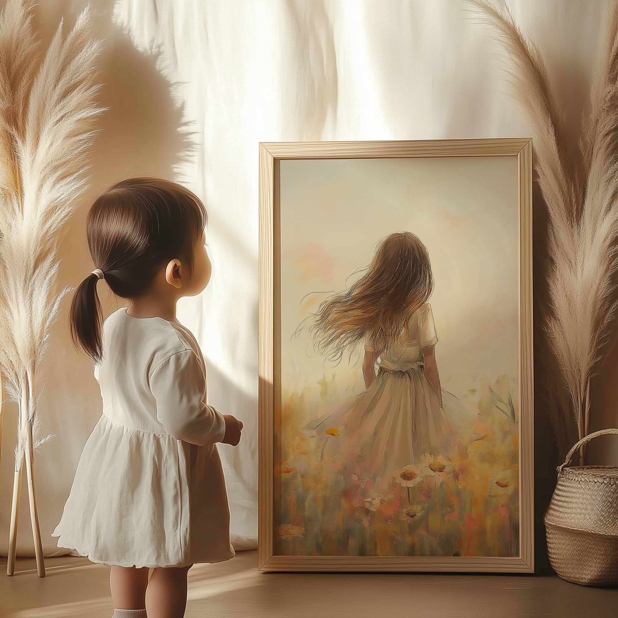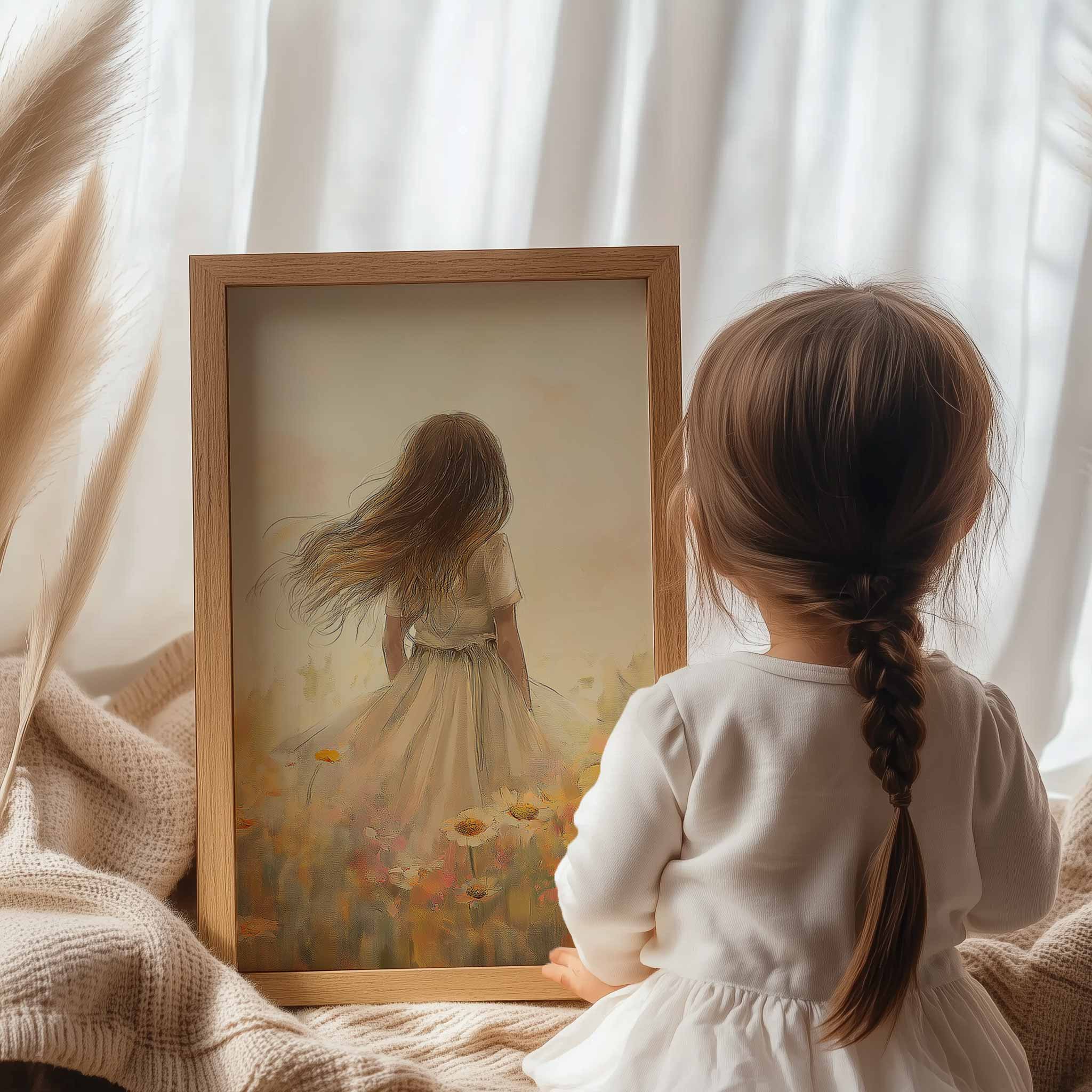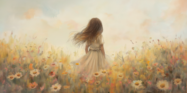 Dromerig Meisje in Bloemenveld – Pastel Schilderij