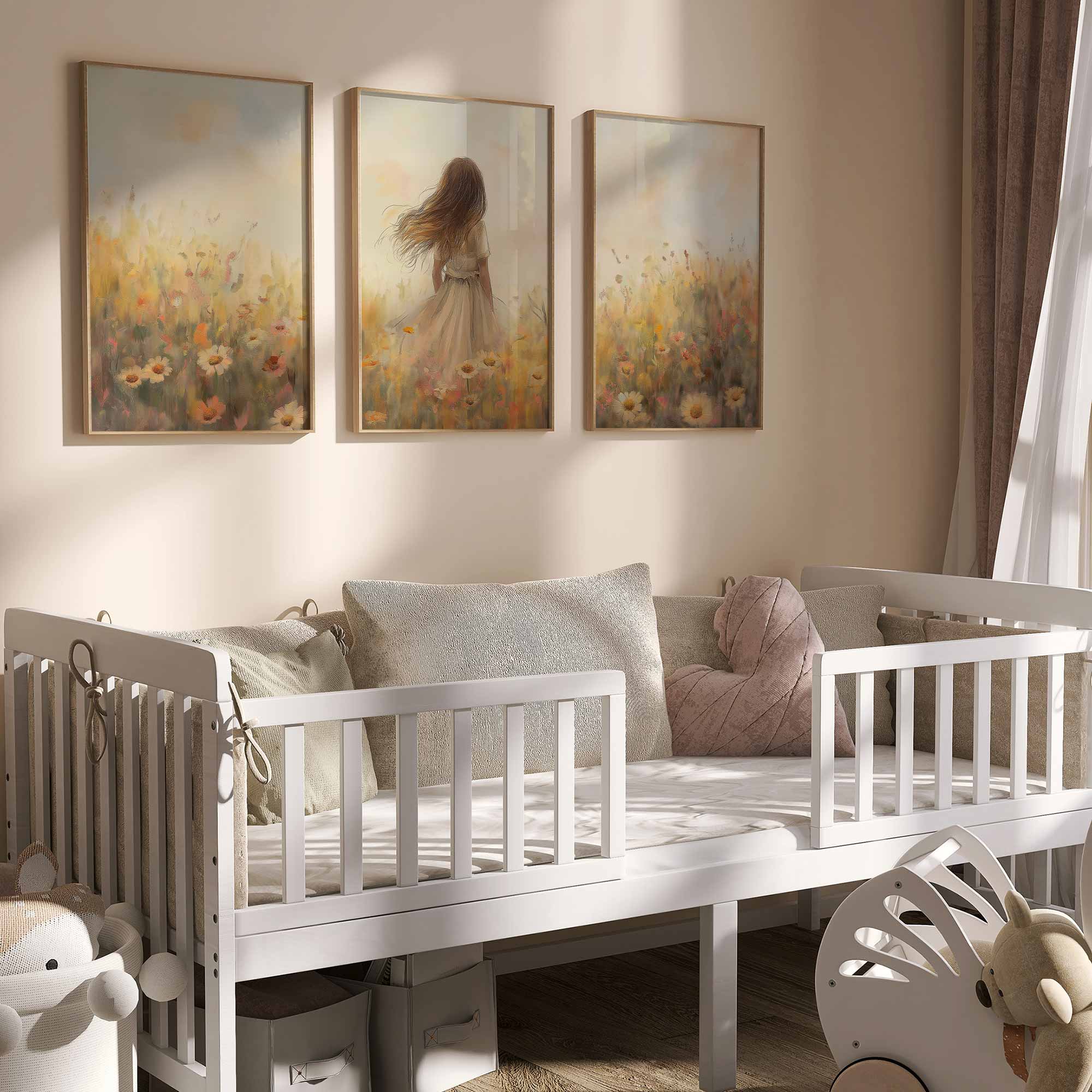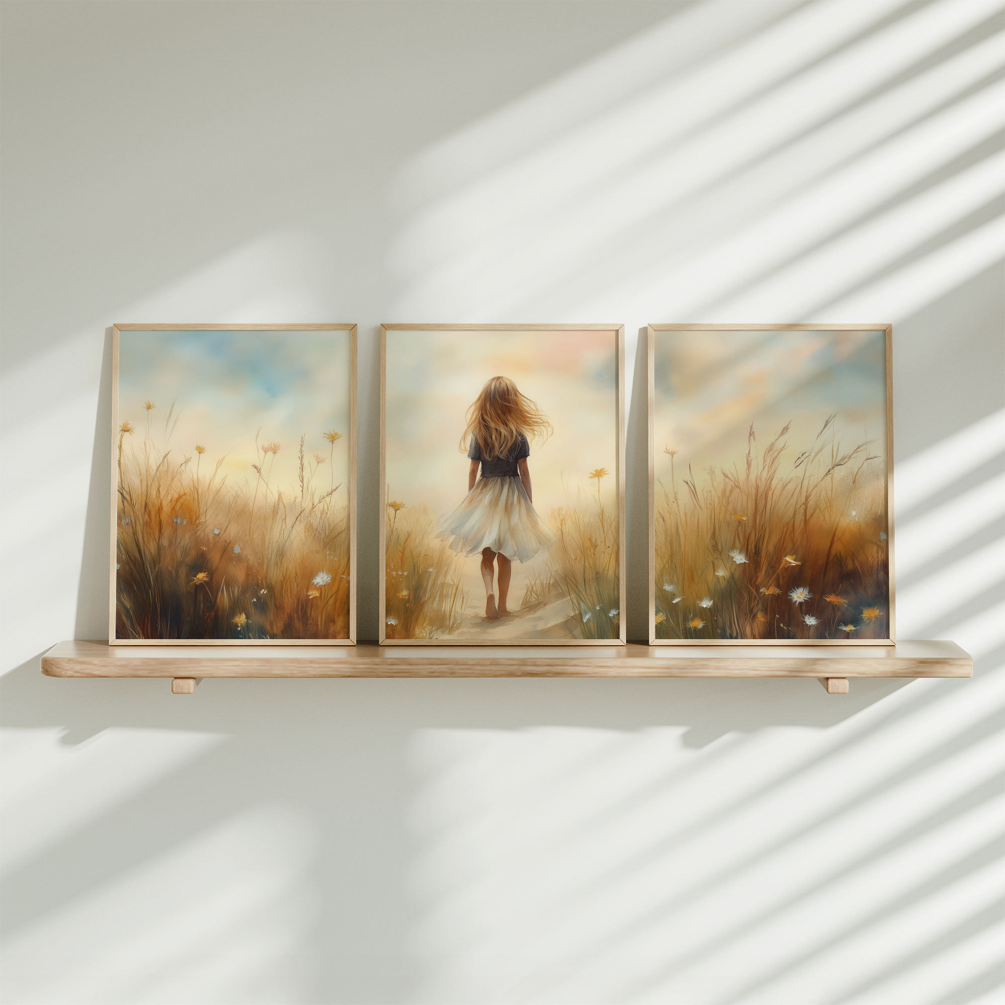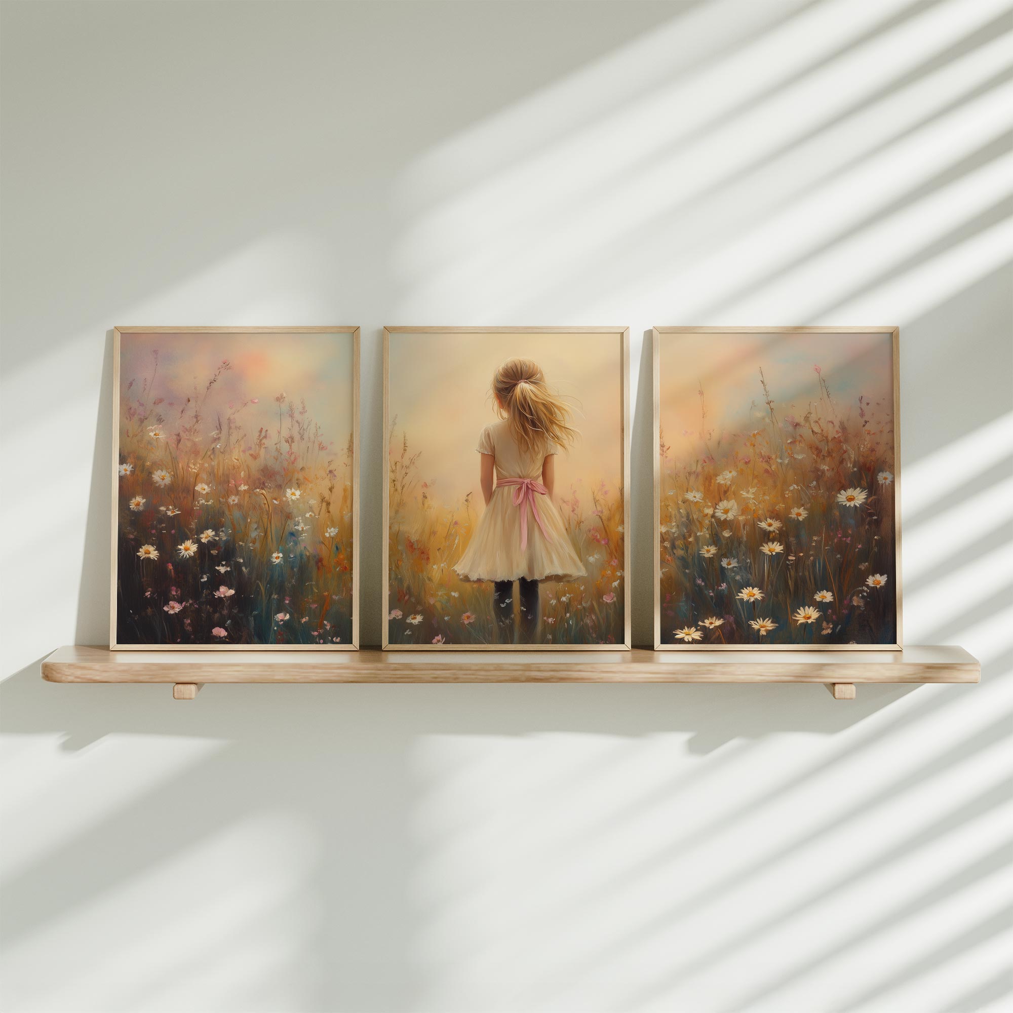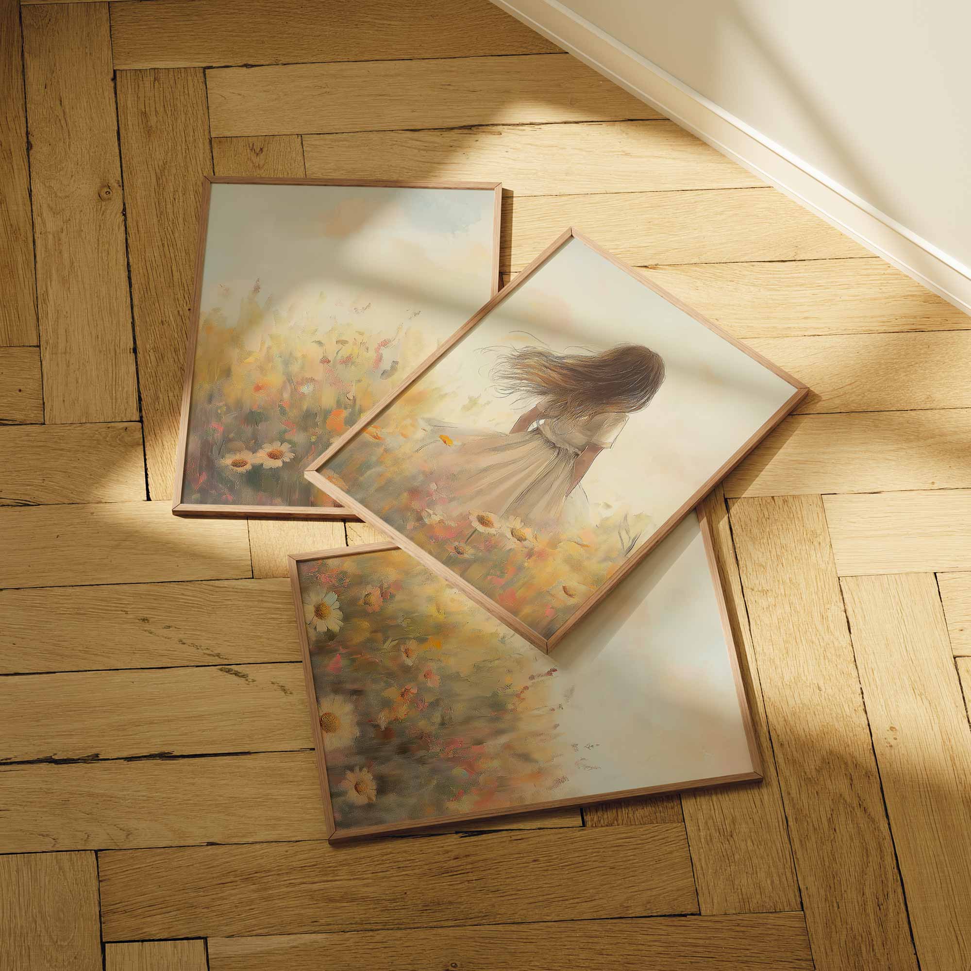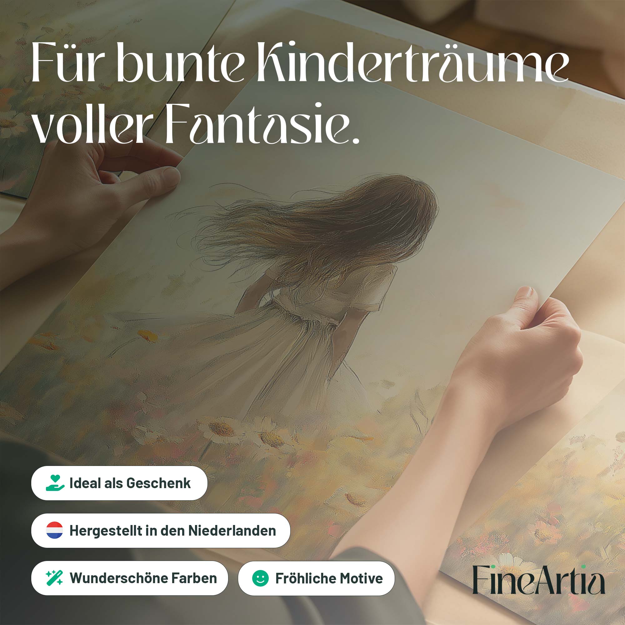 Dromerig Meisje in Bloemenveld – Pastel Schilderij