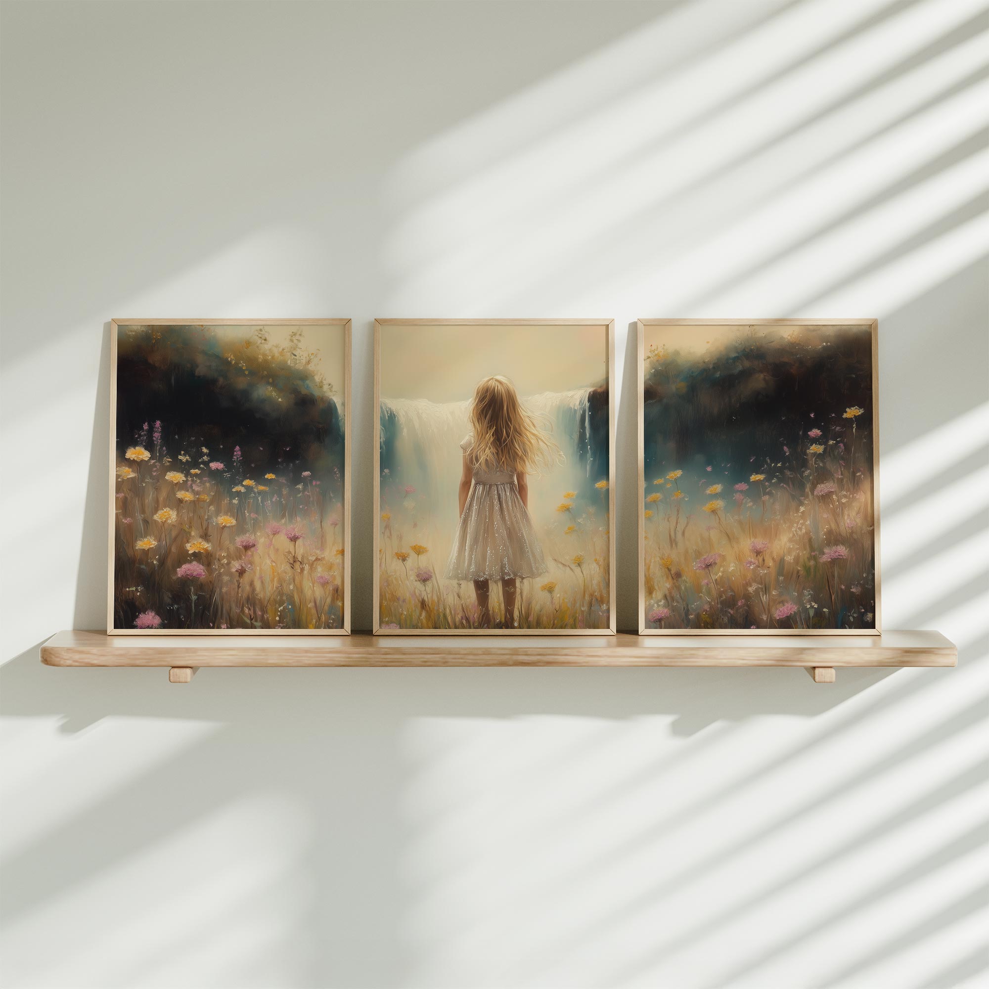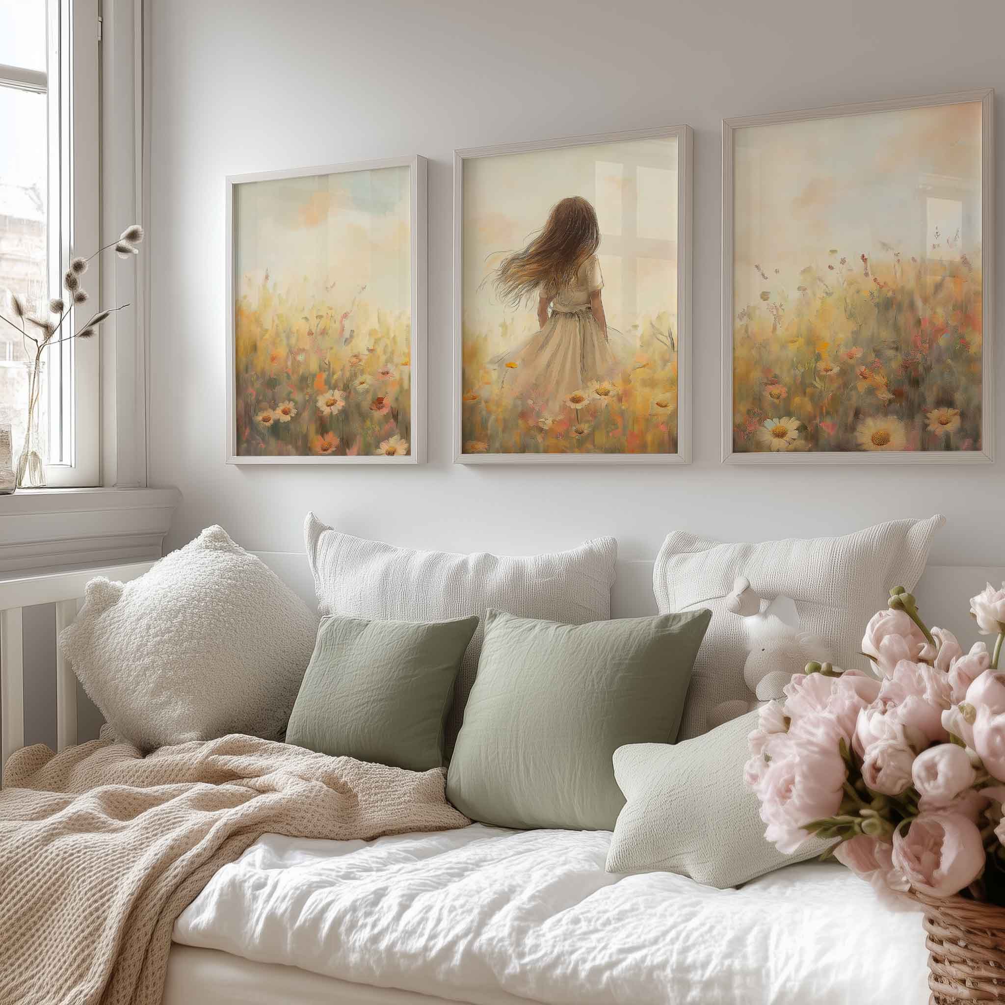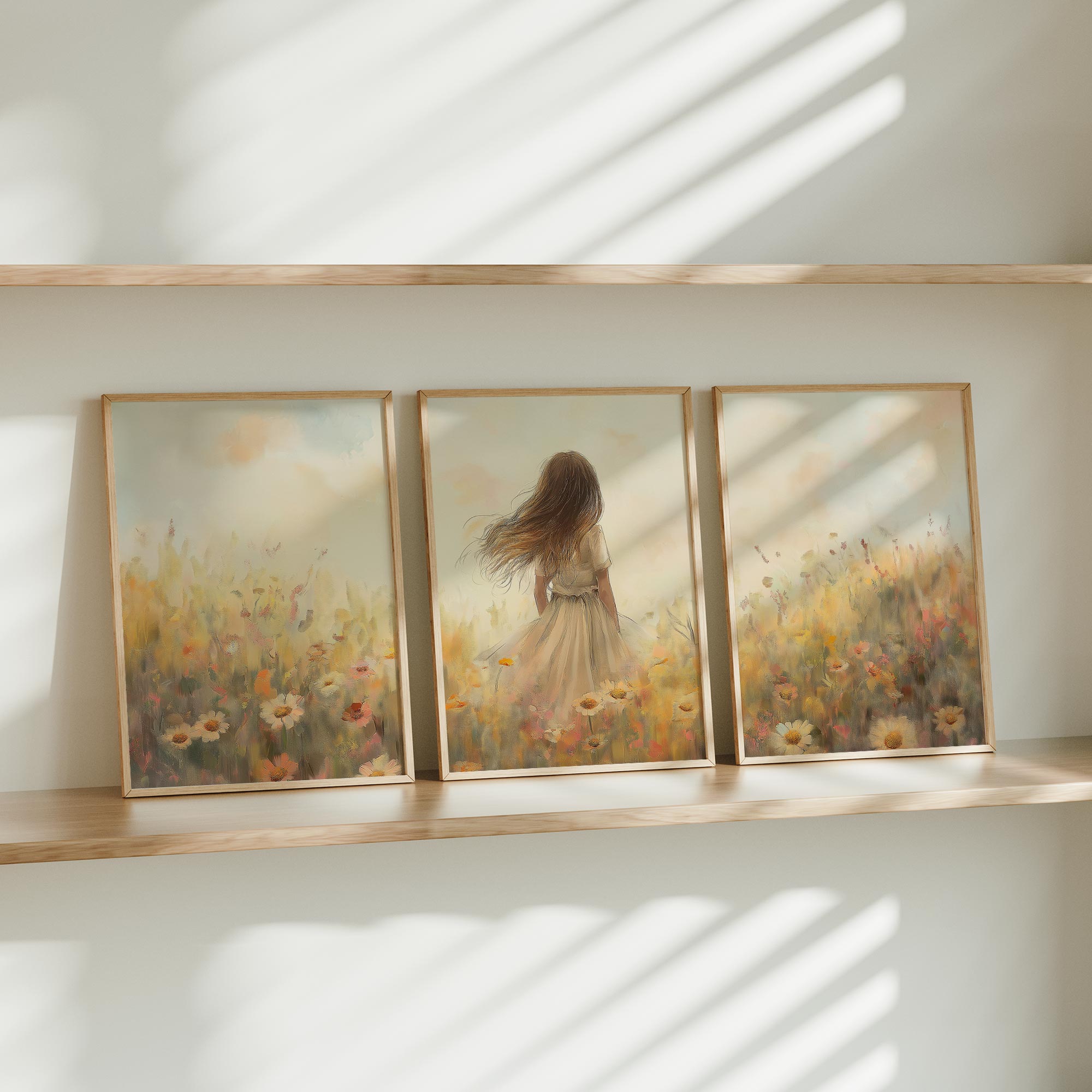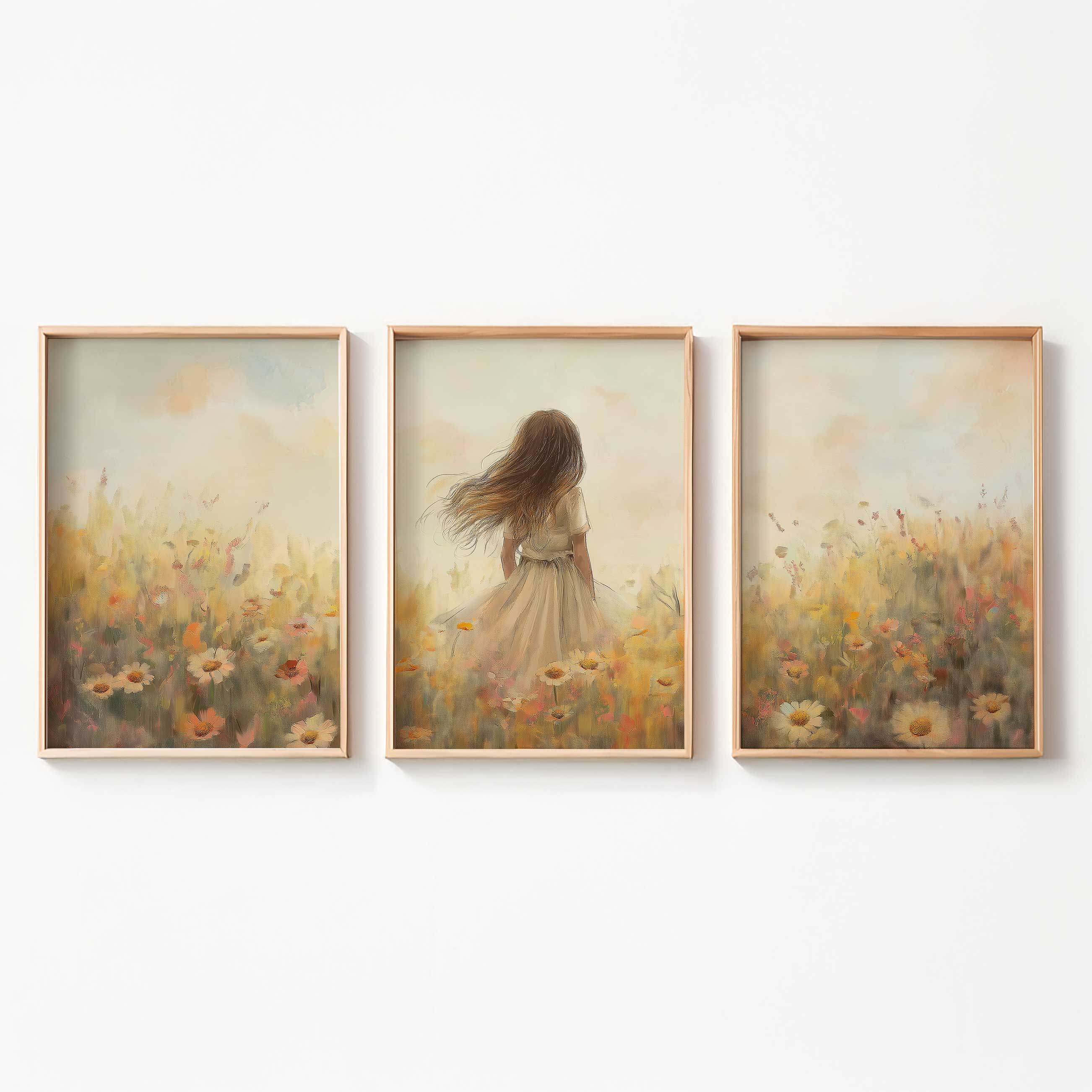 Dromerig Meisje in Bloemenveld – Pastel Schilderij