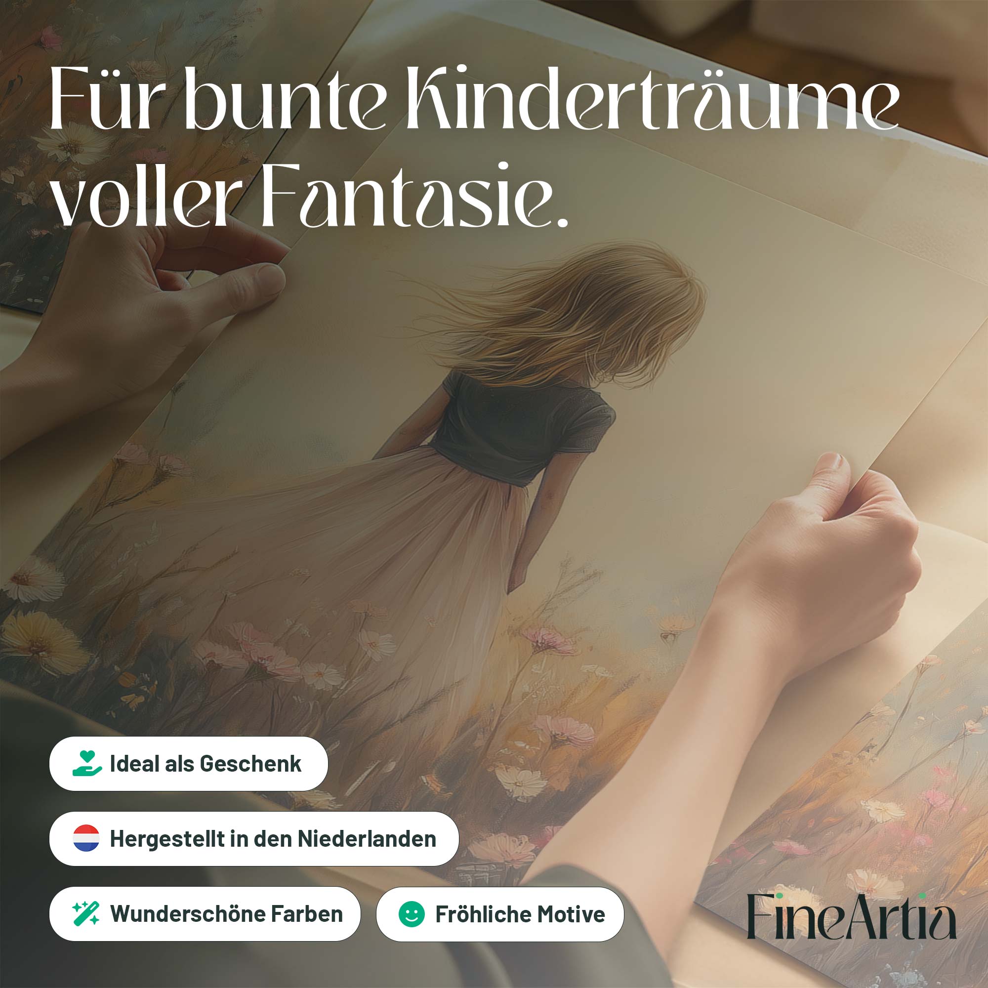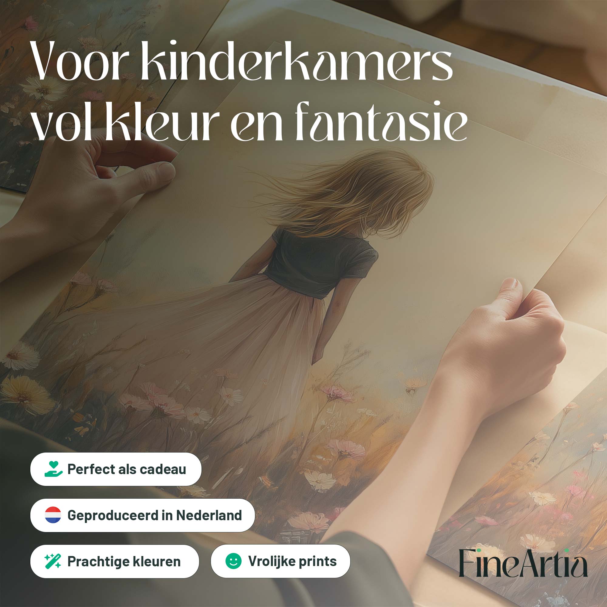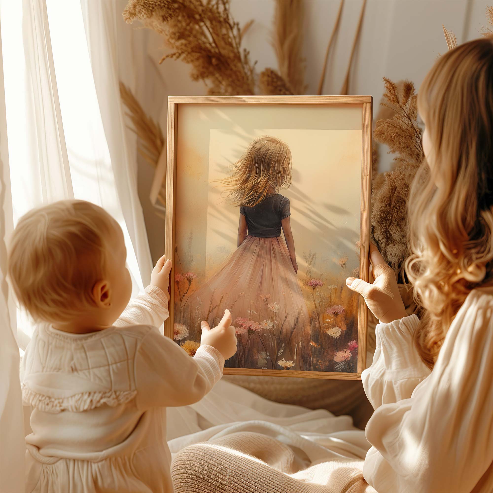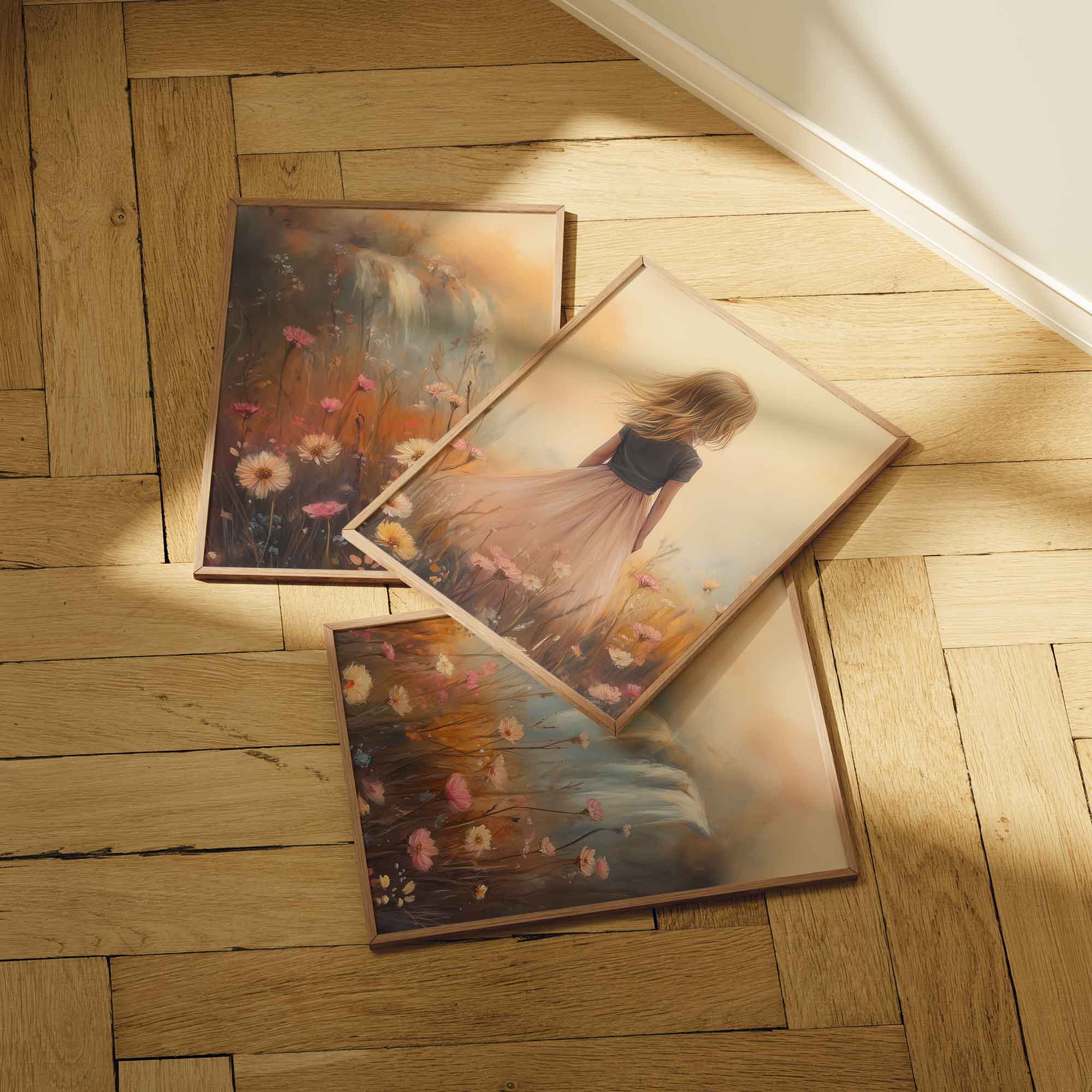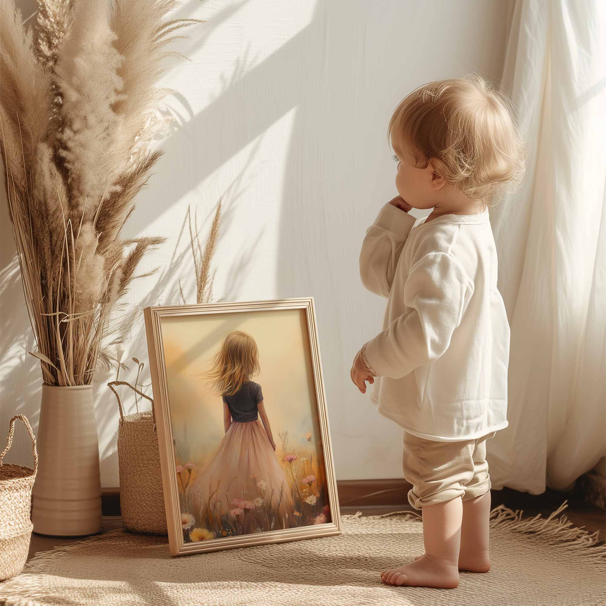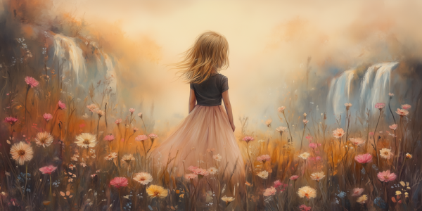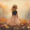 Dromerig Meisje in Bloemenveld – Pastel Schilderij