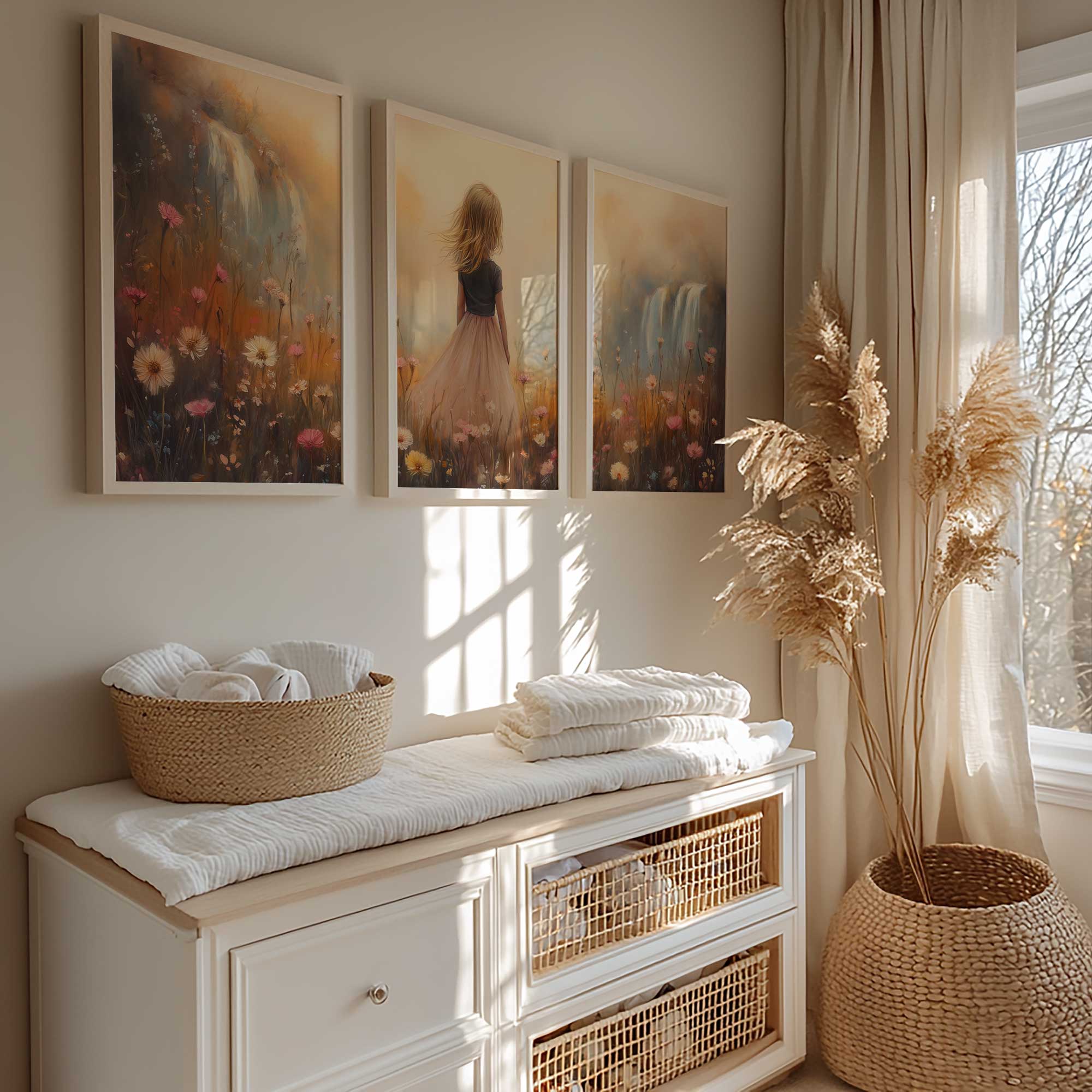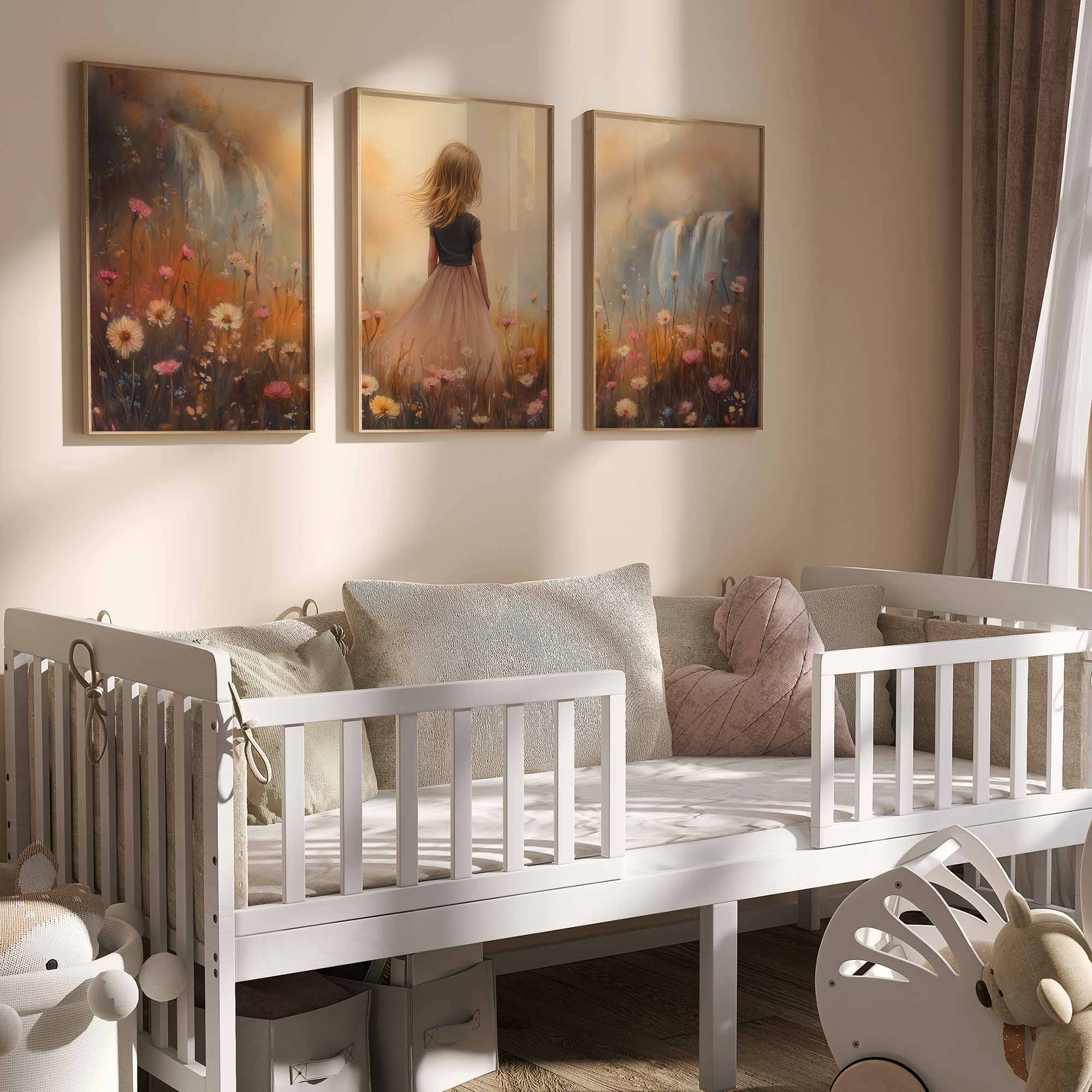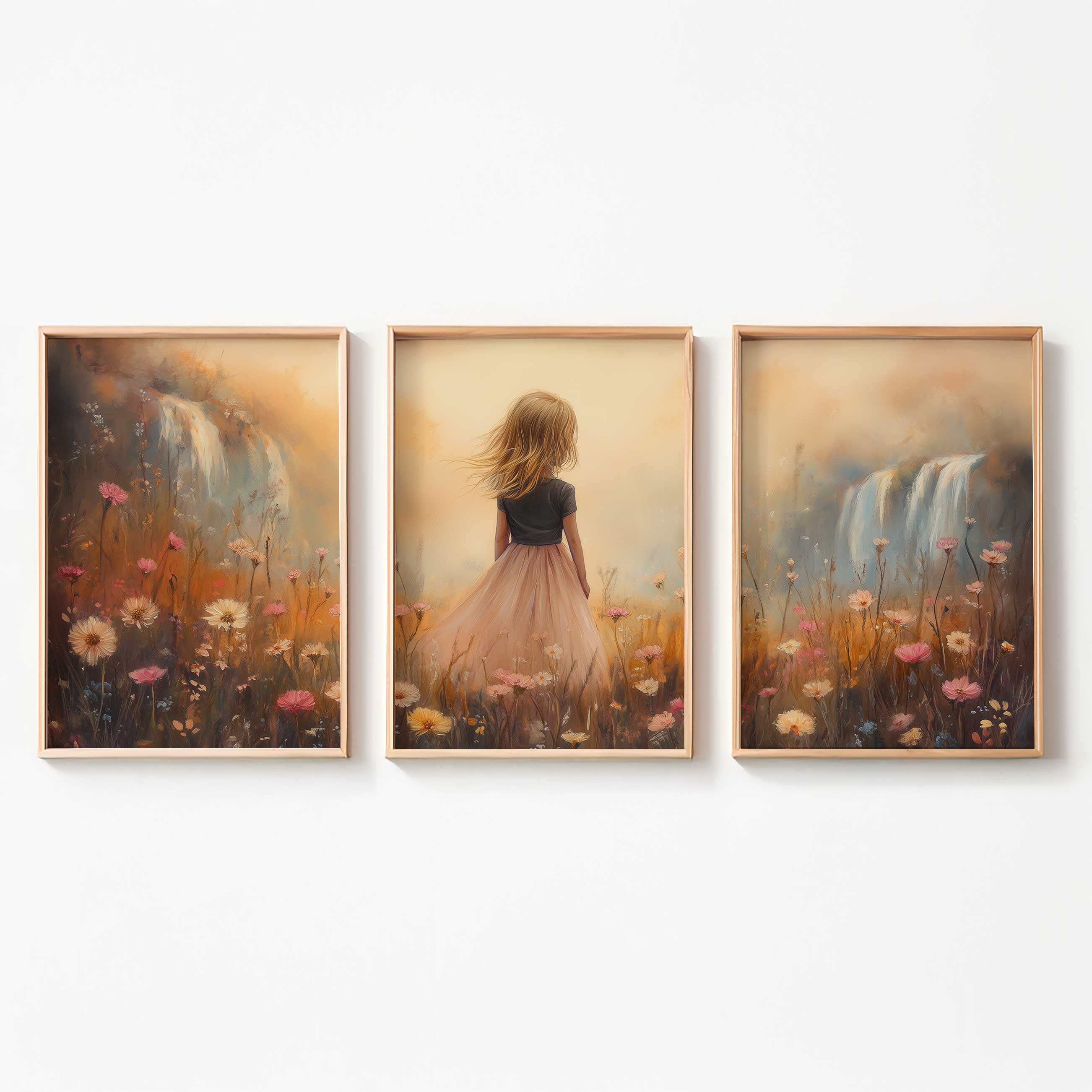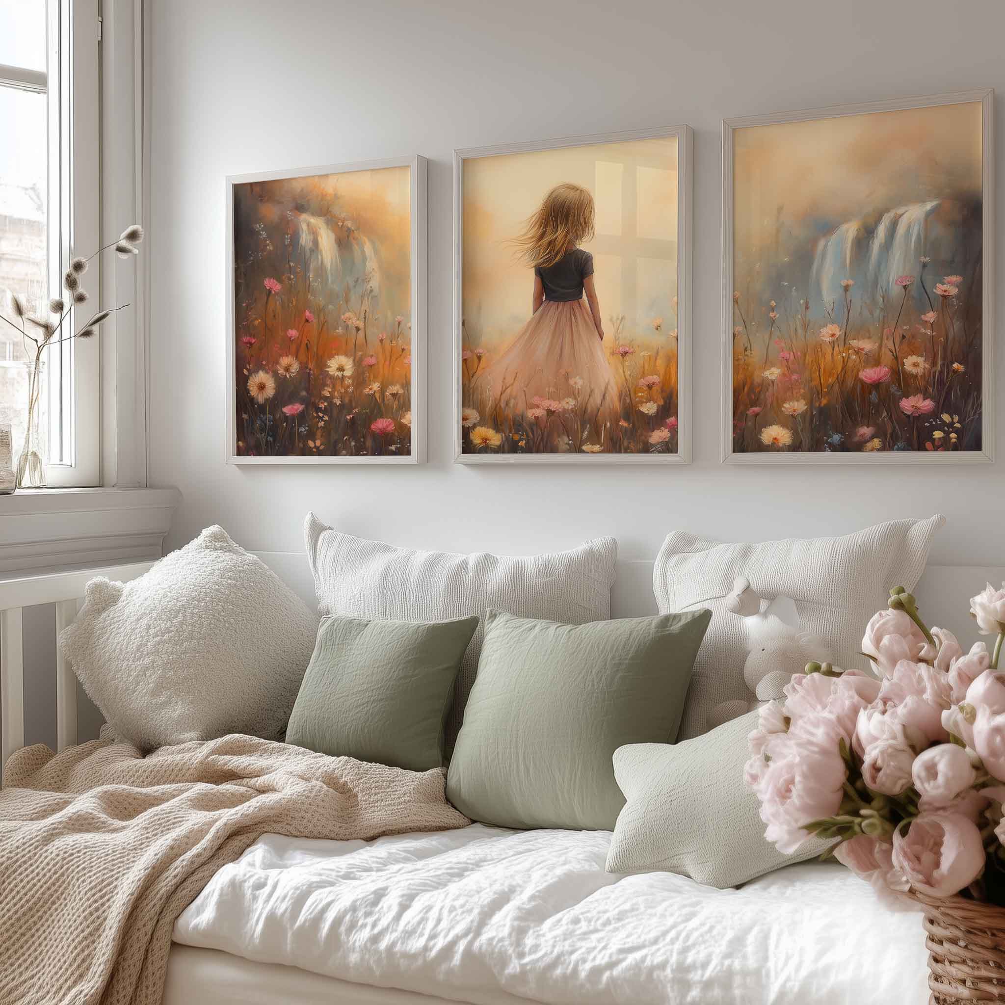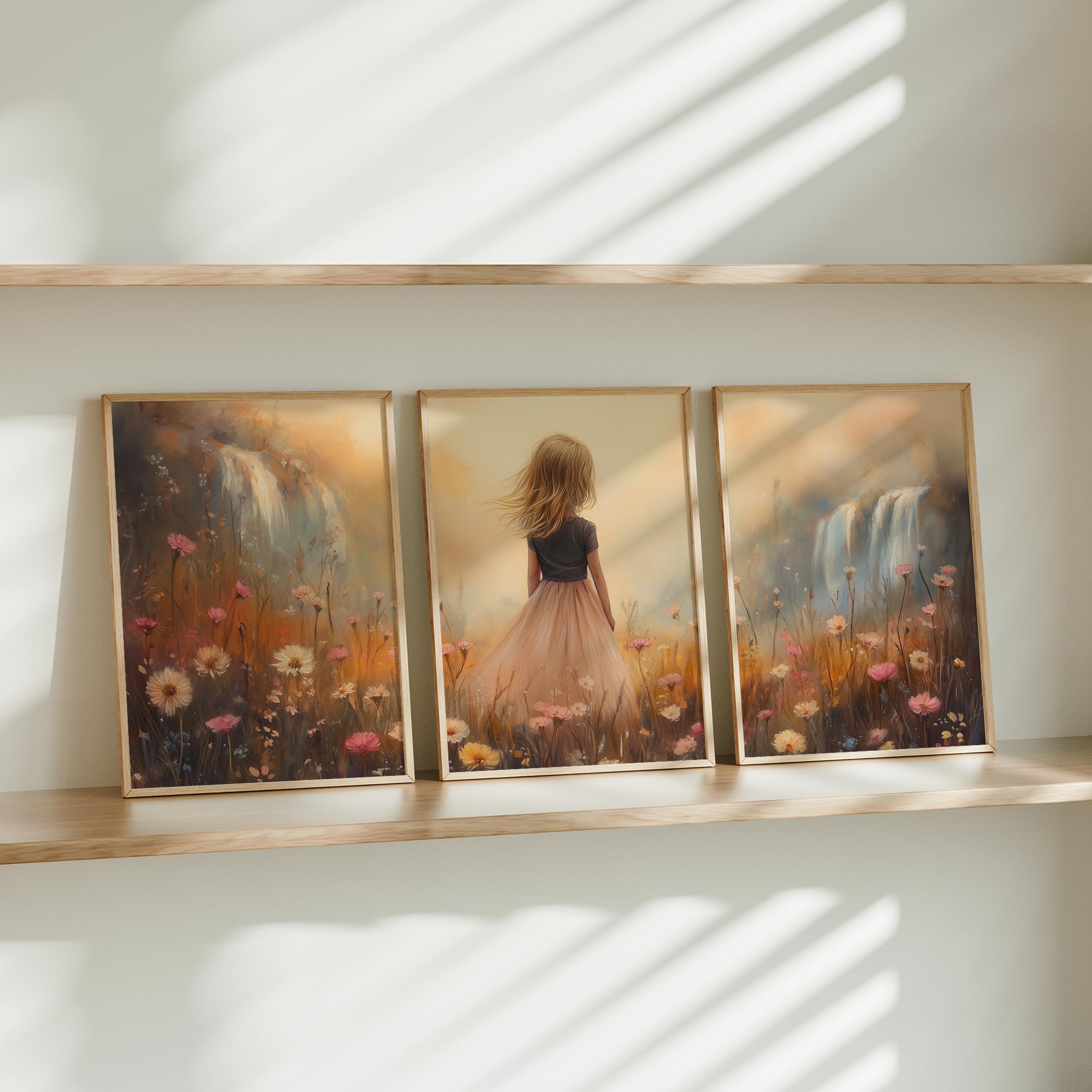 Dromerig Meisje in Bloemenveld – Pastel Schilderij