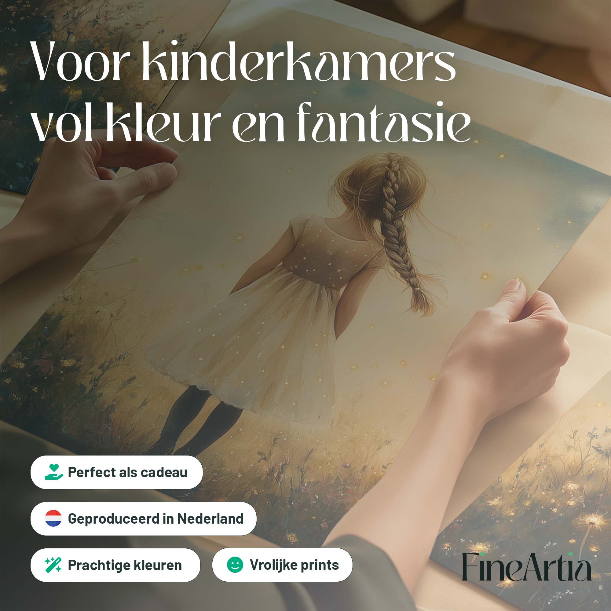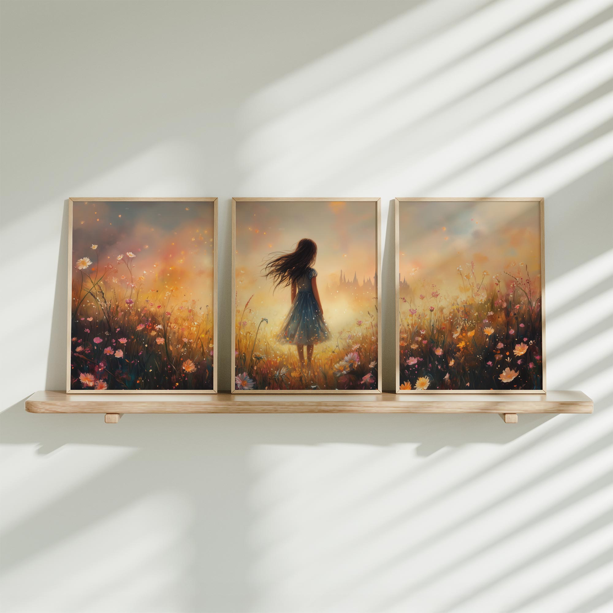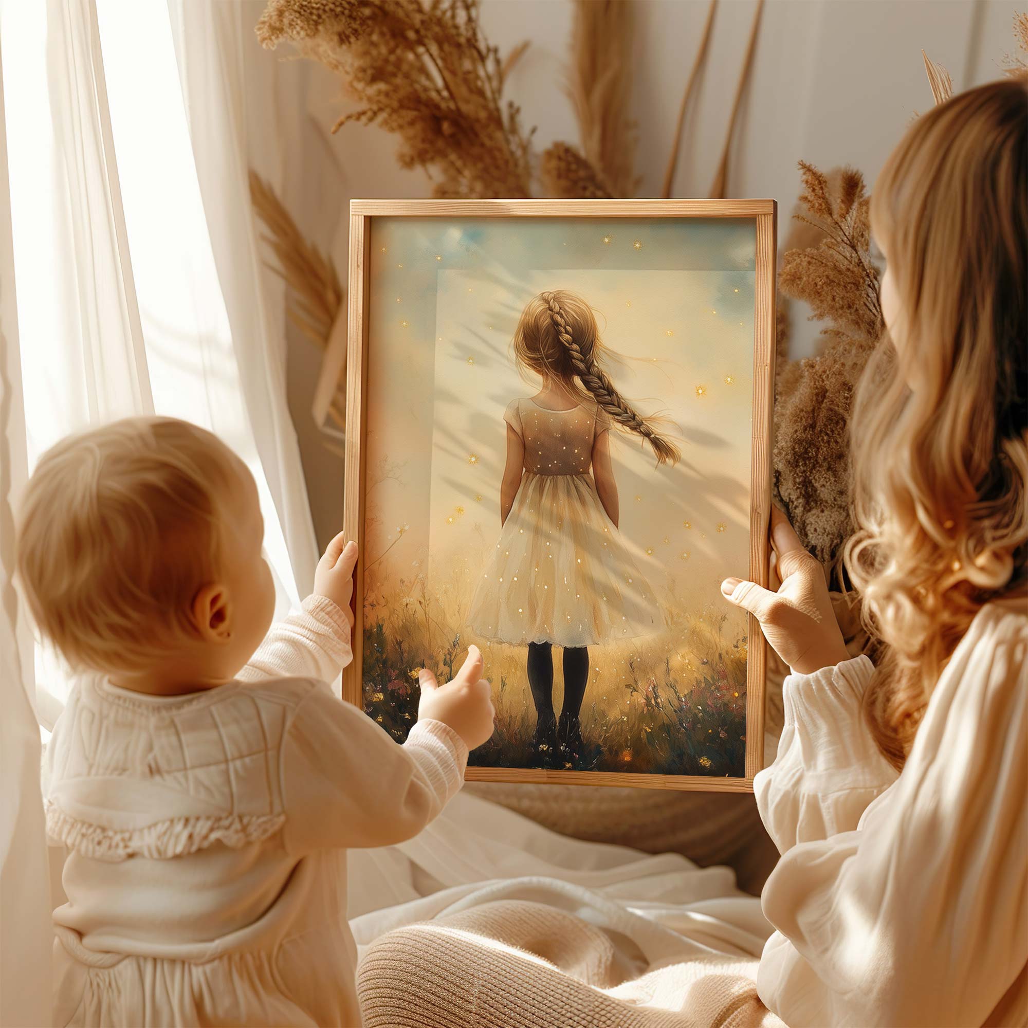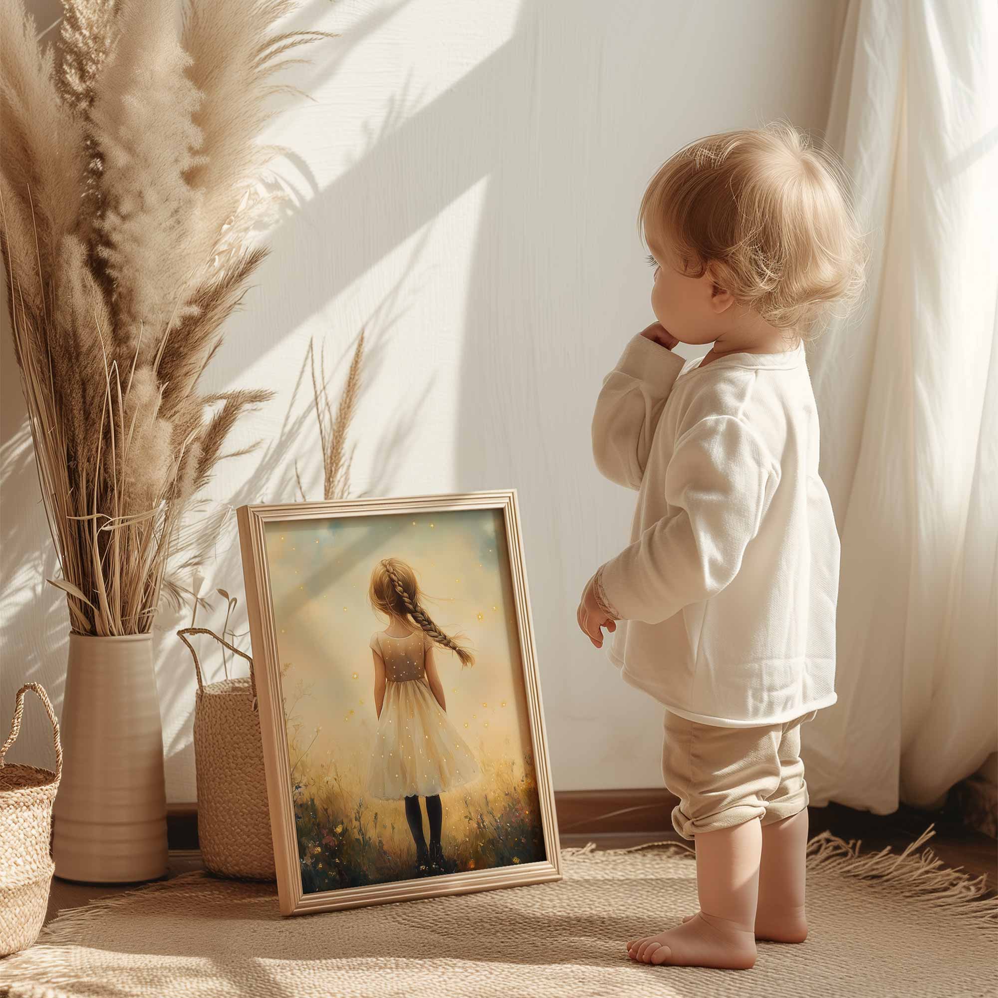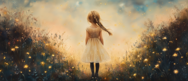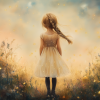 Dromerig Meisje in Bloemenveld – Pastel Schilderij