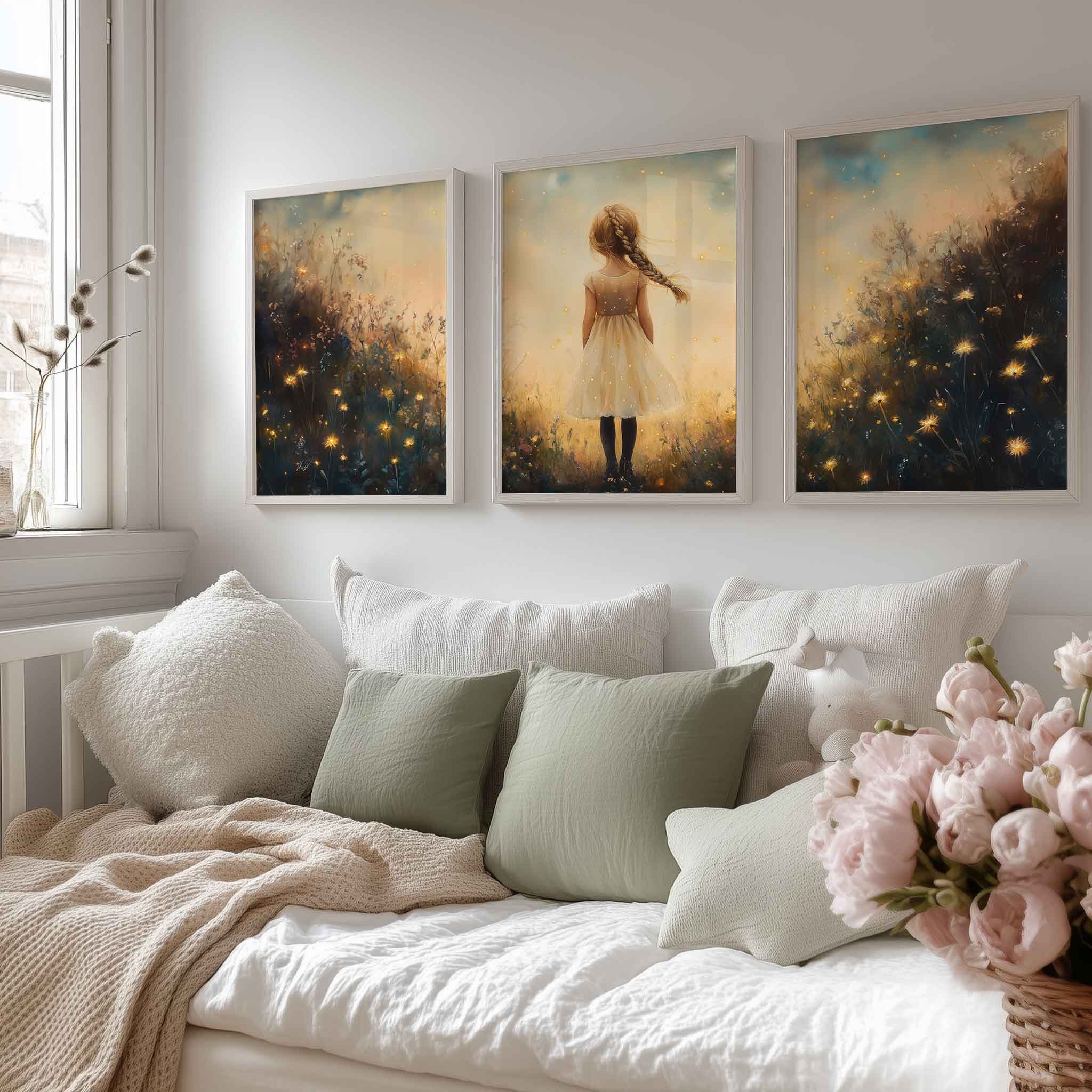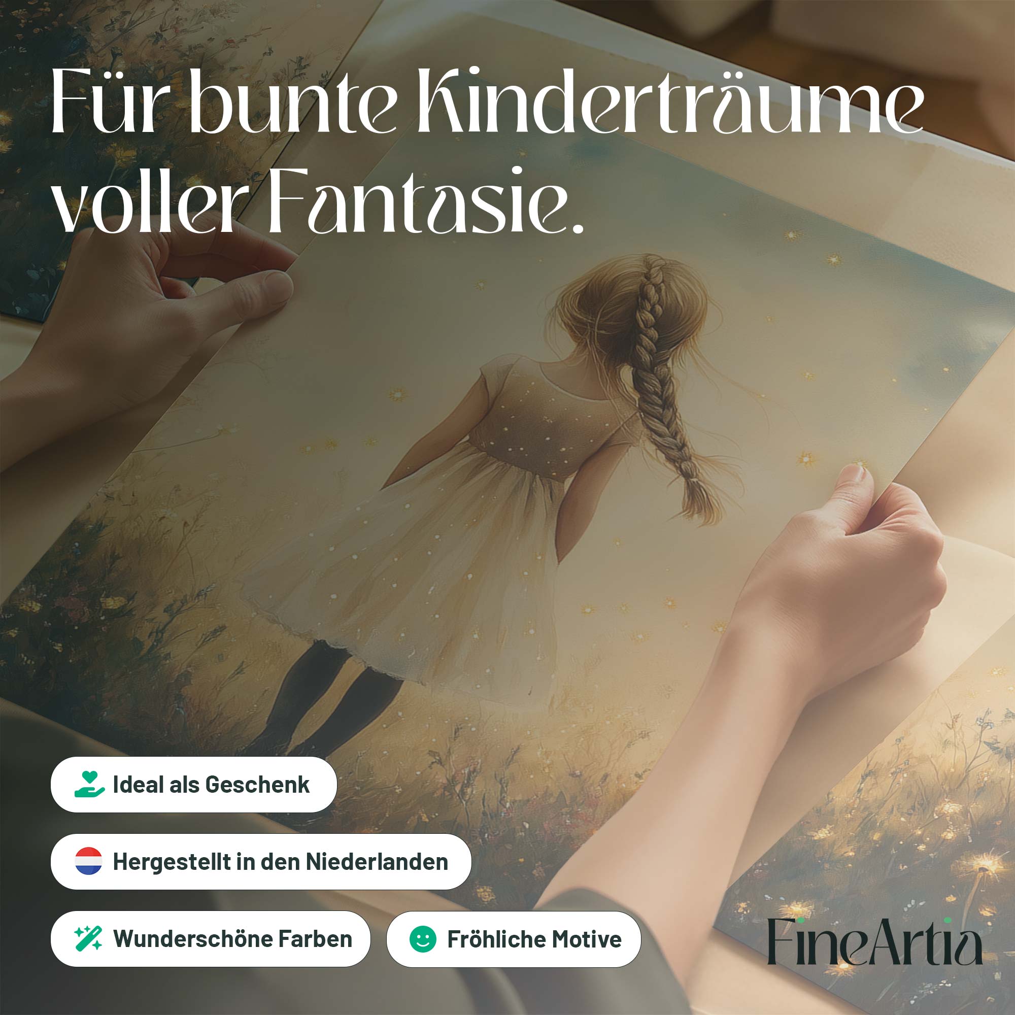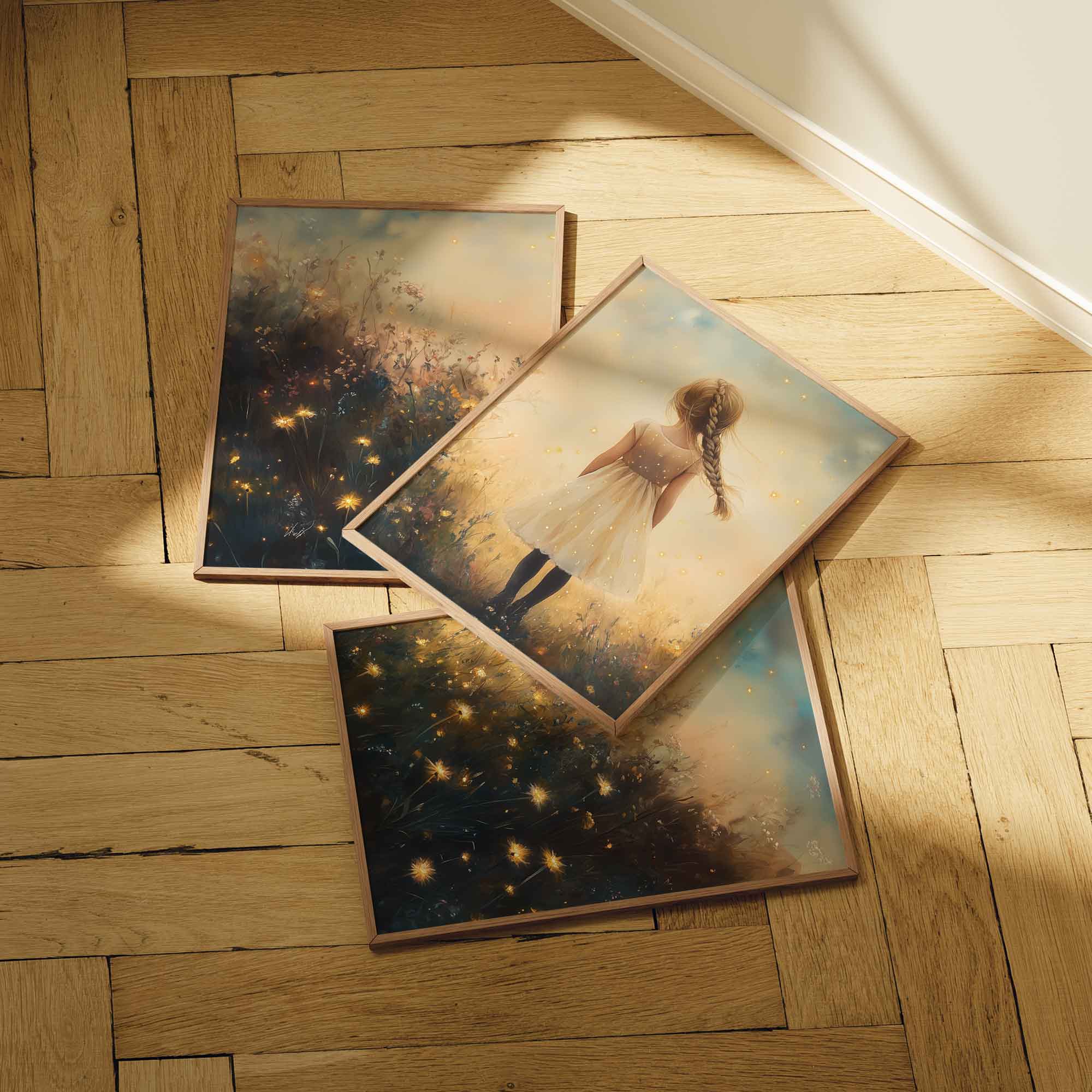 Dromerig Meisje in Bloemenveld – Pastel Schilderij