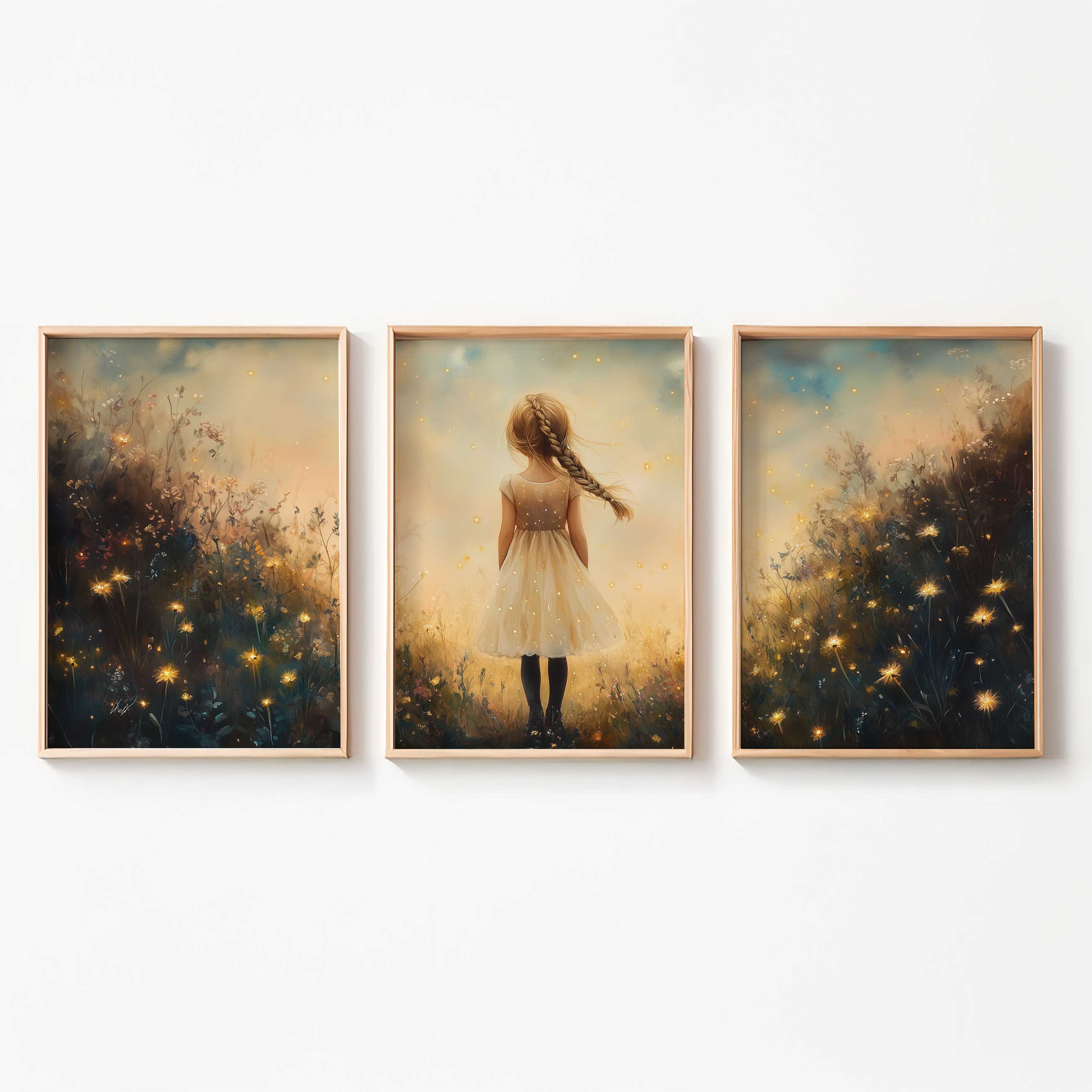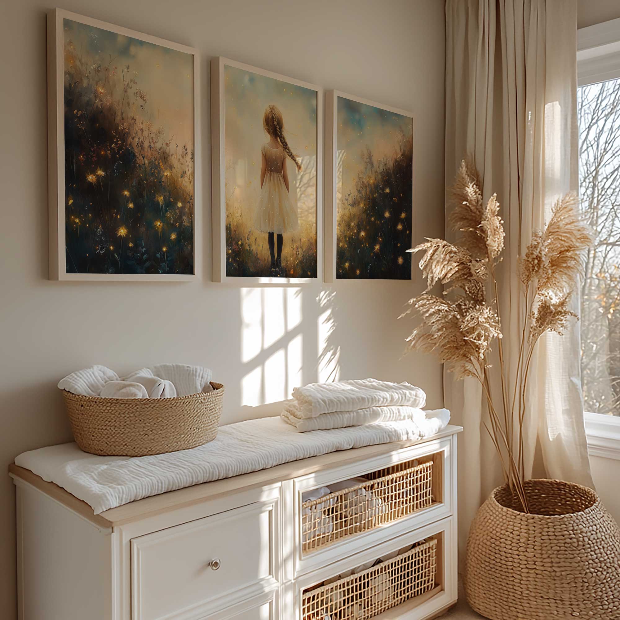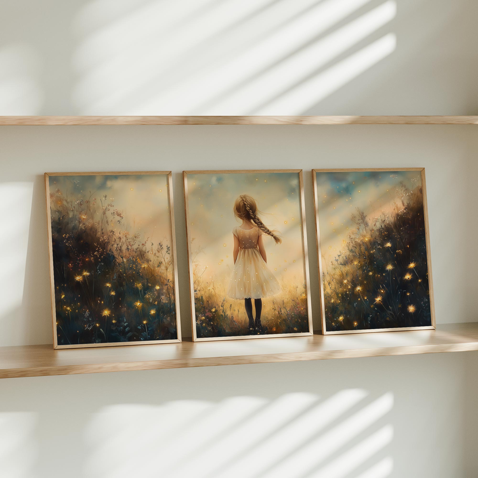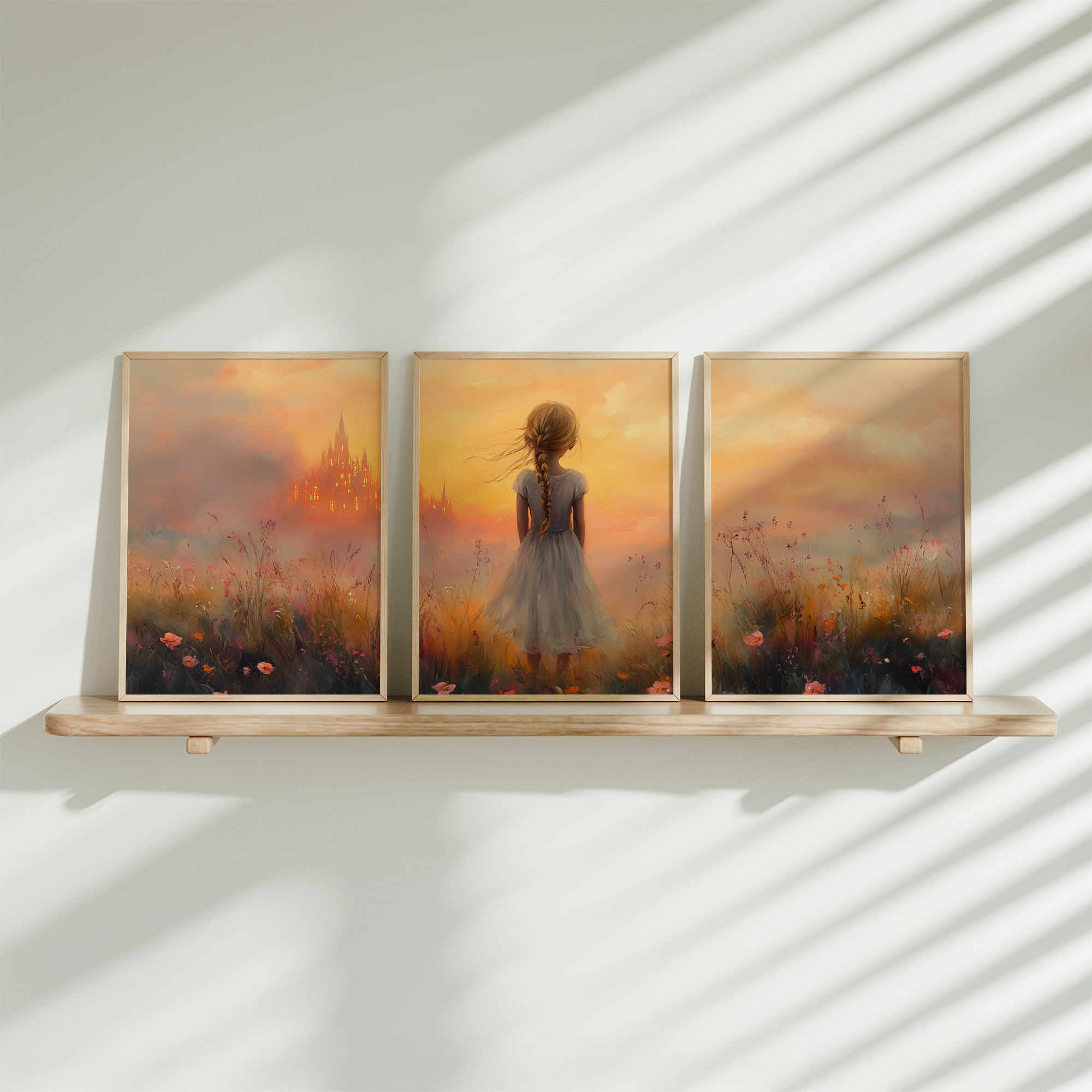 Dromerig Meisje in Bloemenveld – Pastel Schilderij