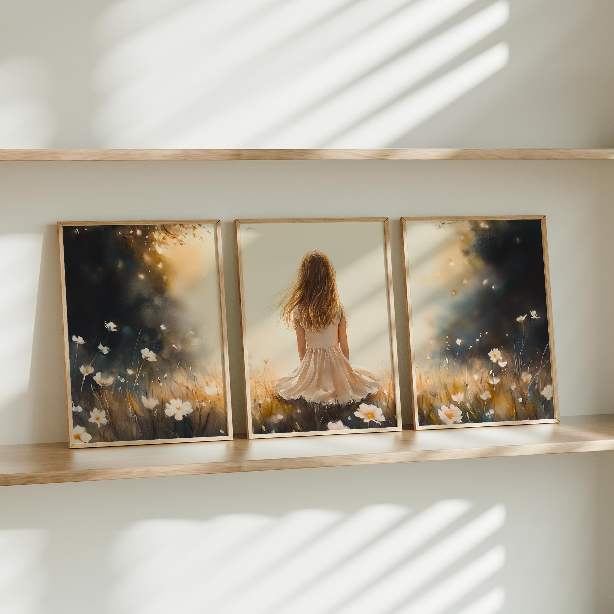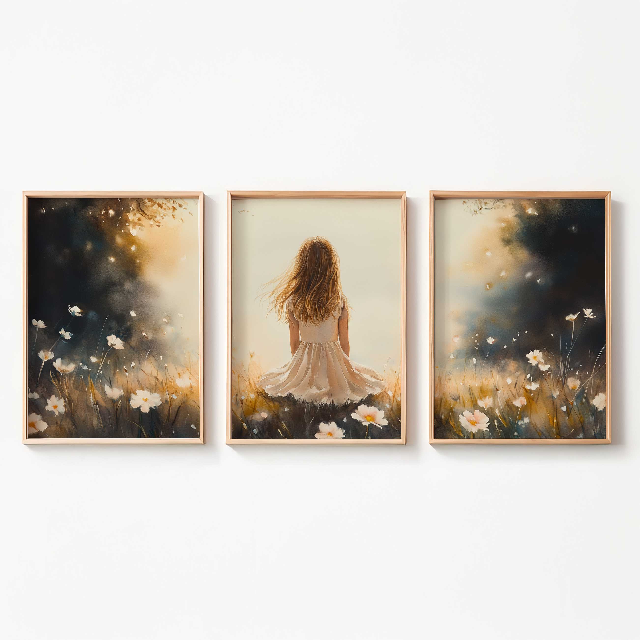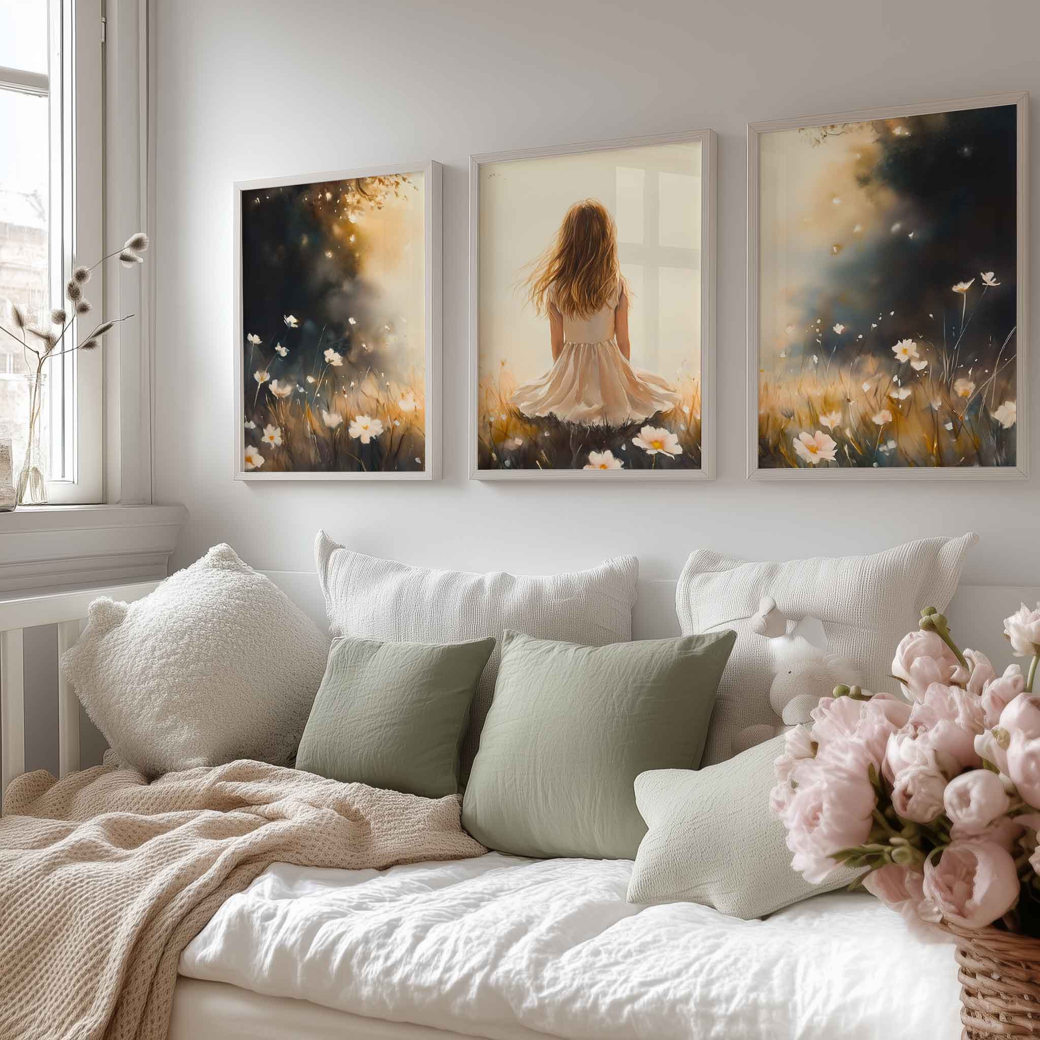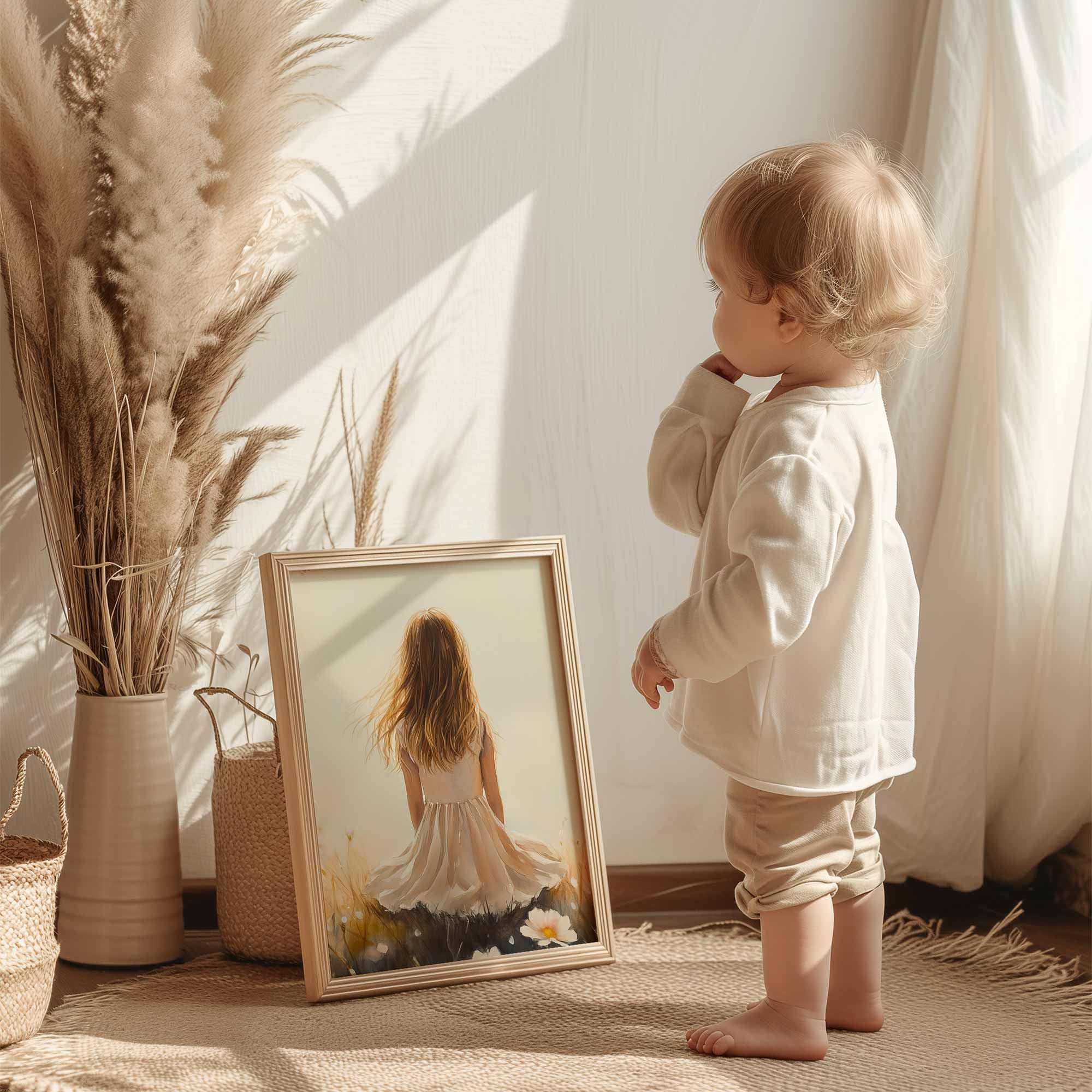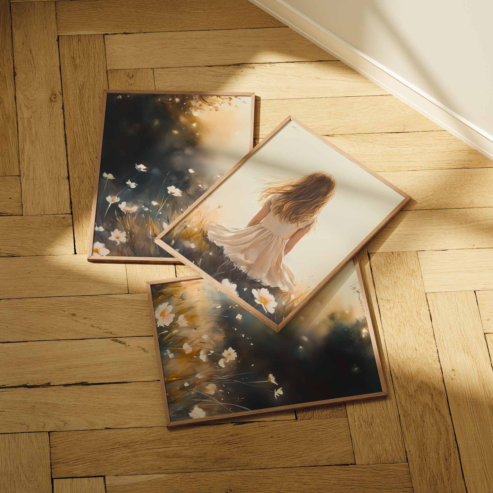 Terug naar collectie Posters Dromerig Meisje in Bloemenveld – Pastel Sfeer
