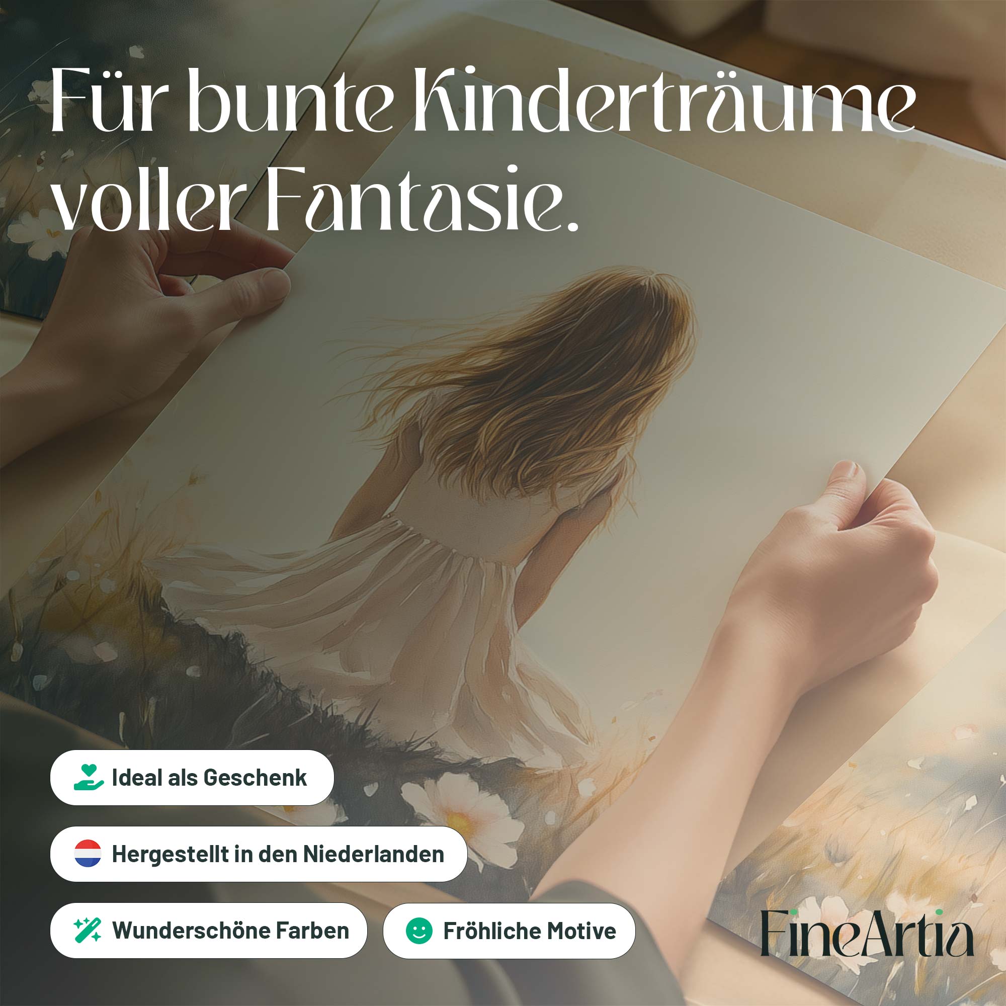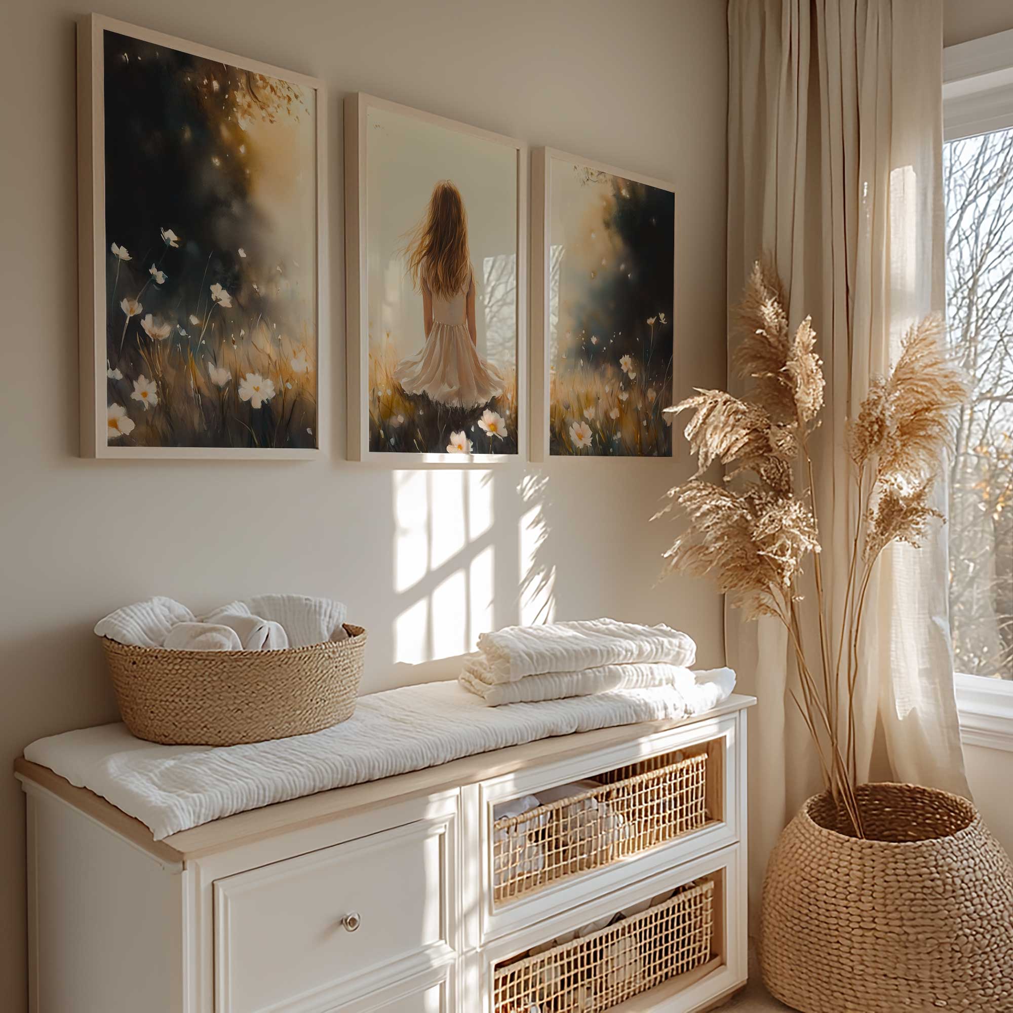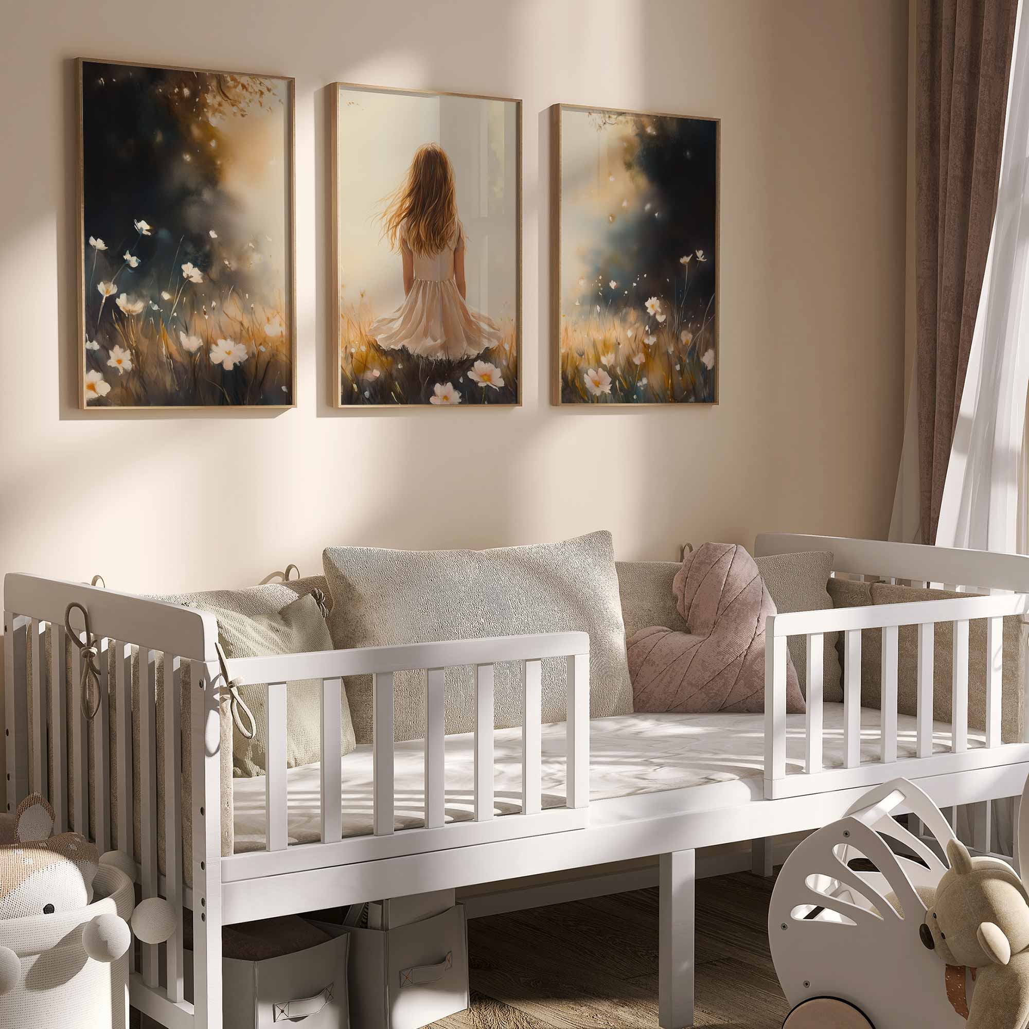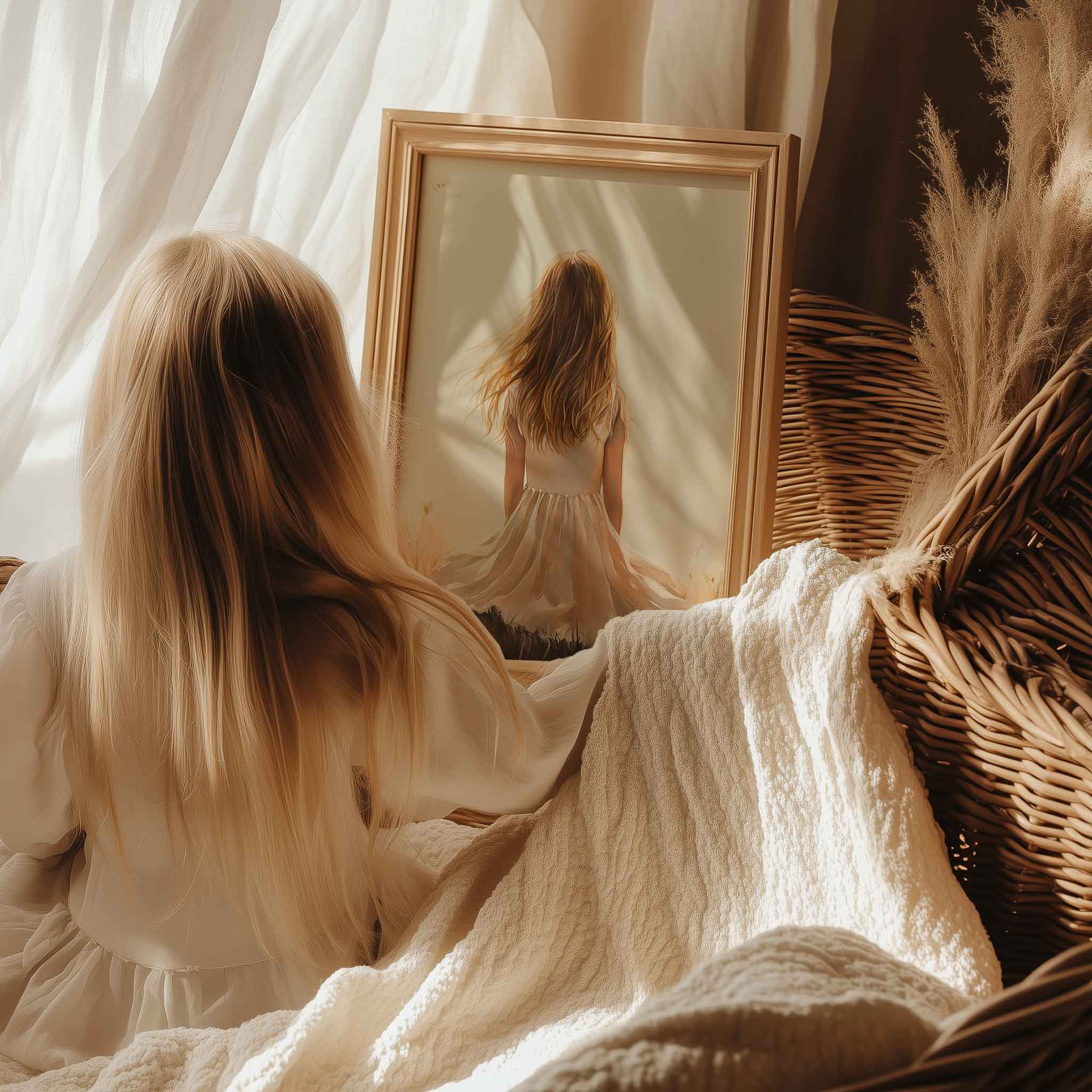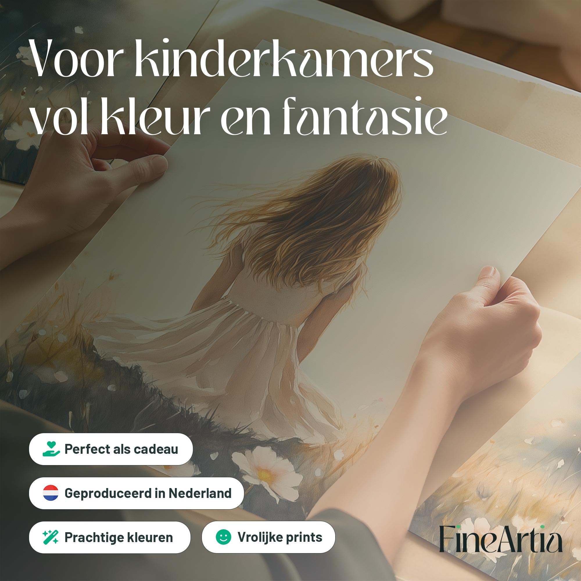 Terug naar collectie Posters Dromerig Meisje in Bloemenveld – Pastel Sfeer