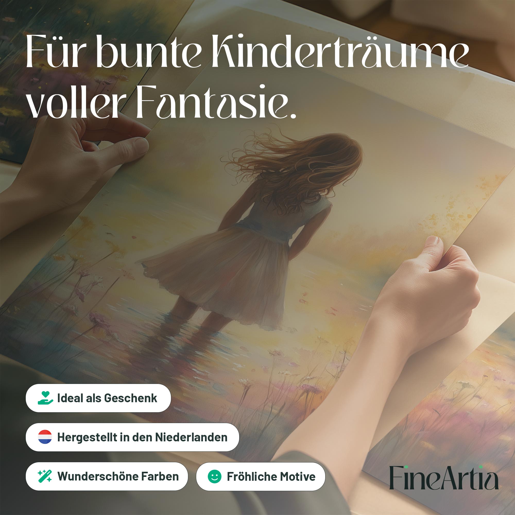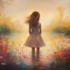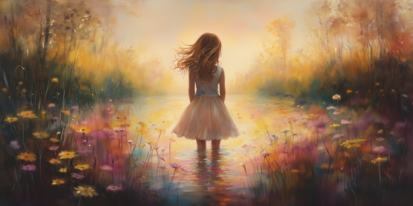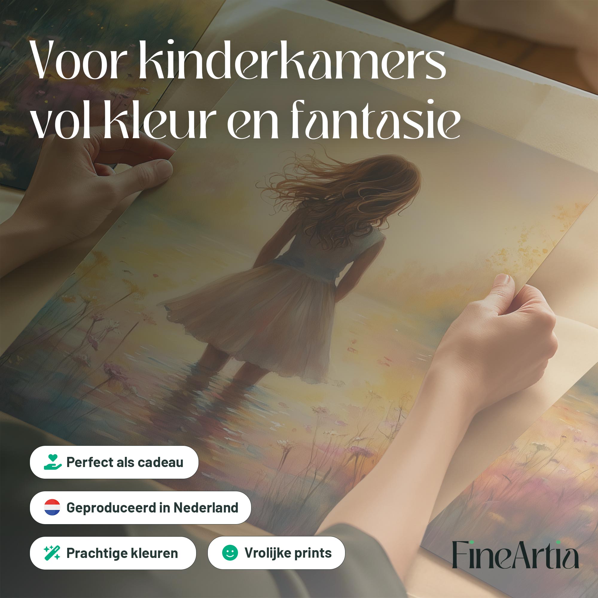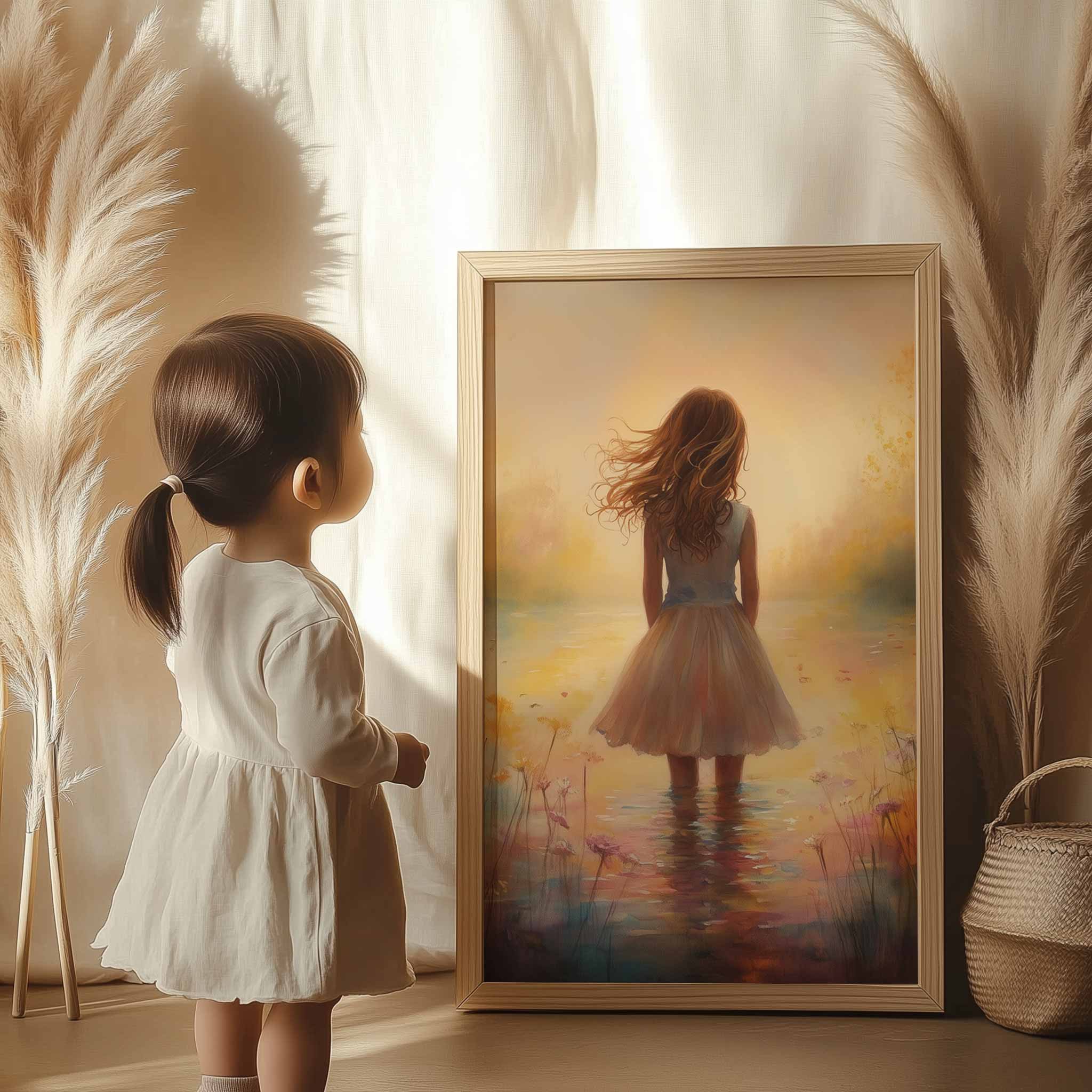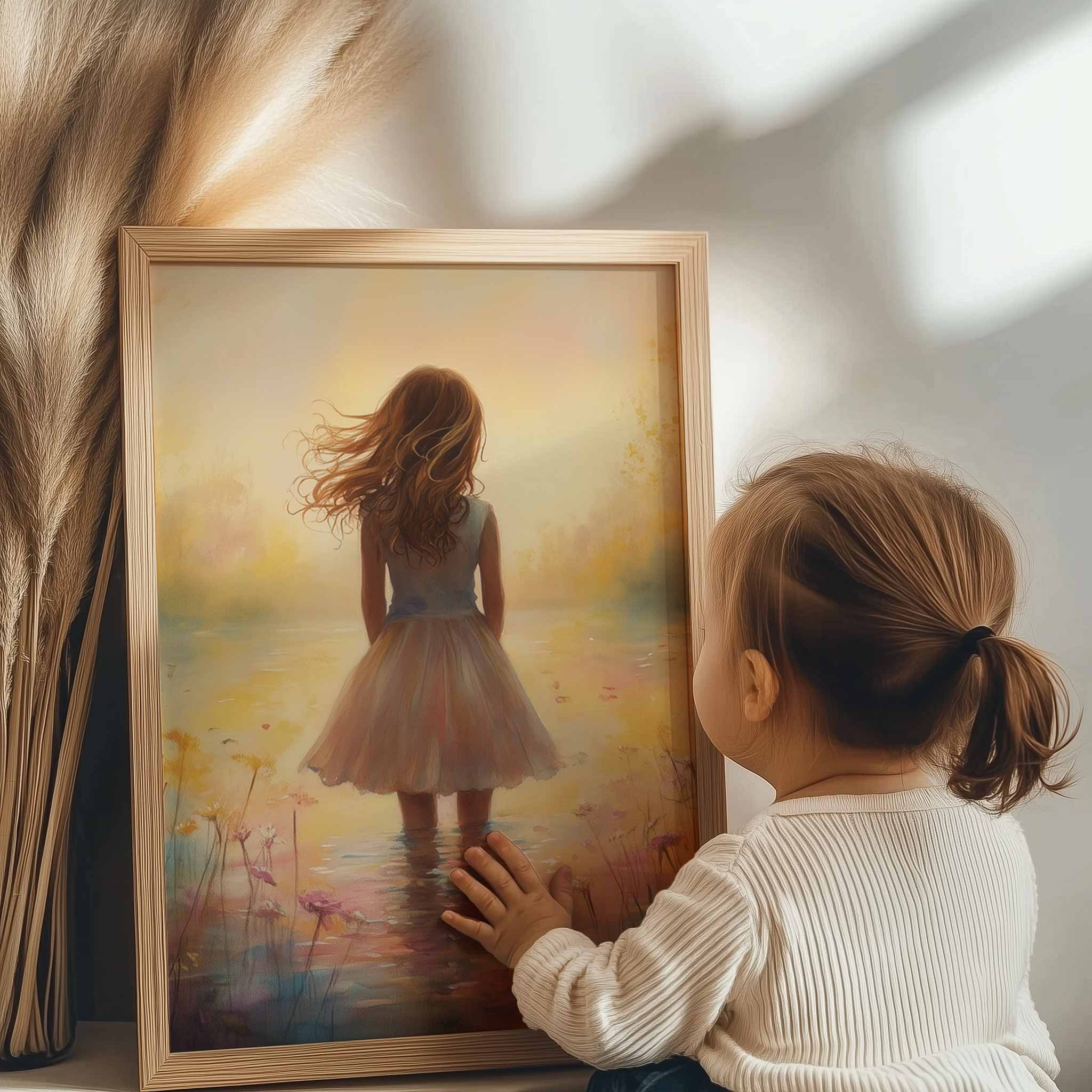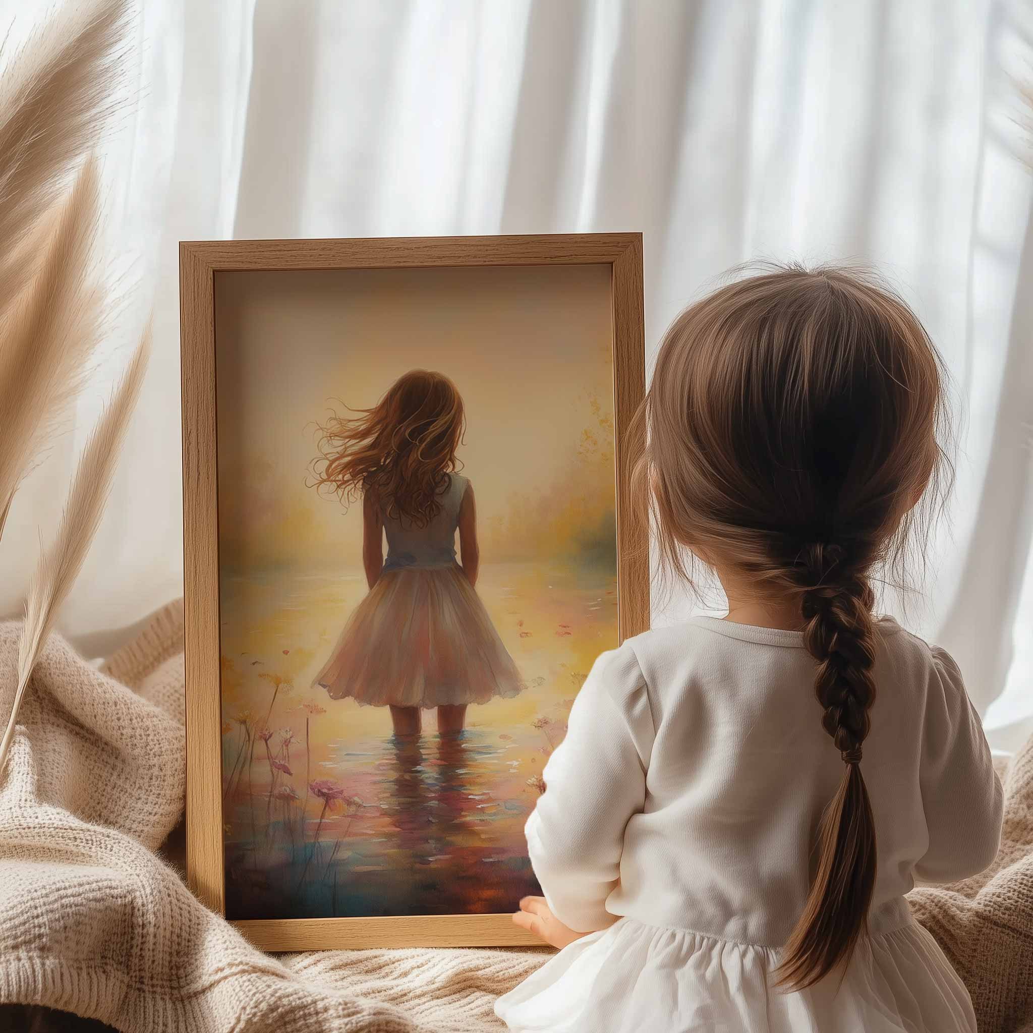 Dromerig Meisje in Bloemenveld – Pastel Sprookje