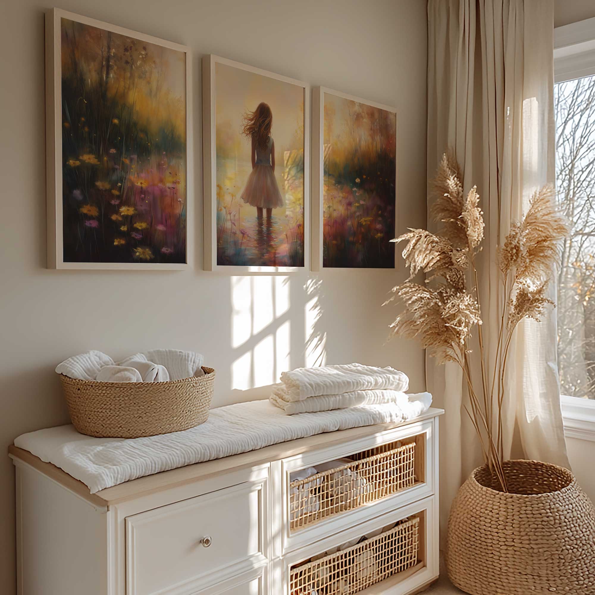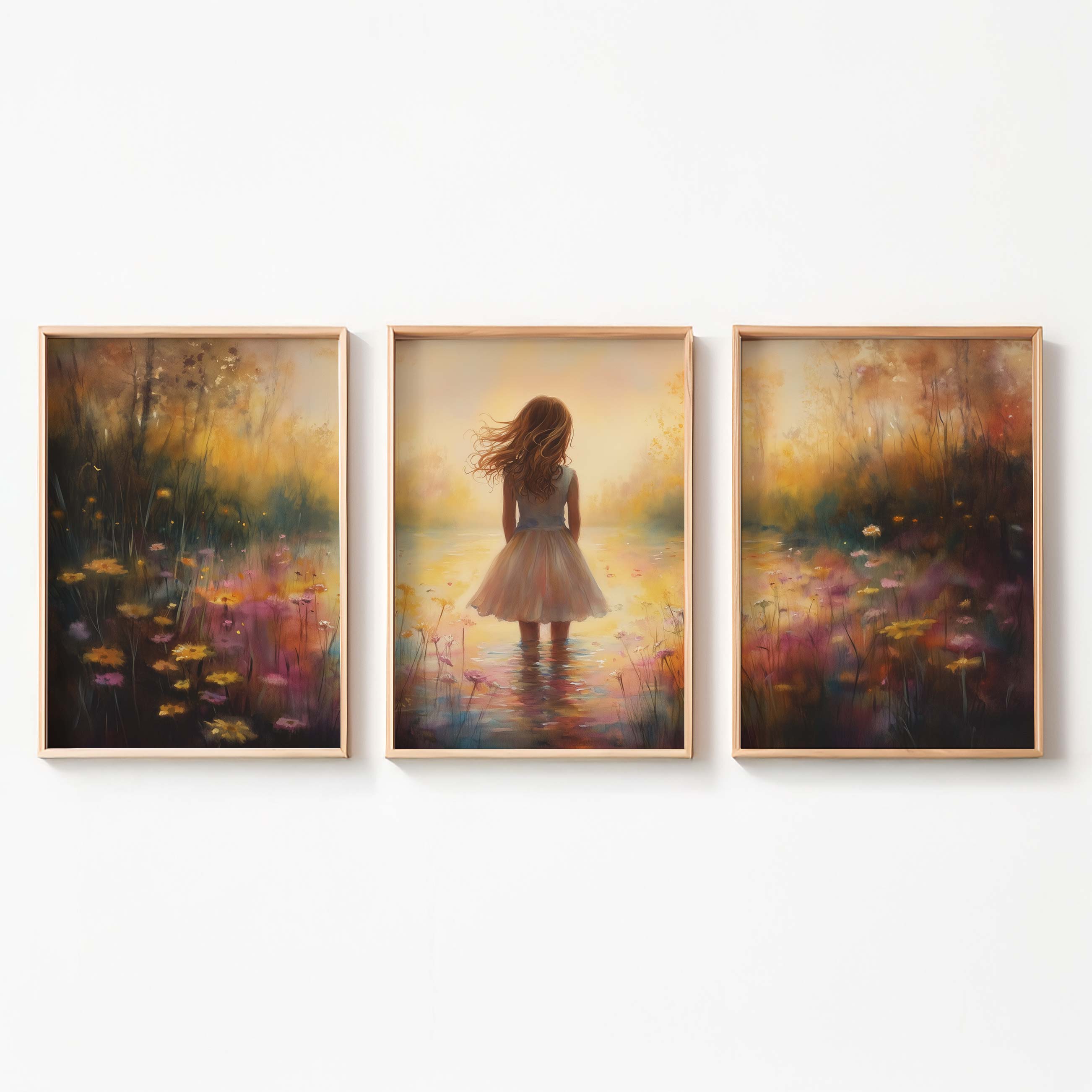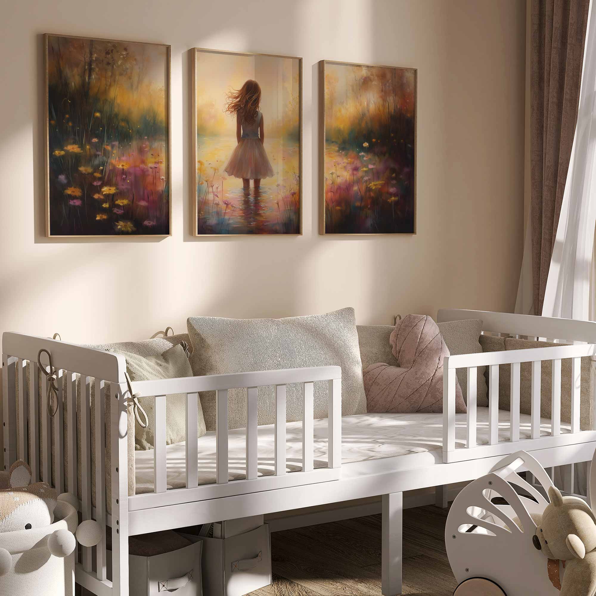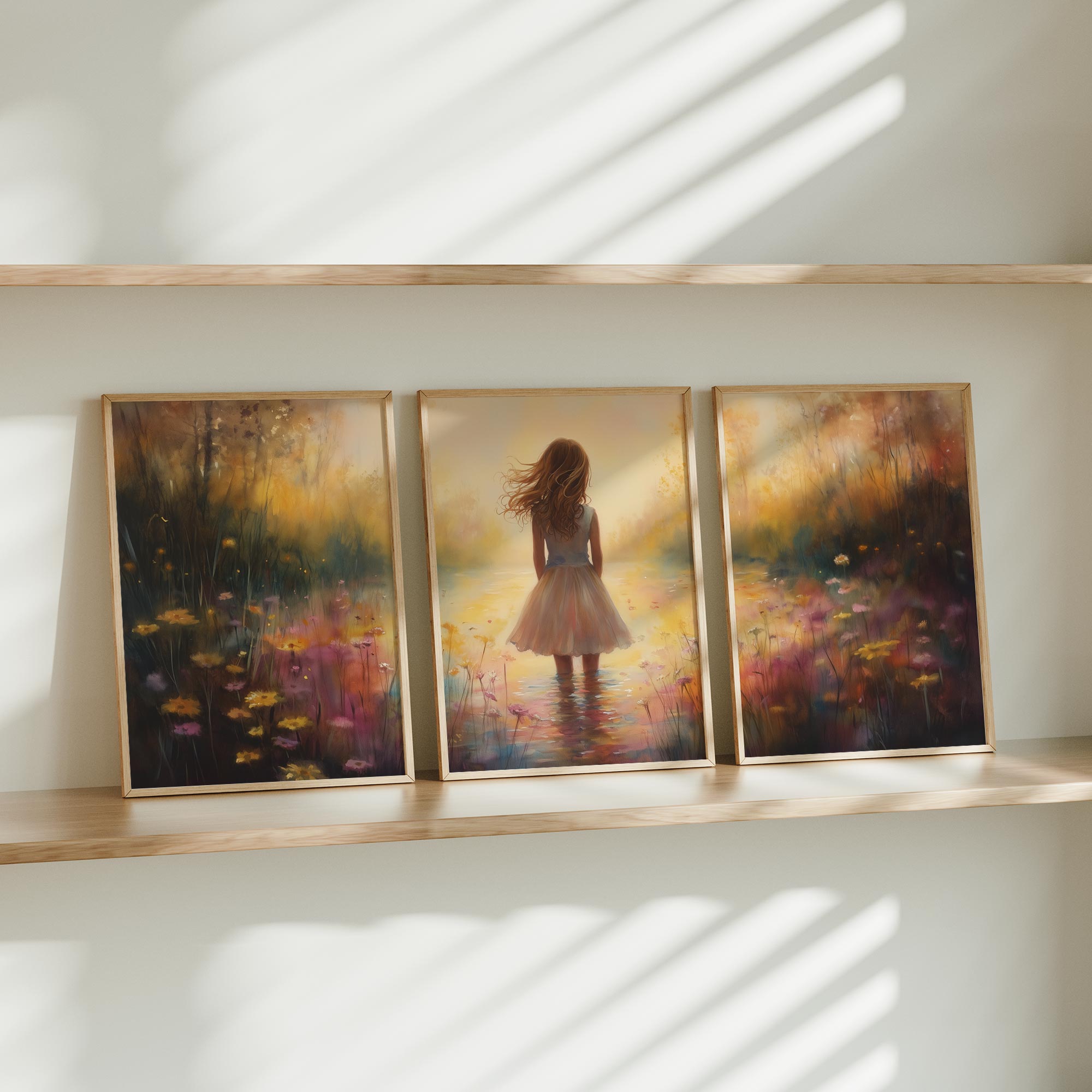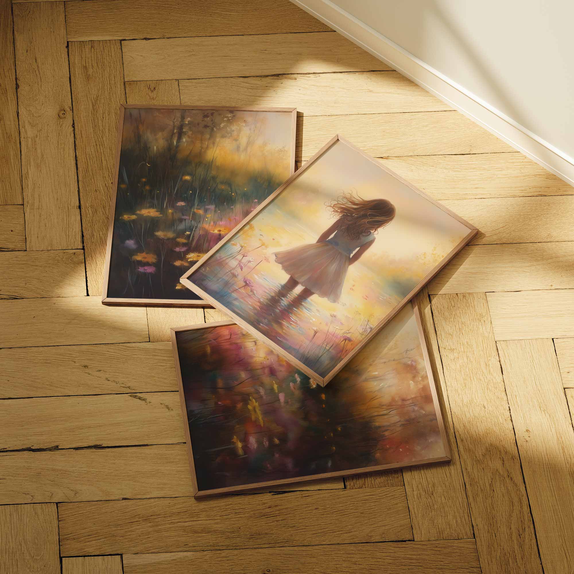 Dromerig Meisje in Bloemenveld – Pastel Sprookje
