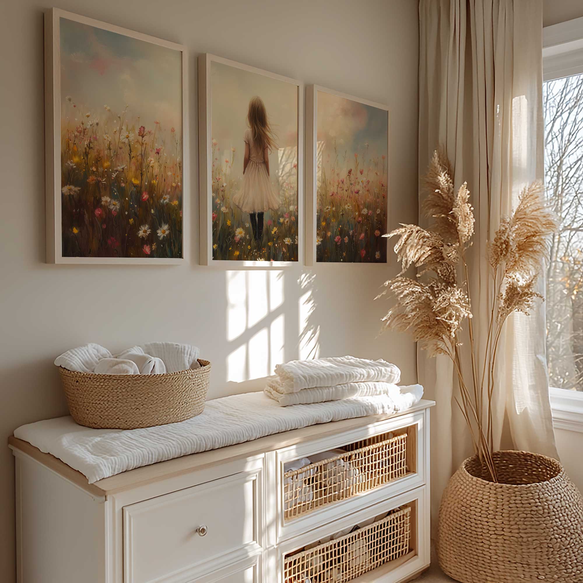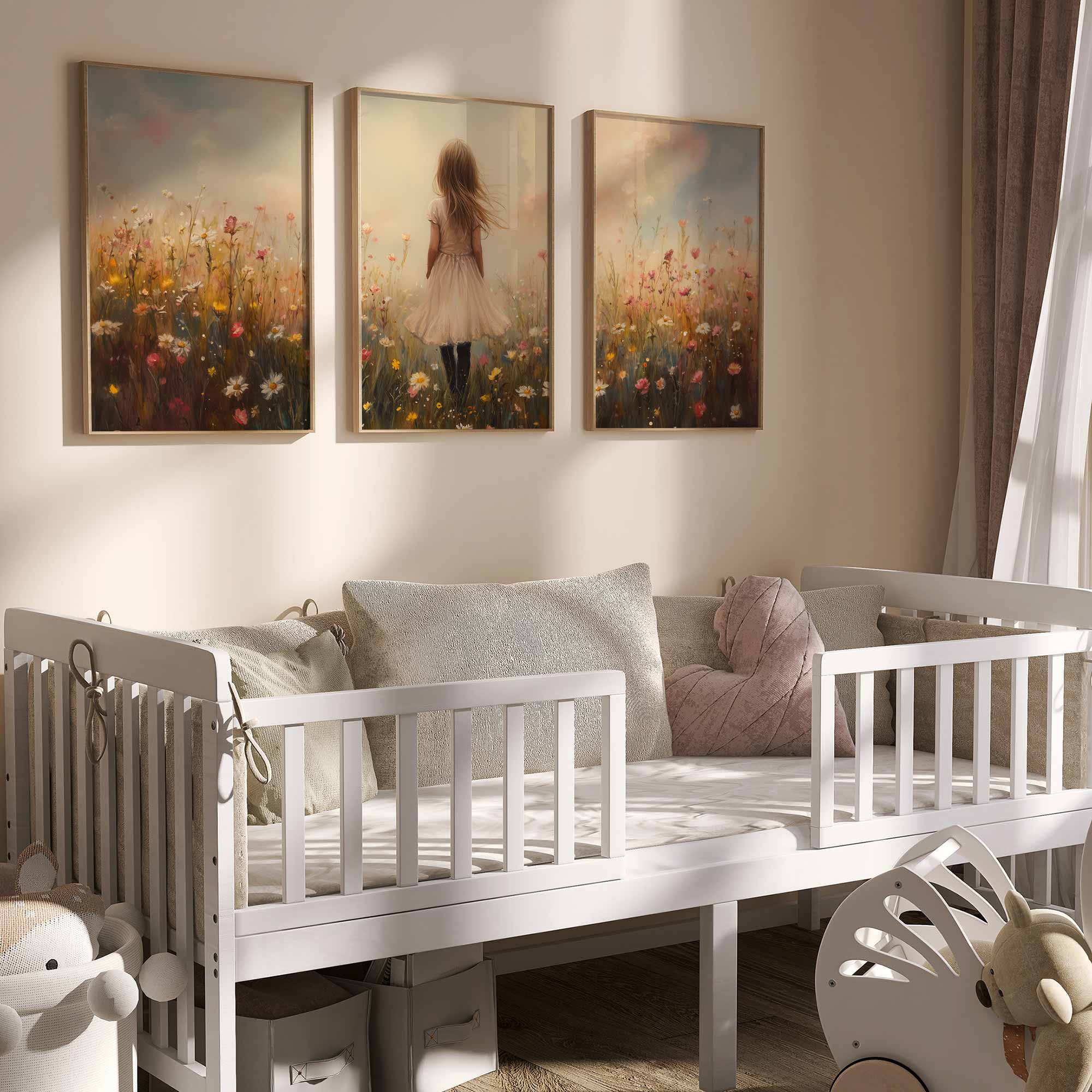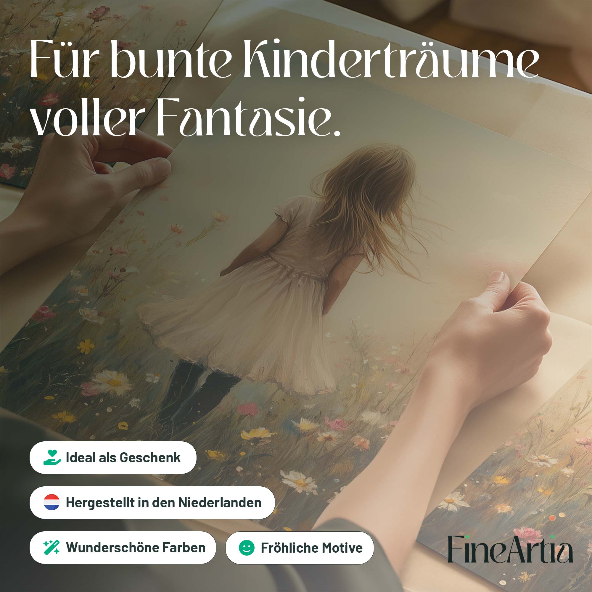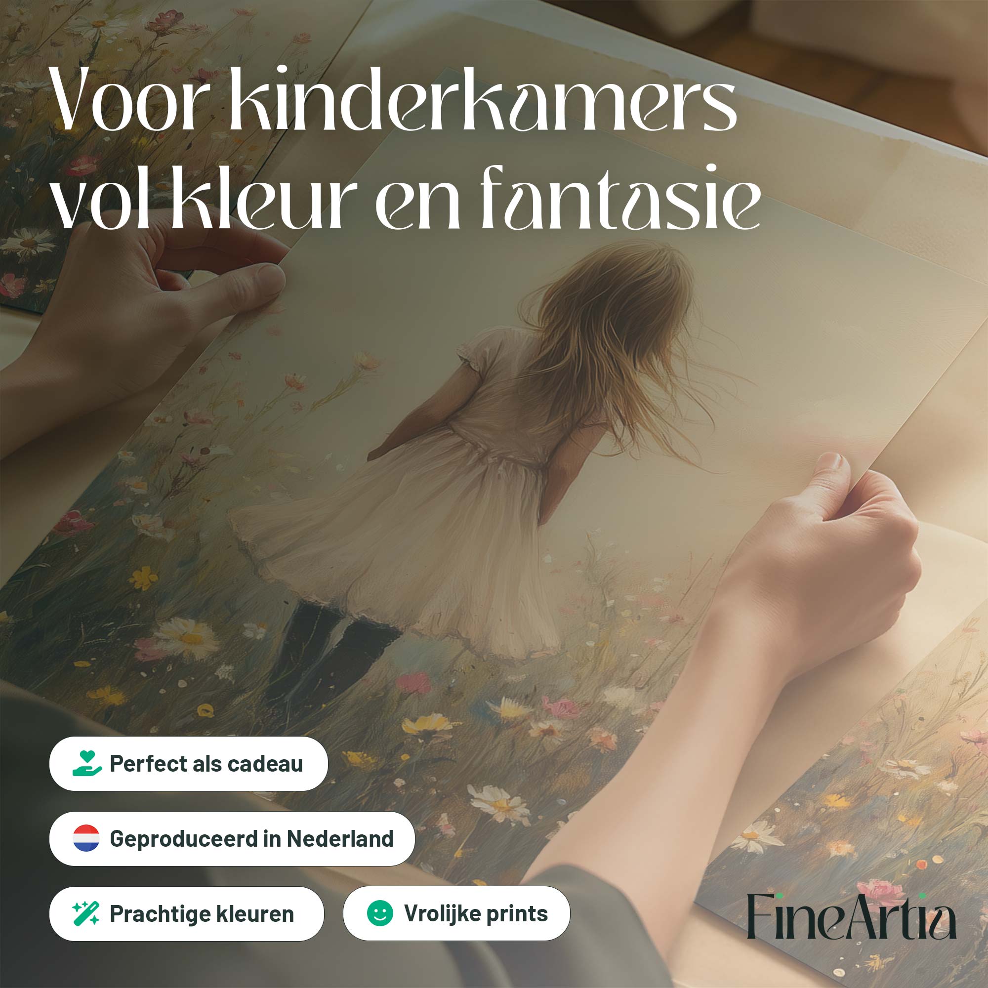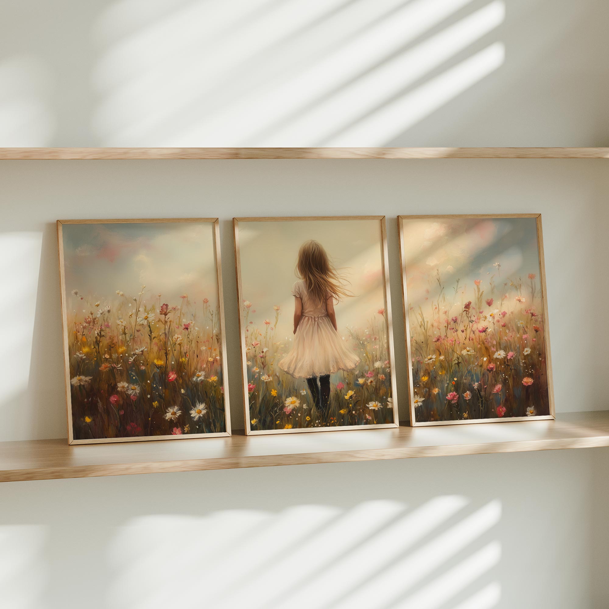 Dromerig Meisje in Bloemenveld – Pastel Sprookje
