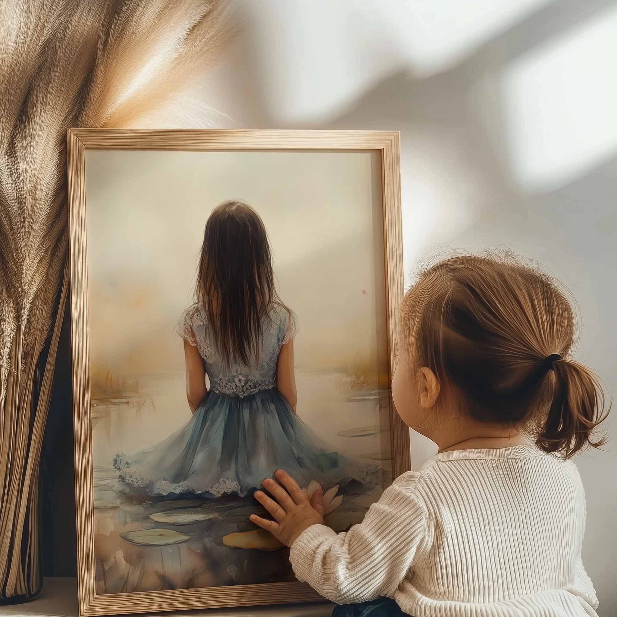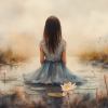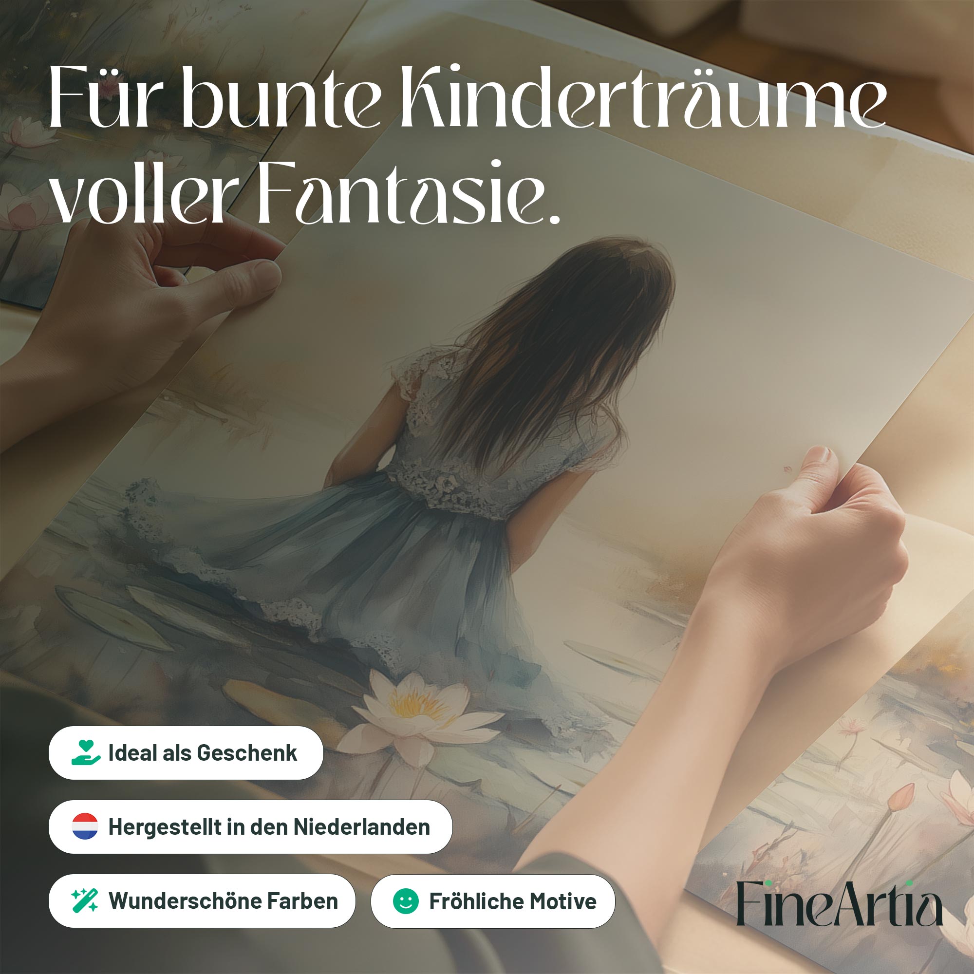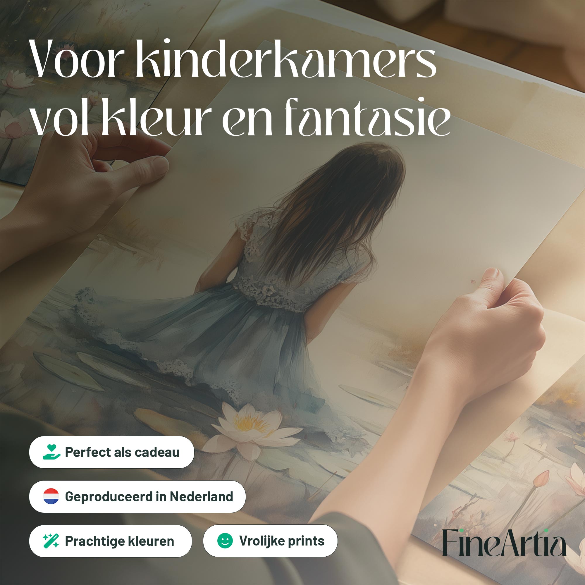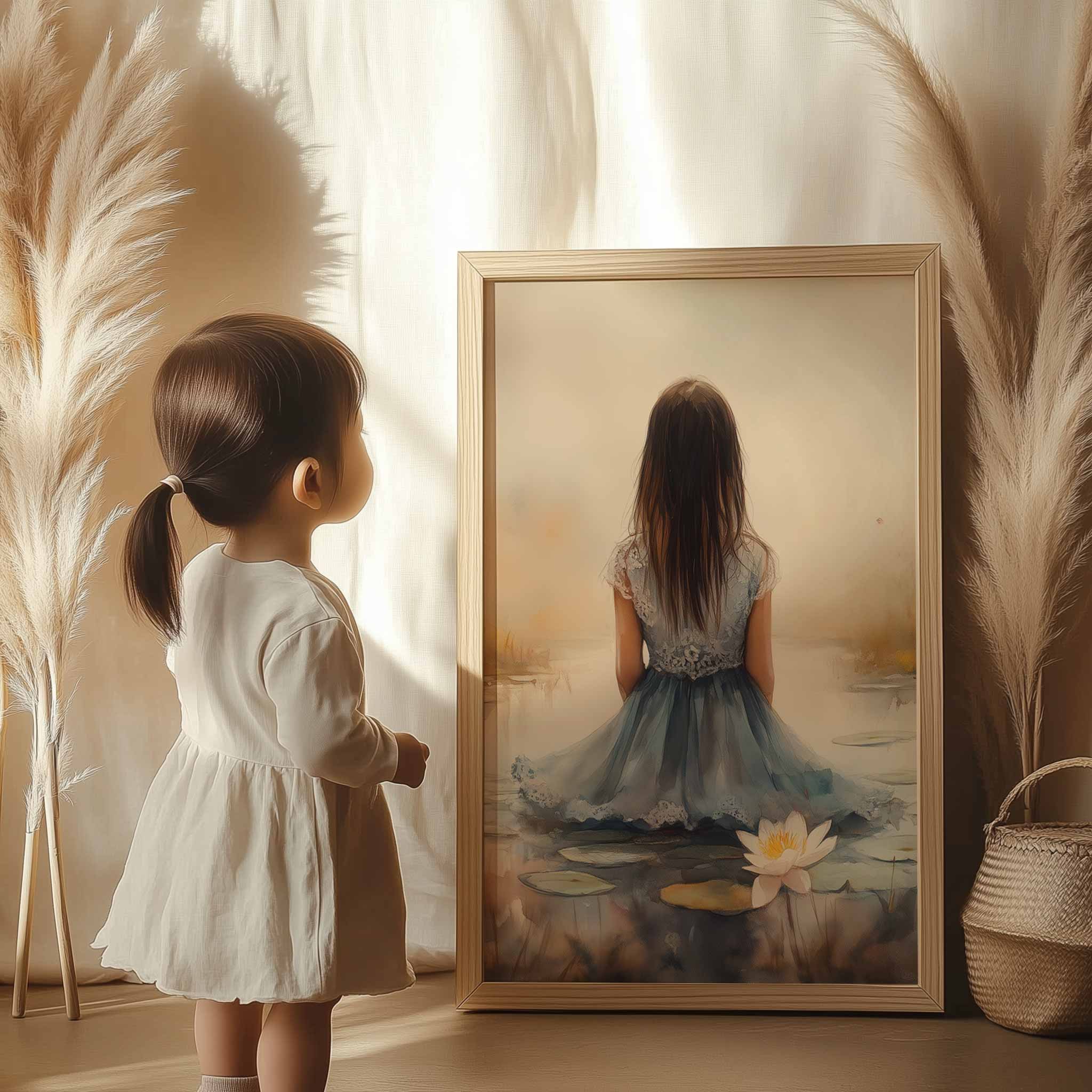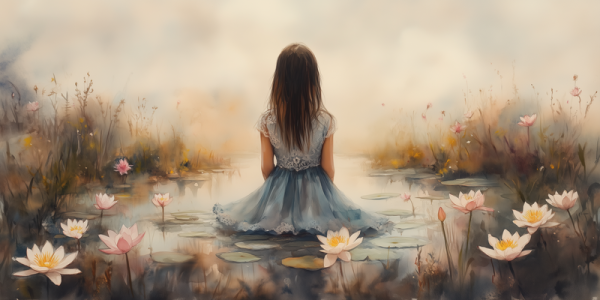 Dromerig Meisje in Bloemenveld – Pastel Sprookje