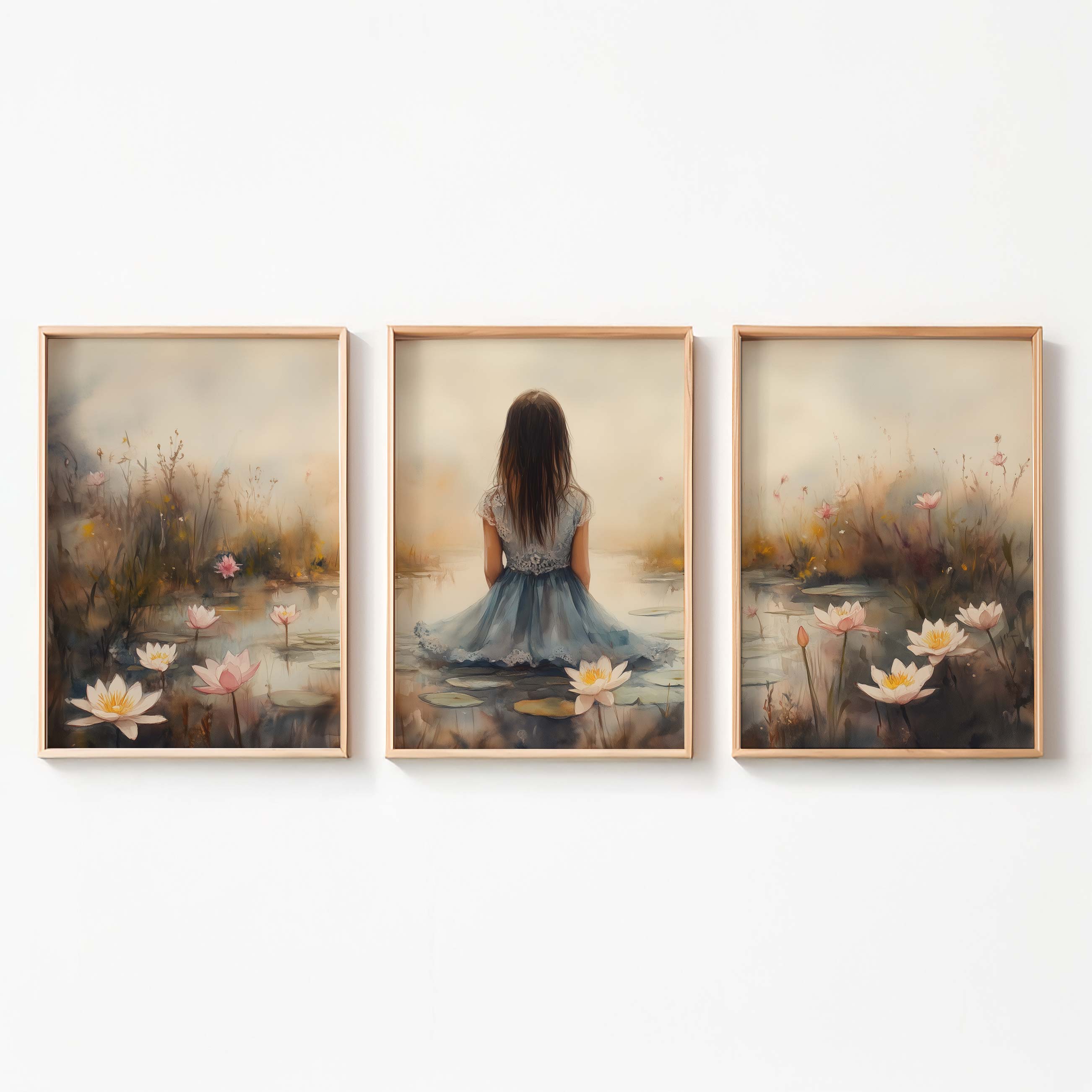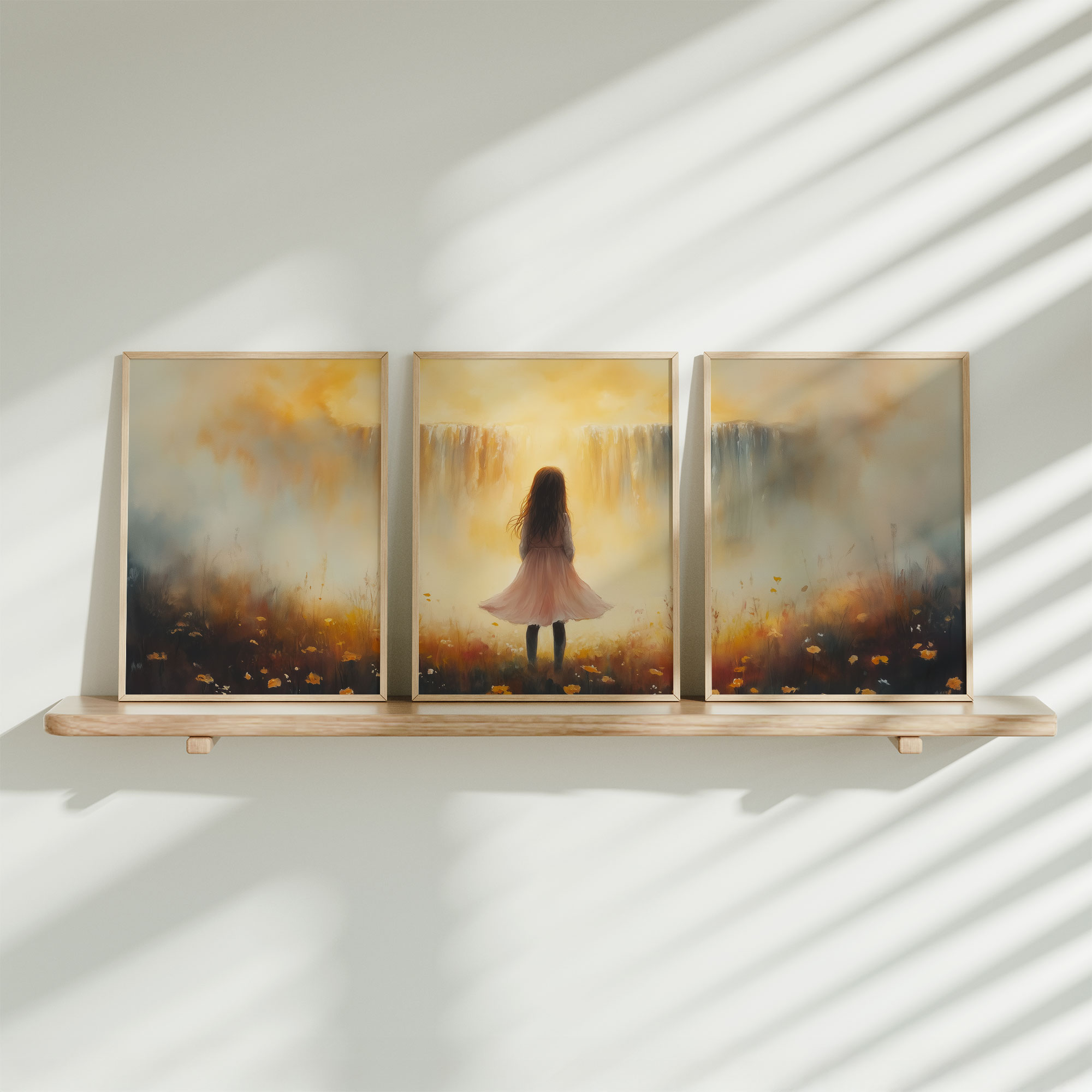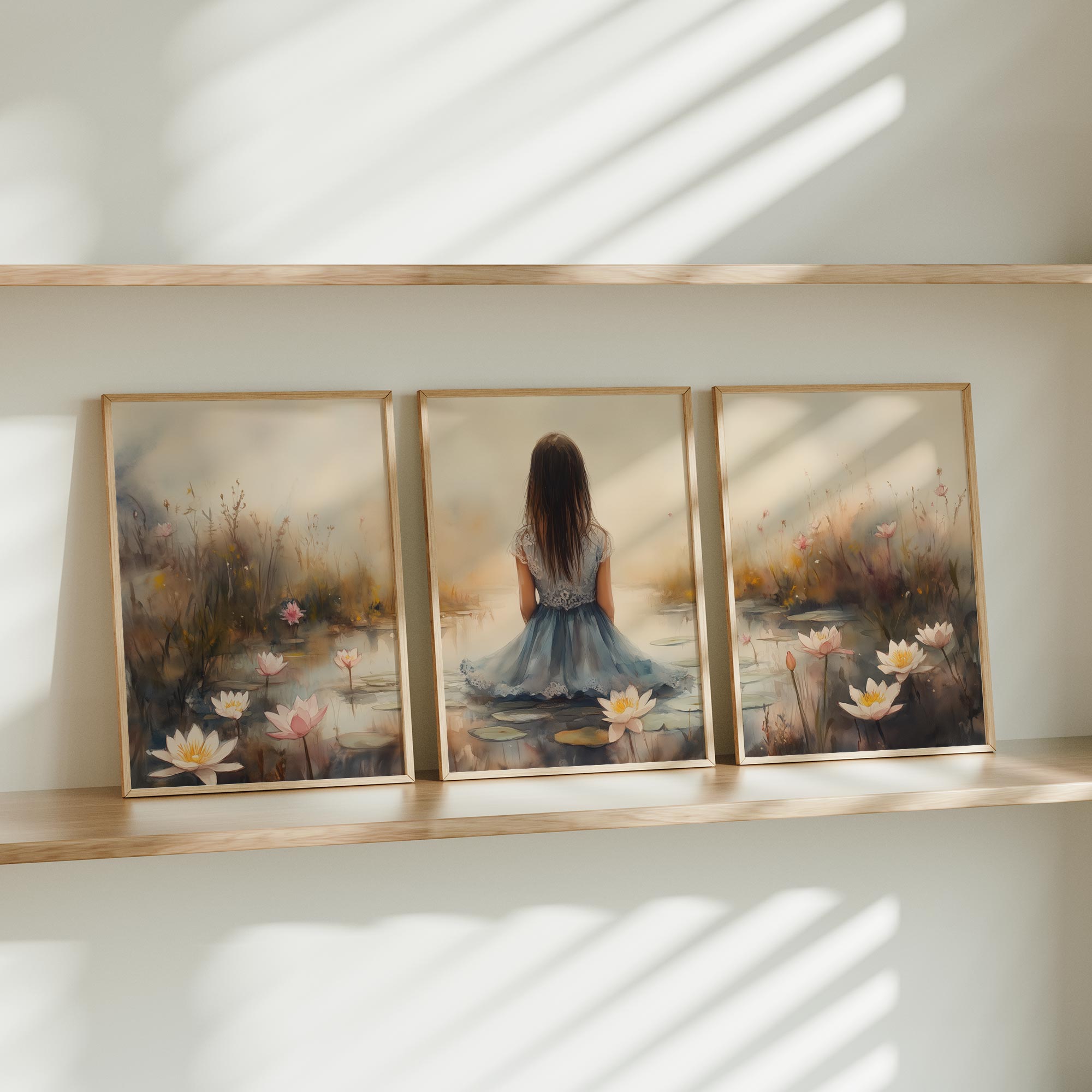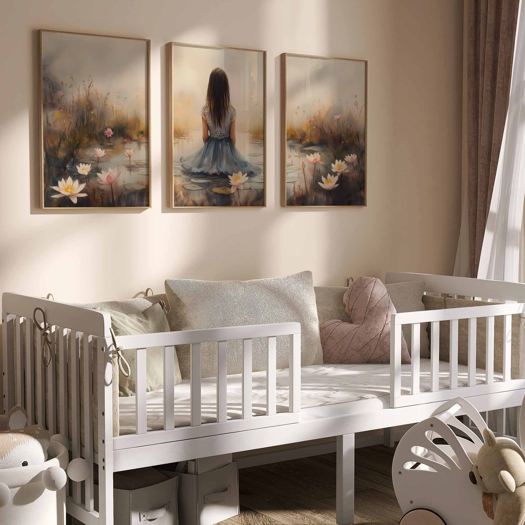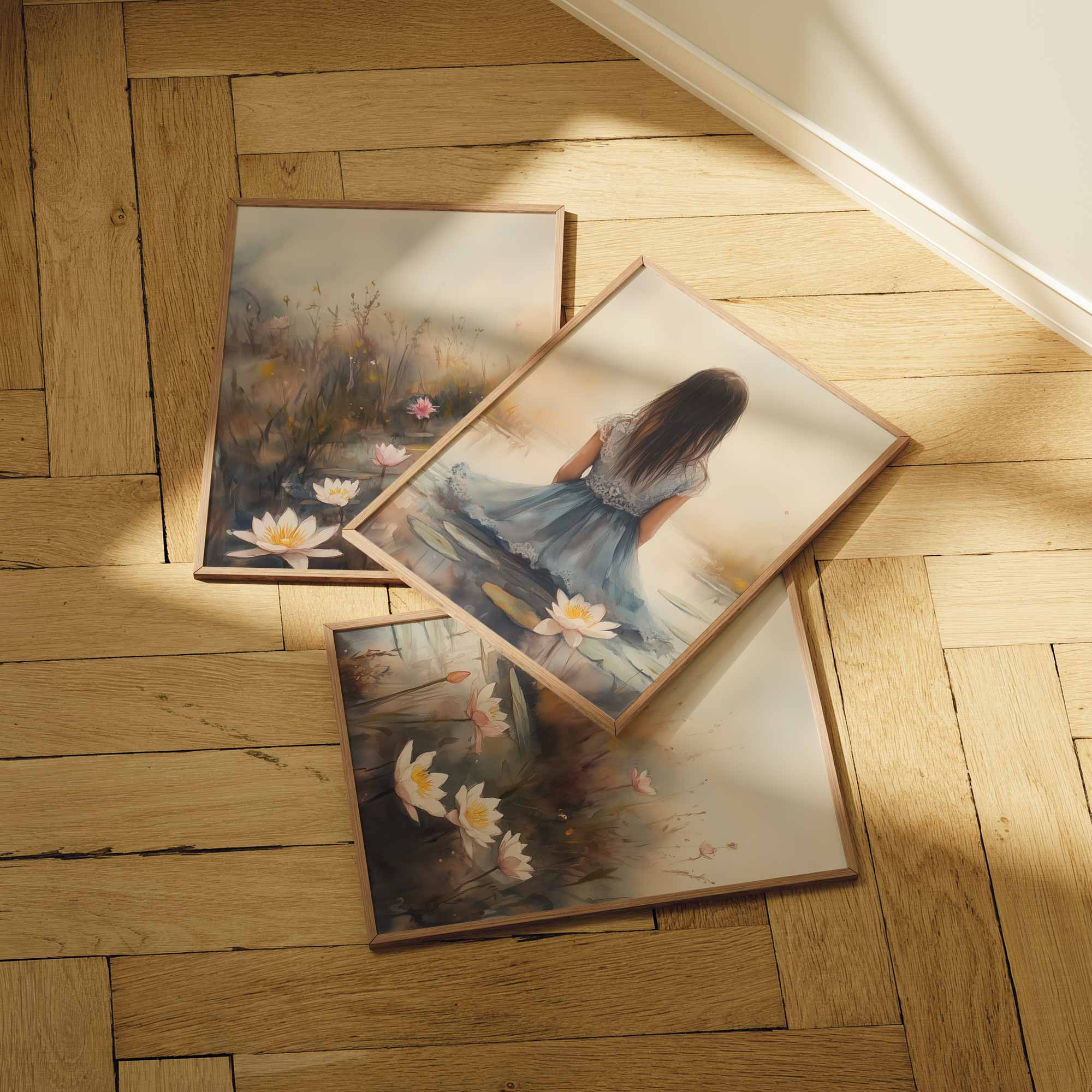 Dromerig Meisje in Bloemenveld – Pastel Sprookje