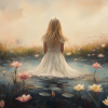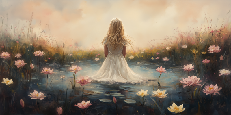 Dromerig Meisje in Bloemenveld – Roze Sereniteit