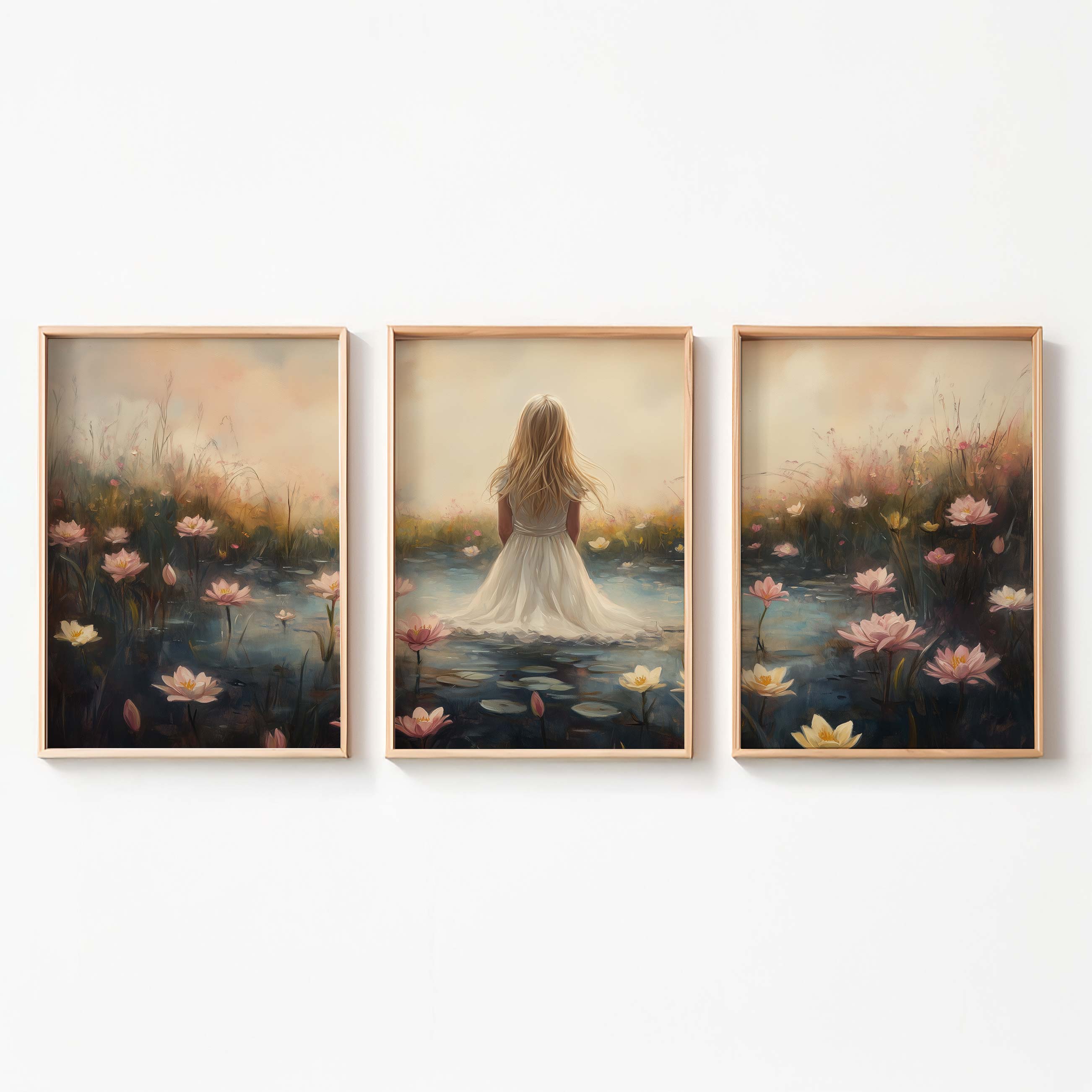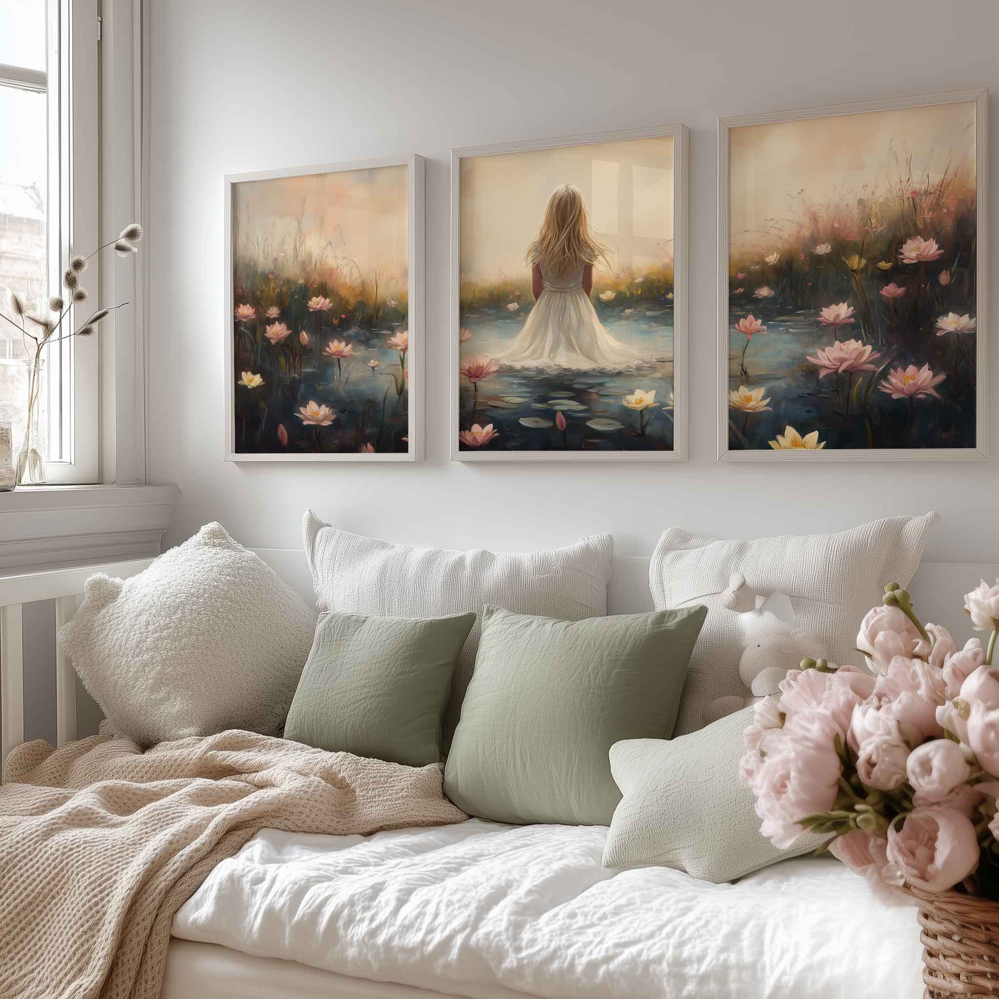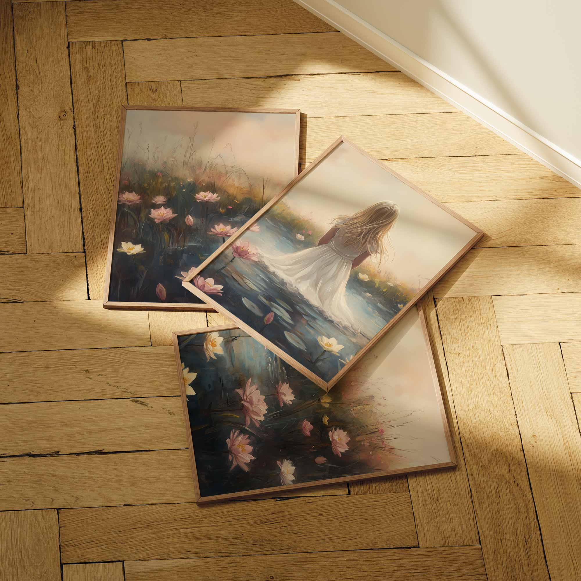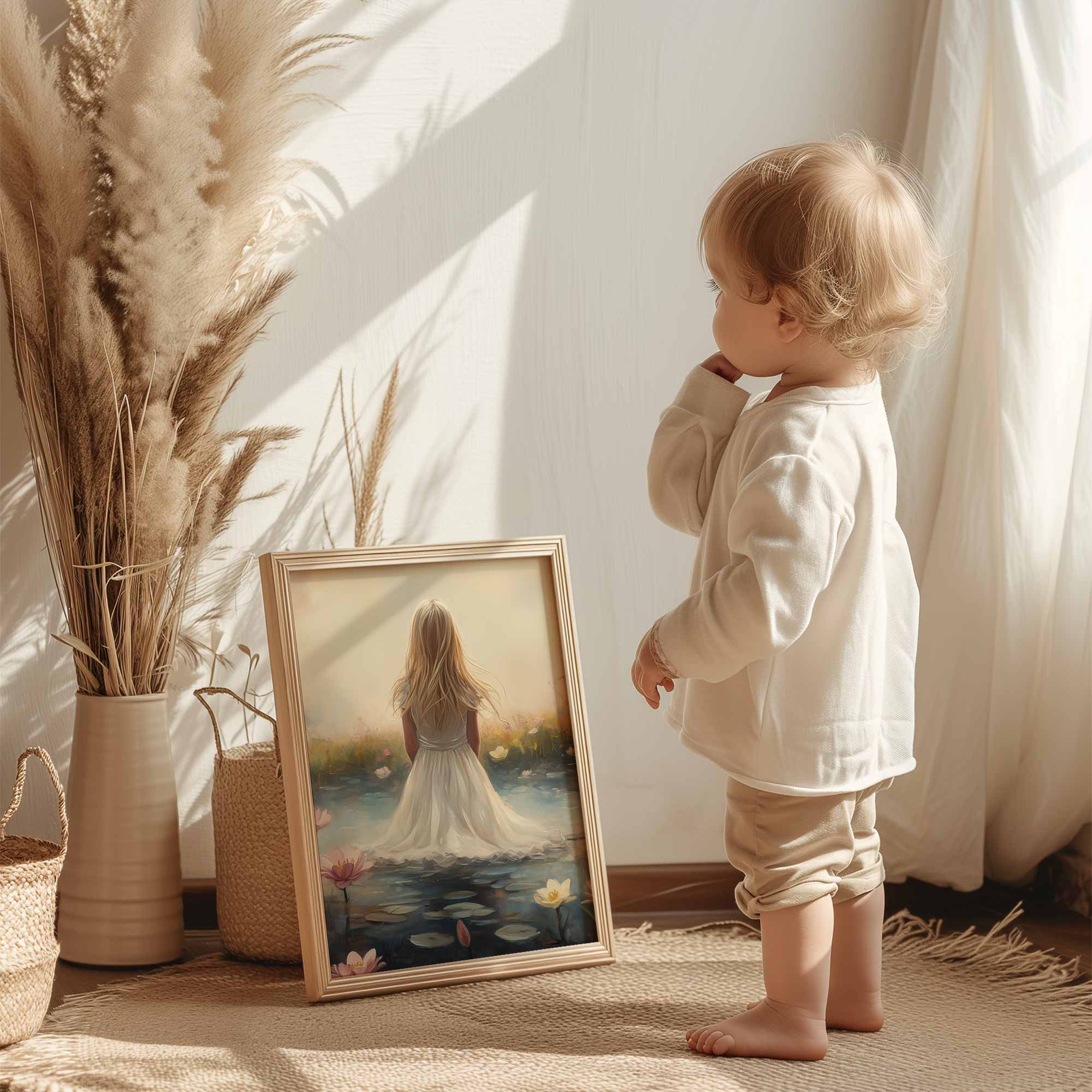 Terug naar collectie Posters Dromerig Meisje in Bloemenveld – Roze Sereniteit