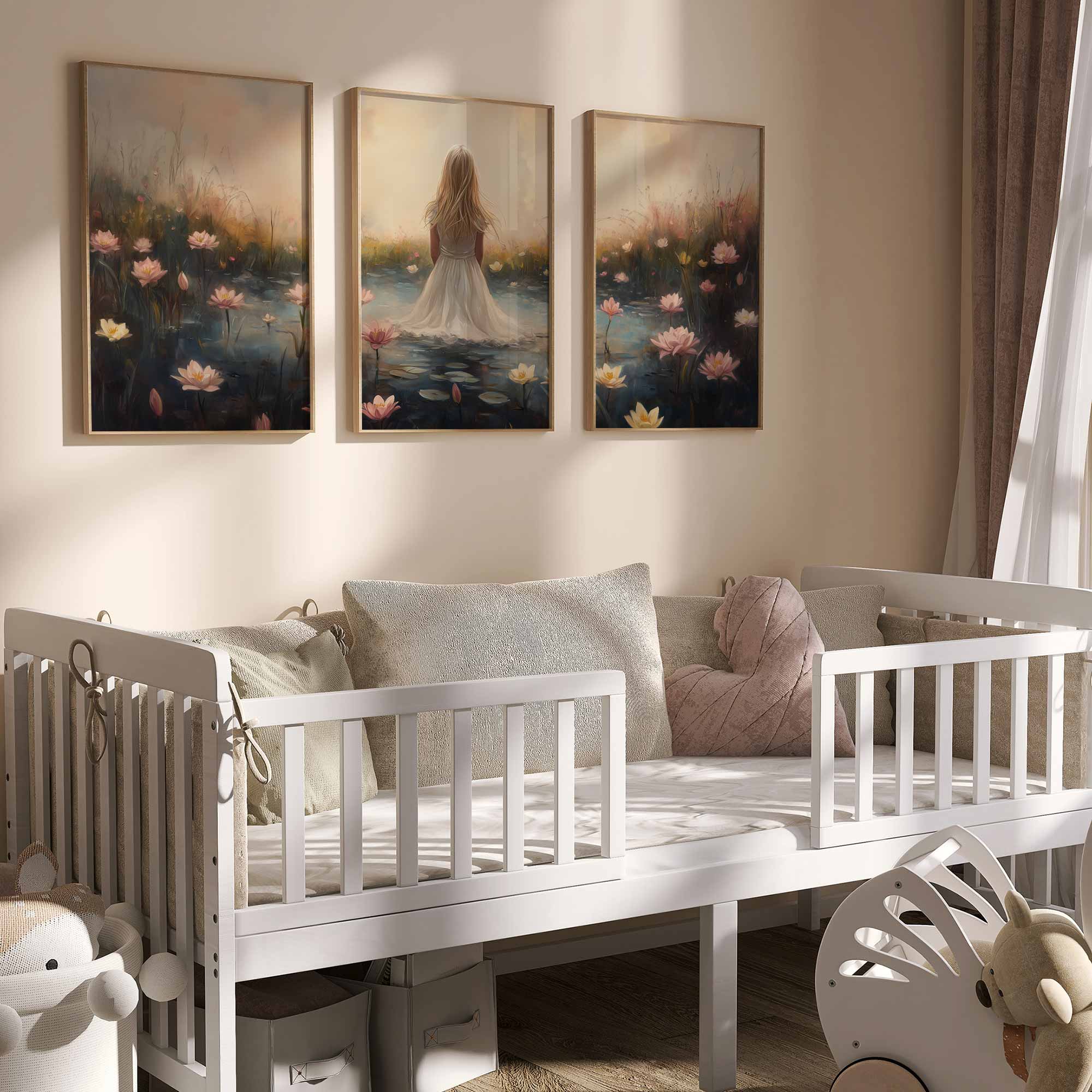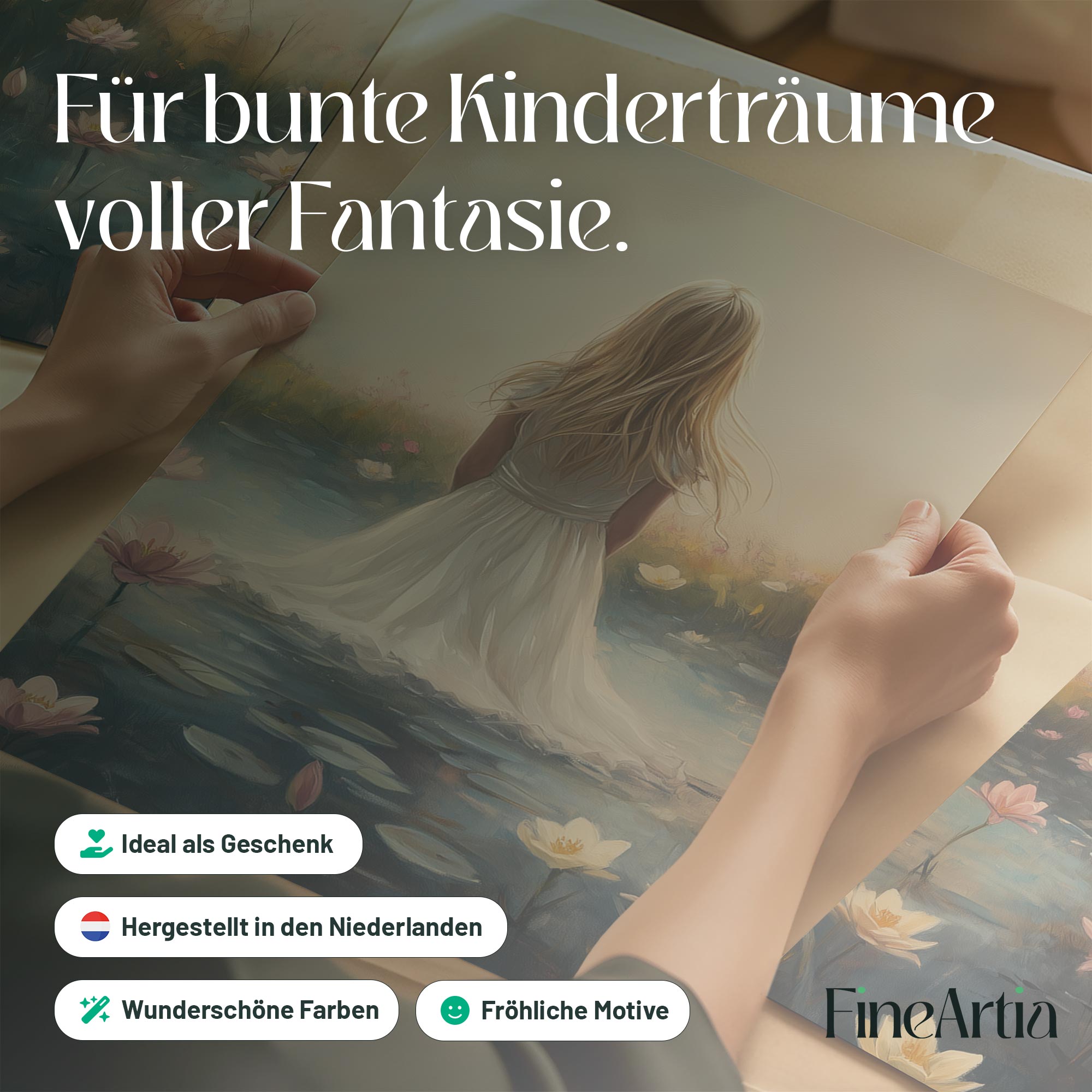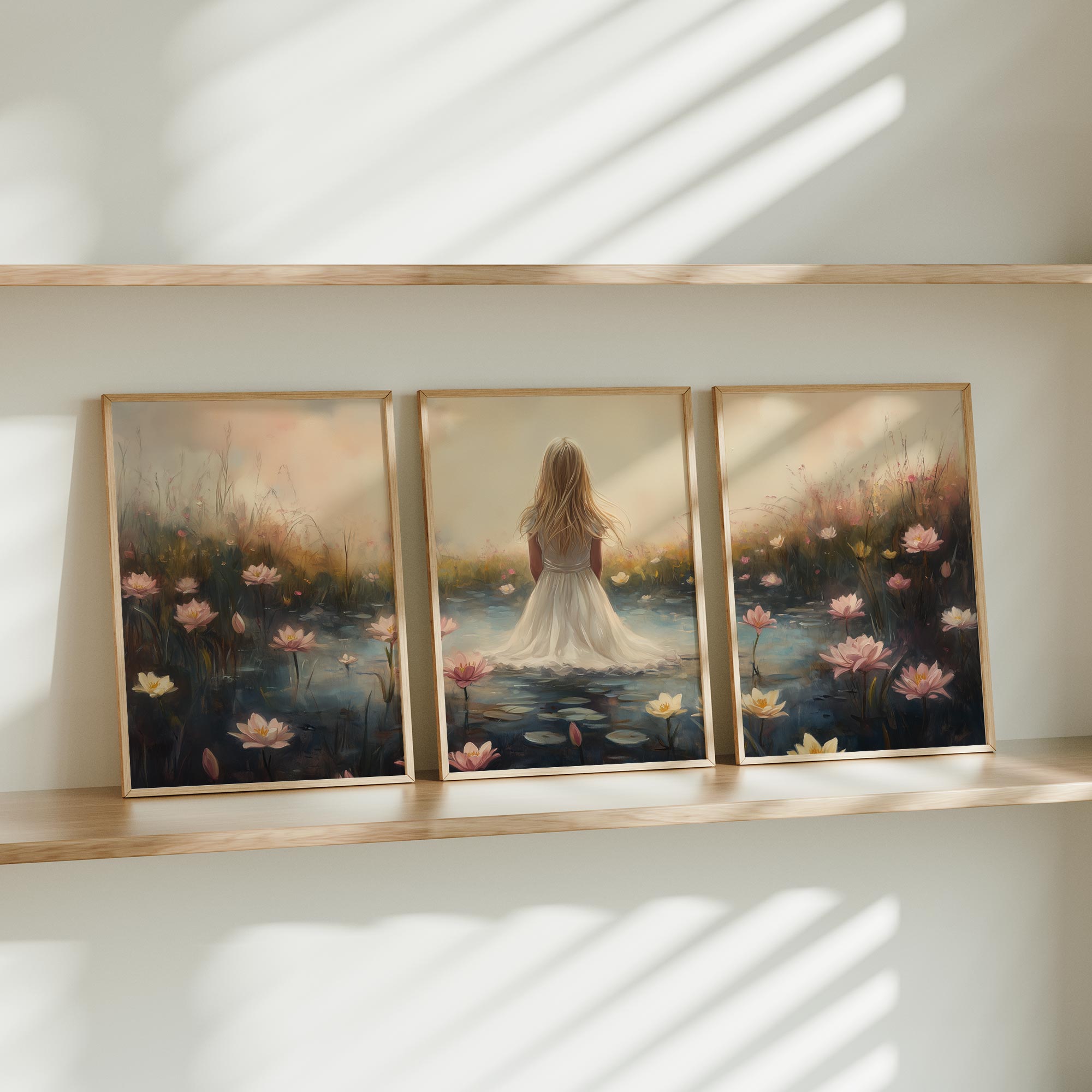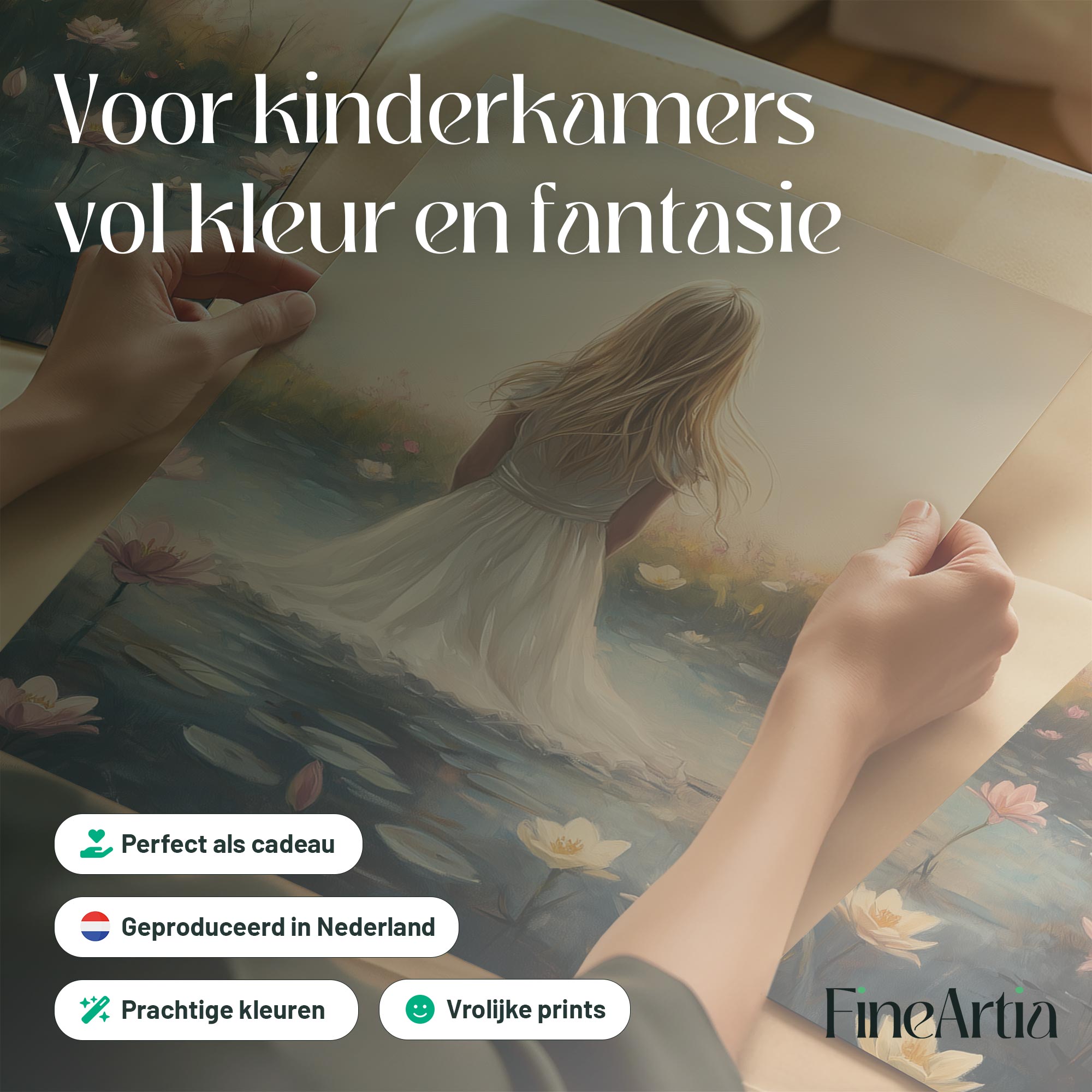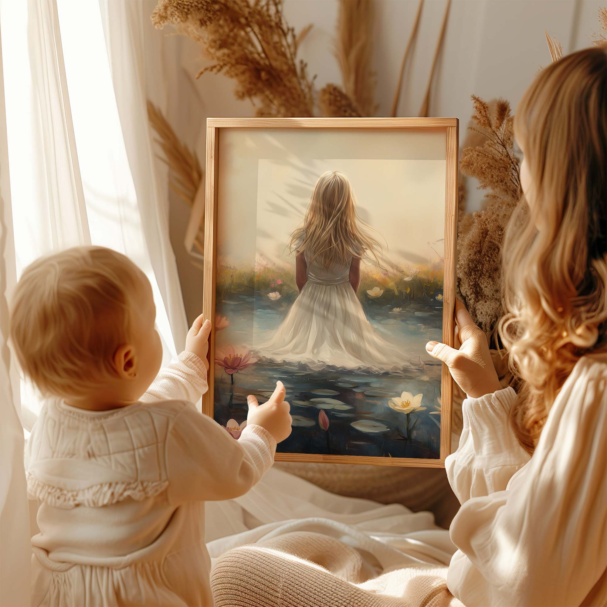 Terug naar collectie Posters Dromerig Meisje in Bloemenveld – Roze Sereniteit