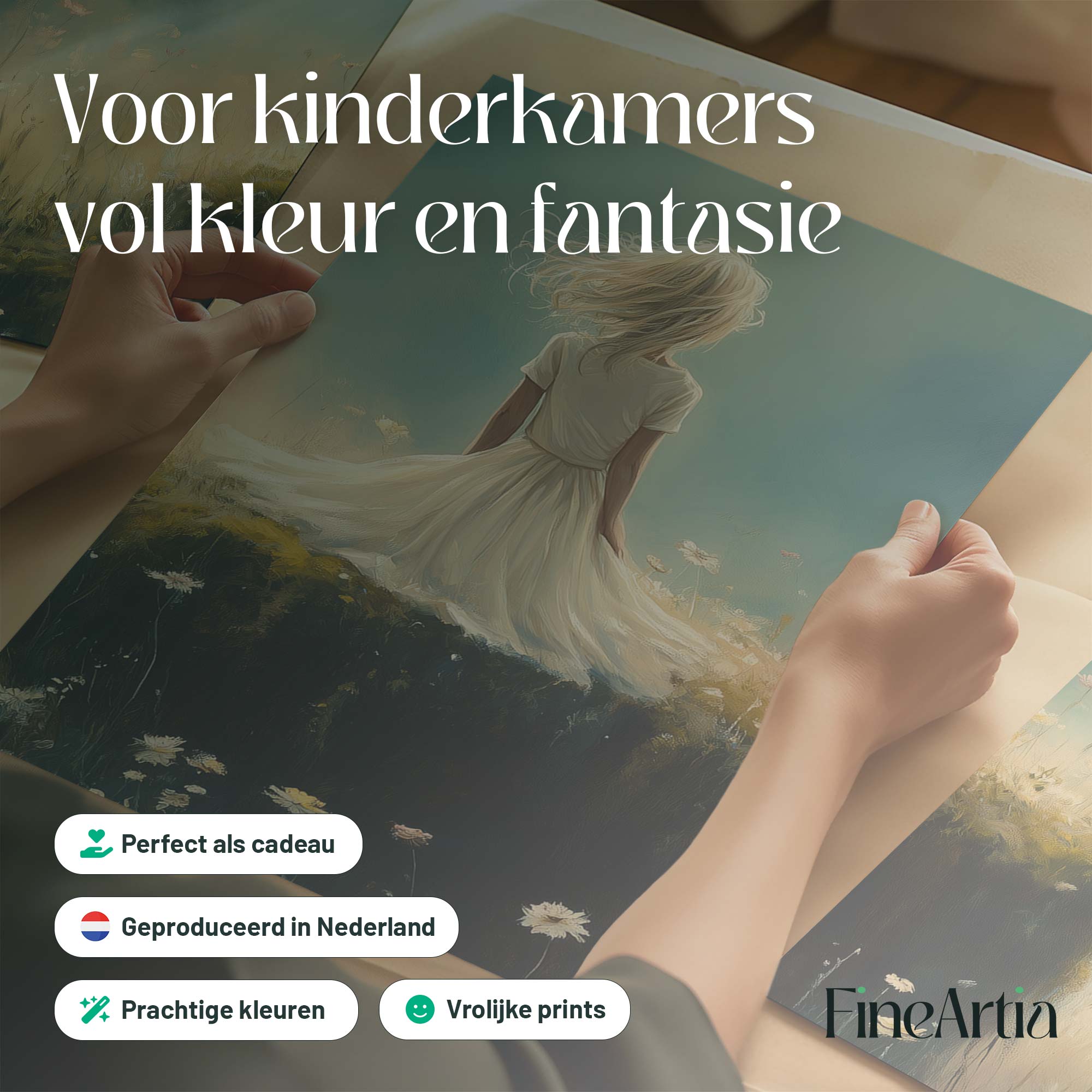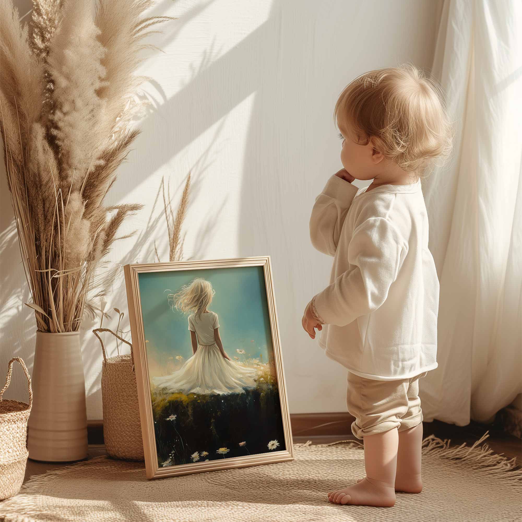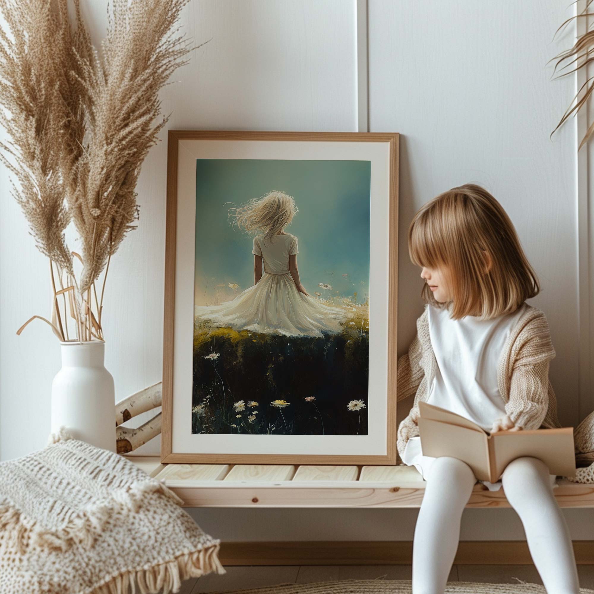 Dromerig Meisje in Bloemenveld – Serene Kindersfeer