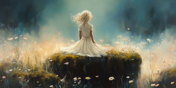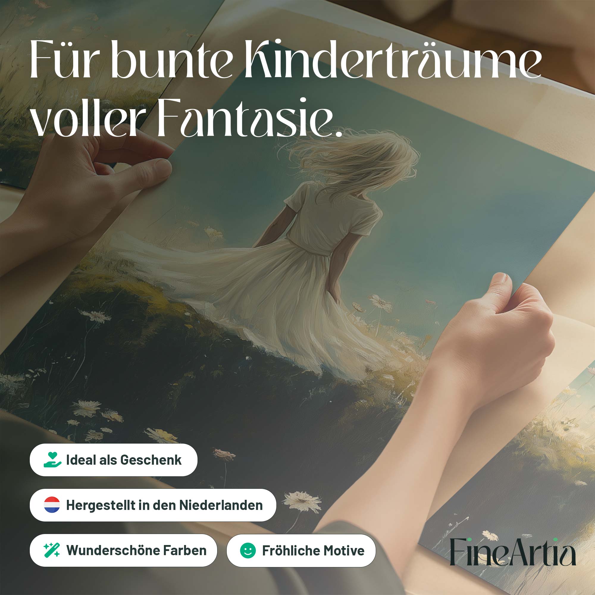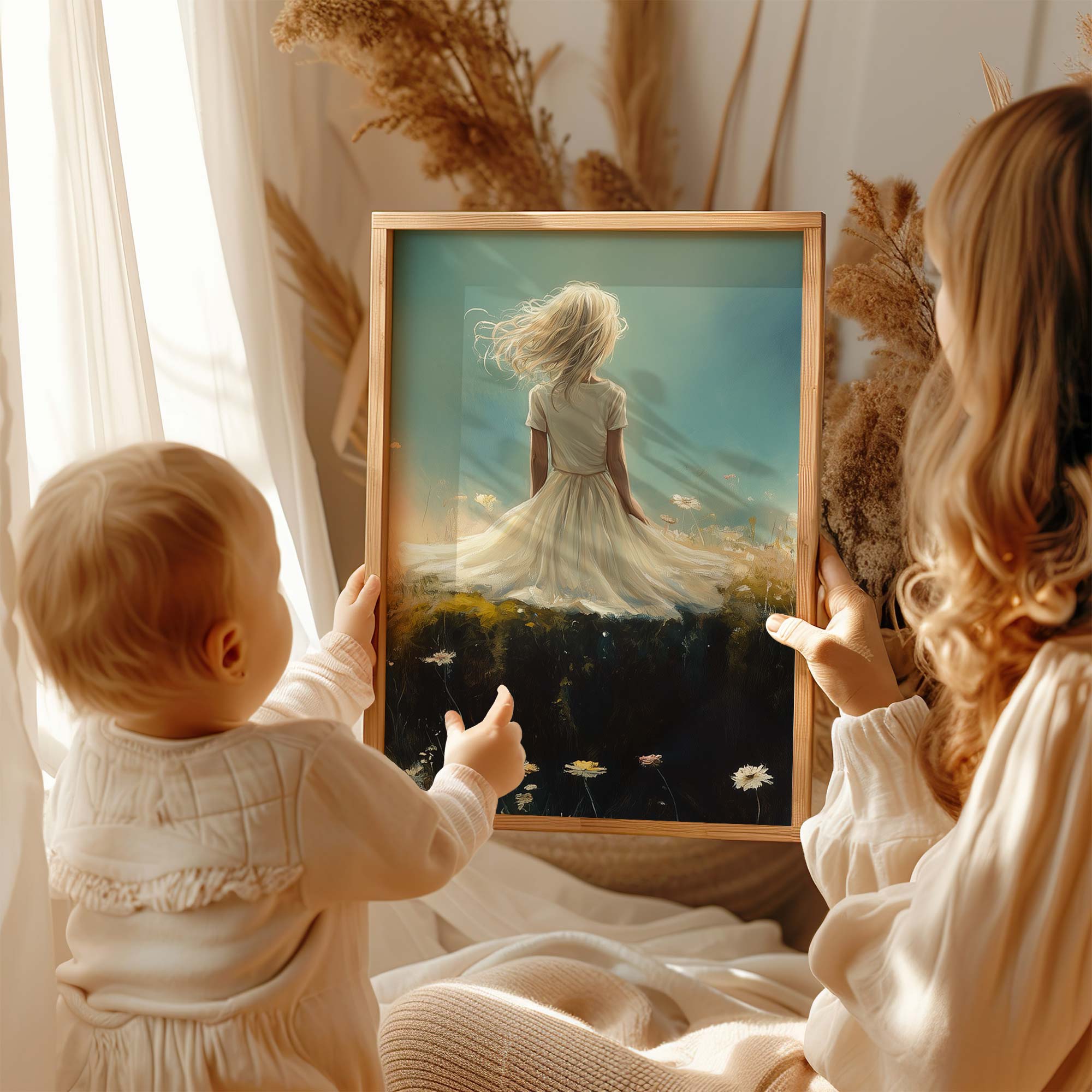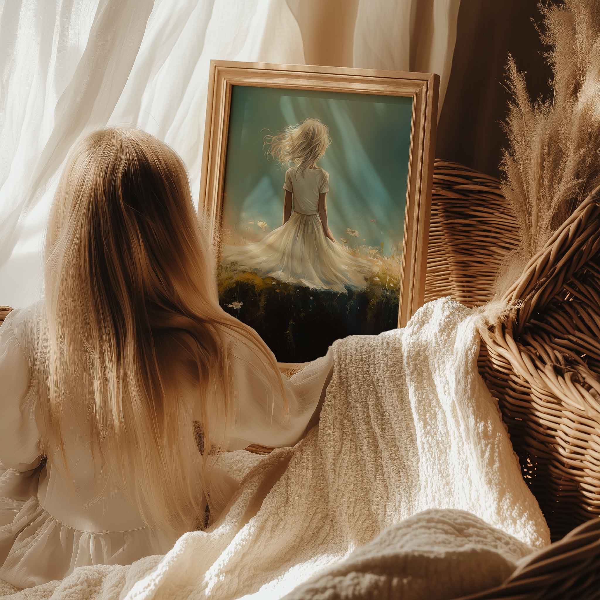 Dromerig Meisje in Bloemenveld – Serene Kindersfeer