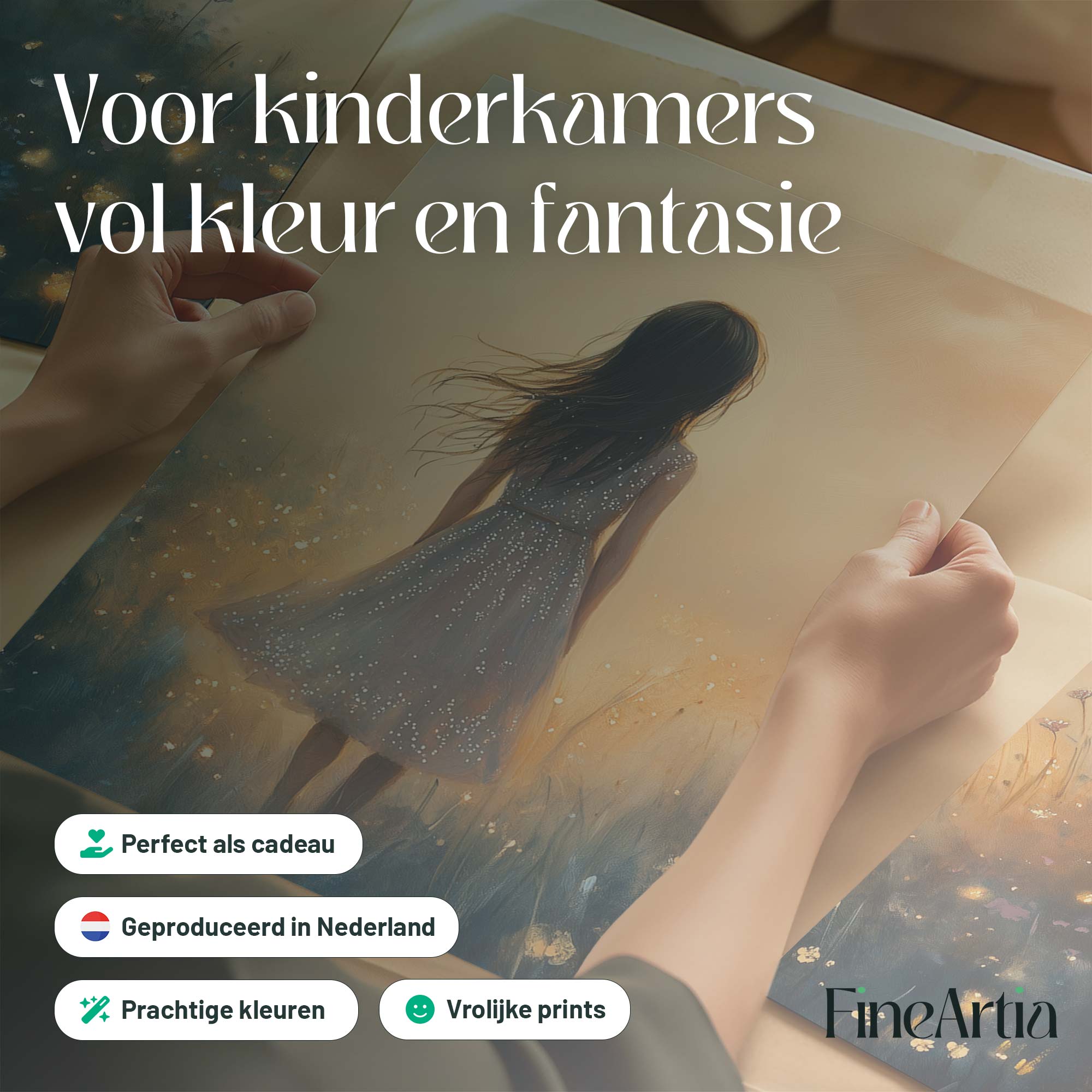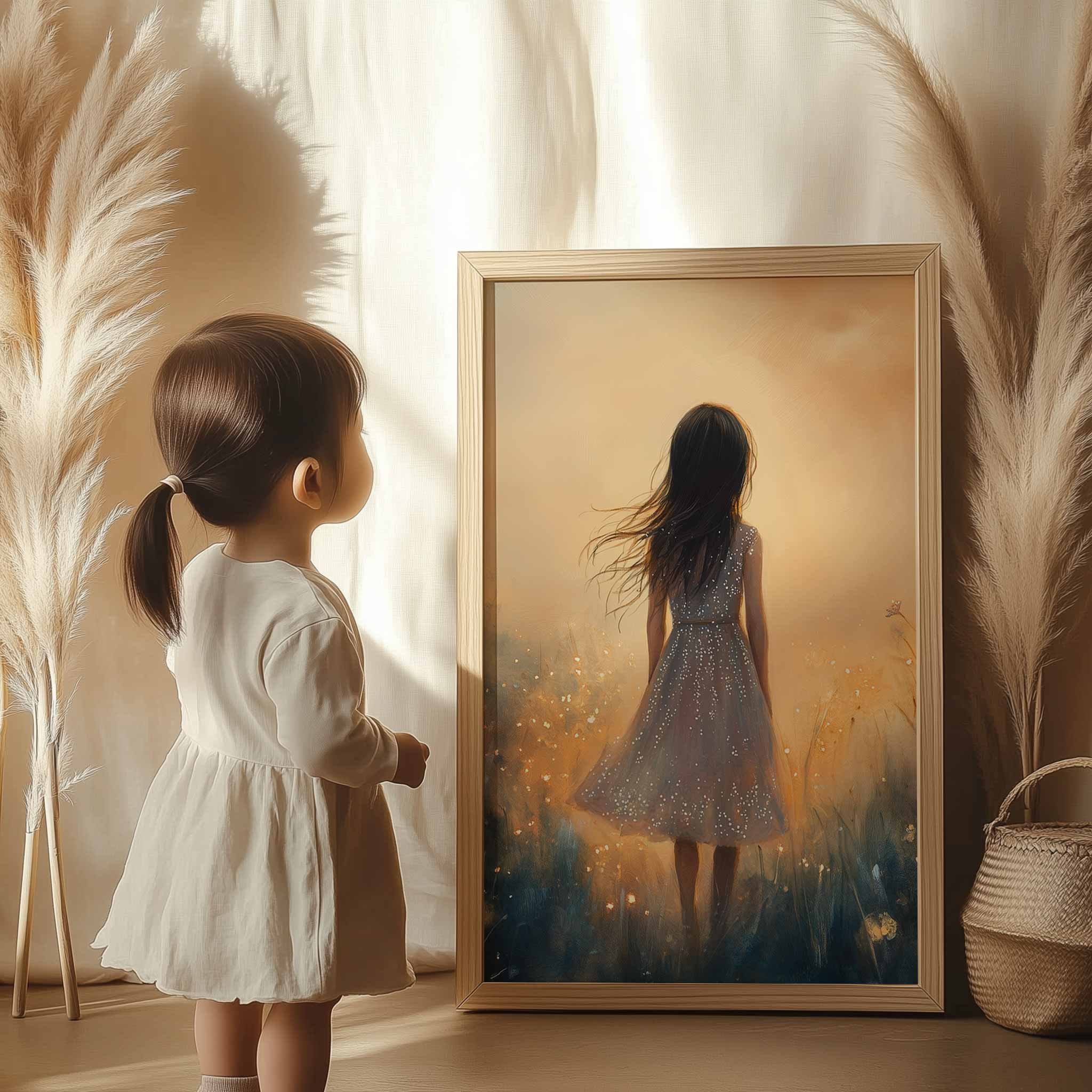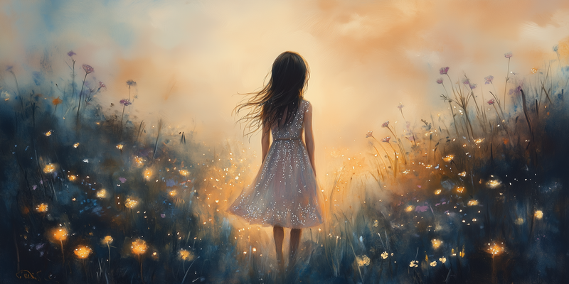Dromerig Meisje in Bloemenveld – Serene Sfeer