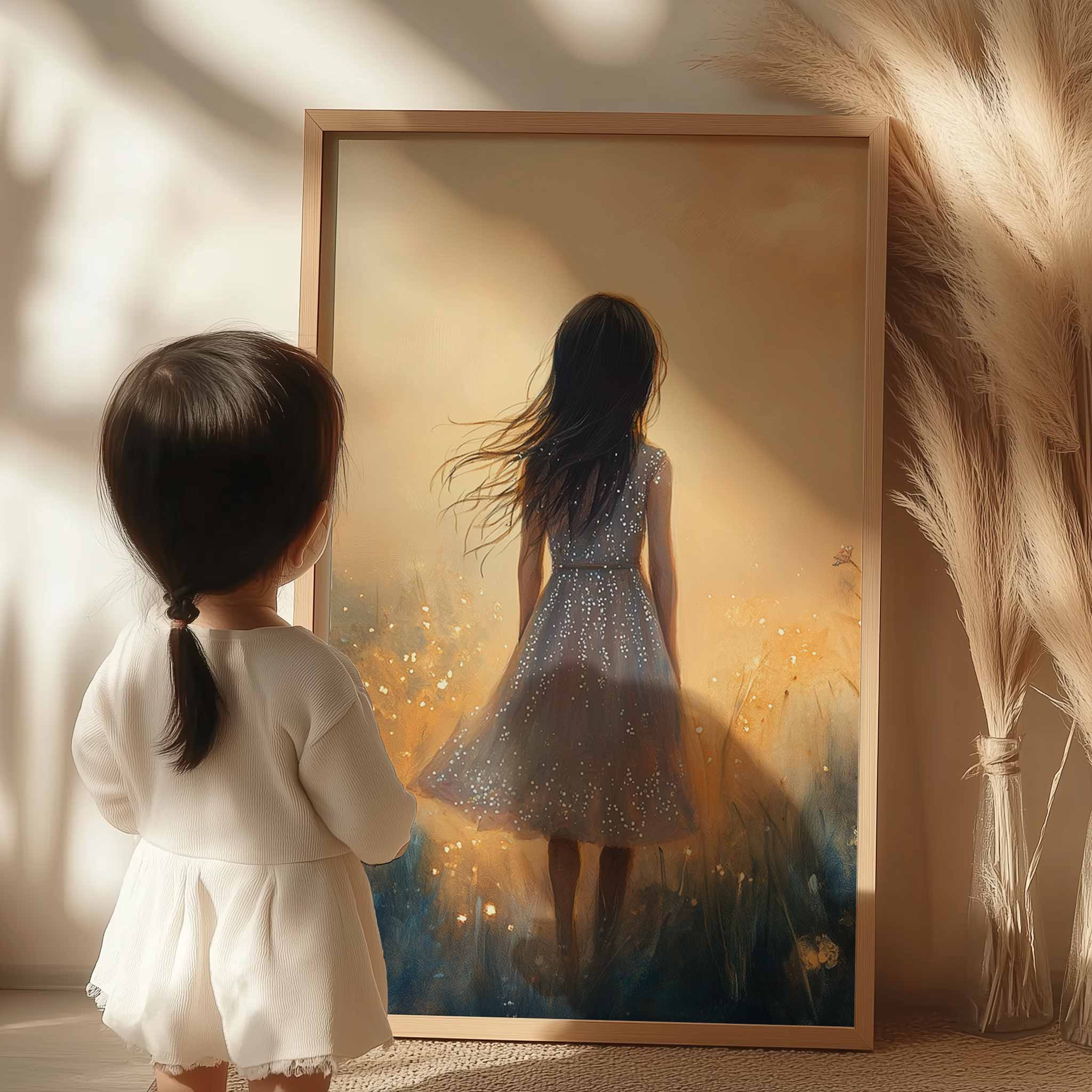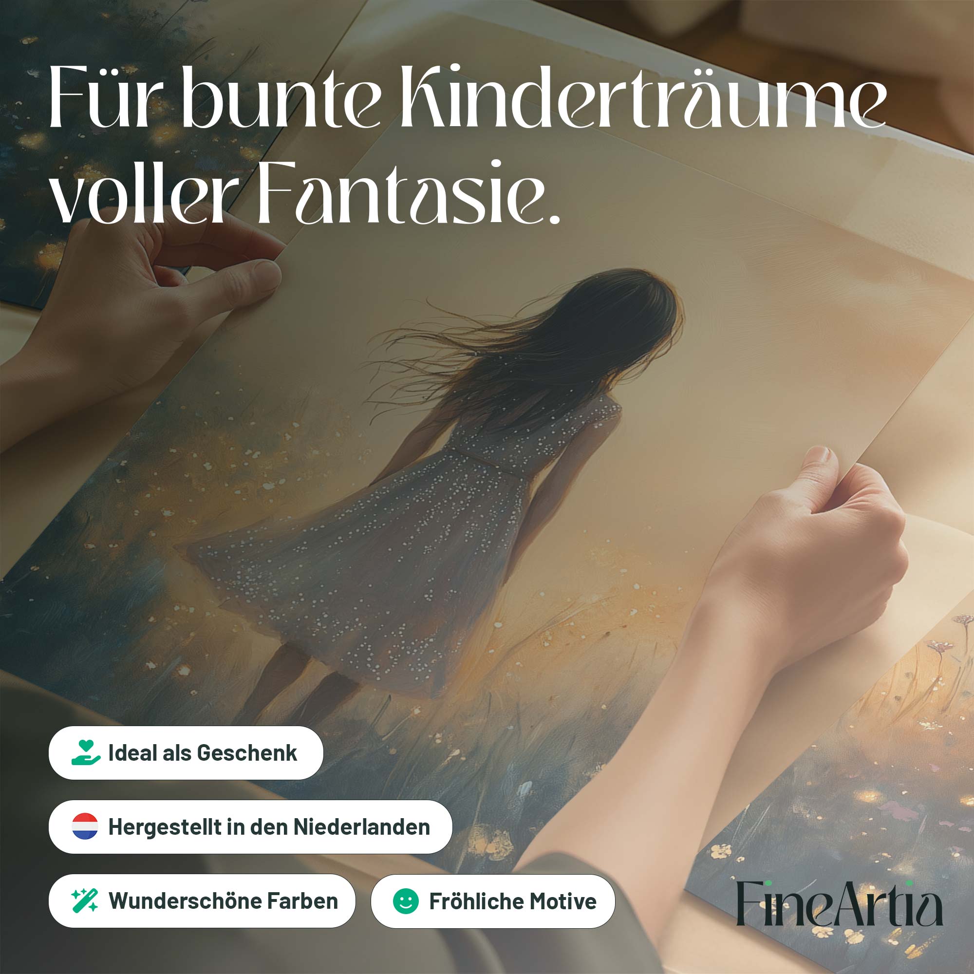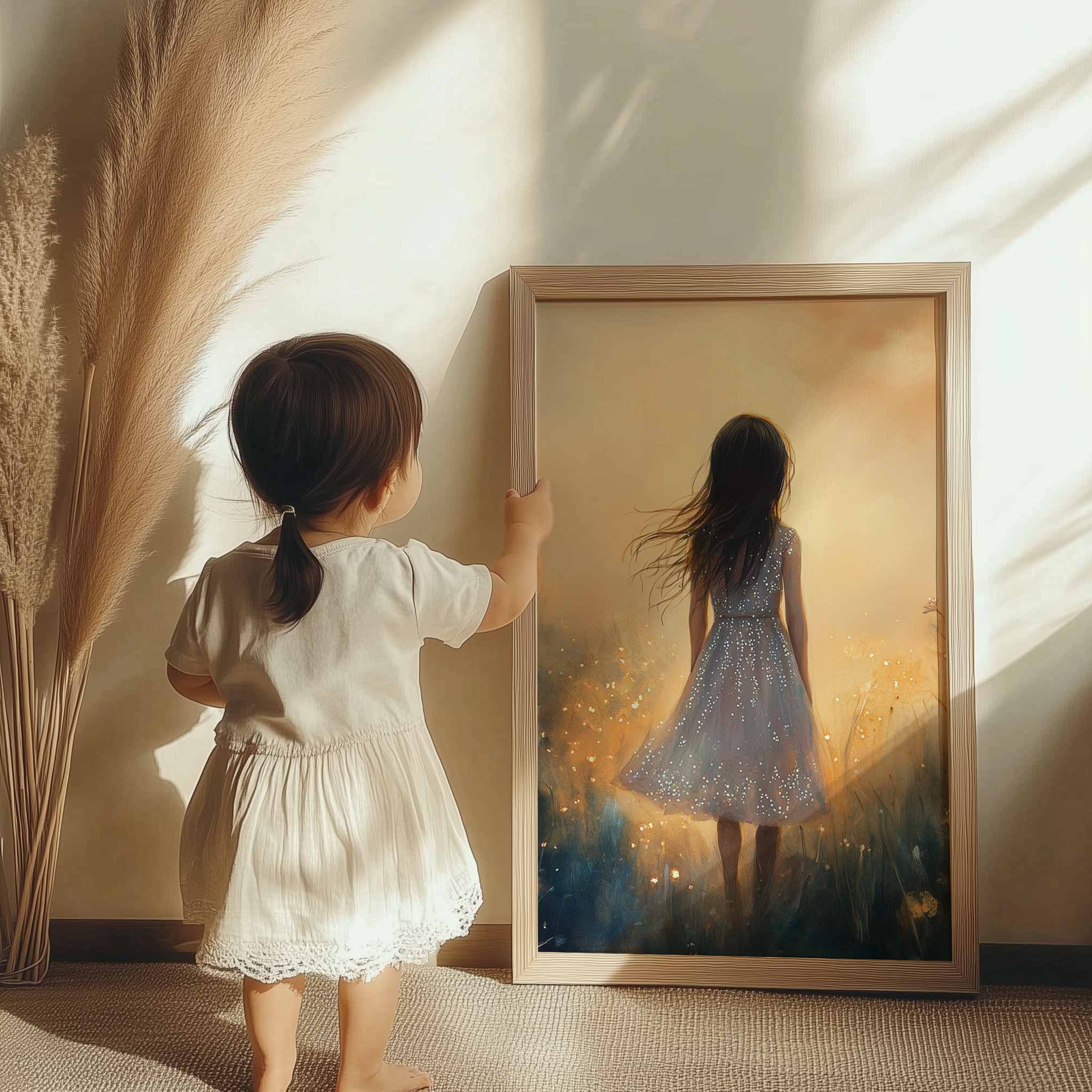 Dromerig Meisje in Bloemenveld – Serene Sfeer
