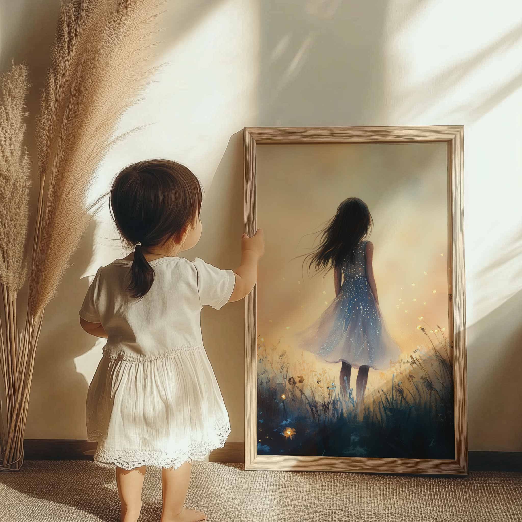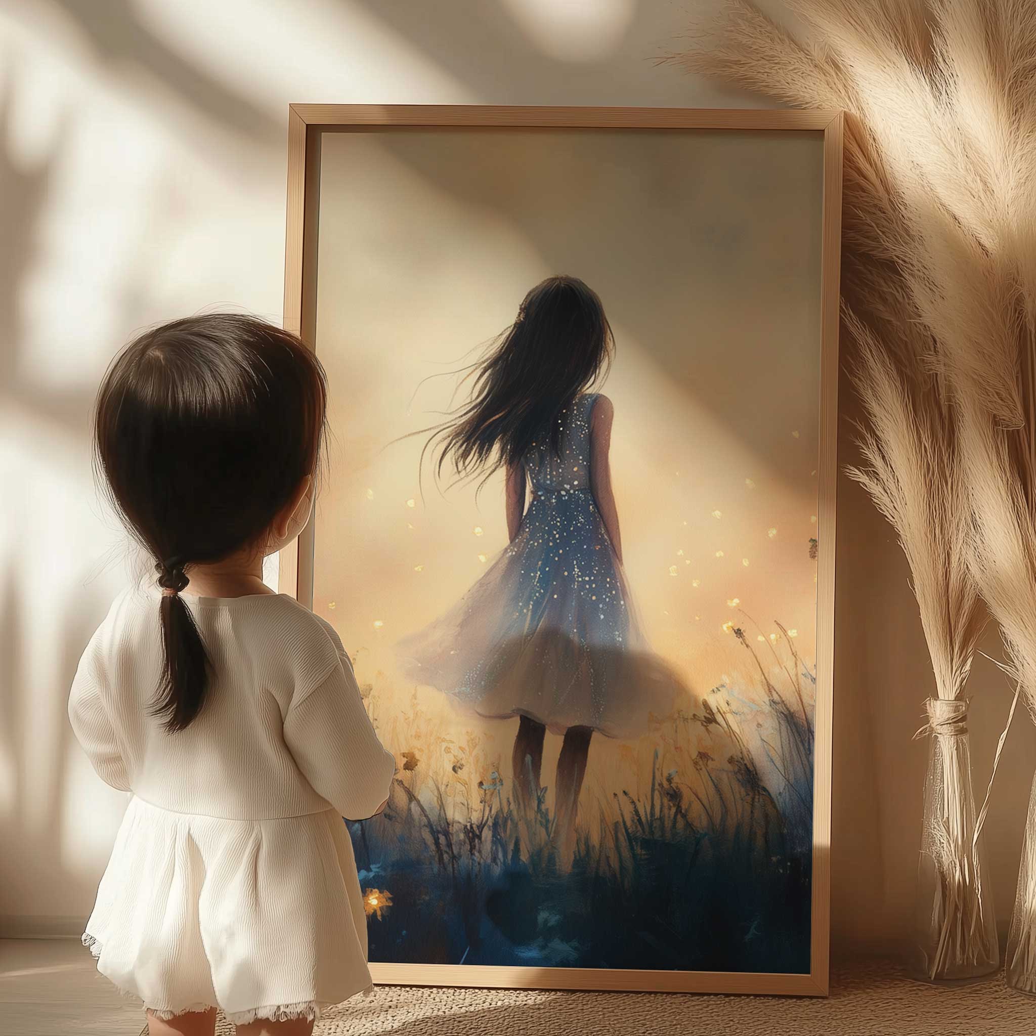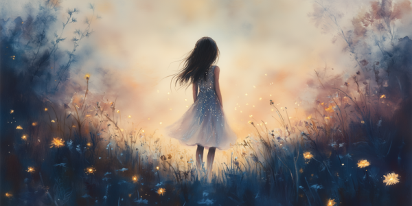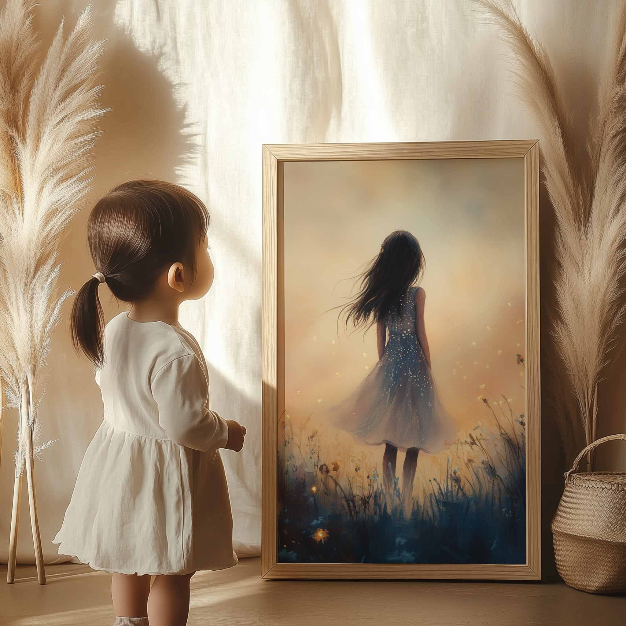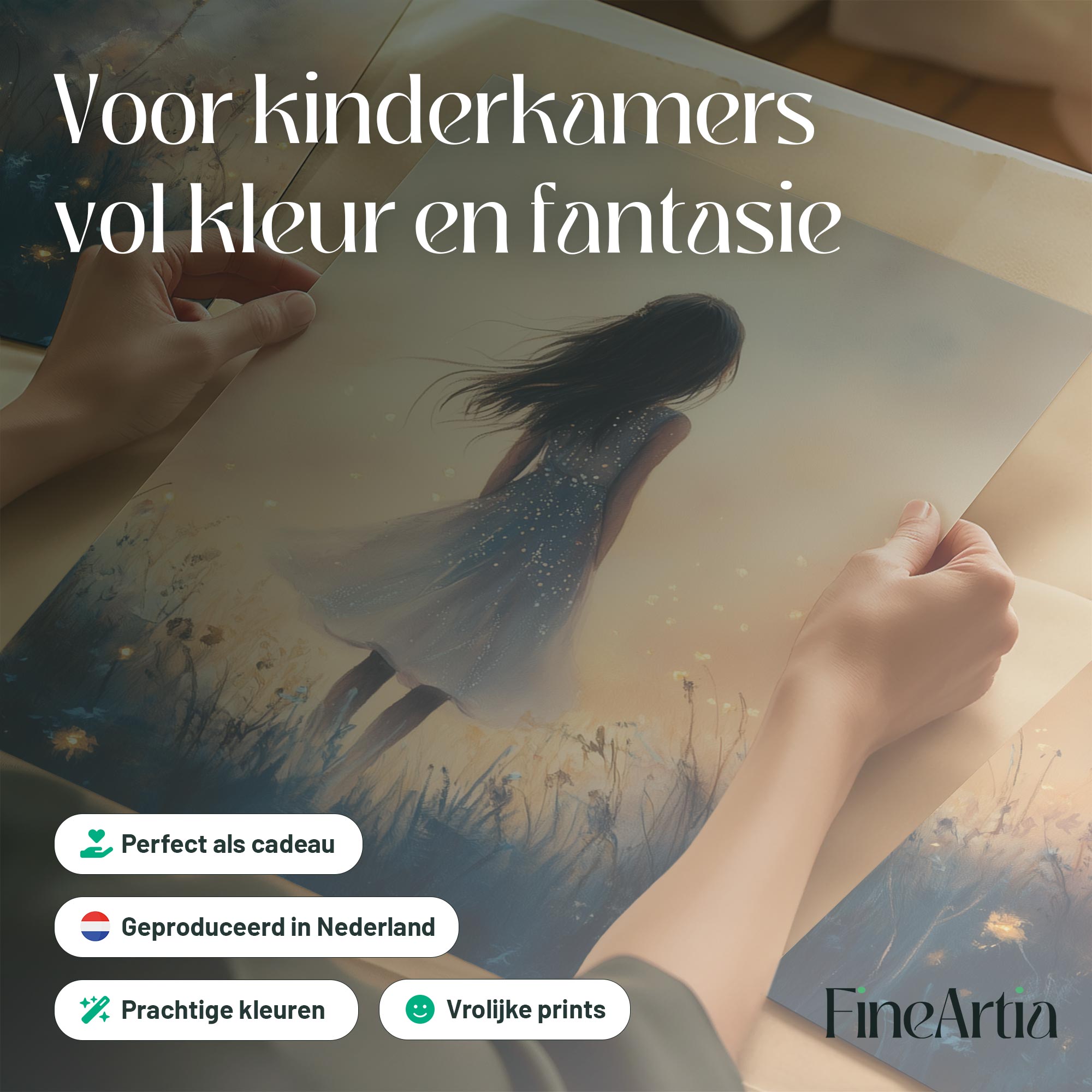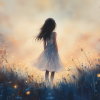 Dromerig Meisje in Bloemenveld – Speels en Zacht