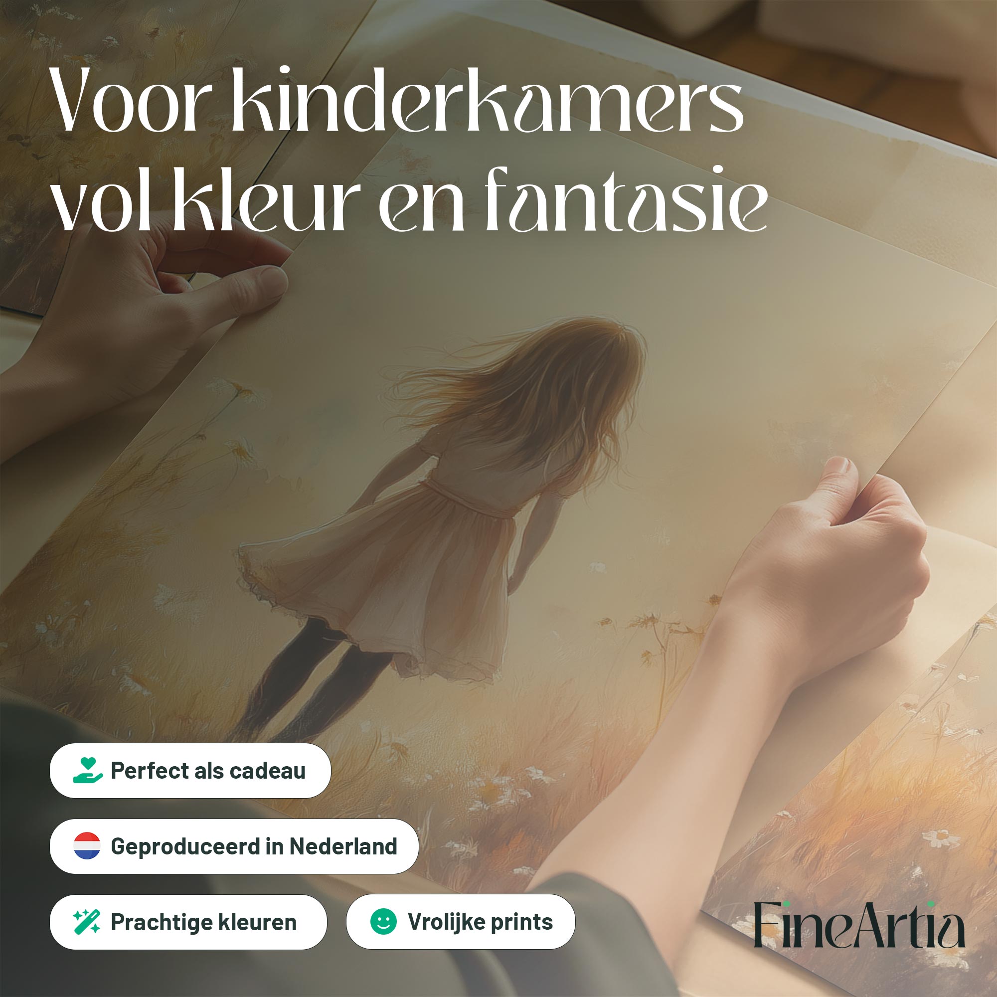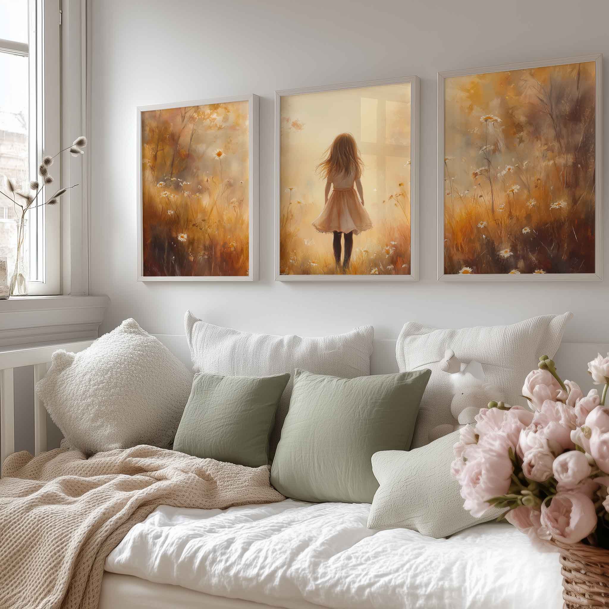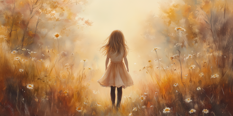 Dromerig Meisje in Bloemenveld – Warme Kinderfantasie