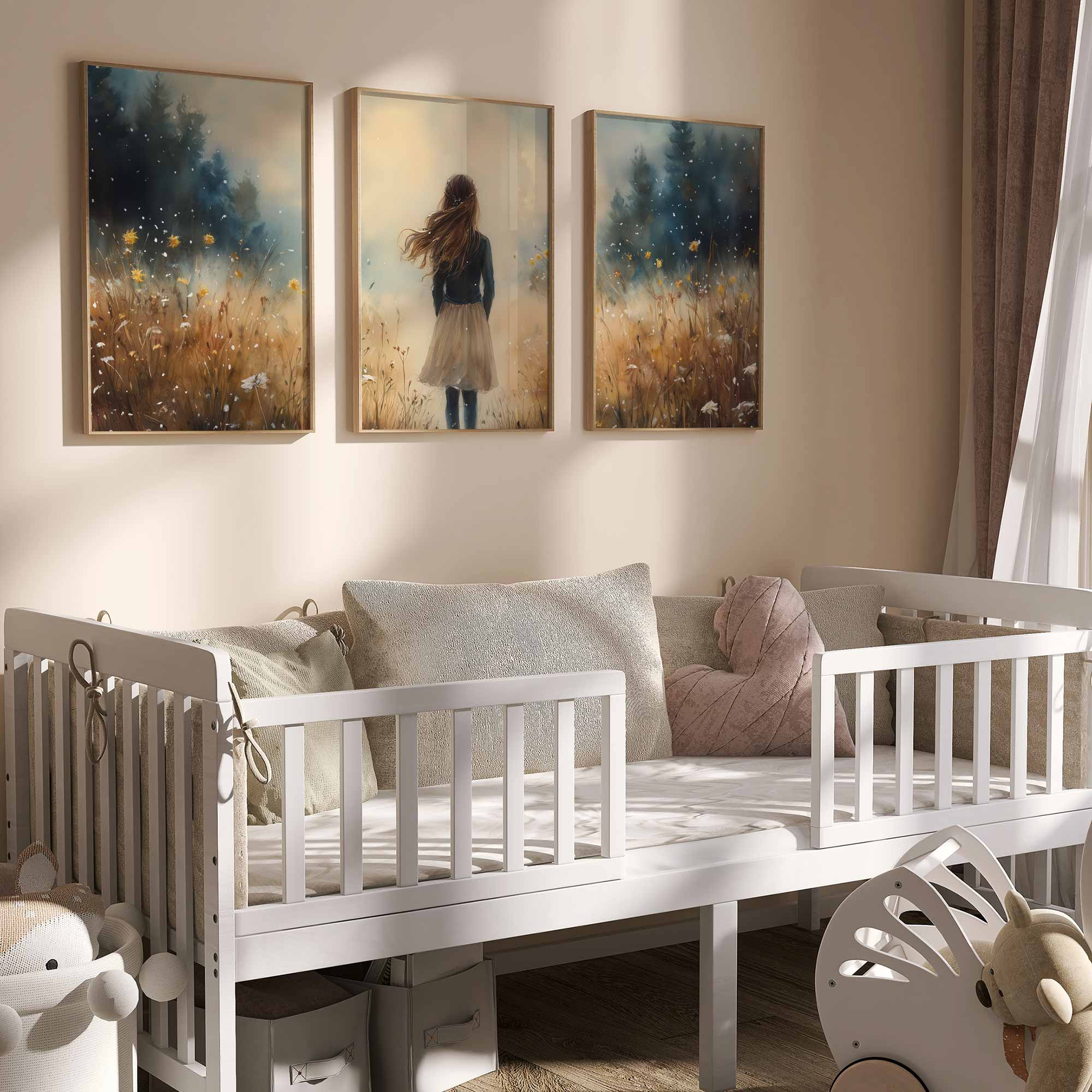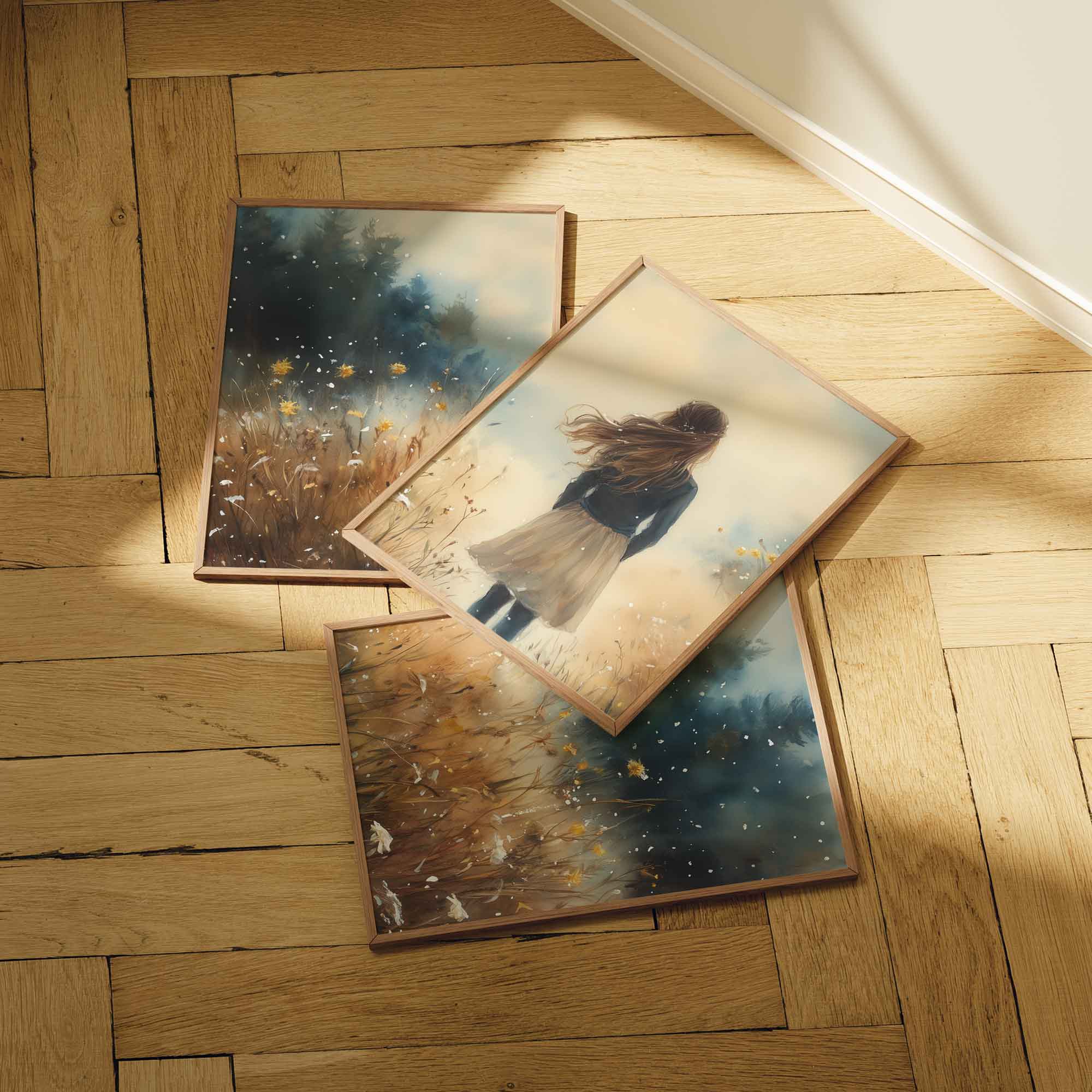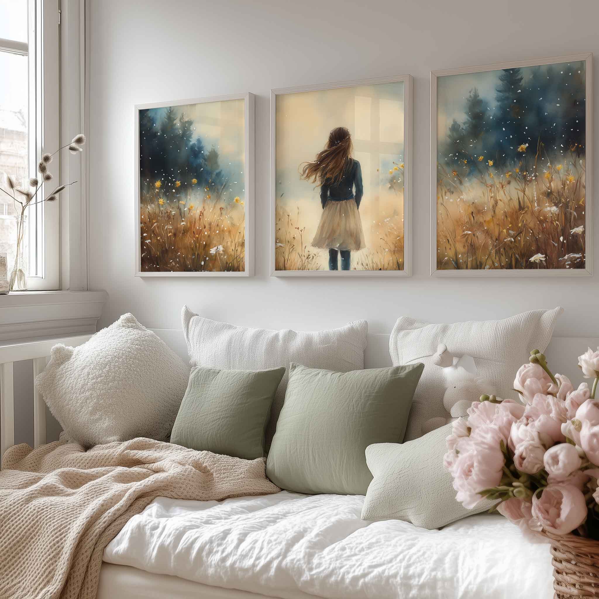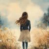 Dromerig Meisje in Bloemenveld – Zachte Aardetinten