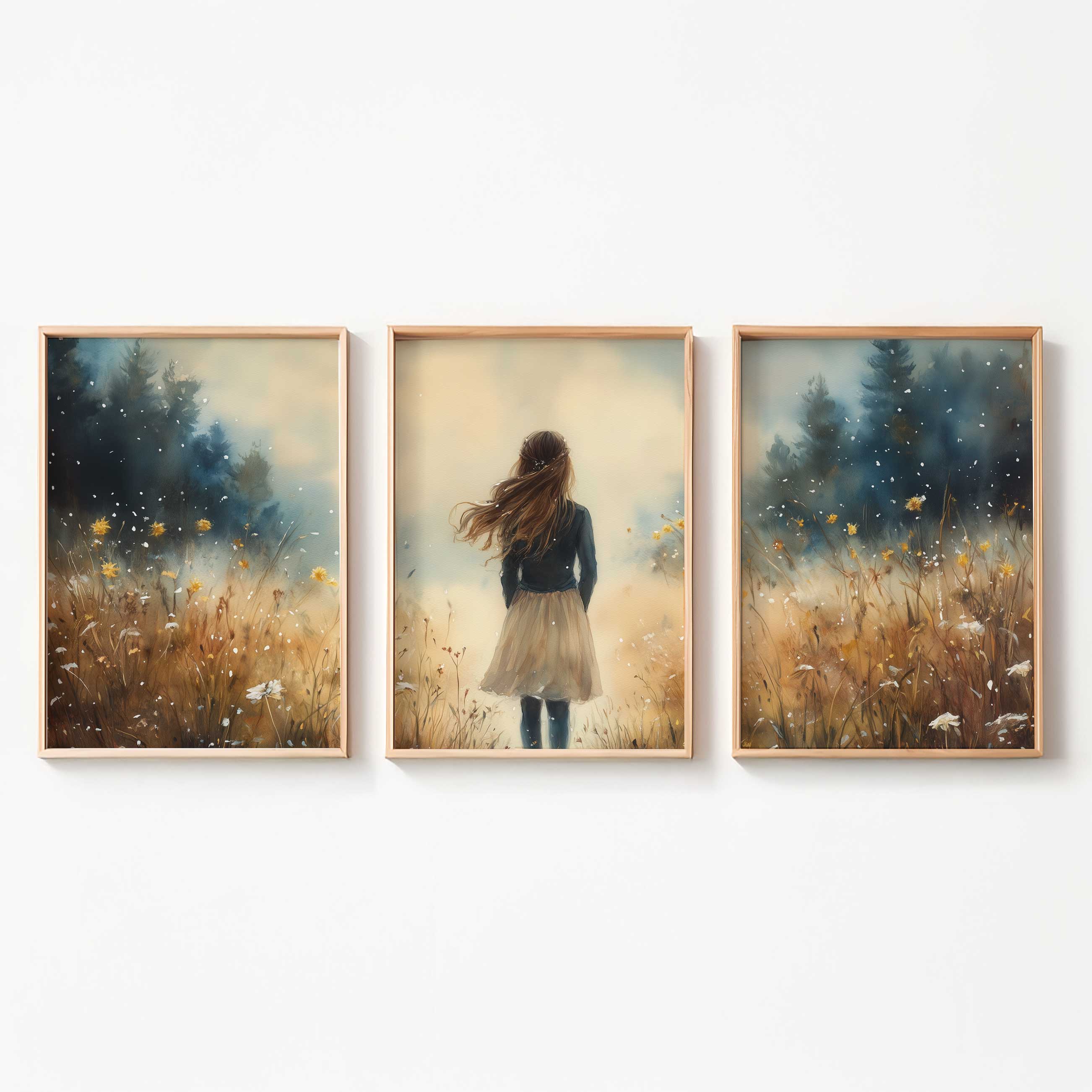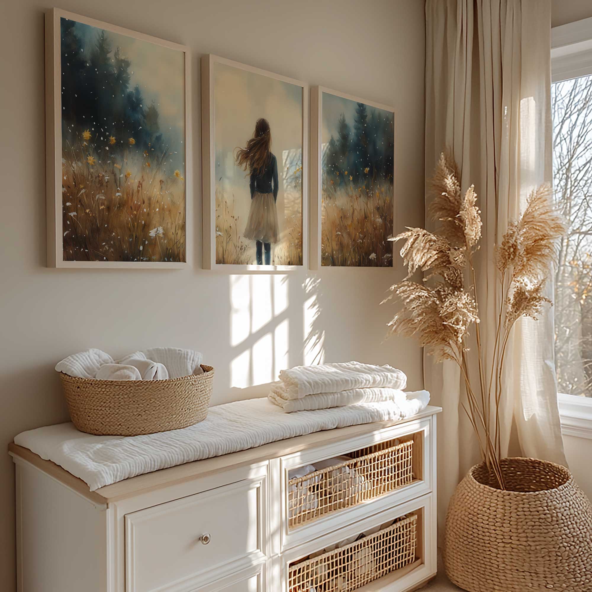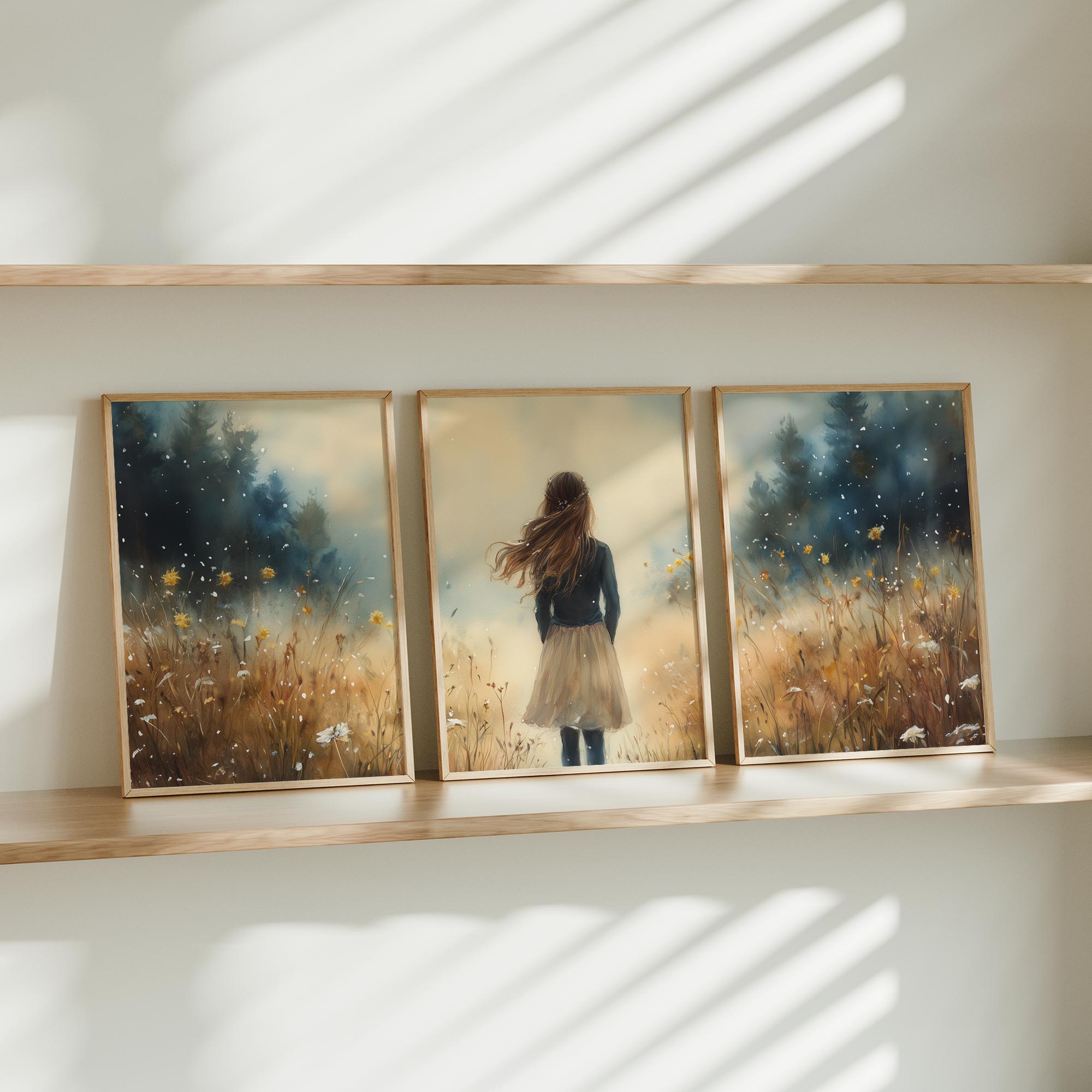 Dromerig Meisje in Bloemenveld – Zachte Aardetinten