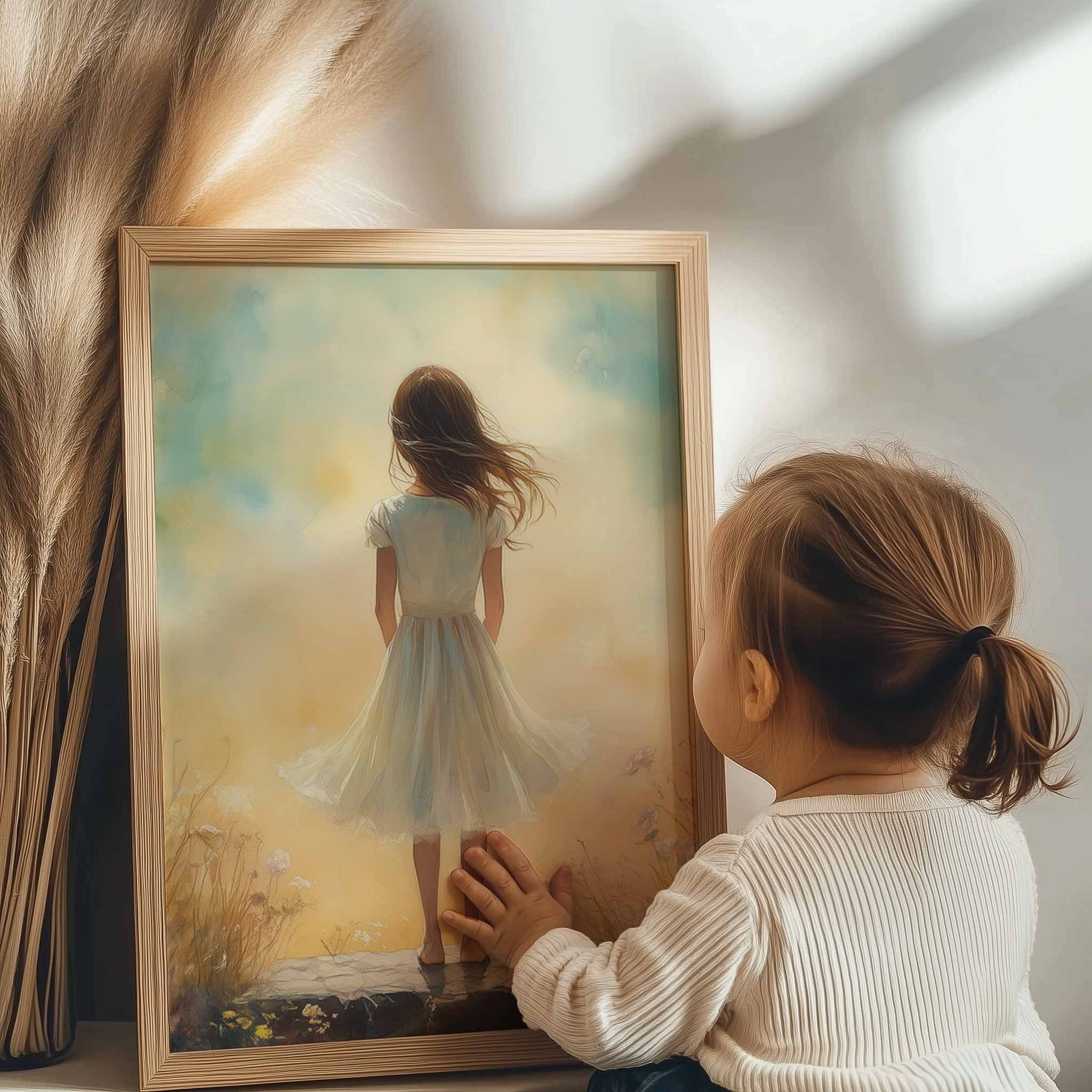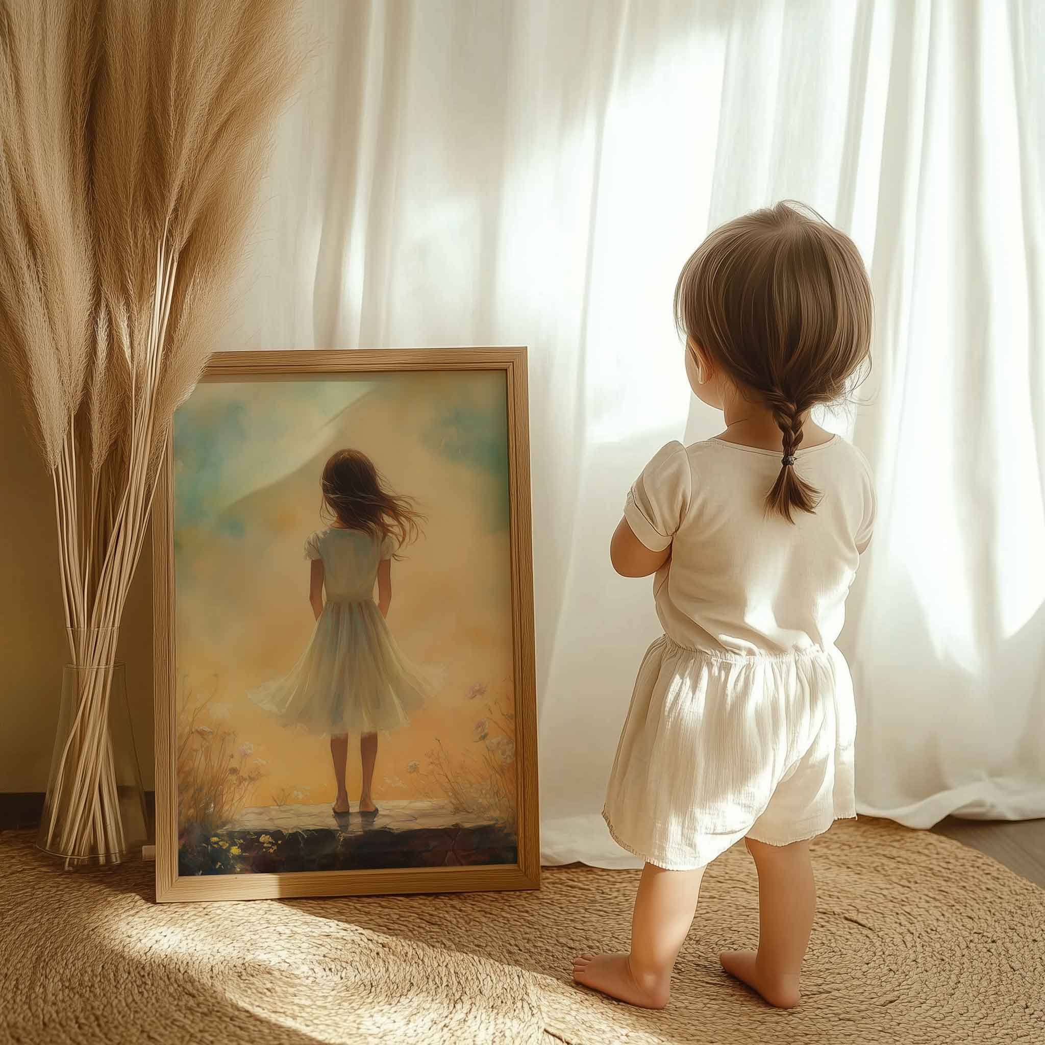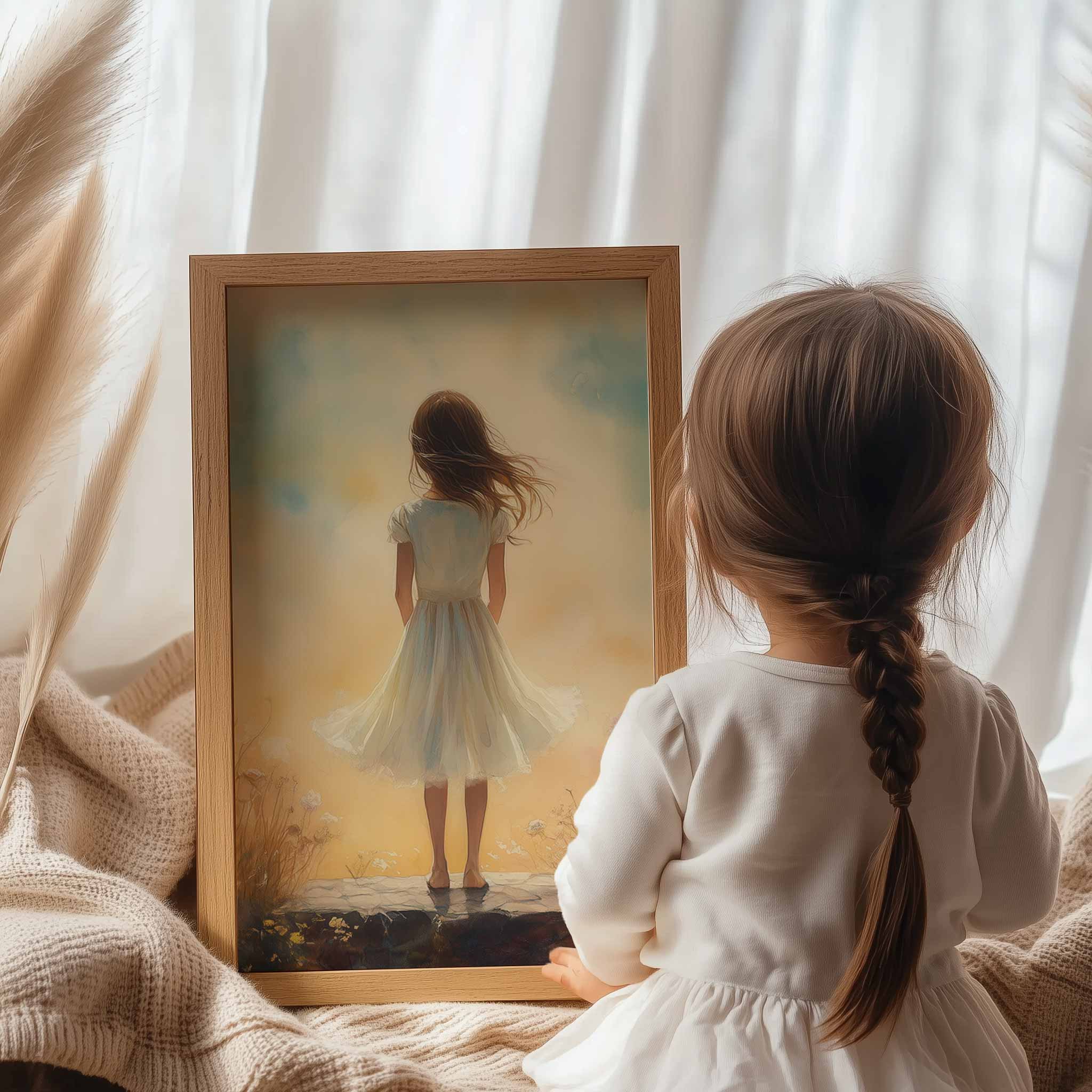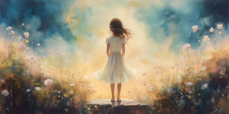 Dromerig Meisje in Bloemenveld – Zachte Kindertijd